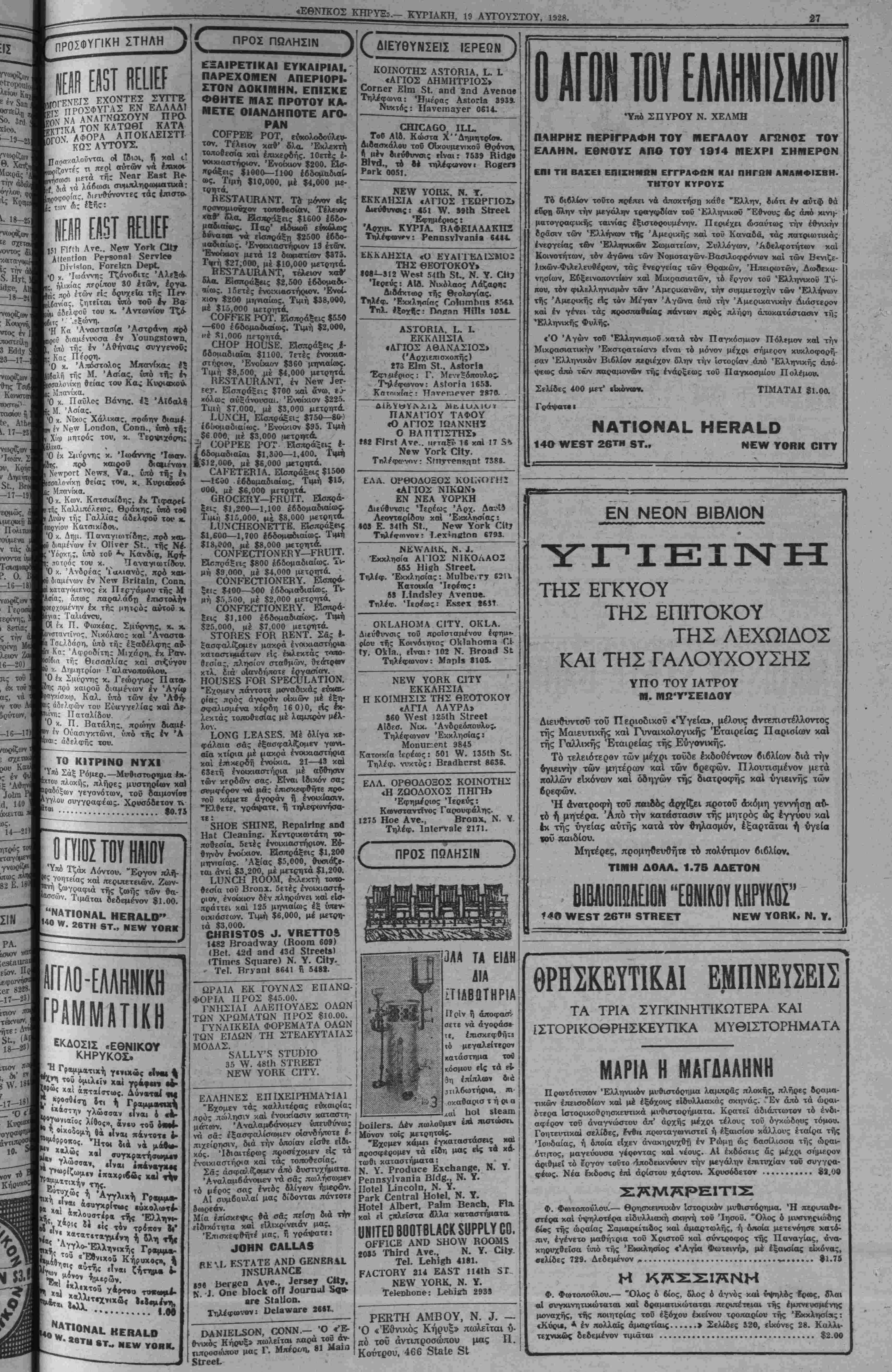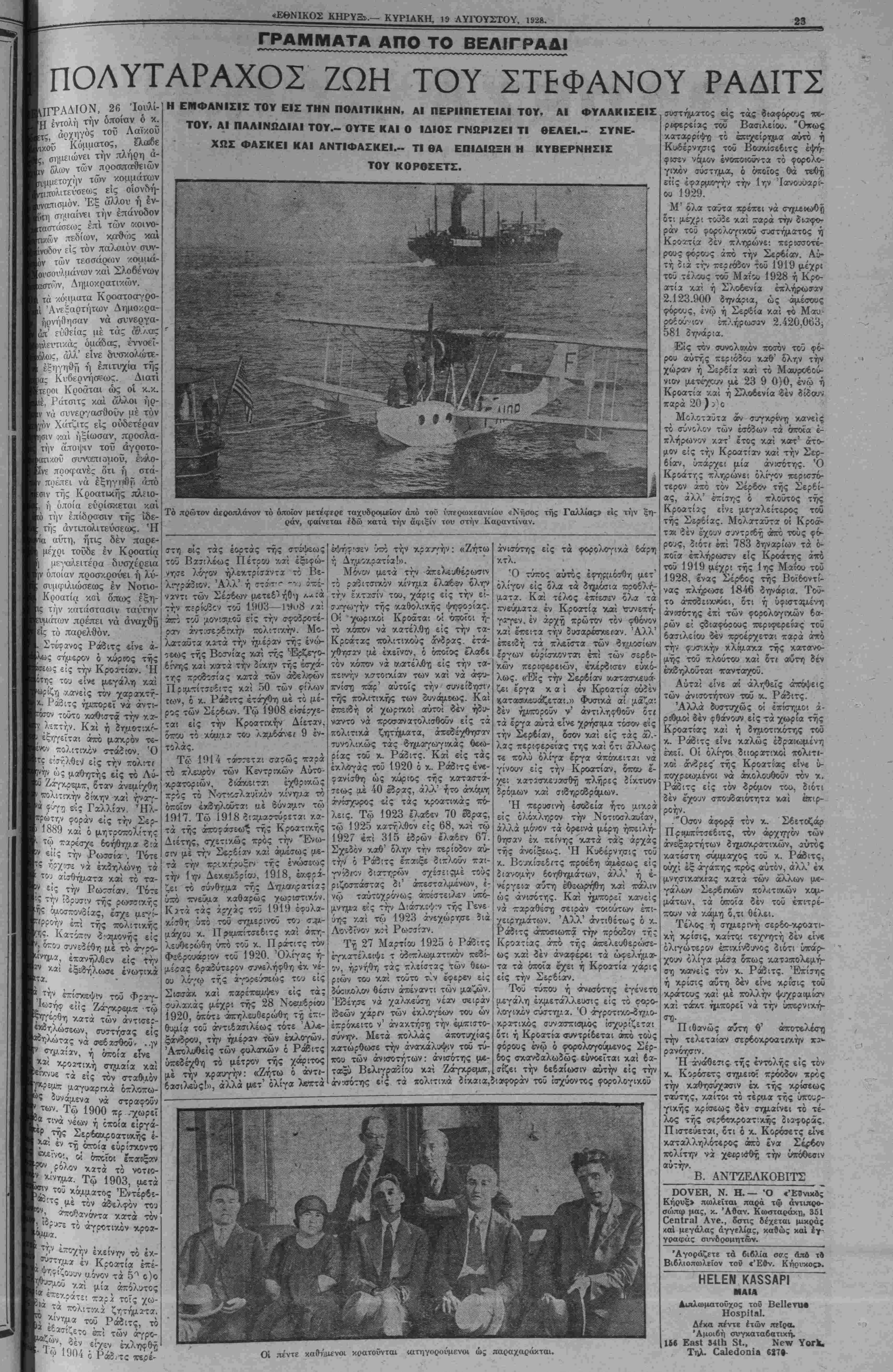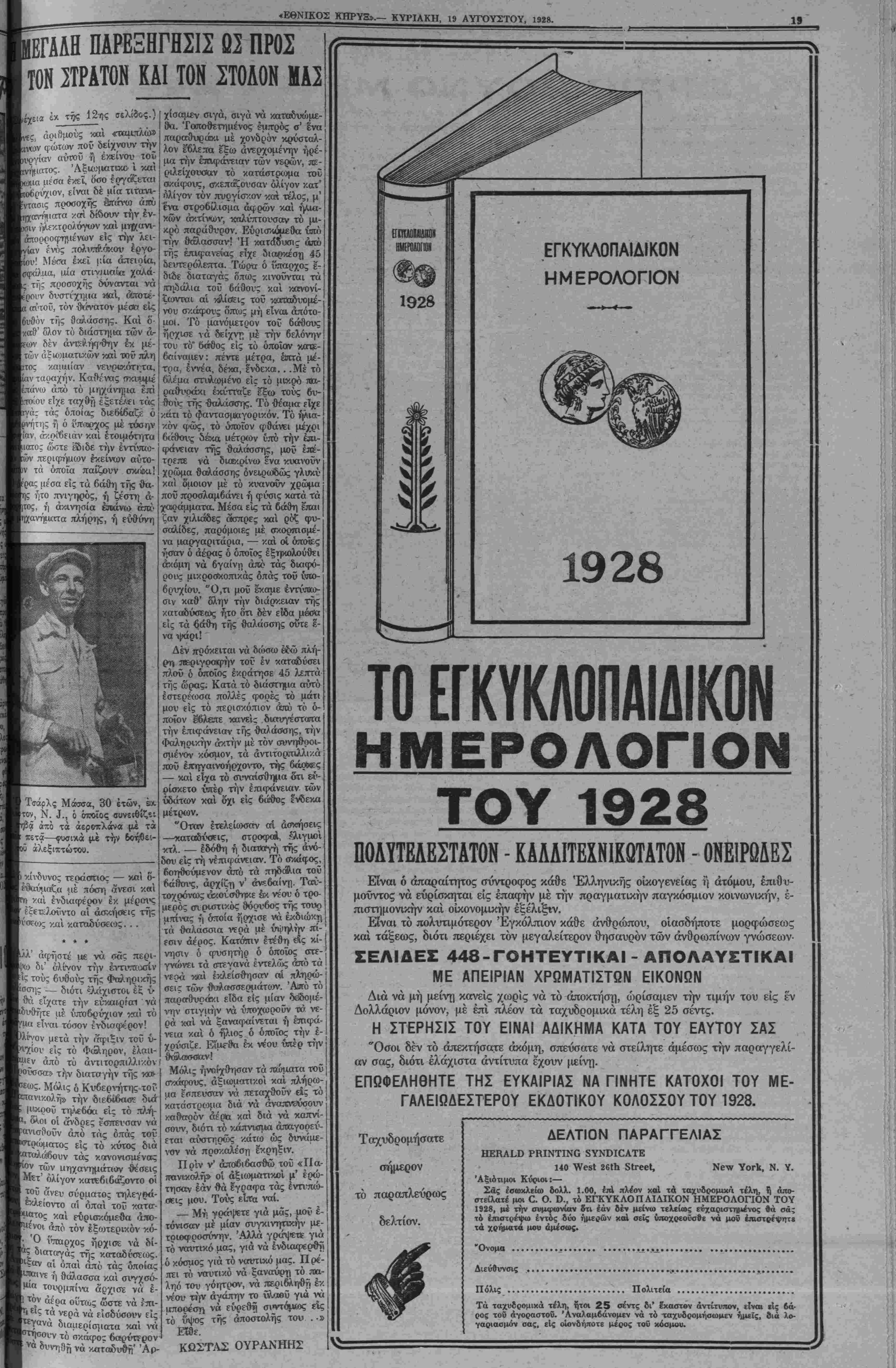 ΝΕΥν7 ΥΟΚΚ, ΚΥΡΙΑΚΗ, 19 ΑΥΙΌΥΣΤΟΥ, 1928.