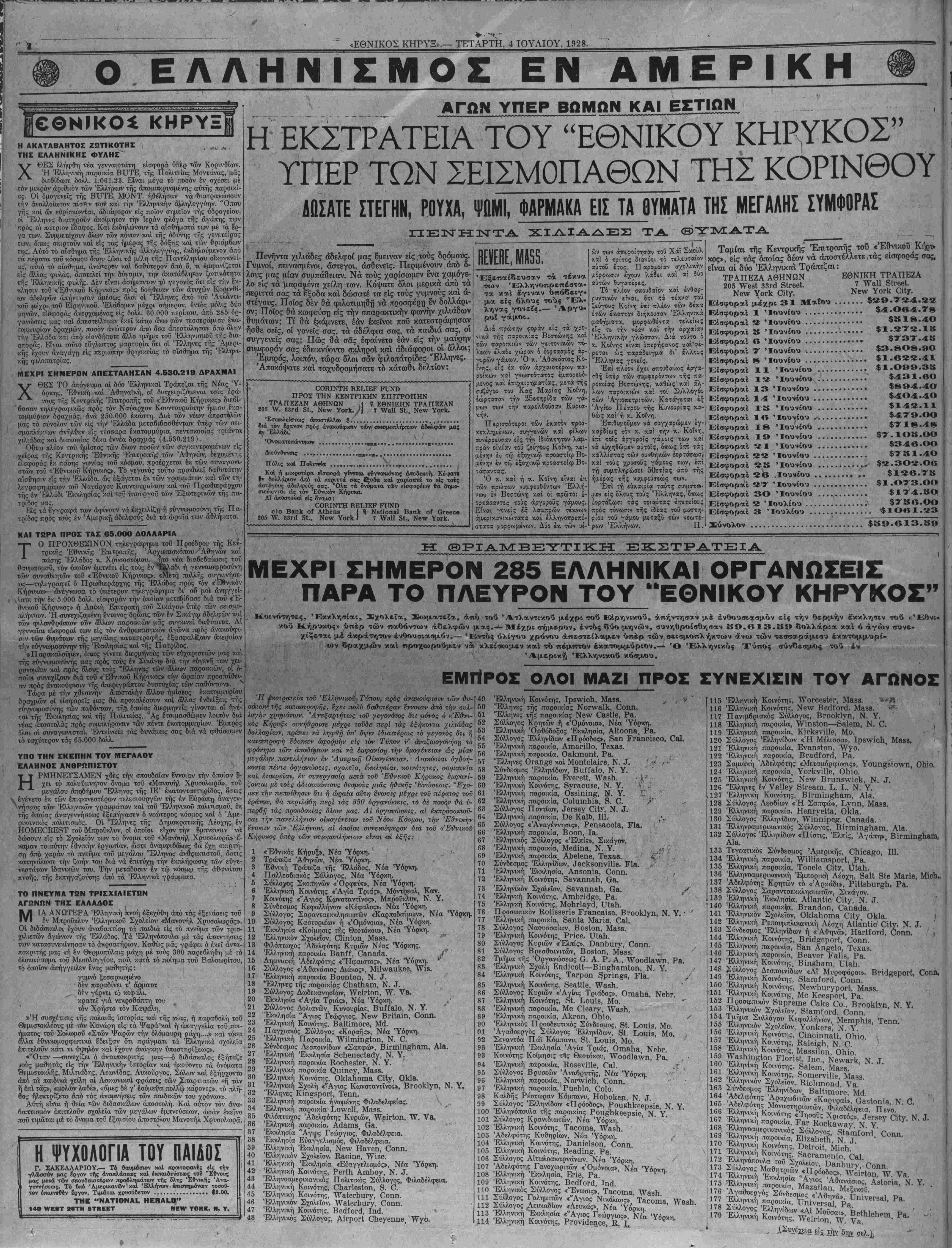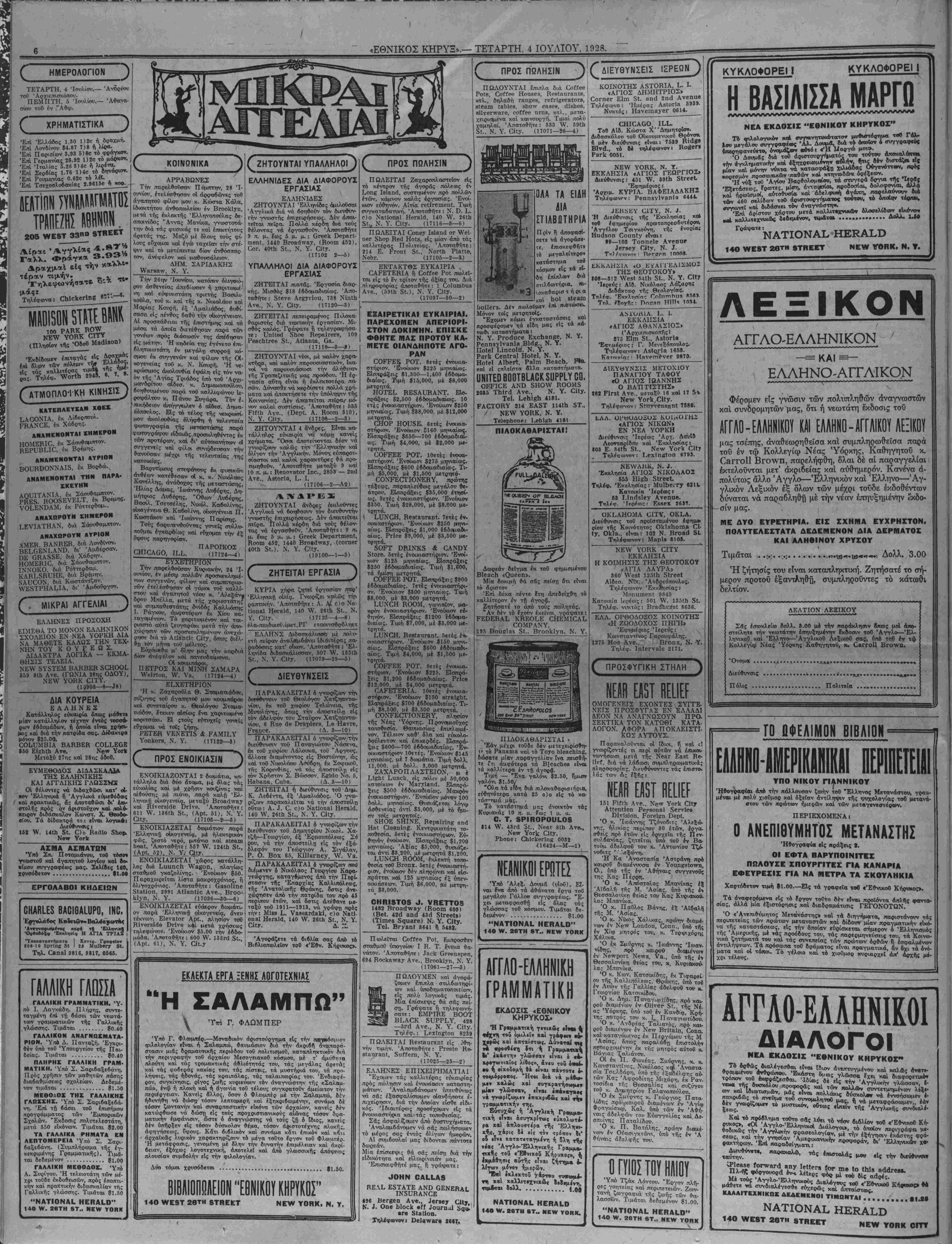 ΝΕΥ ΥΟΚΚ, ΤΕΤΆΡΤΗ, 4 ΙΟΥΛΙΟΥ, 1928.