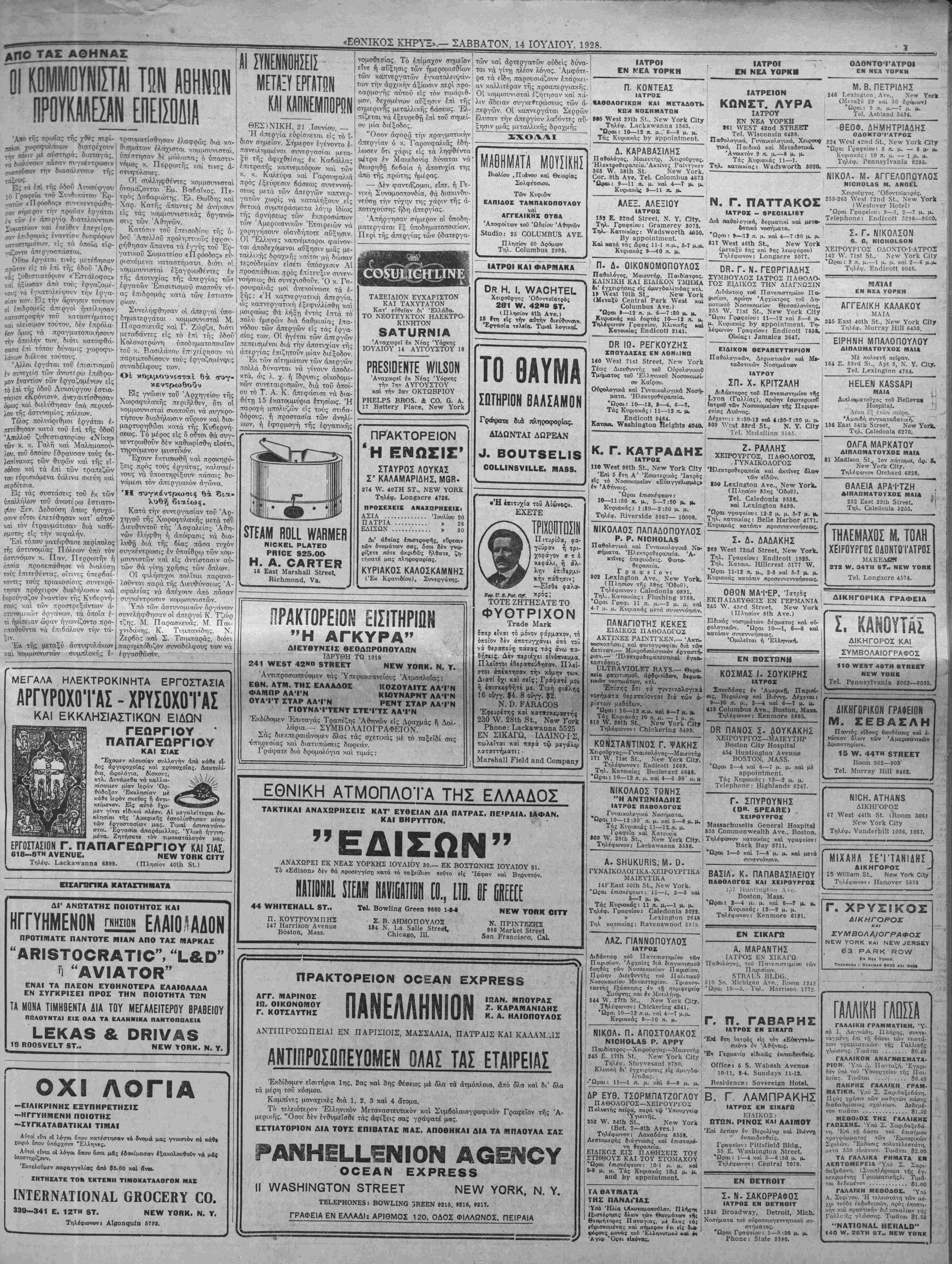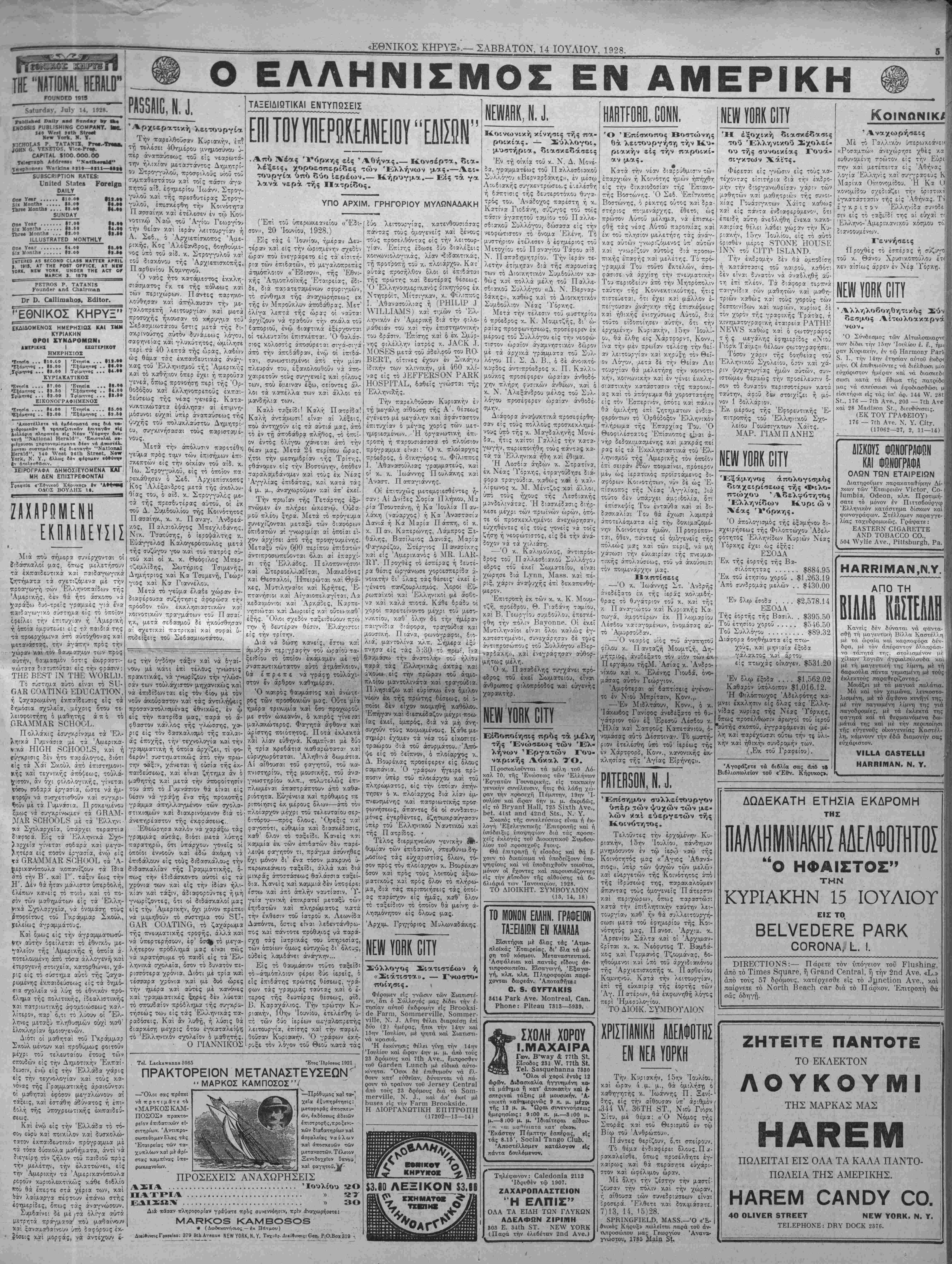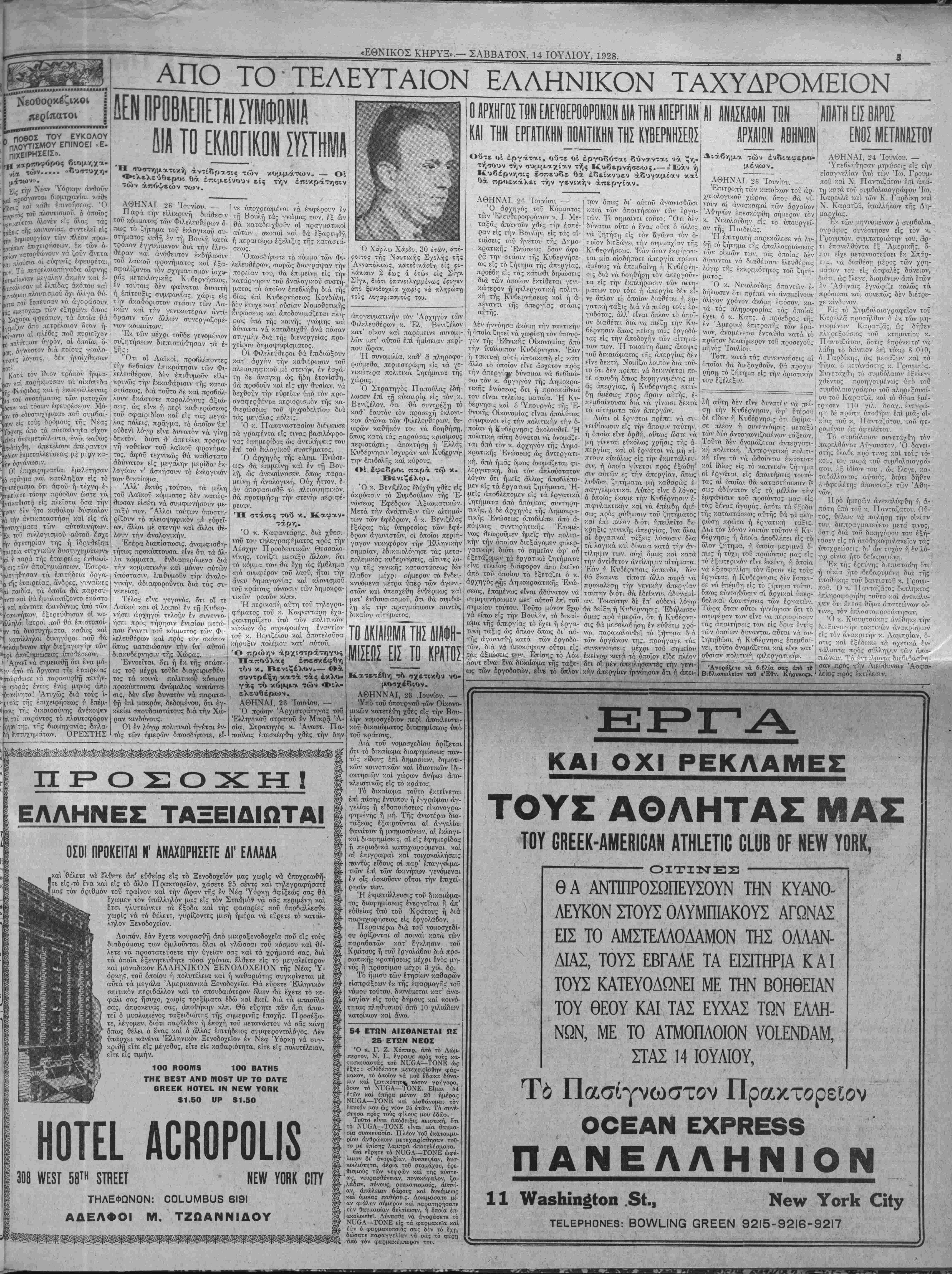 ΝΕ¥ ΥΟΚΚ, ΣΑΒΒΑΤΟΝ, 14 ΙΟΥΛΙΟΥ, 1928.