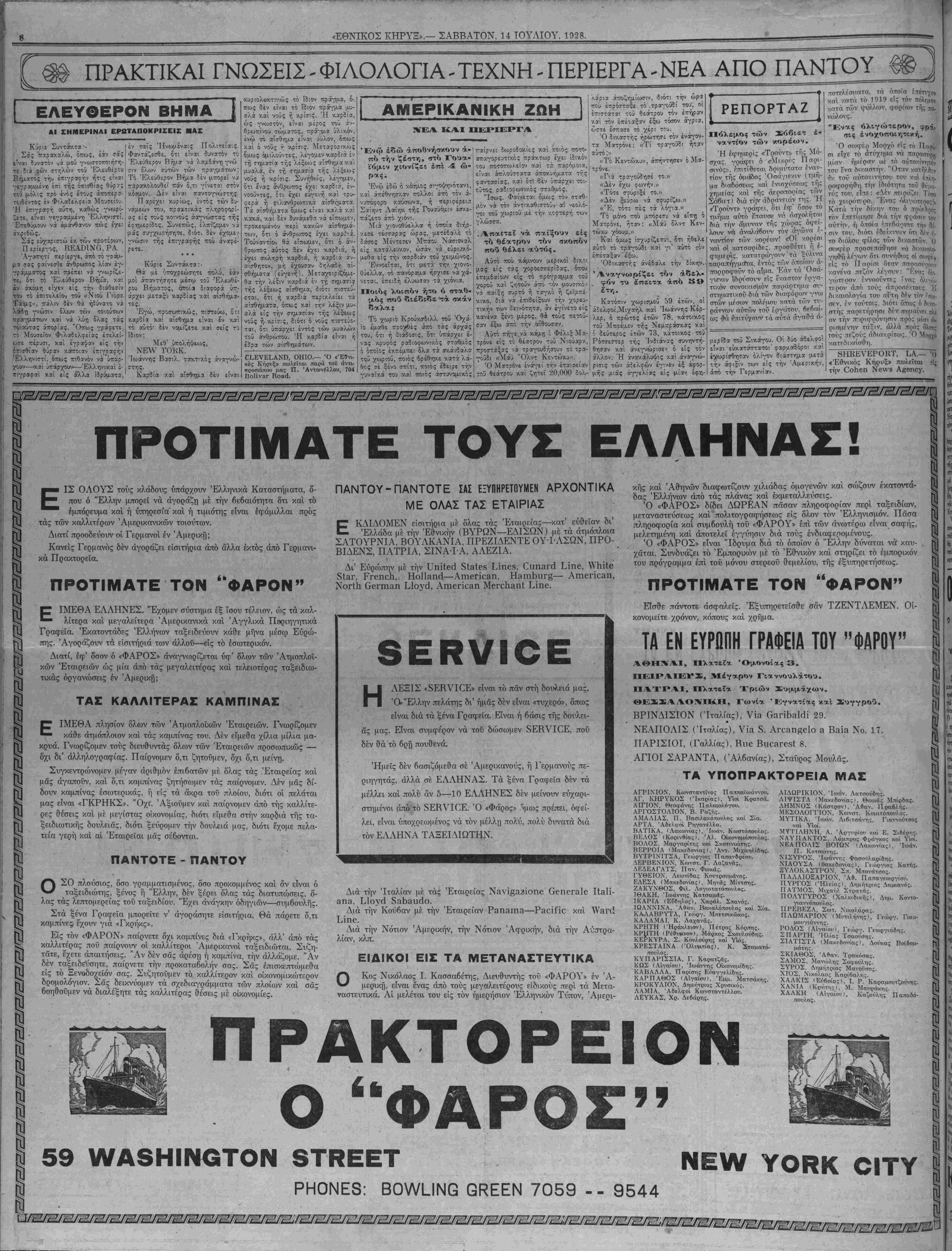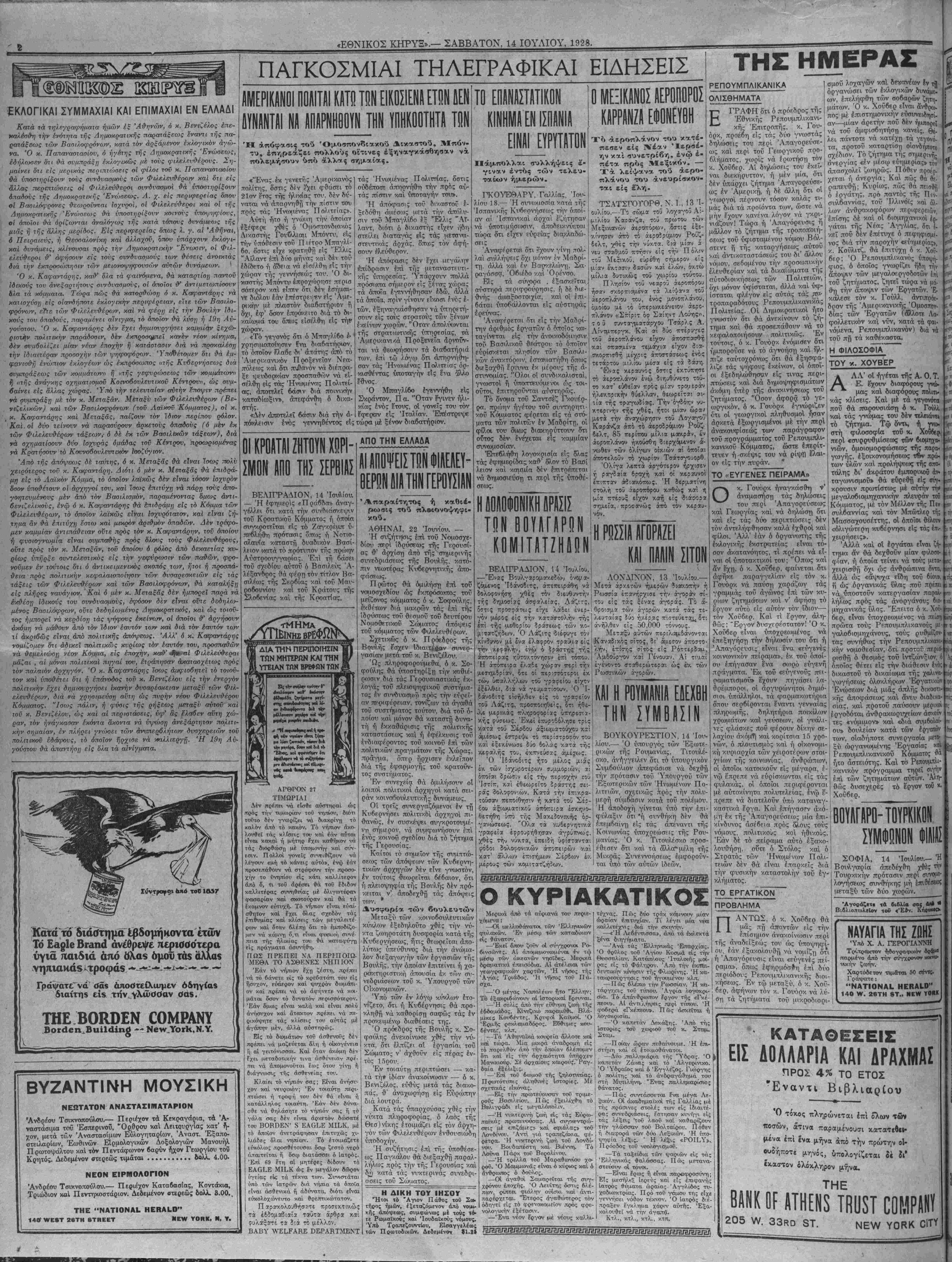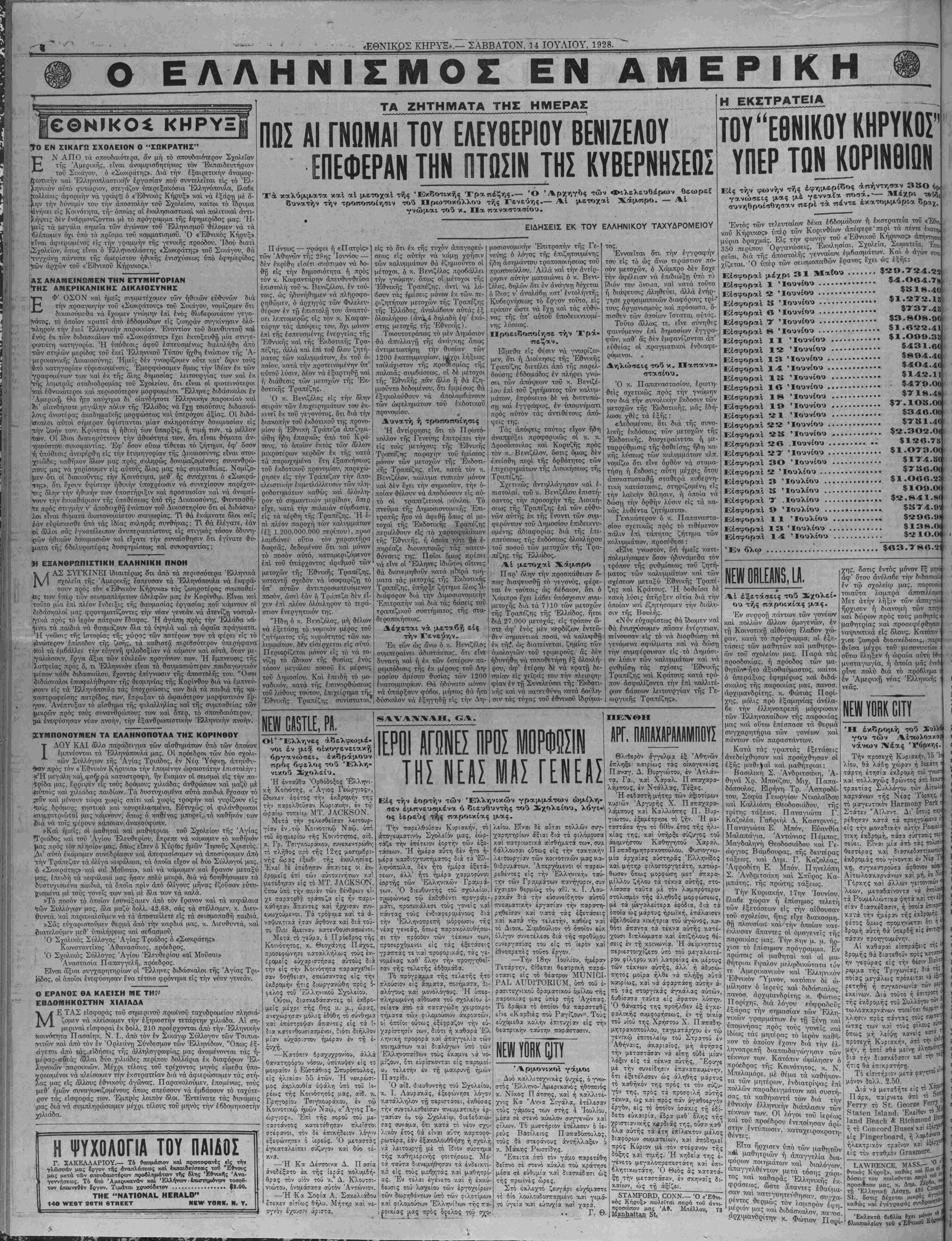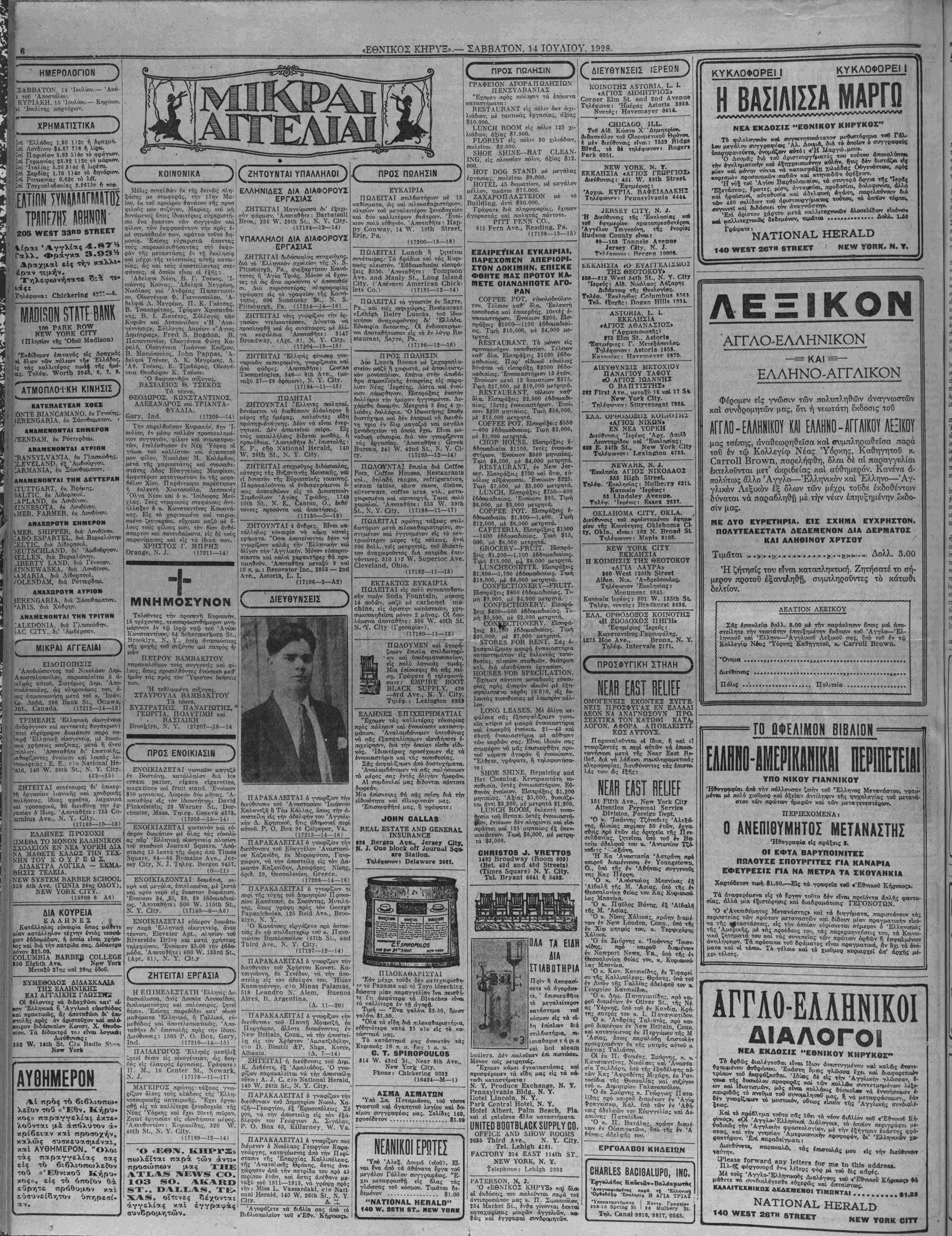 ΝΕ¥ ΥΟΚΚ, ΣΑΒΒΑΤΟΝ, 14 ΙΟΥΛΙΟΥ, 1928.