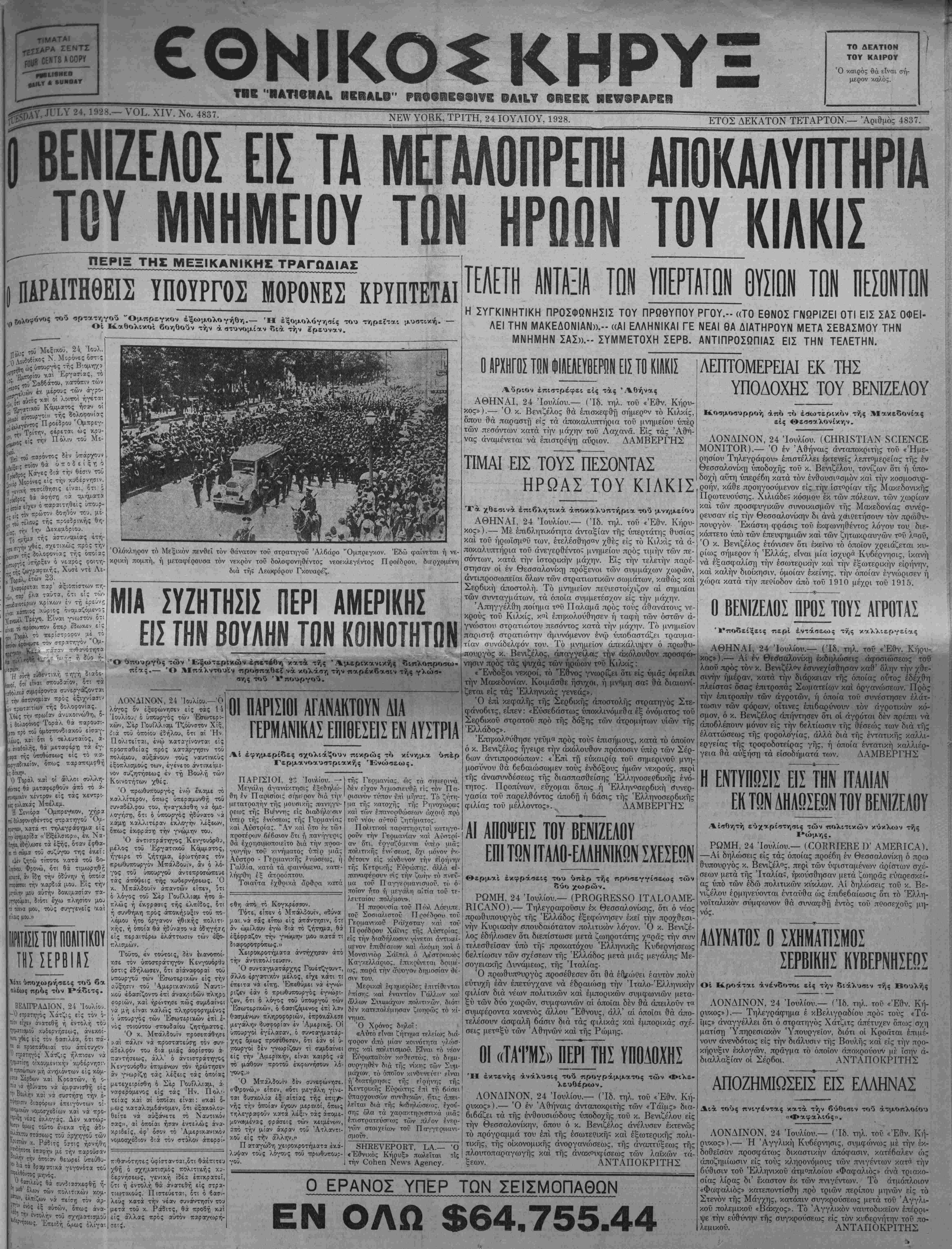 ΝΕΥ ΥΟΚΚ, ΤΡΙΤΗ, 24 ΙΟΥΛΙΟΥ. 1928.
