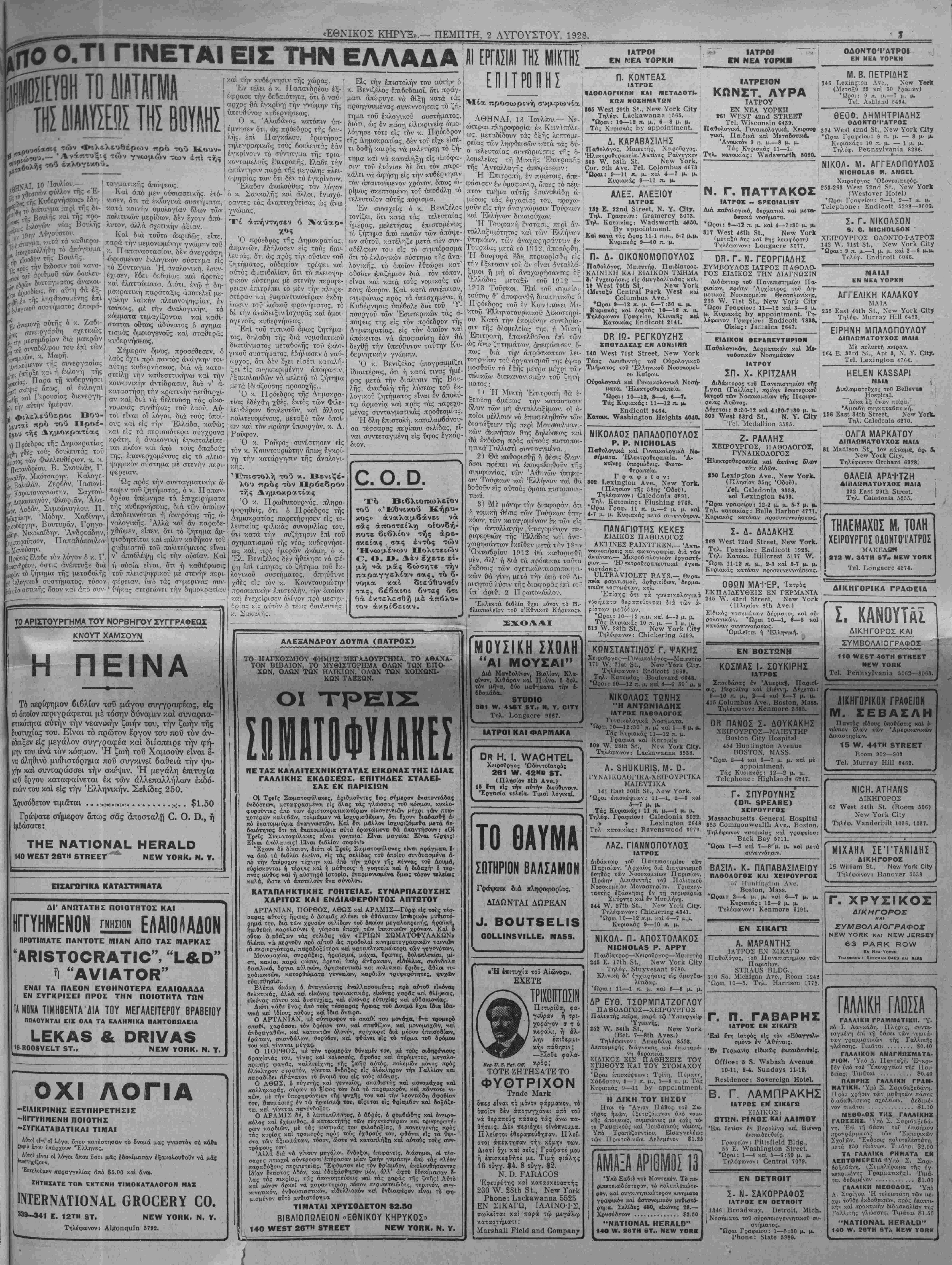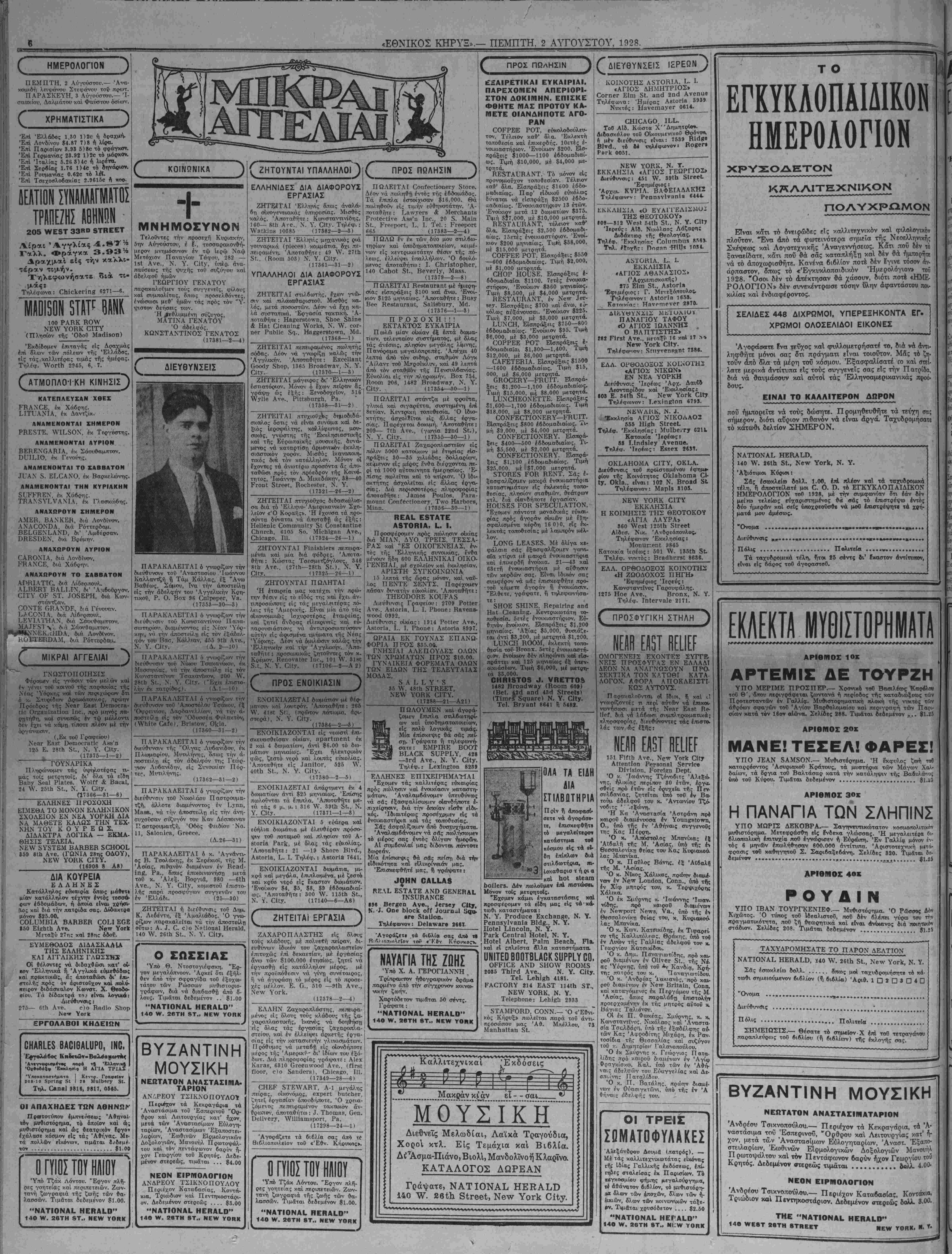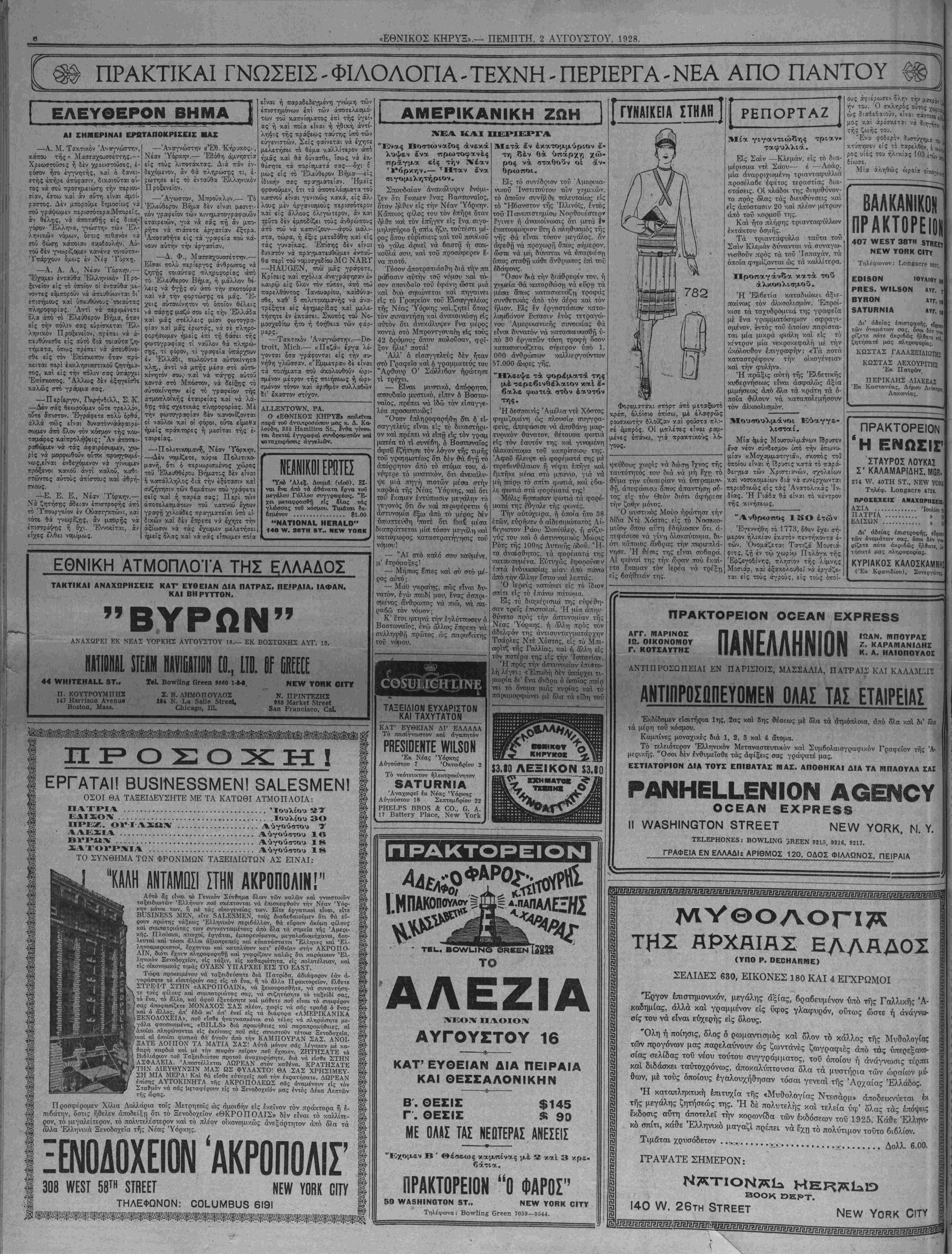 ΝΕν ΥΟΒ& ΠΕΜΠΤΗ, 2 ΑΥΓΟΥΣΤΟΥ, 1928.