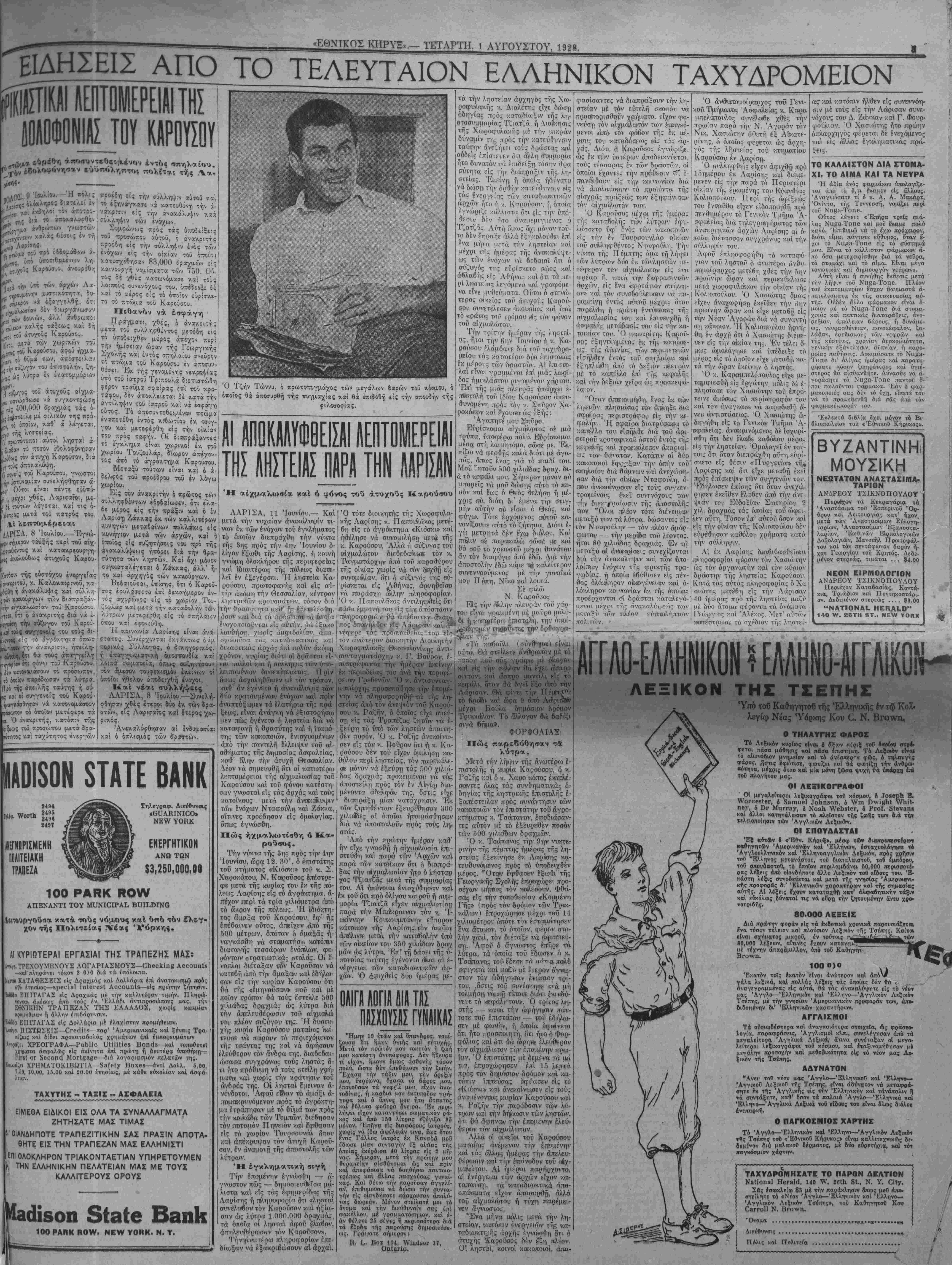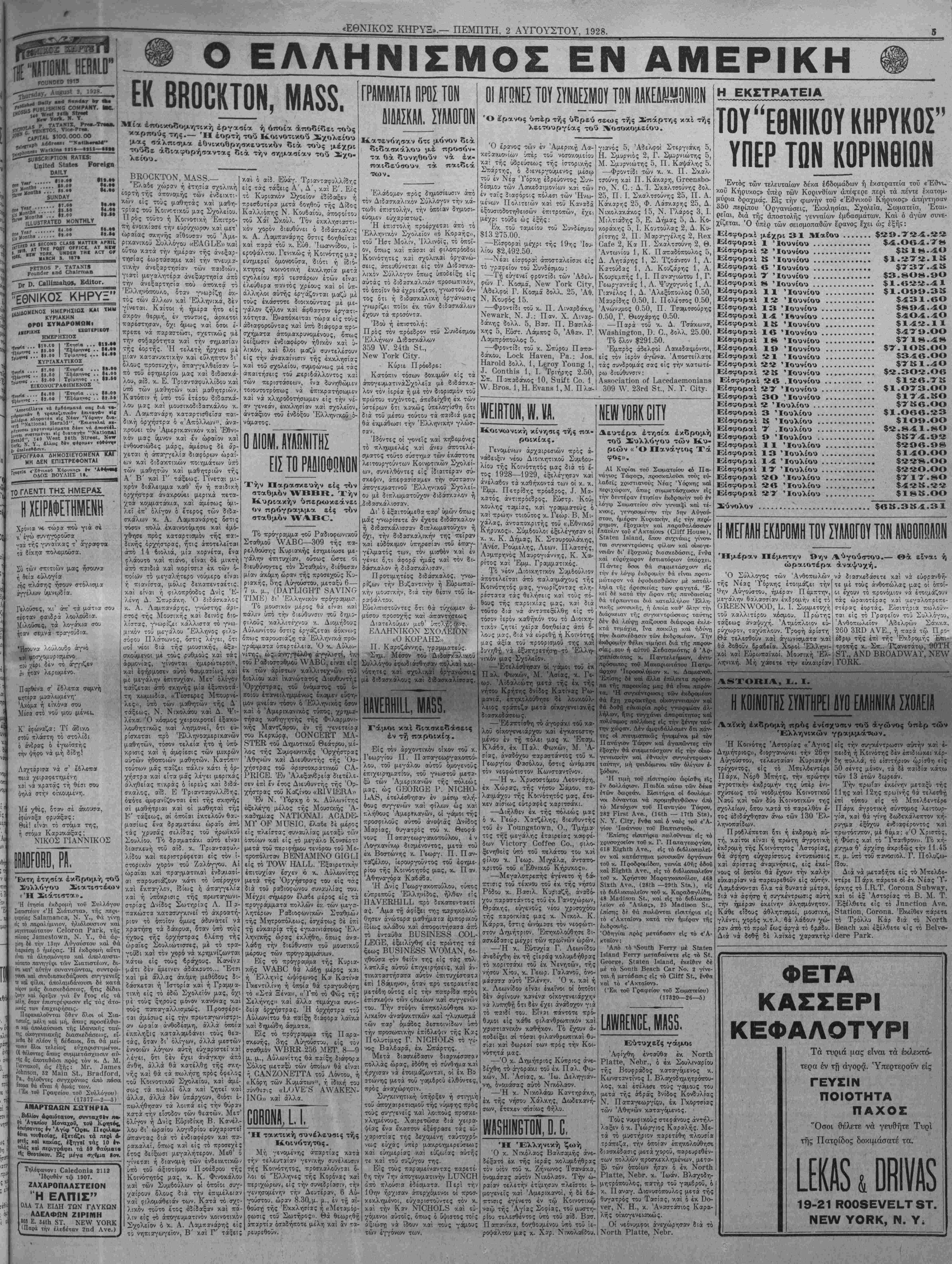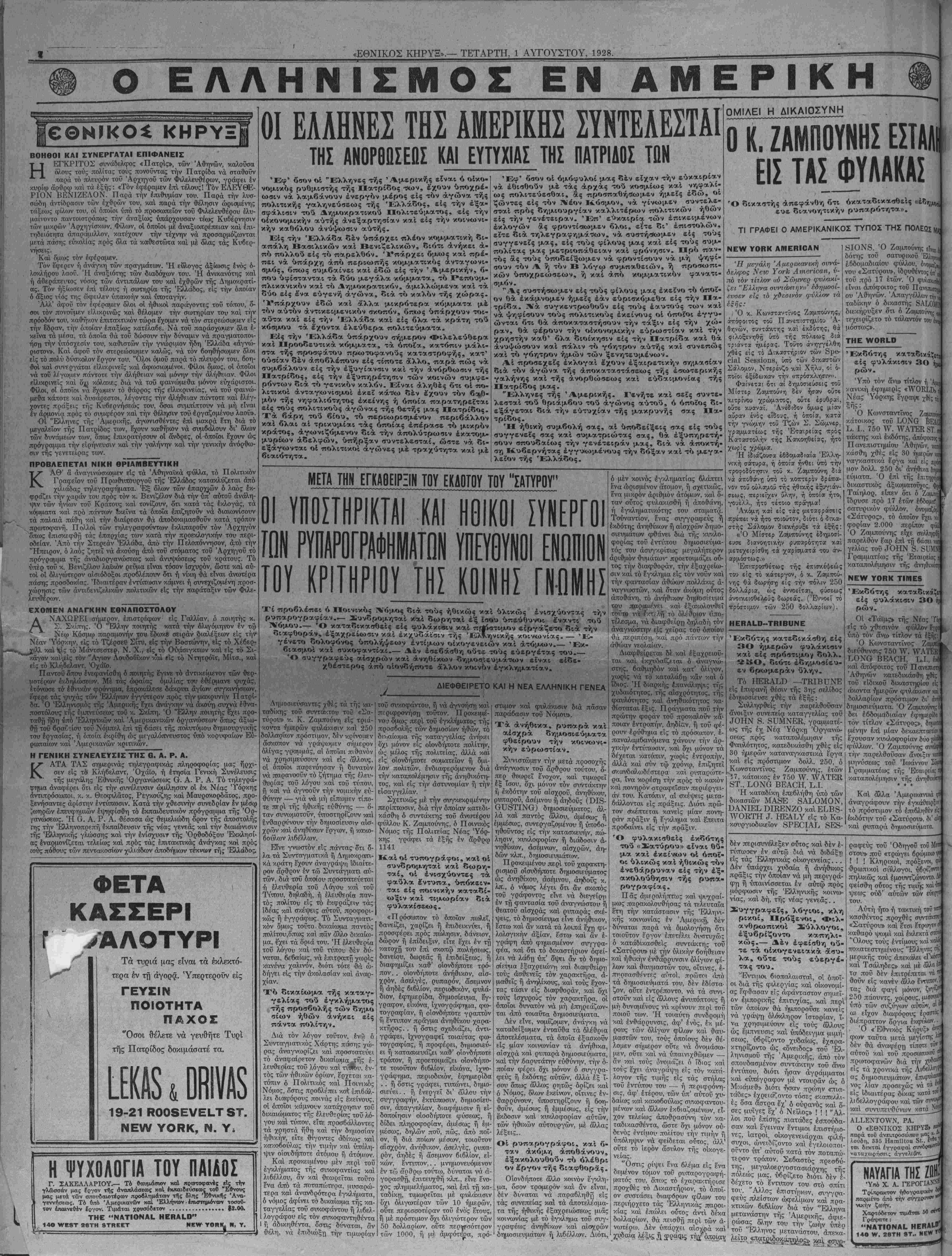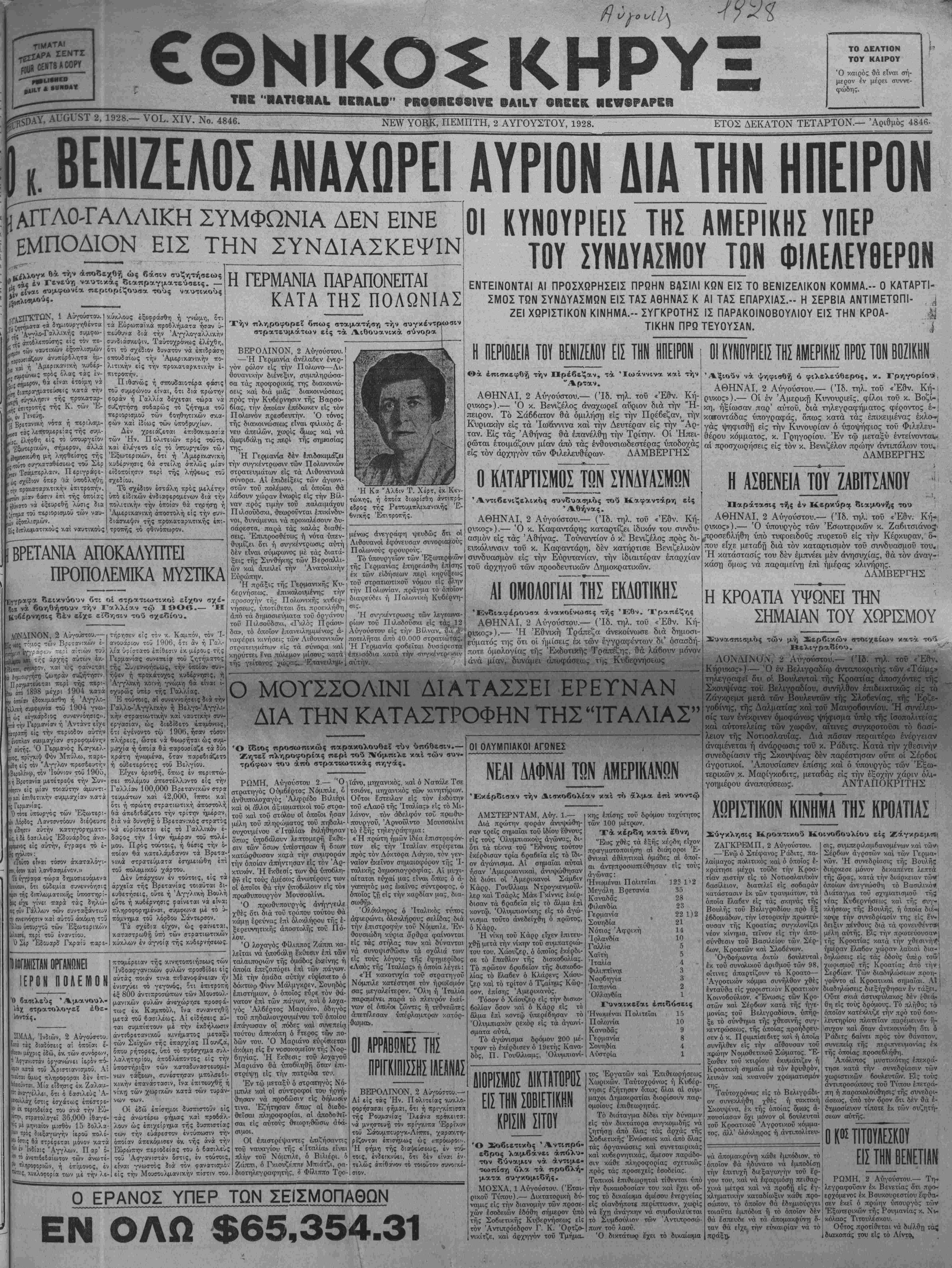 ΝΕν ΥΟΒ& ΠΕΜΠΤΗ, 2 ΑΥΓΟΥΣΤΟΥ, 1928.