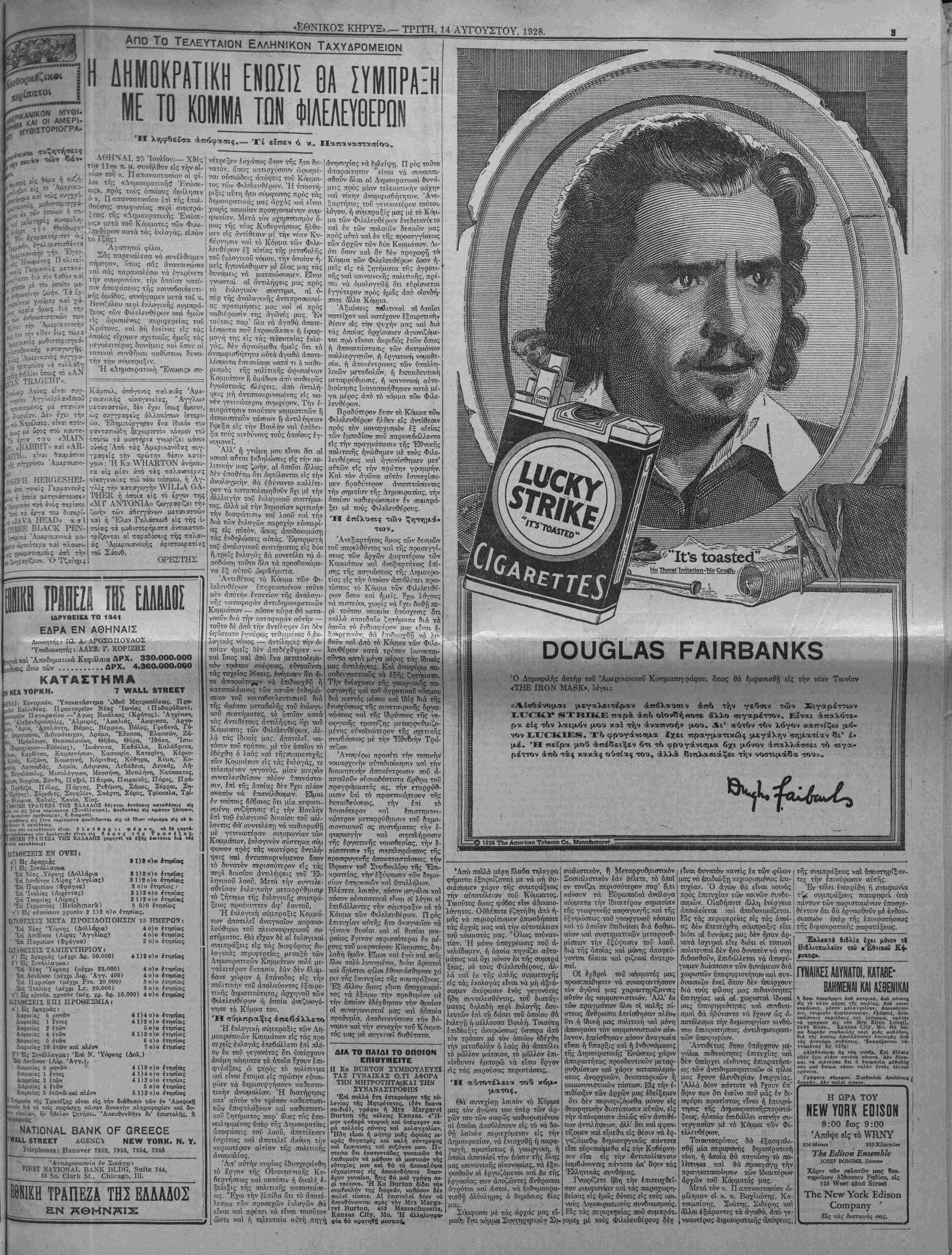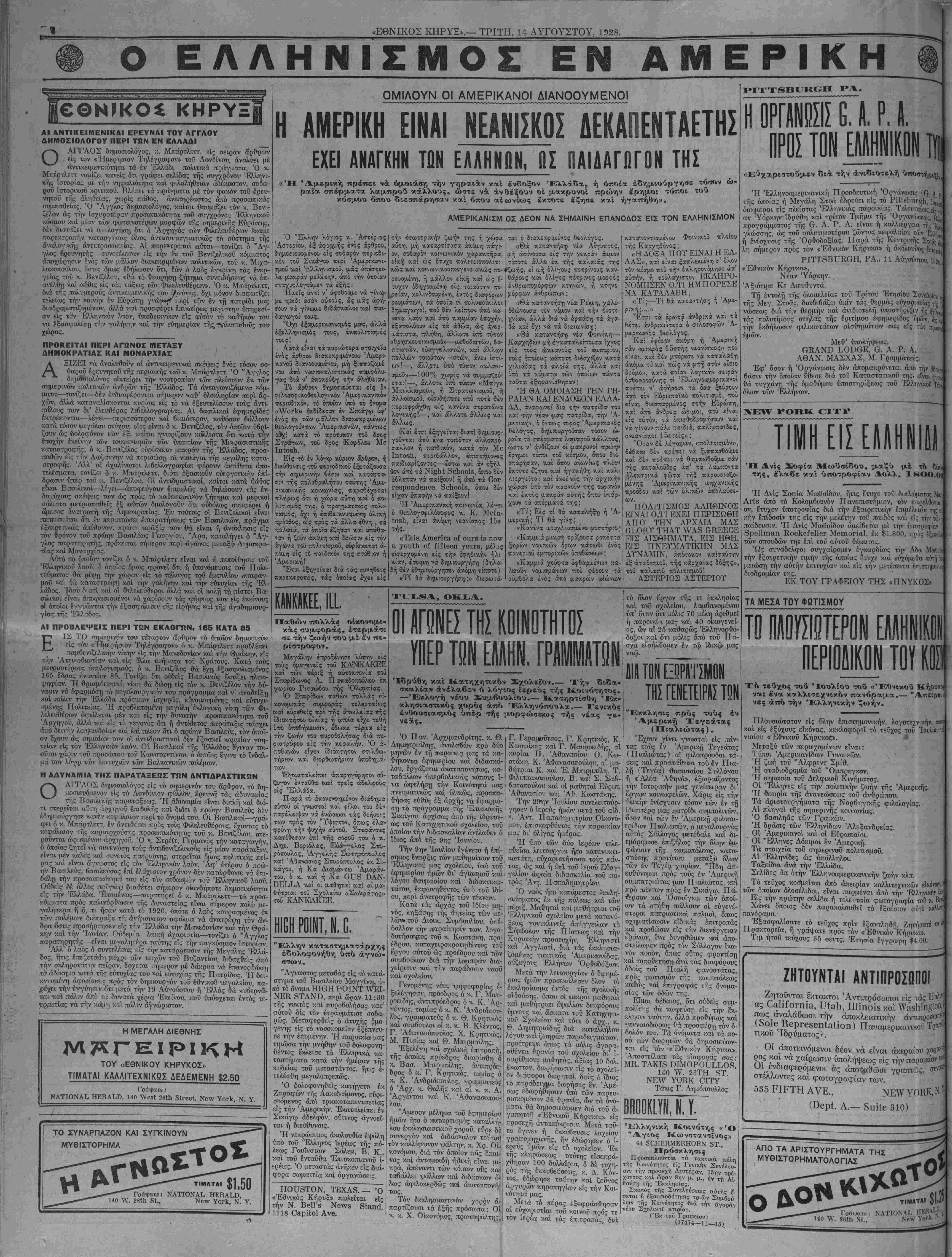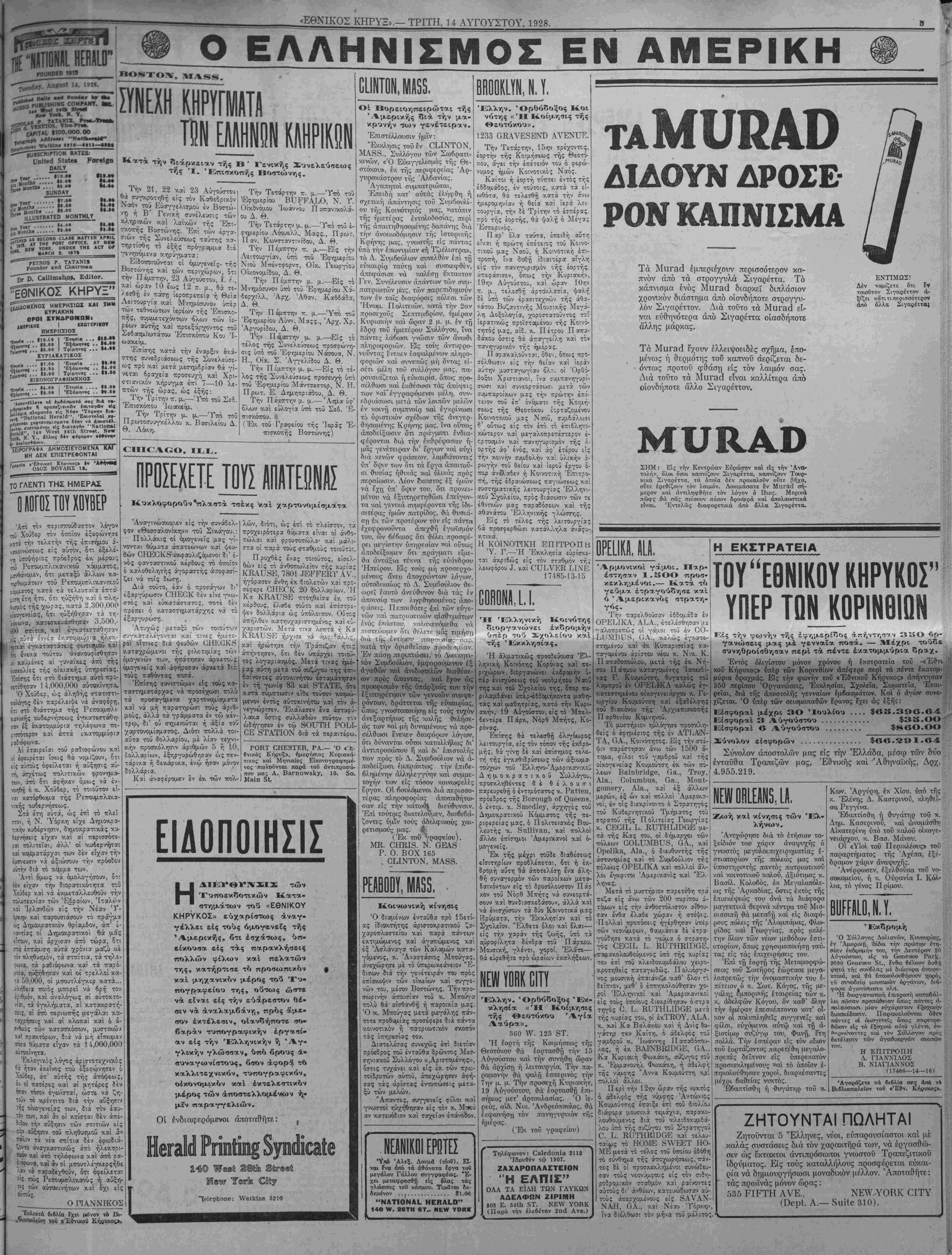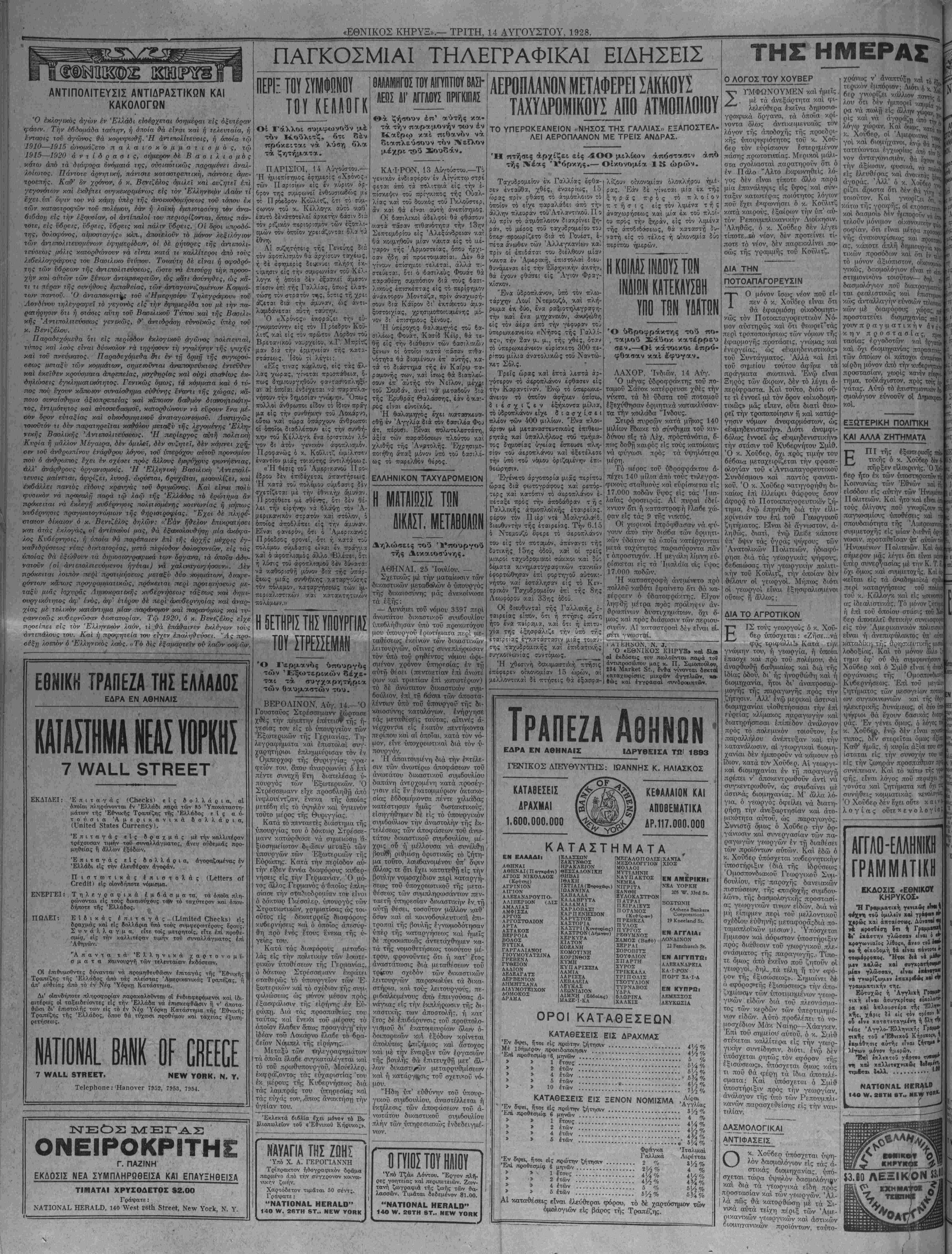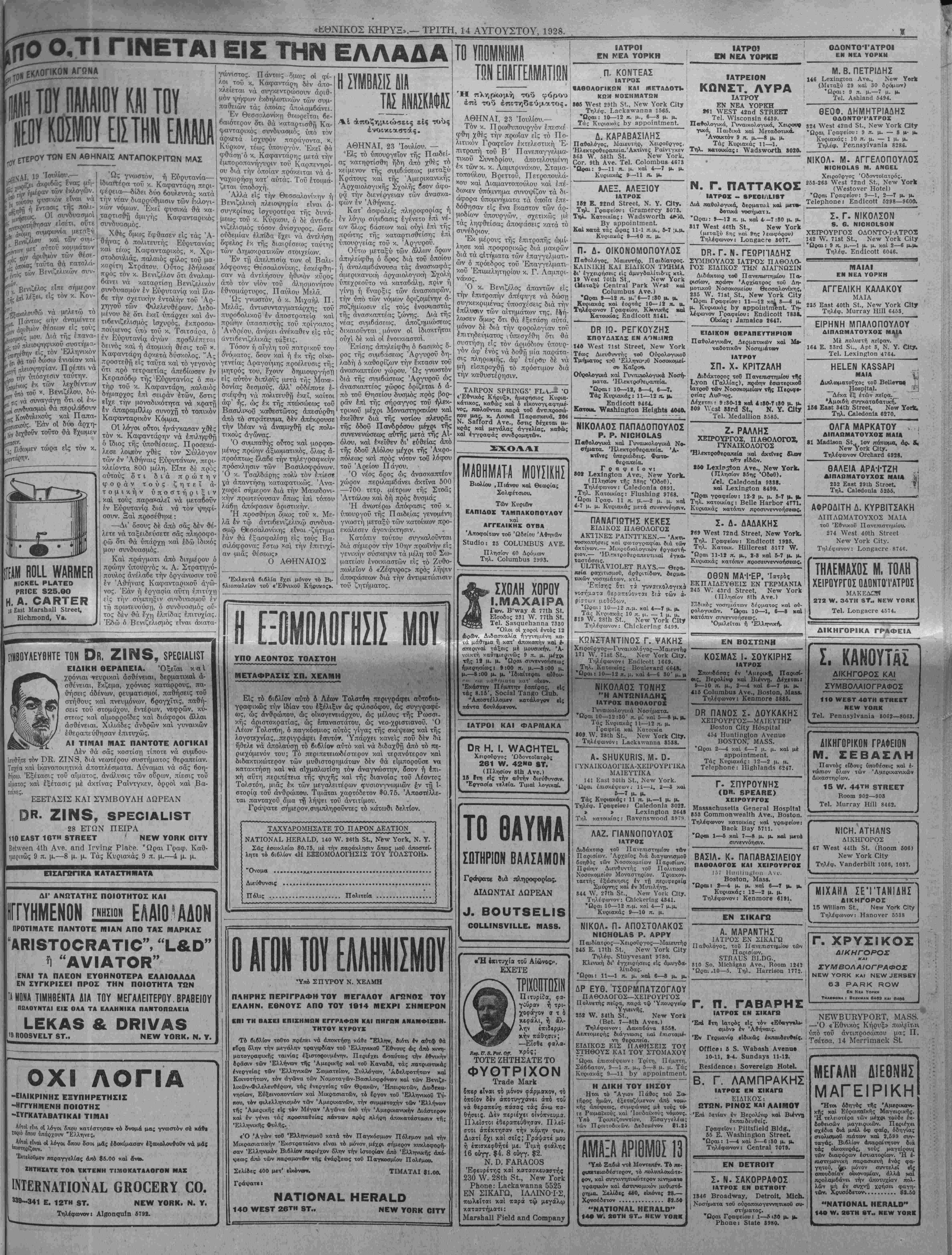 ΝΕλ¥ ΫΟΚΚ, ΤΡΙΤΗ, 14ΤυΤΟΥΣΤΟΥ, 1928.