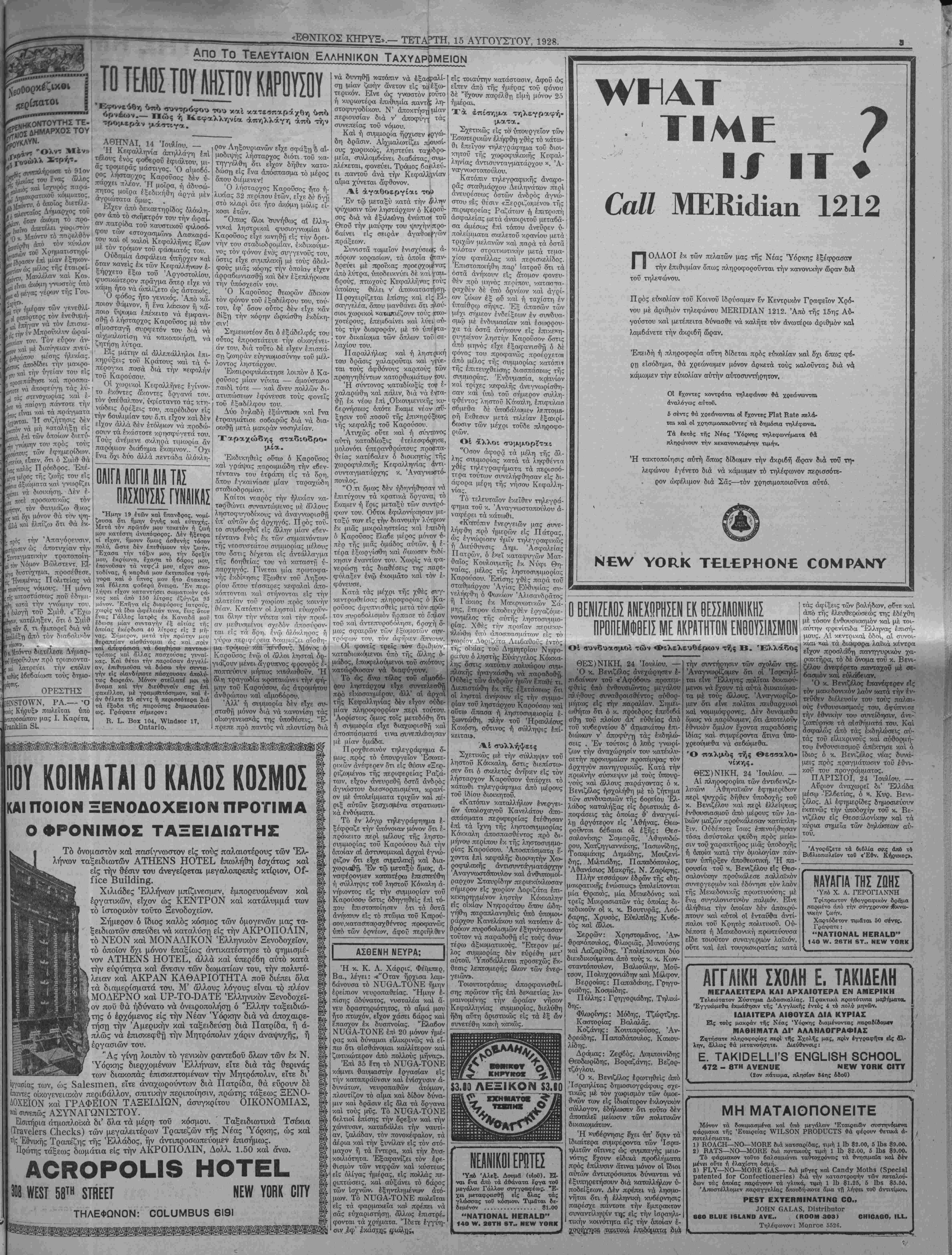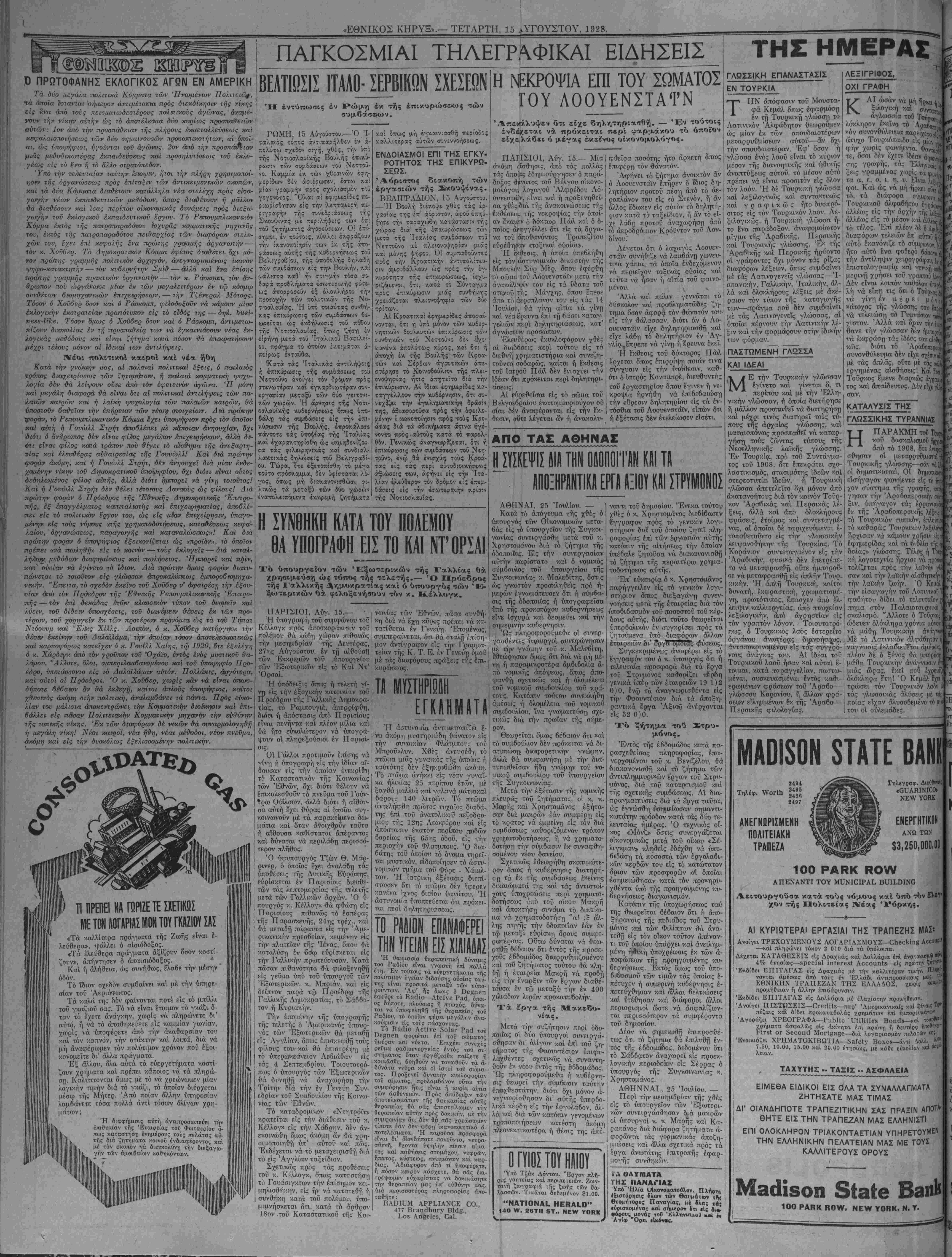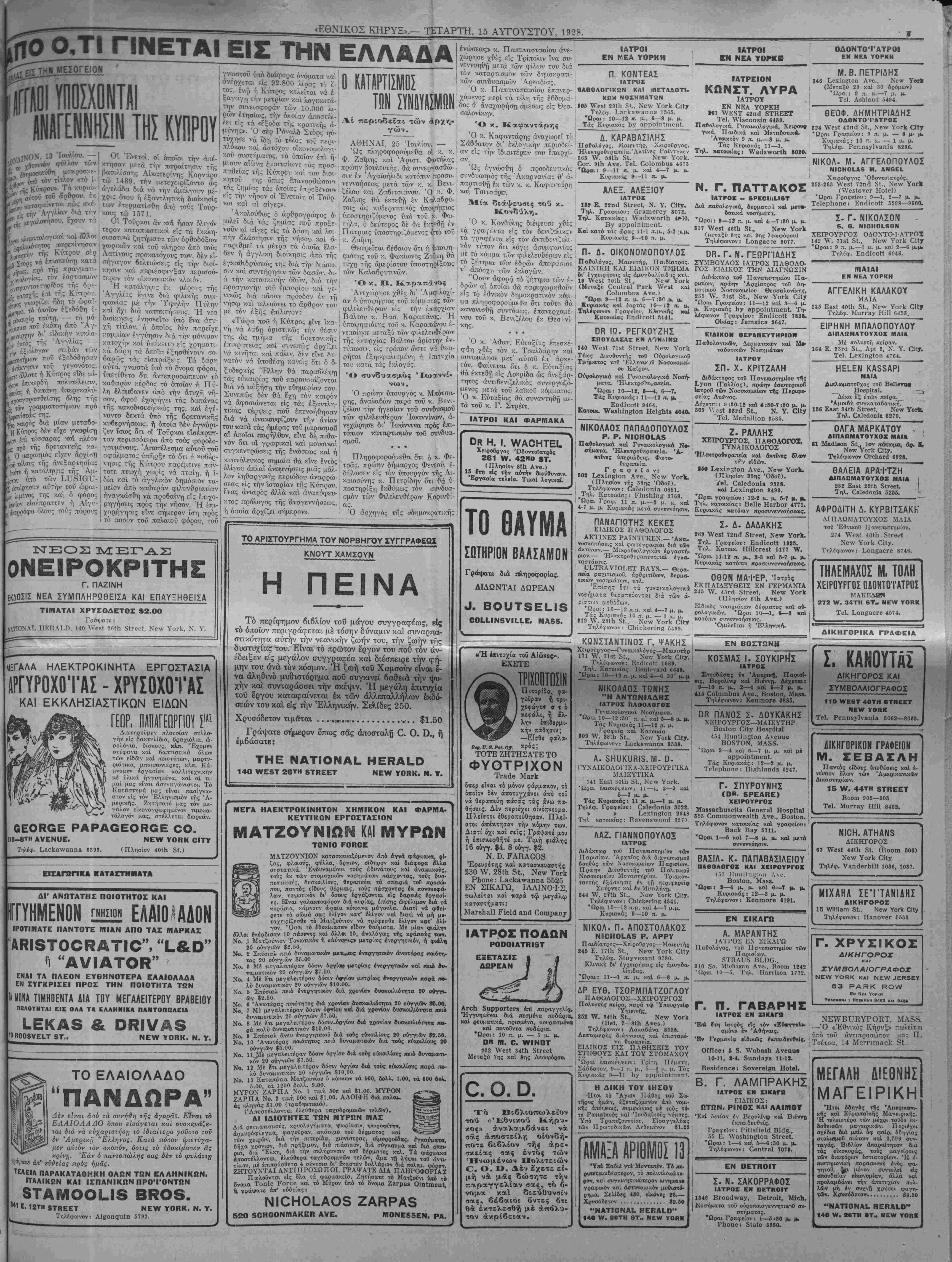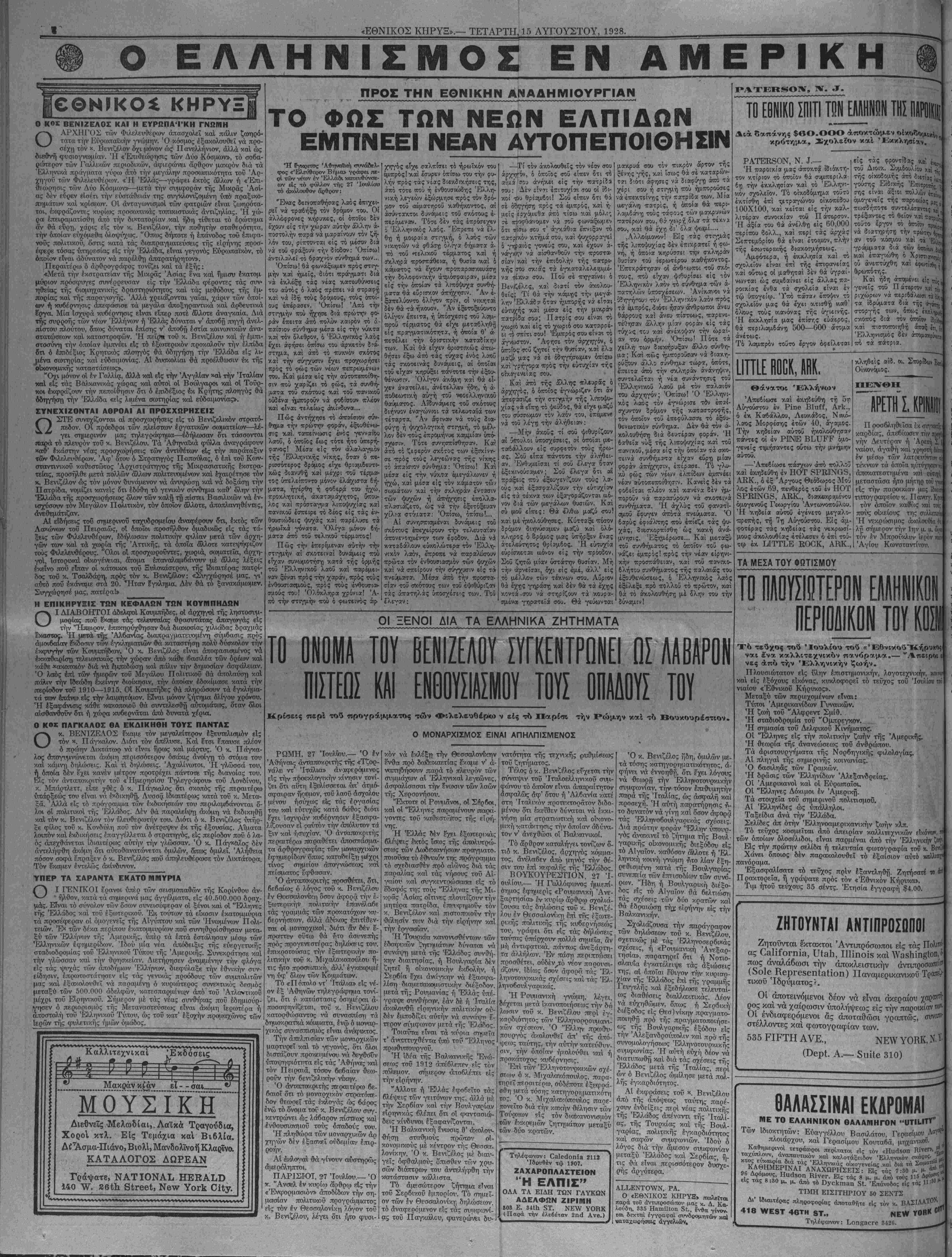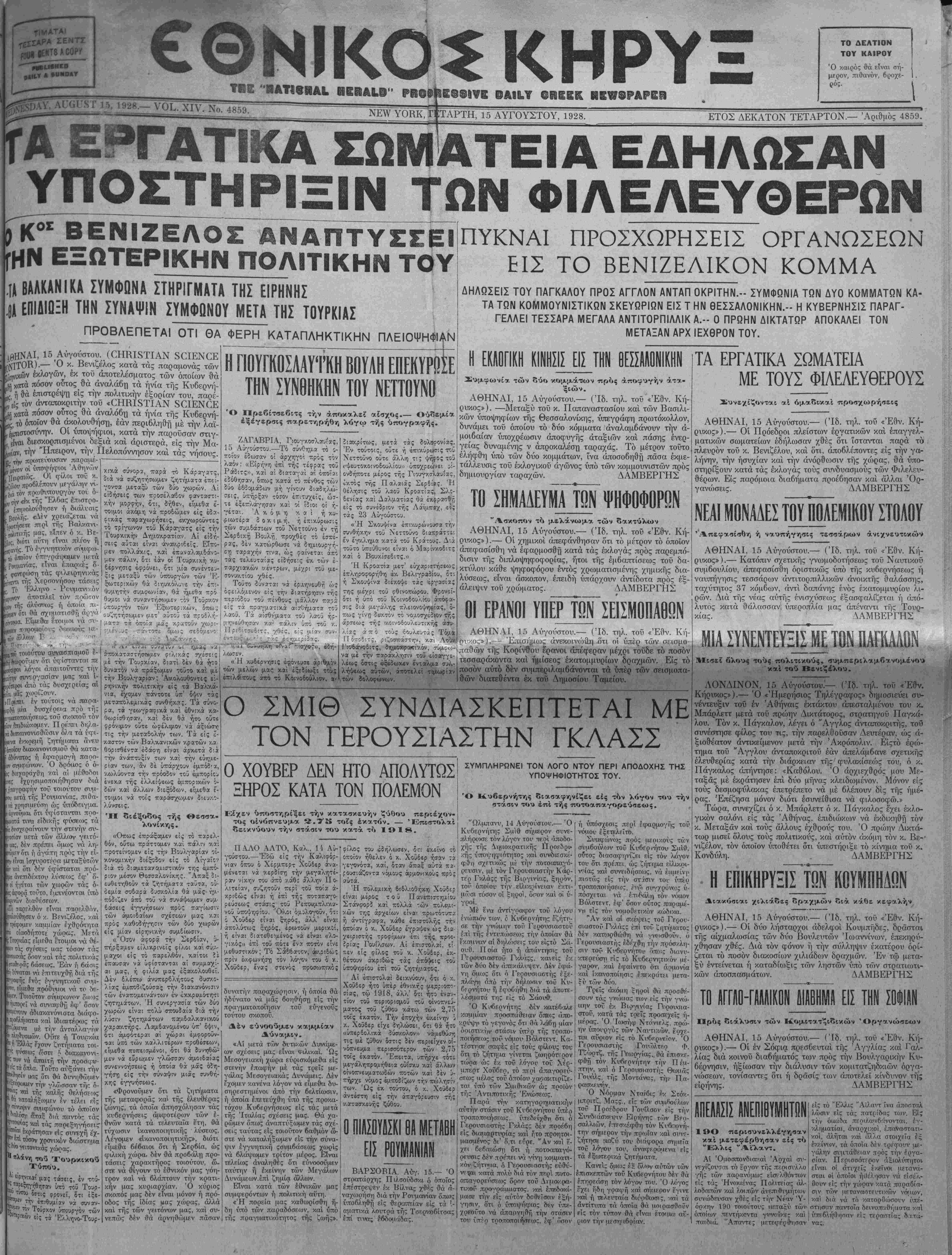 1ΤΑΡΤΗ, 15 ΑΥΓΟΥΣΤΟΥ, 1928.