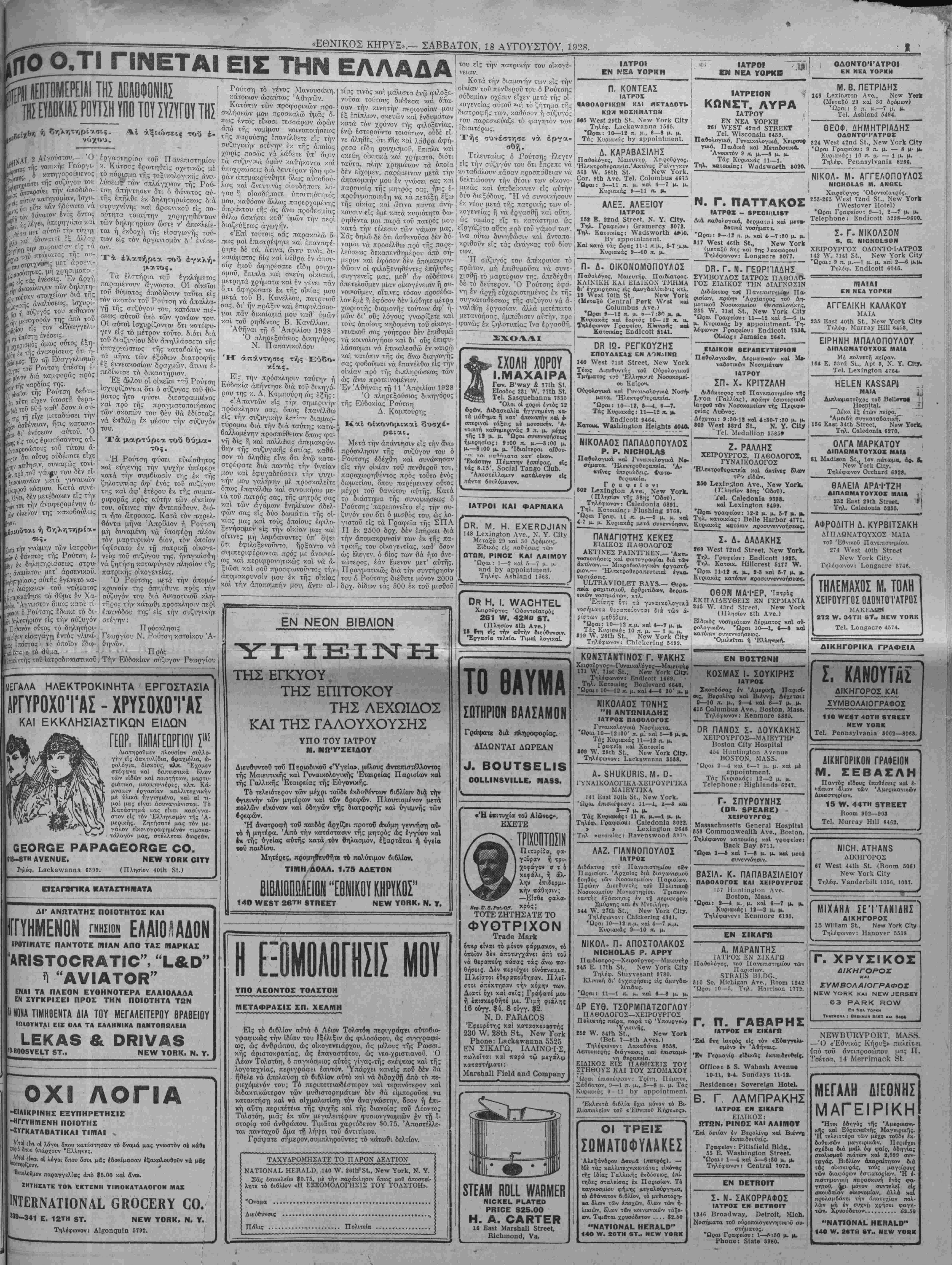 ΝΕΥ ΥΟΚΚΤσΡβΑΤΟΝ, 18 ΑΥΓΟΥΣΤΟΥ, 1928.
