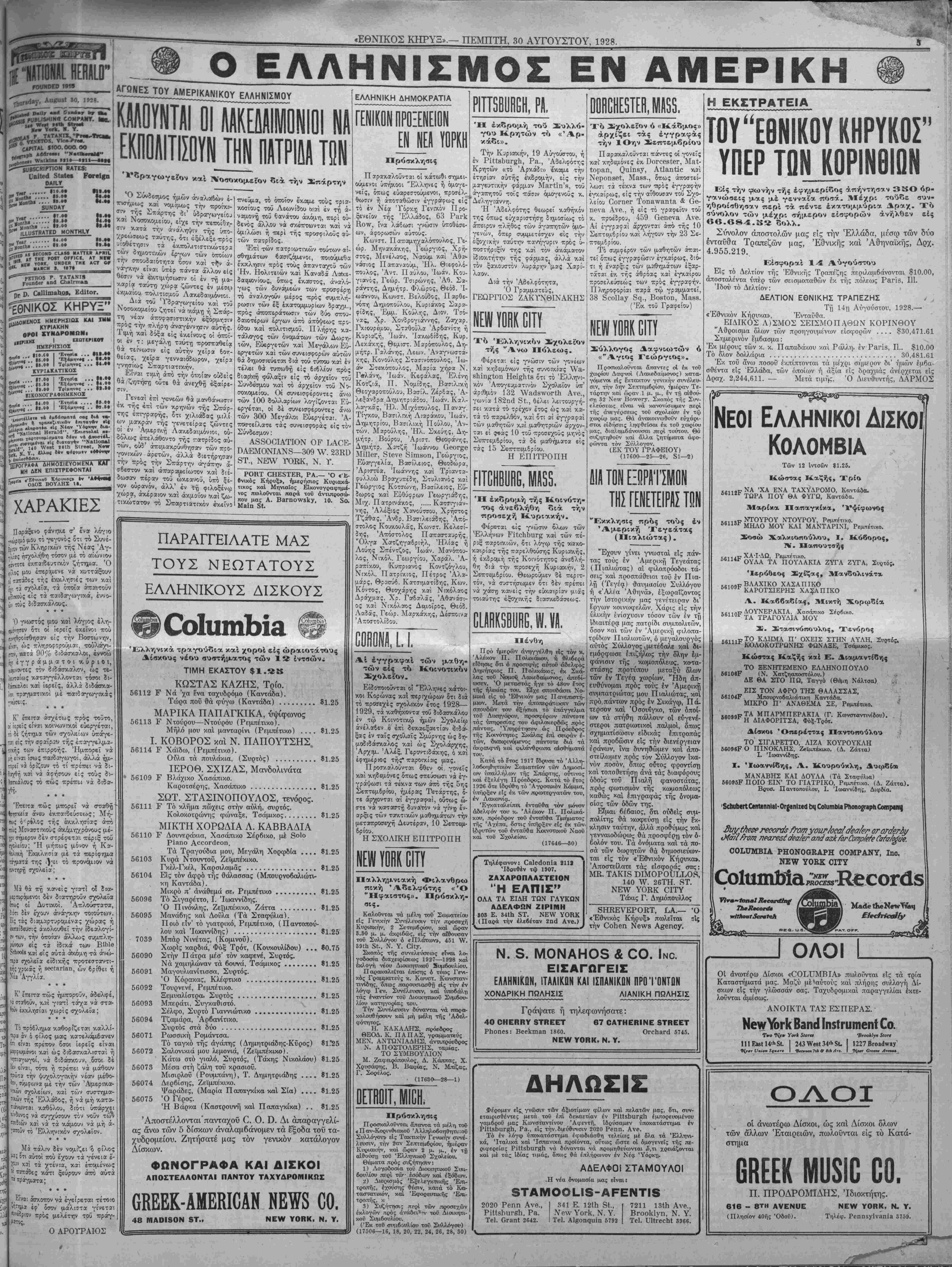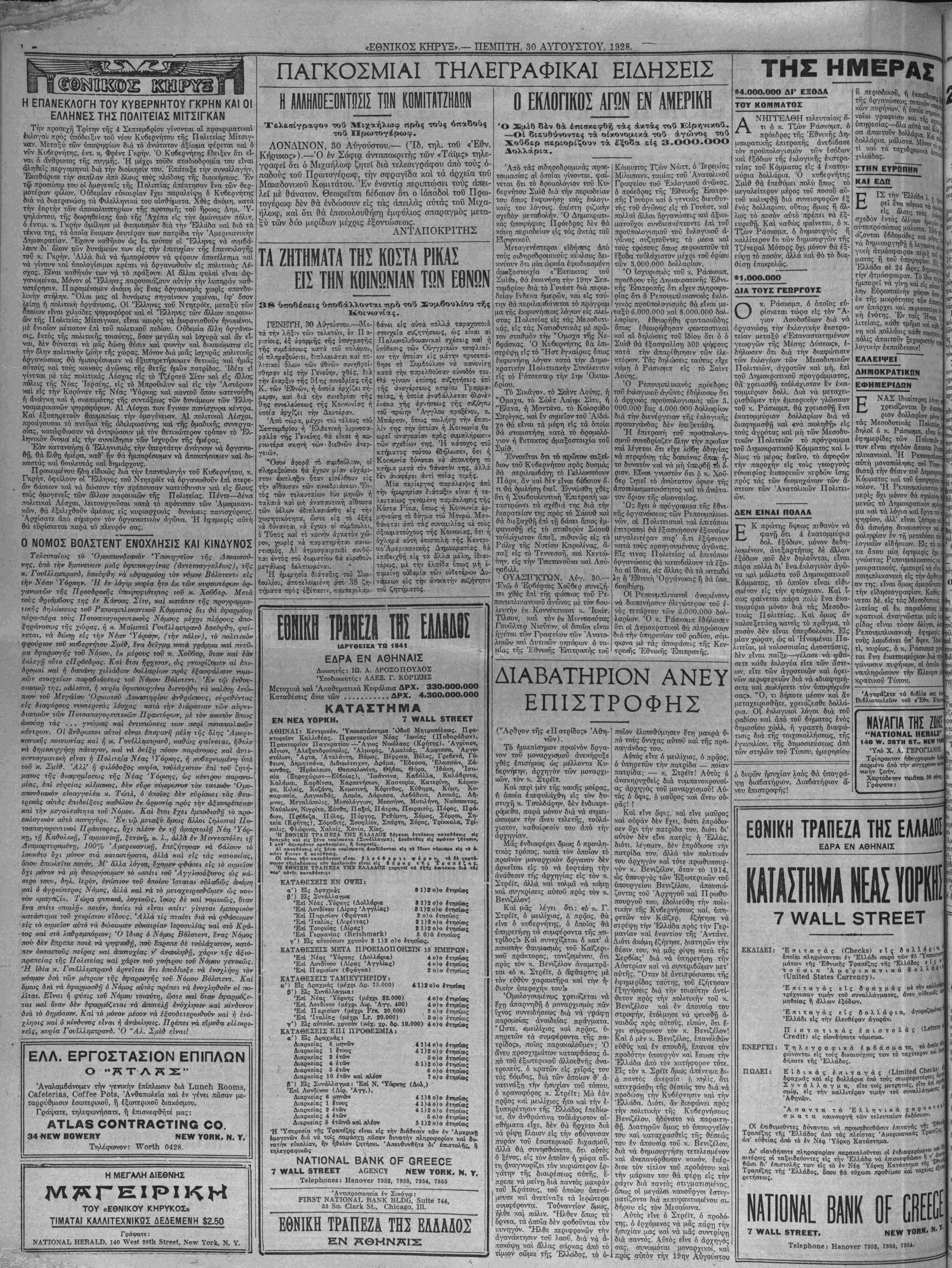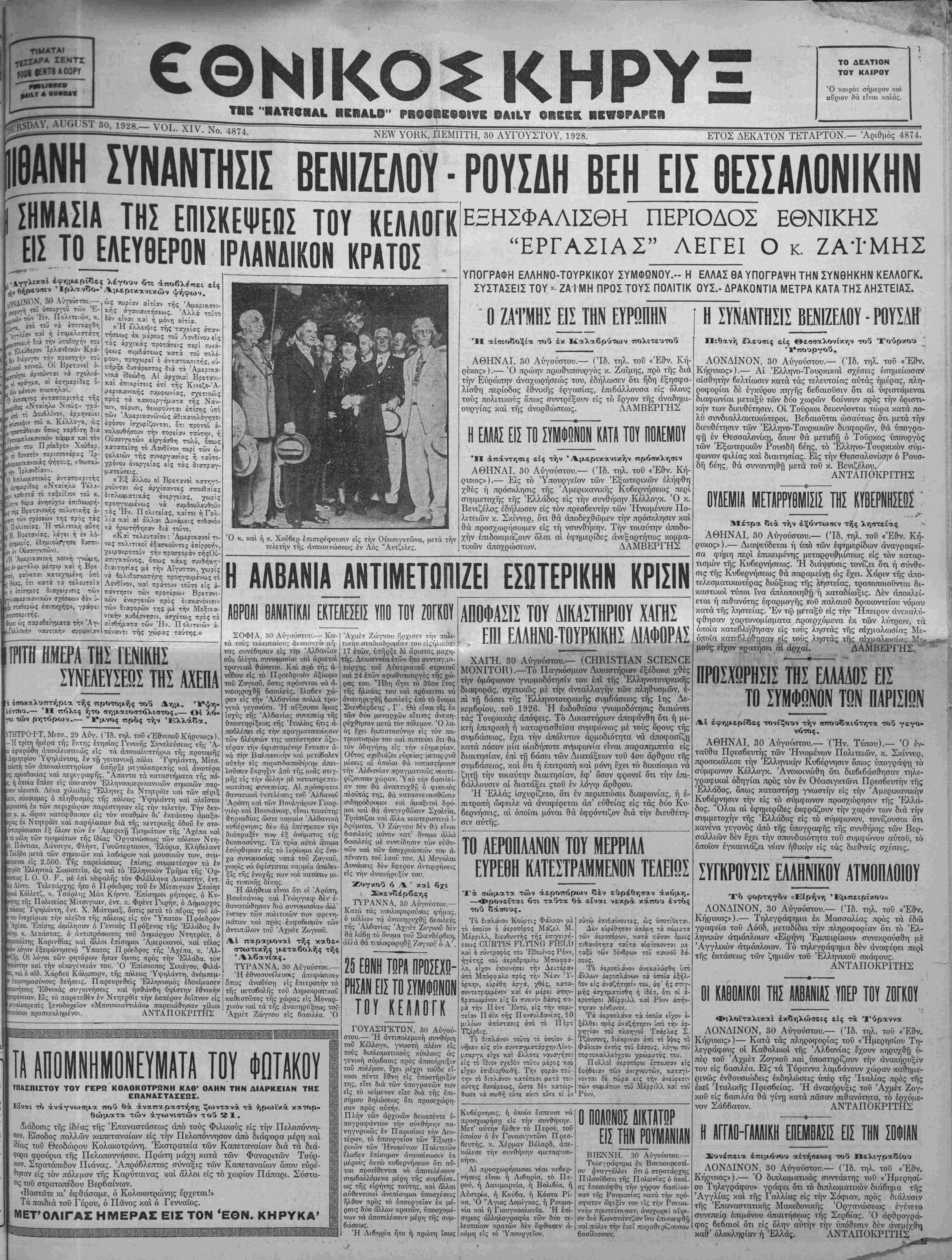 ΝΕΥΥ ΥΟΒ.Κ, ΠΕΜΠΤΗ, 30 ΑΥΓΟΥΣΤΟΥ, 1928.