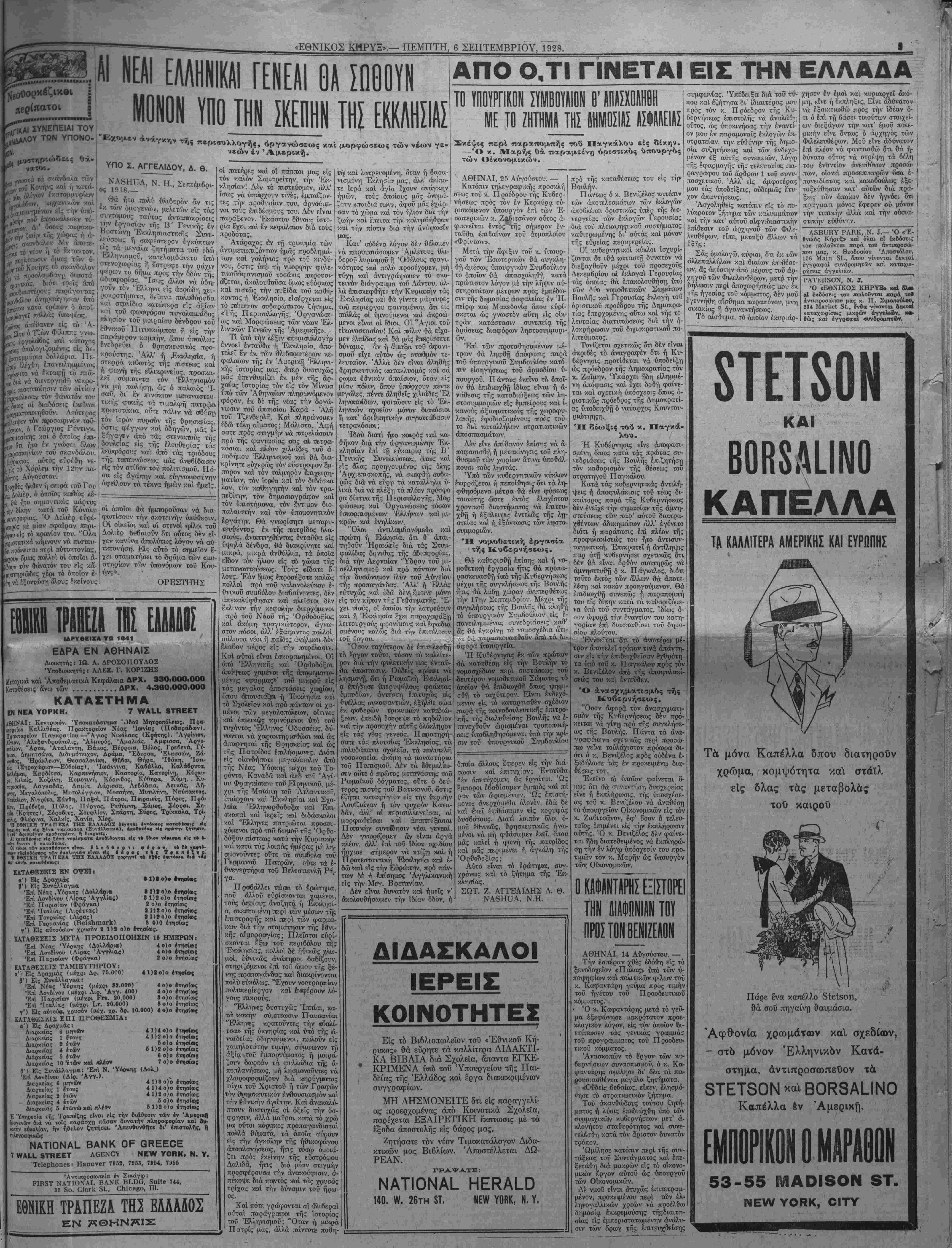 ΝΕ¥ ΥΟΚΚ, ΠΕΜΠΤΗ, 6 ΣΕΠΤΕΜΒΡΙΟΥ, 1928.
