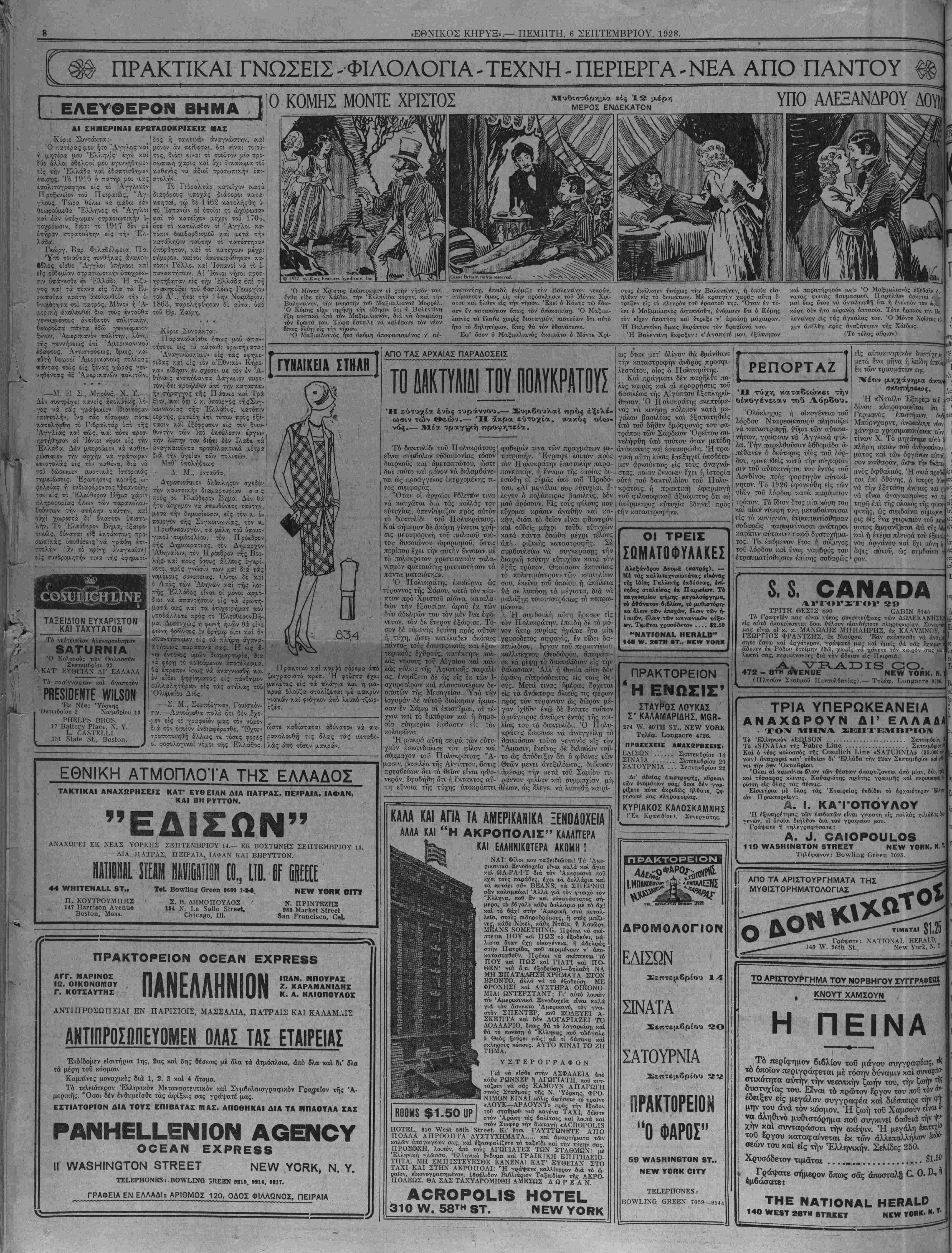 Τ< 472 -· 8ΤΗ ΛΕΝυΕ ΝΕνν ΥΟΒΚ, Ν. (Πλησίον Σταθμοϋ Πενσυλβανίας).— Τηλέφ. ΕοηβηθΓβ 9996. ΤΡΙΑ ΥΠΕΡΩΚΕΑΝΕΙΑ ΑΝΑΧΩΡΟΥΝ ΔΓ ΕΛΛΑΔΑ . ΤΟ Λ1ΙΙΊΑ ΧΕΠΤΕΜΒΡΙΟΙΙ Τό "Ελληνικόν «ΕΕΠ5ΟΝ ........................ ΣεπτβμβοΙο» Τό «5ΙΝΑΙΑ> τής ΚβΟΓβ ΙΛηβ ................... Σεπτεμββίο»