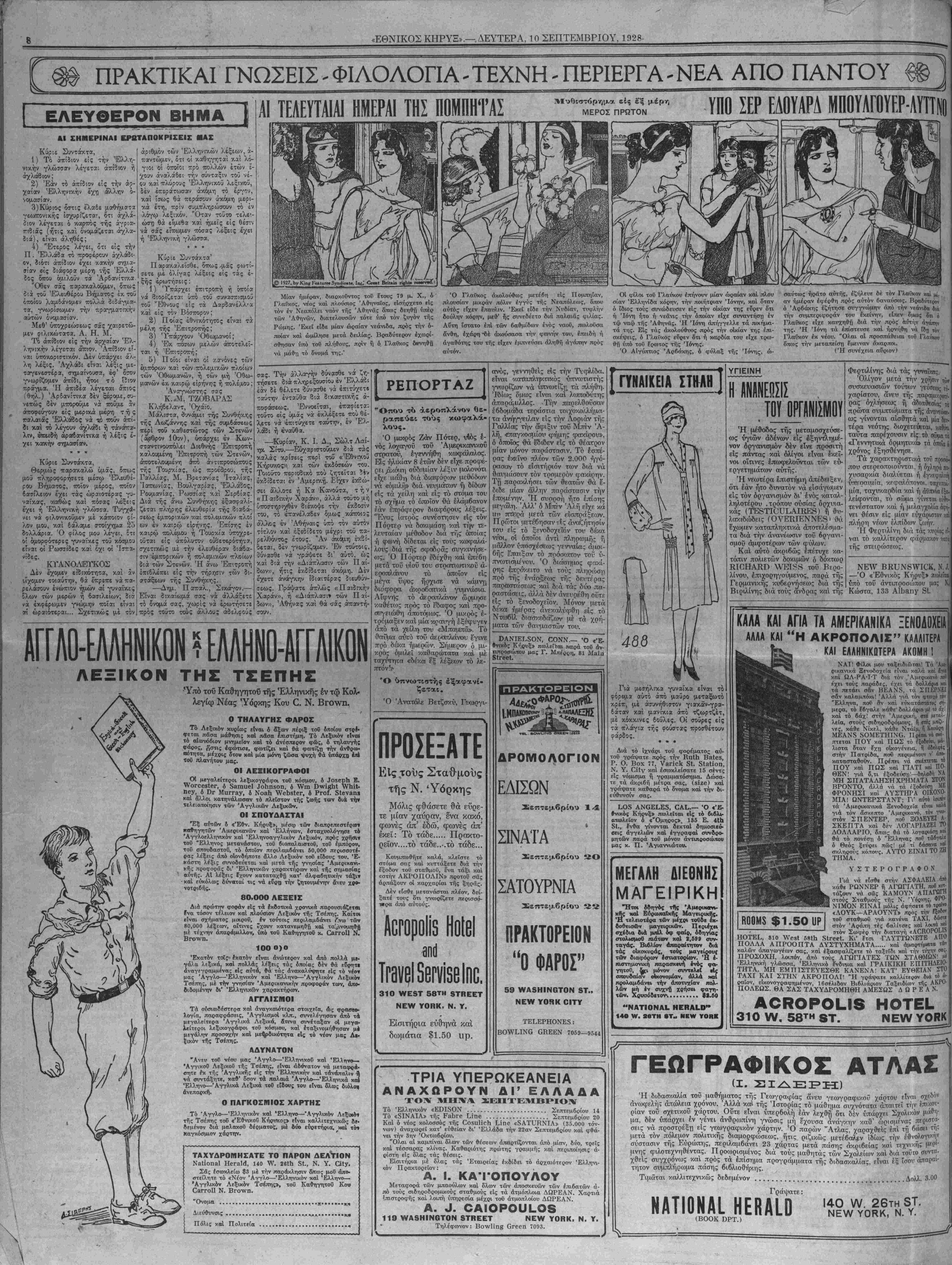 ραϊον, εΙκονογραφημένοΛ', Ιθσέλιδον Βιβλιάριον Ταξειδί<ον τής ΑΚΡΟ ΠΟΛΕΩΣ. ΘΑ ΣΑΣ ΤΑΧΥΔΡΟΜΗΘΗ ΑΜΕΣΩΣ ΔΩΡΕΑΝ. ΑΟΚθΡθΙ-18 ΗΟΤΕί 310 νν. 58™ 8Τ. ΝΕνν ΥΟΒΚ -ι ΤΡΙΑ ΥΠΕΡΩΚΕΑΝΕΙΑ ΑΝΑΧΩΡΟΥΝ ΔΙ' ΕΛΛΑΔΑ ΪΕΠΤΕΜΒΡΙΟΛί 1Μ[ΗΙ¥Α Τό Ελληνικόν «ΕΌΙ5ΟΝ .."...................... Σεπτεμ6Οίου 14 Τό «5ΙΝΑΙΑ» τής ΡεΤογθ Εϊπε ................... 2επτεμ6ρίου 20 Καί ό νέος κολ.οσσός τής Οοχυΐίοη Είηβ «5ΑΤϋΚΝΙΑ> (35.000 τόν¬