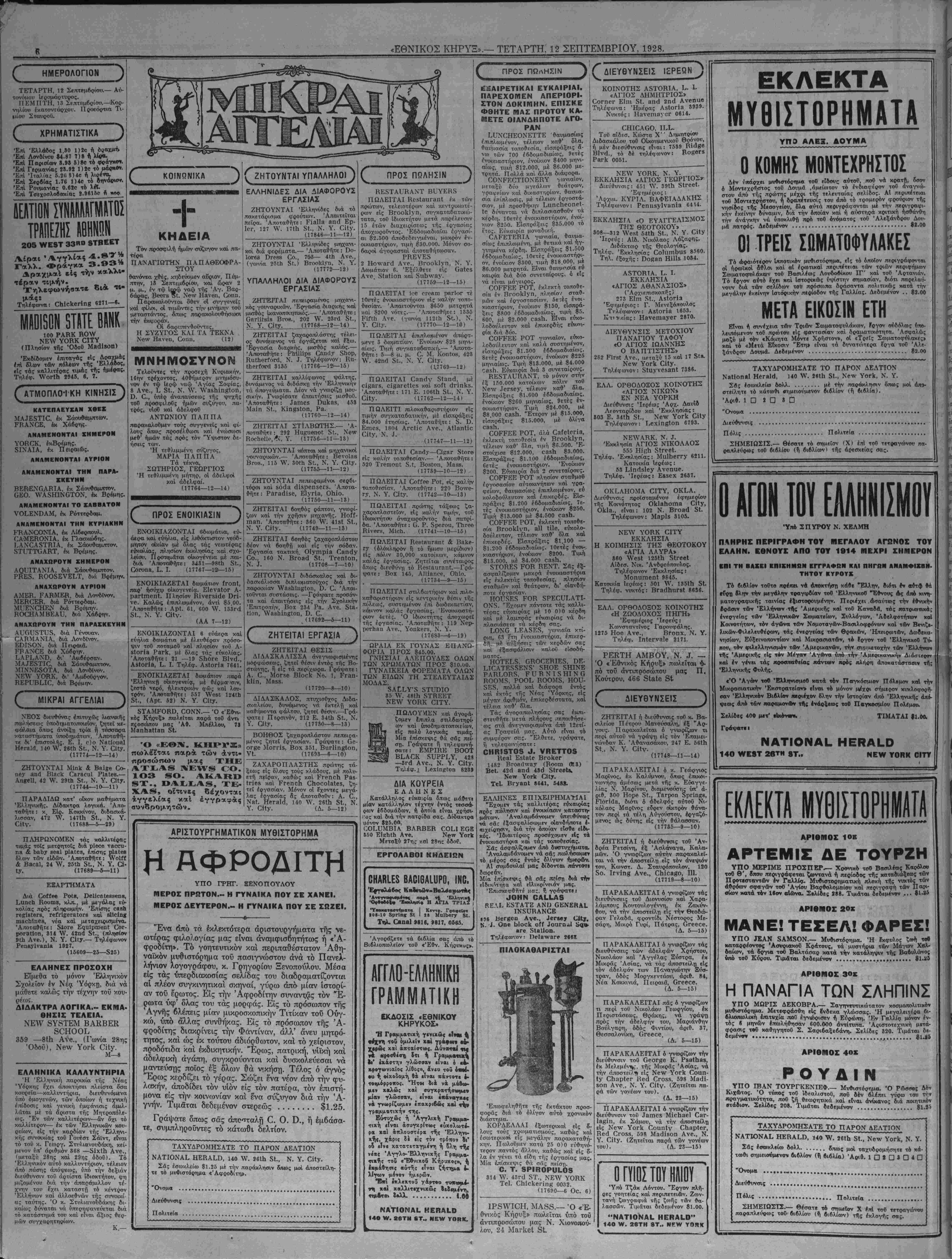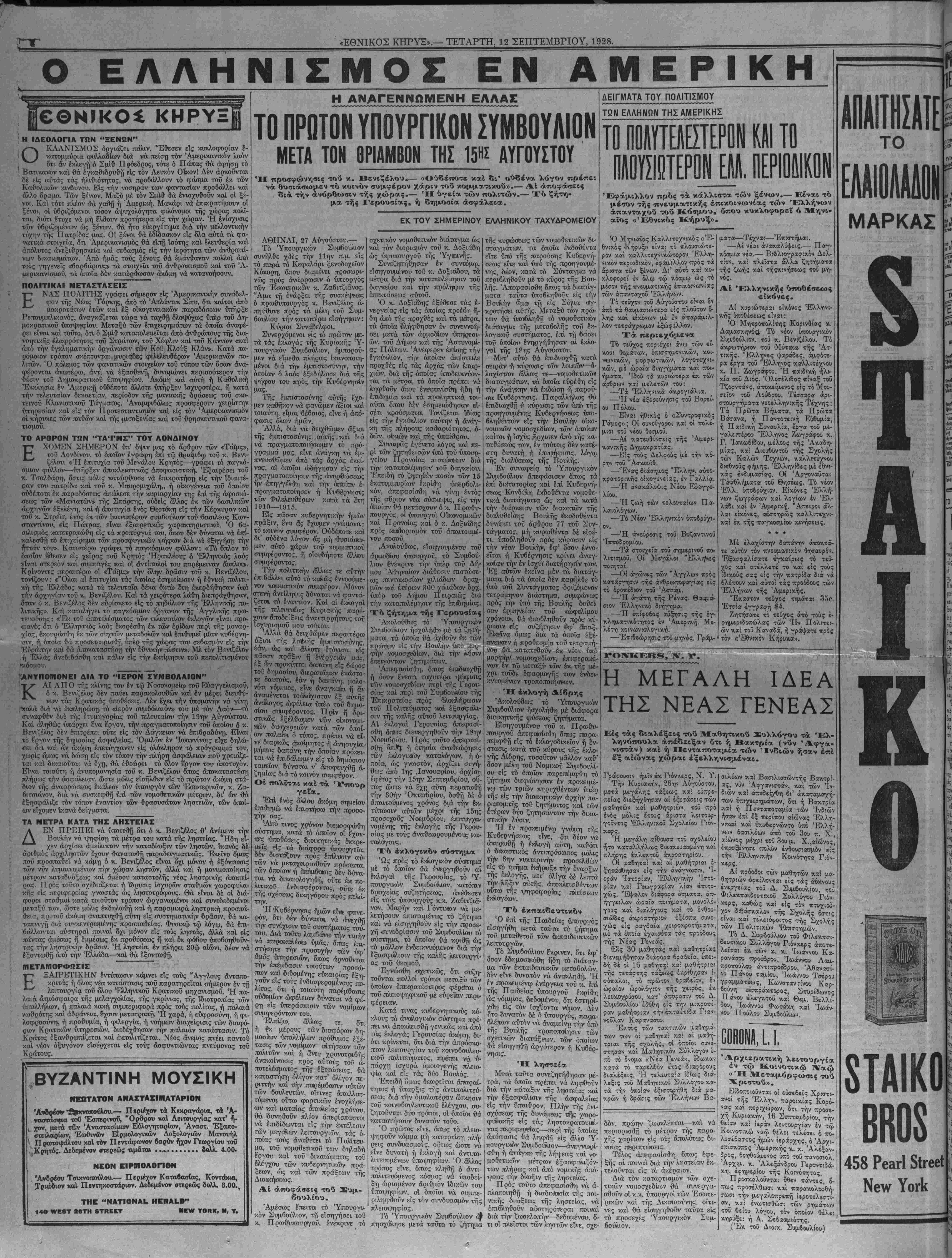 ΝΕν ΥΟΚΚ, Ί ΪΤΑΡΤΗ, 12 ΣΕΠΤΕΜΒΡΙΟΥ, 1928.