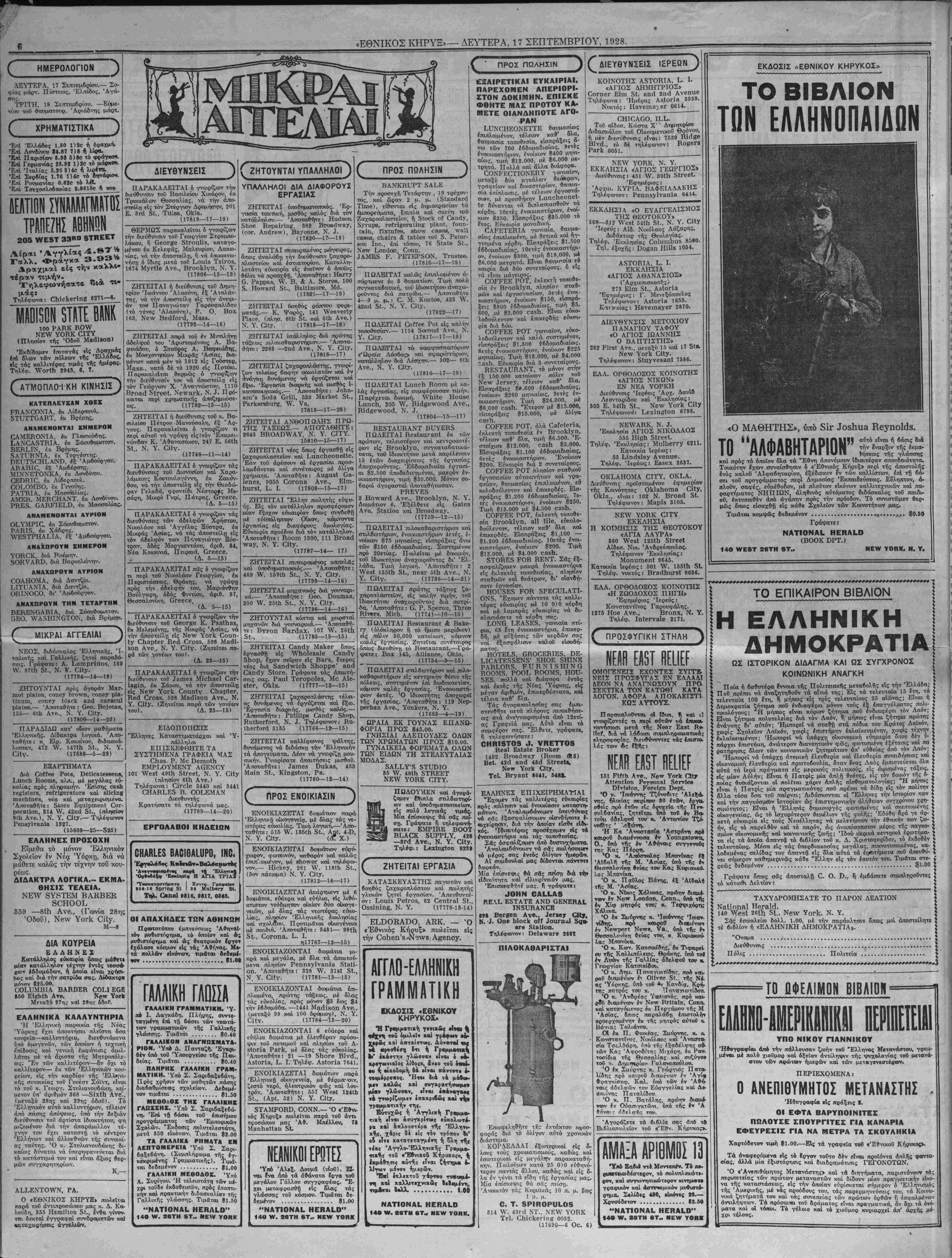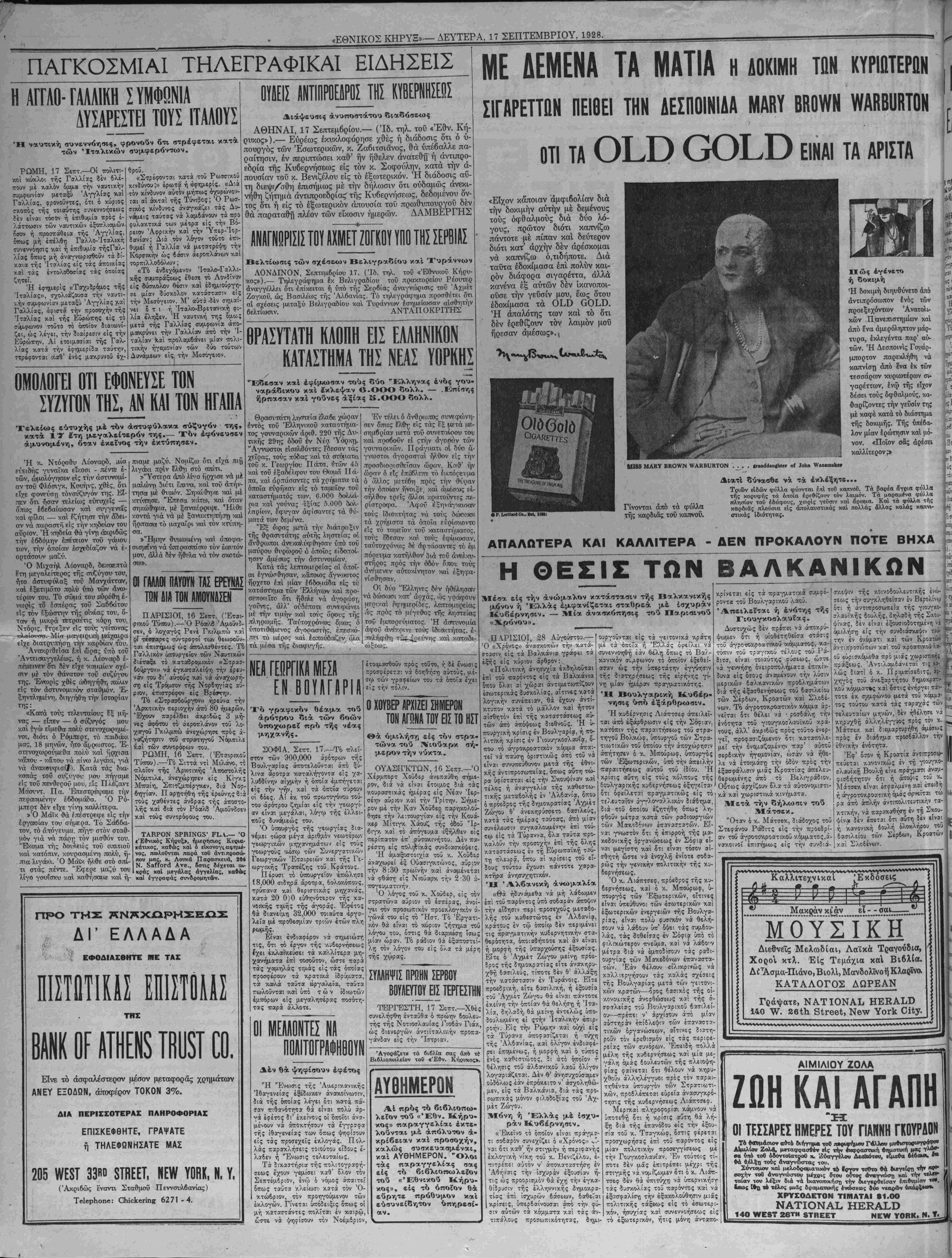 ΔΕΥΤΕΡΑ, 17 ΣΕΠΤΕΜΒΡΙΟΥ, 1928.