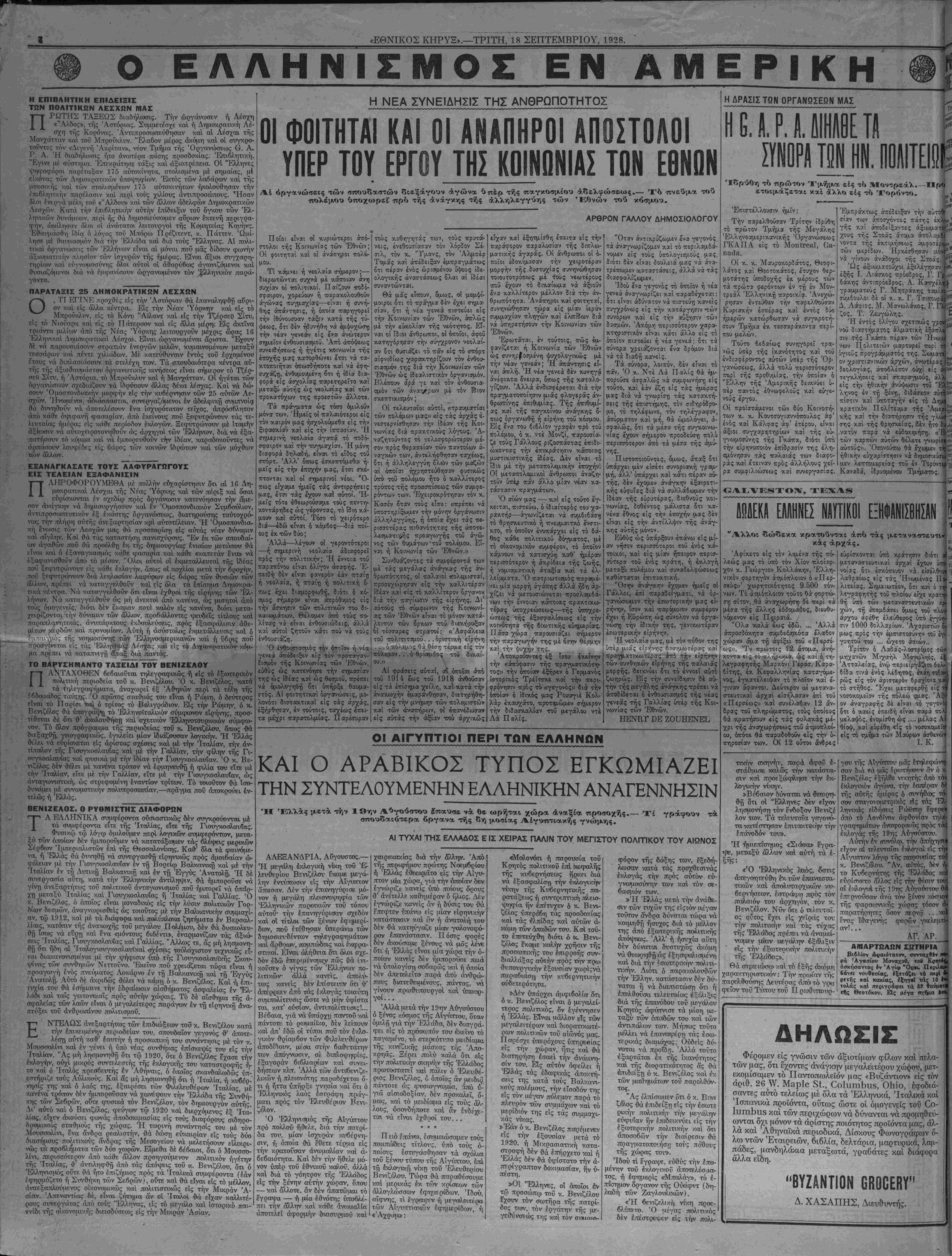 ΝΕΥ ΥΟΚΚ, ΤΡΙΤΗ, 18 ΣΕΠΤΕΜΒΡΙΟΥ, 1928.