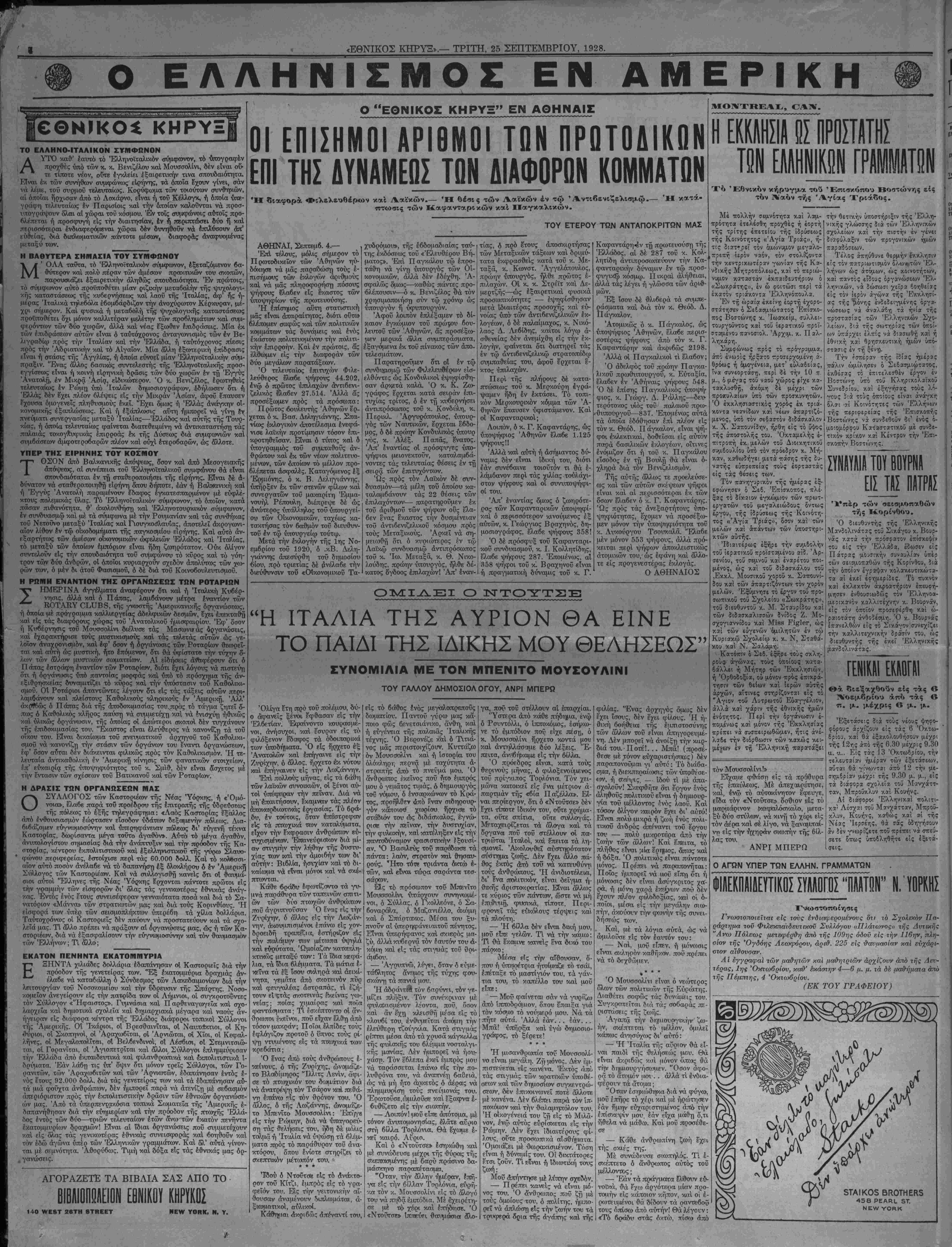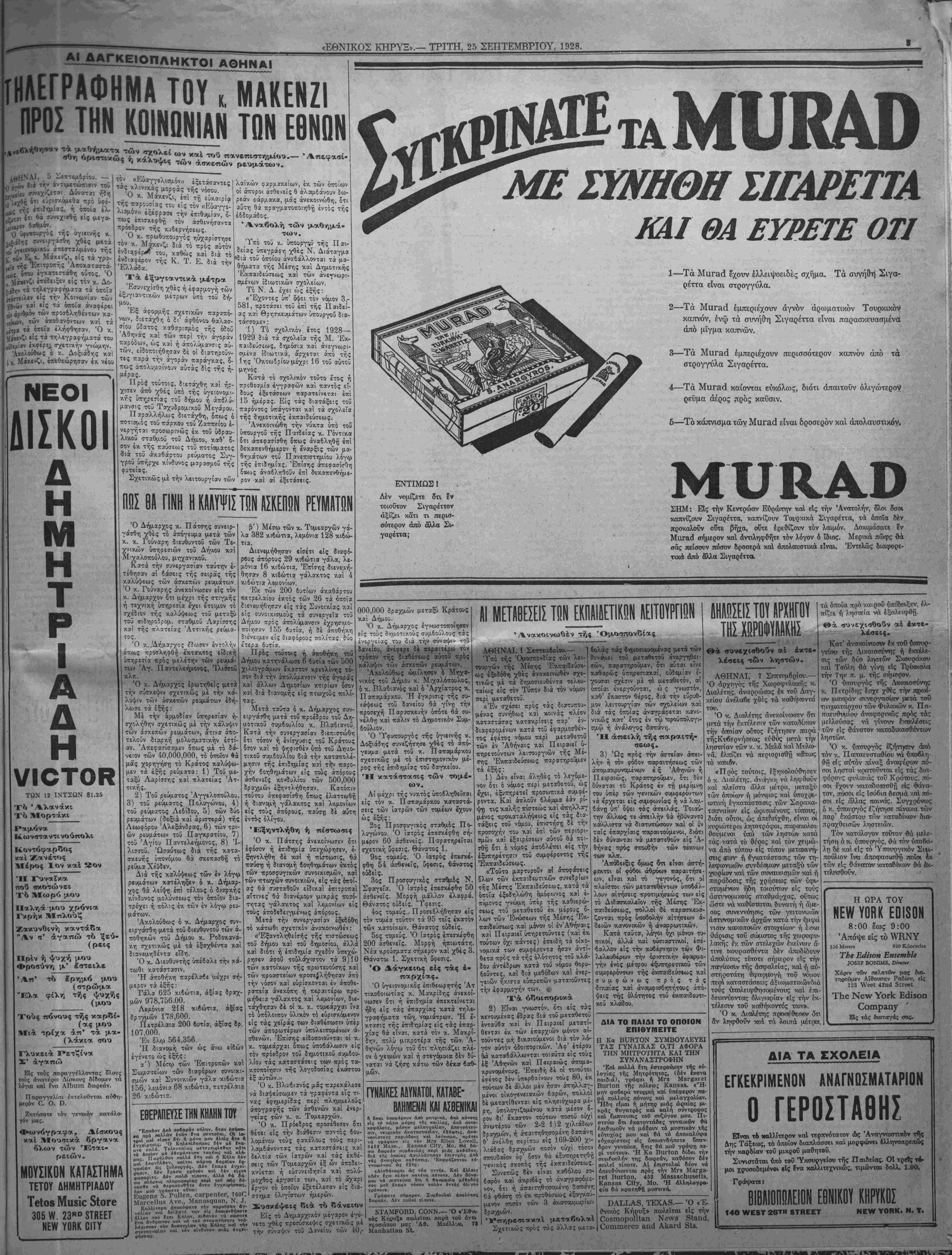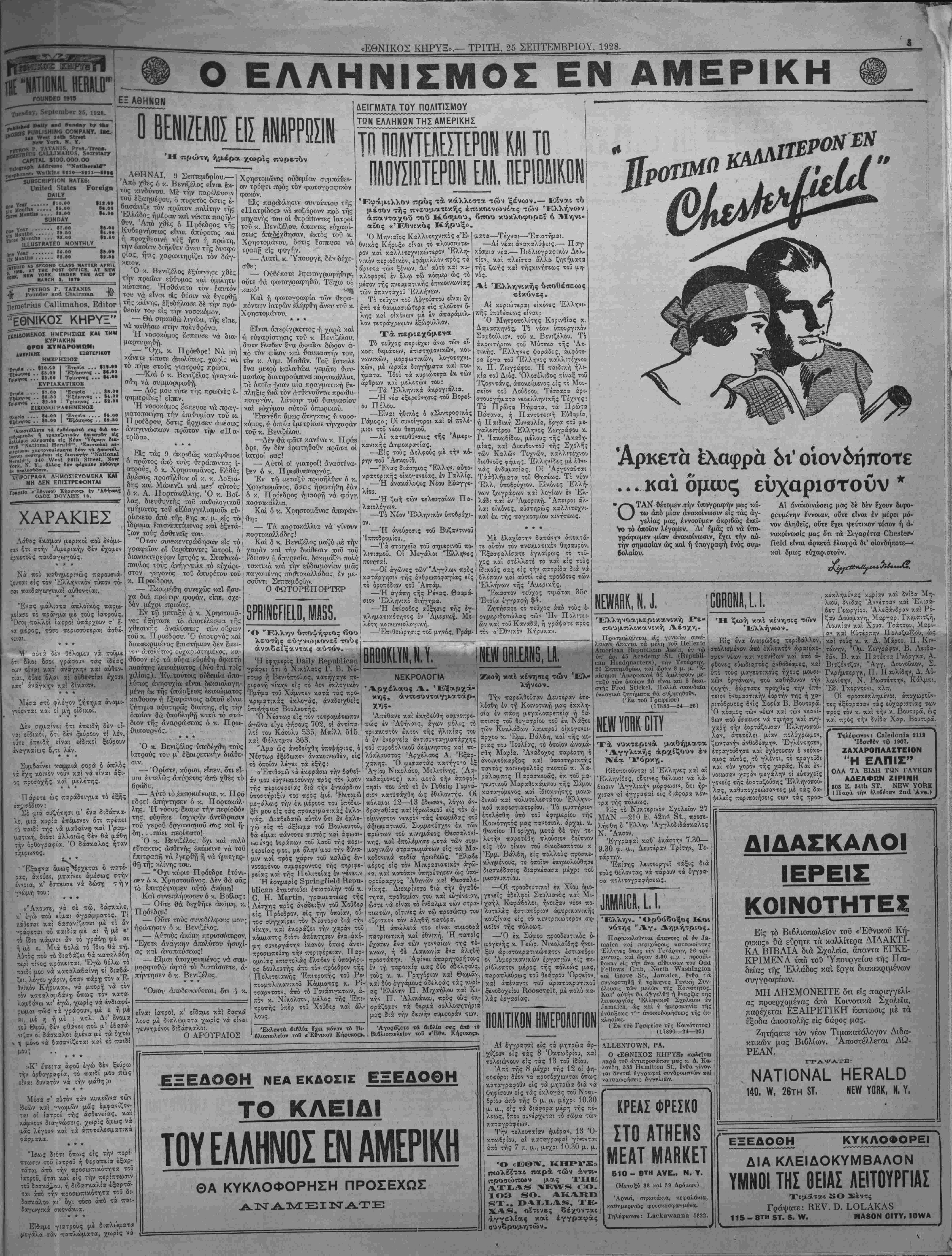 ΝΕΥ ΥΟΚΚ, ΤΡΙΤΗ^δ^ΕΙΙΤΕΜΒΡΙΟΥ, 1928.