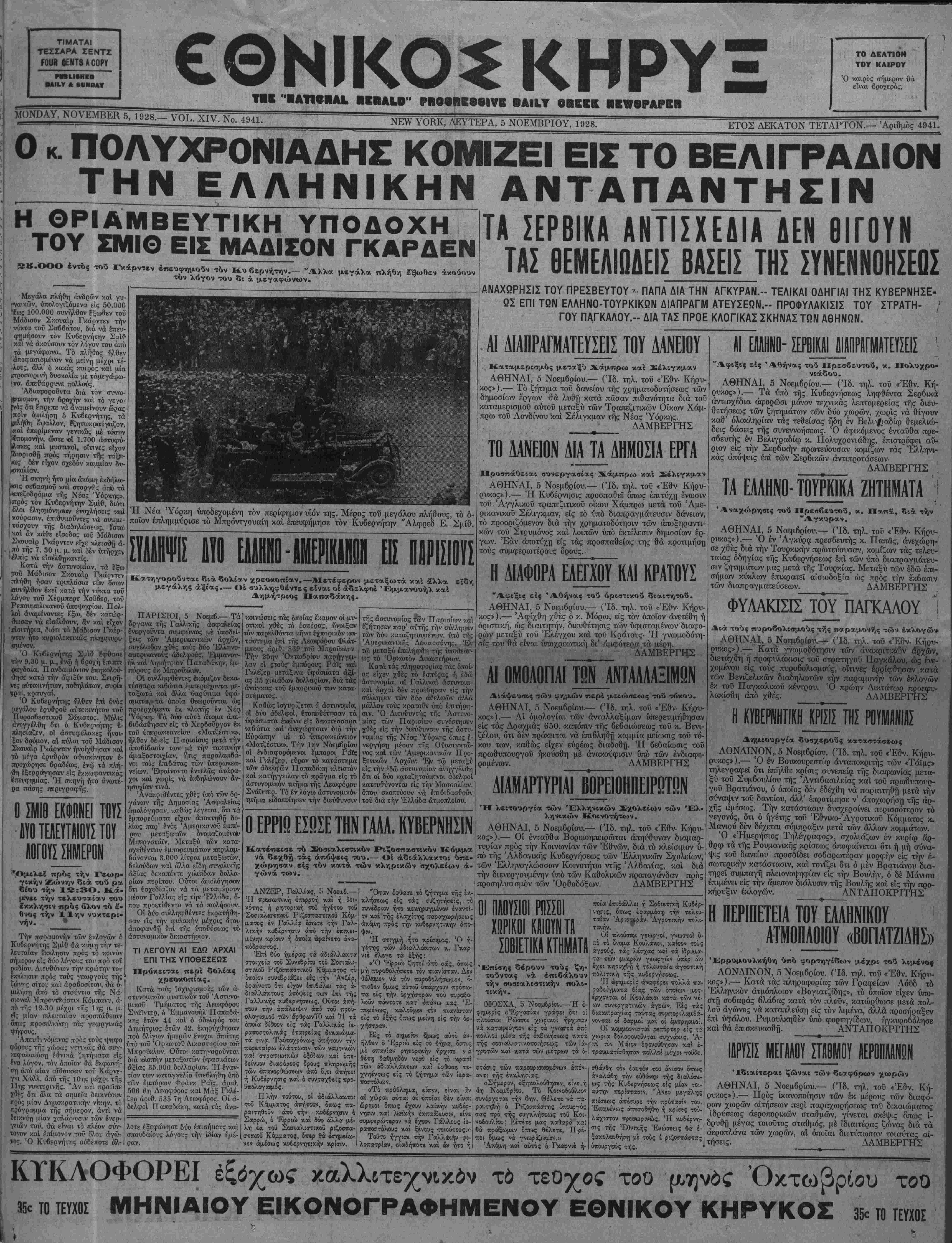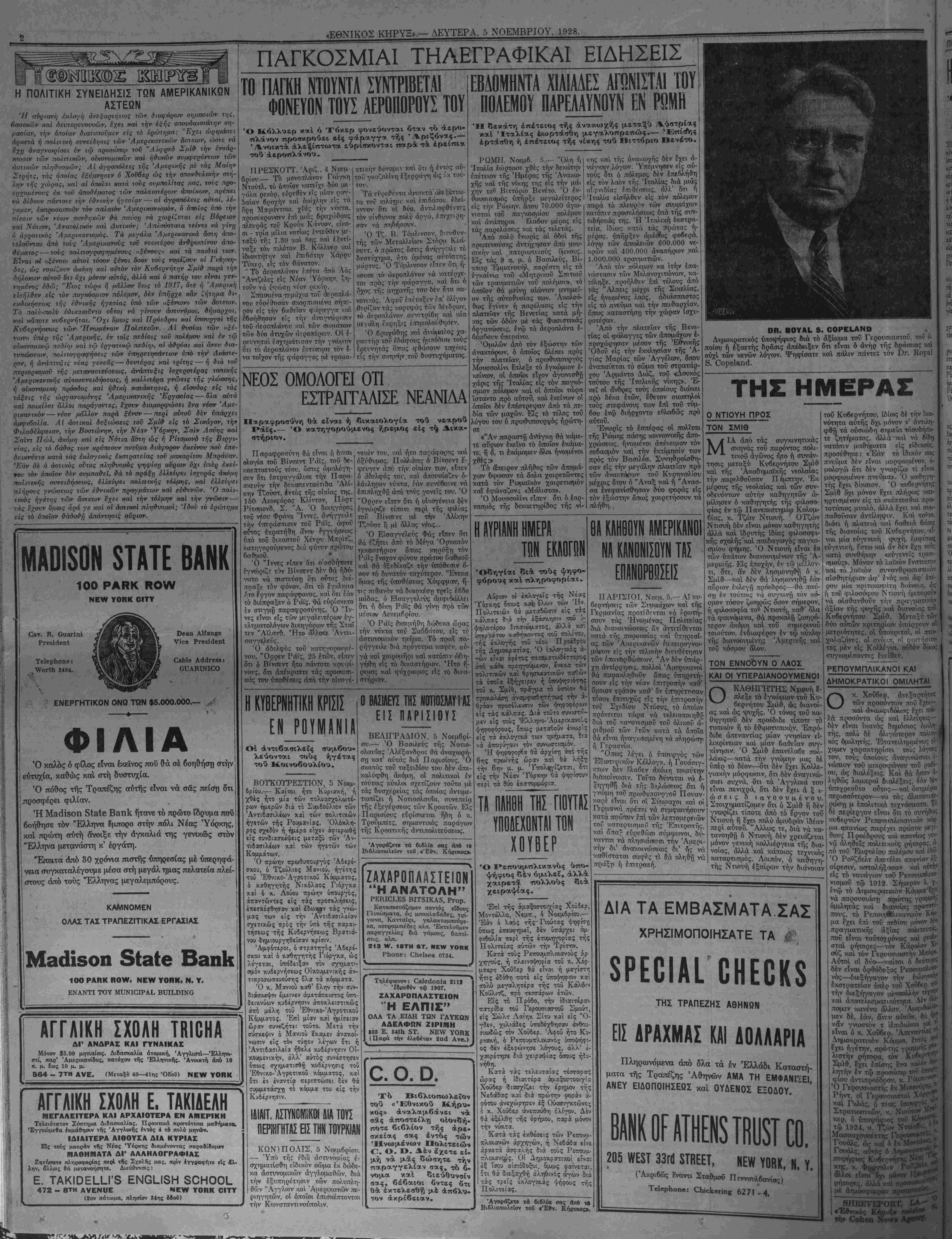 ΝΕνΥ ΥΟΚΚ, ΔΕΥΤΕΡΑ, 5 ΝΟΕΜΒΡΙΟΥ, 1928.