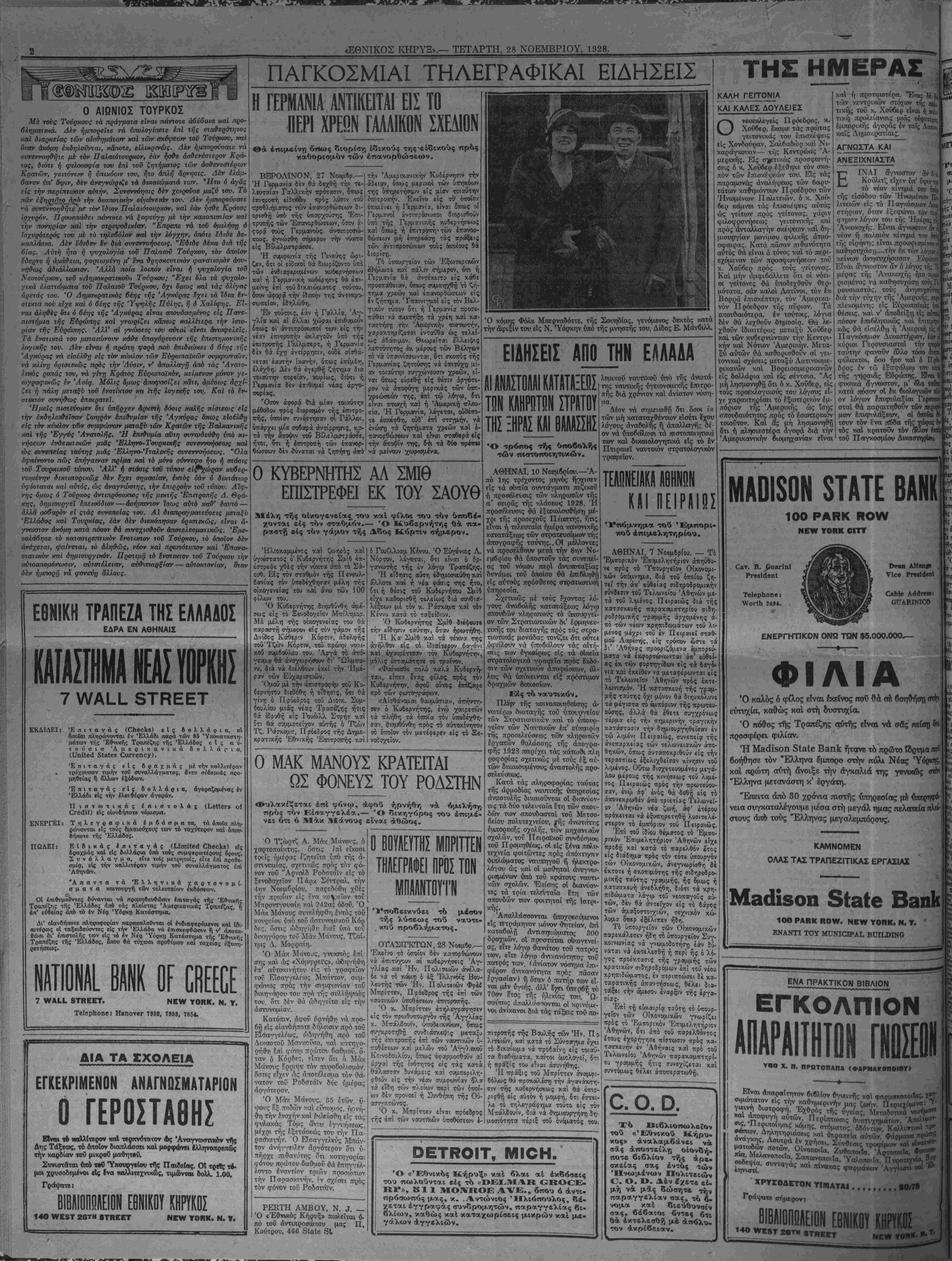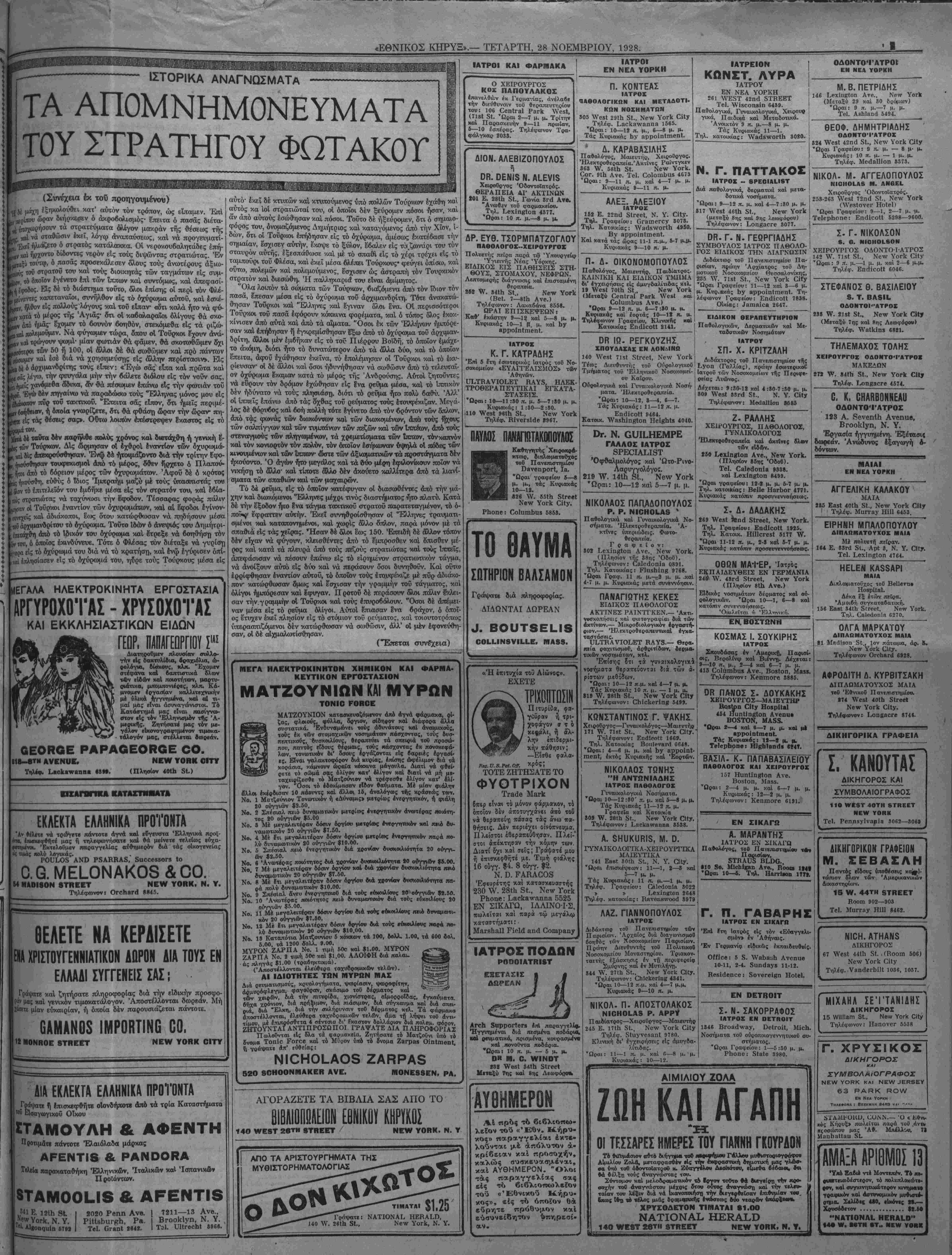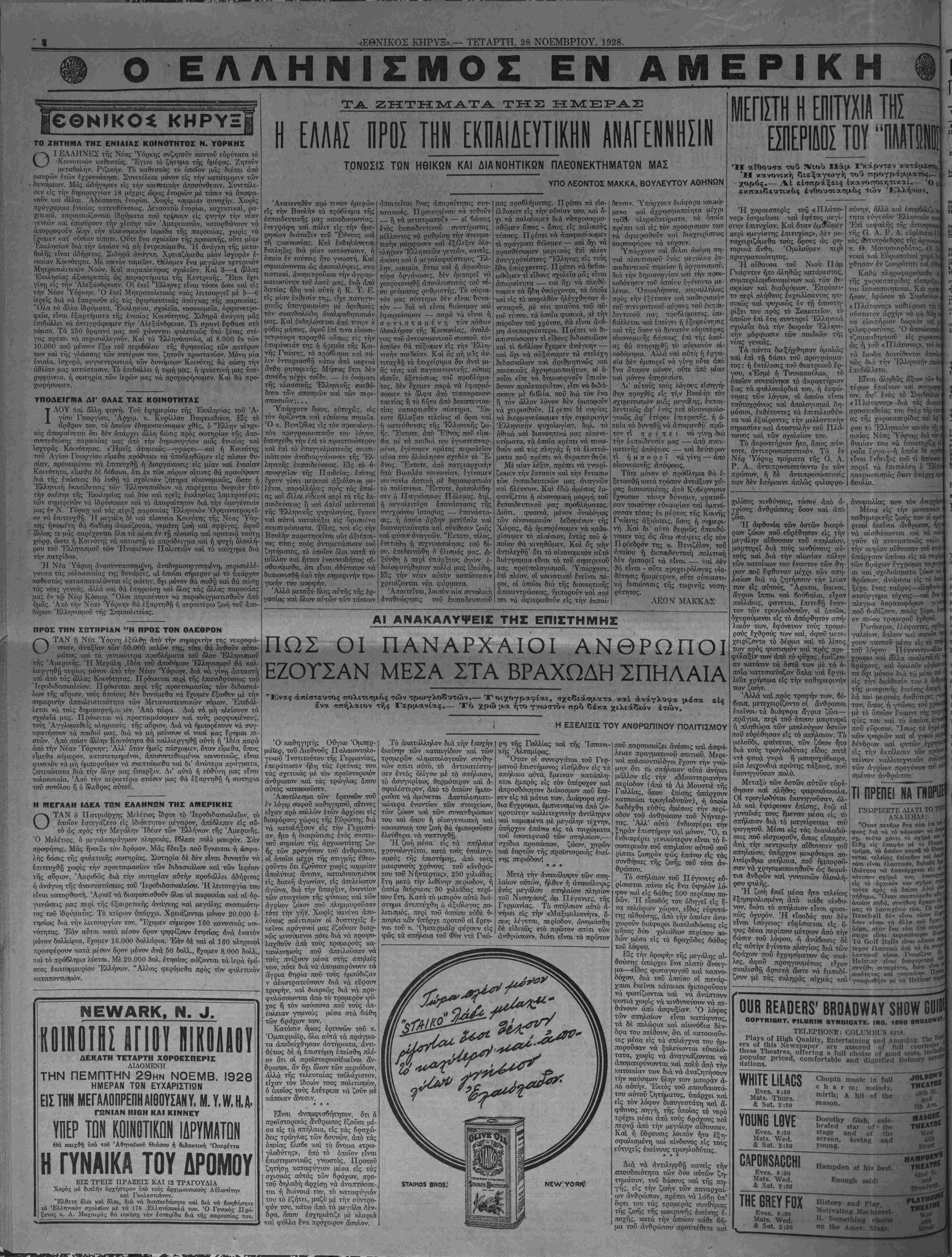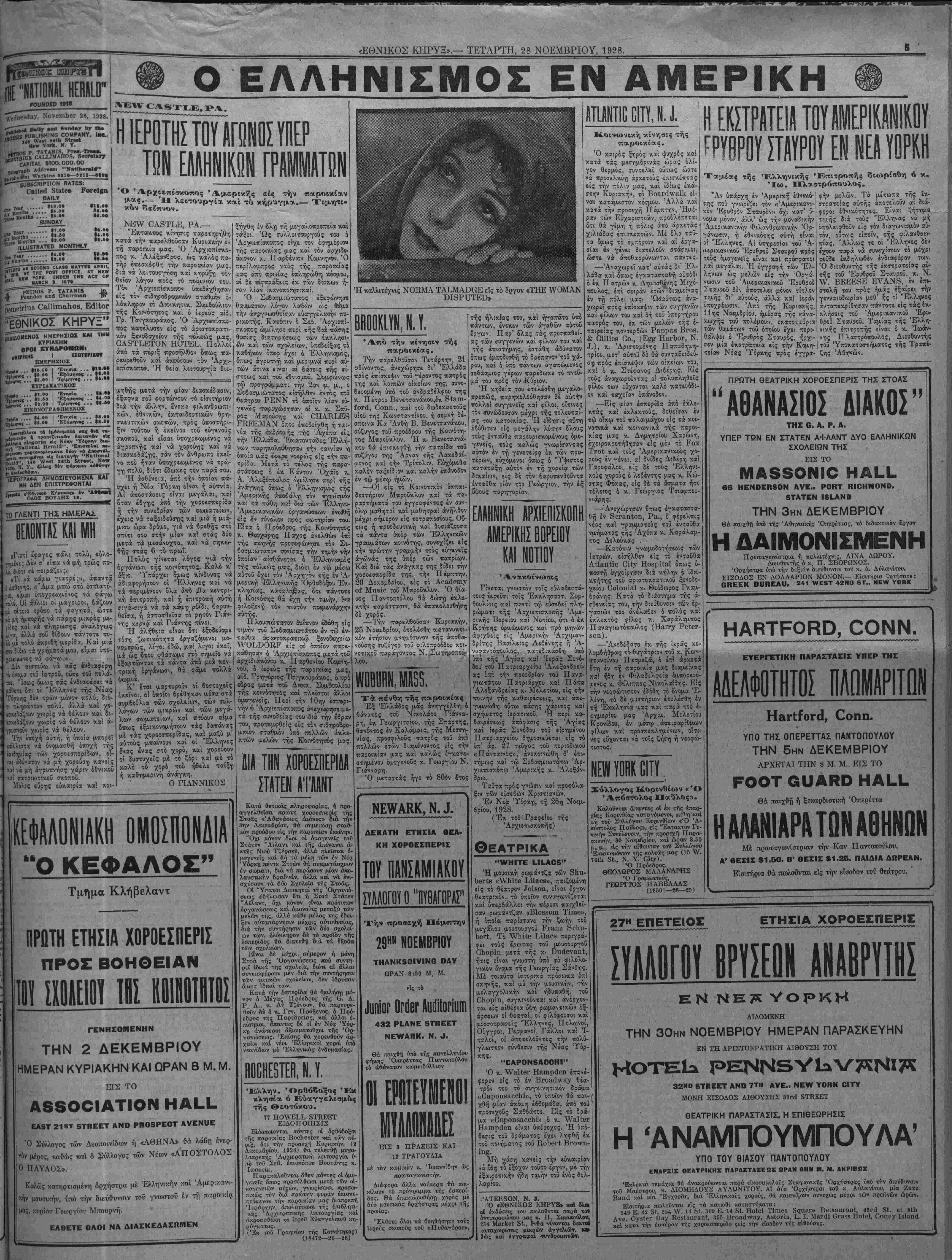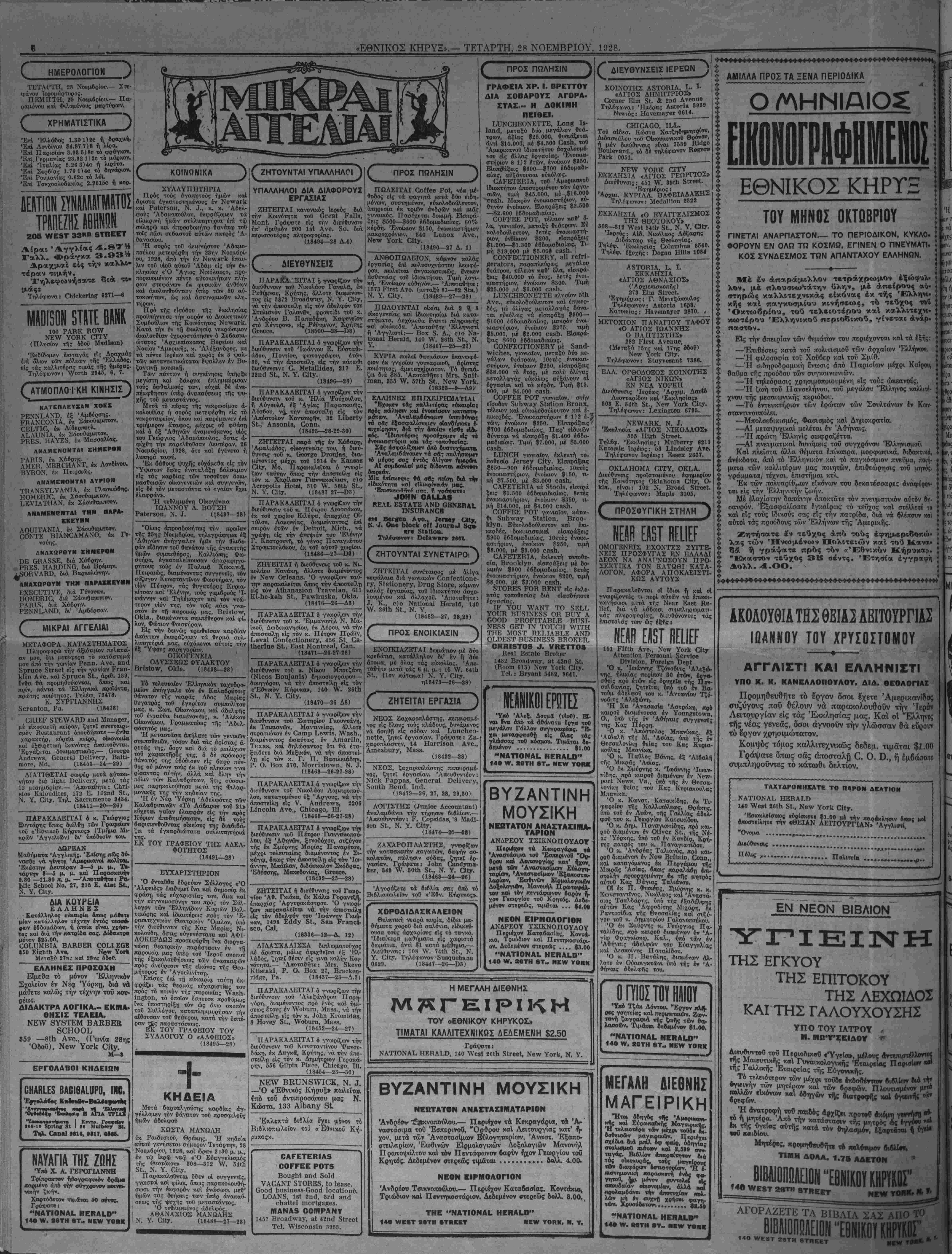 ΝΕν ΥΟΚΚ, ΤΕΤΑΡΤΗ, 28 ΝΟΕΜΒΡΙΟΥ, 1928.