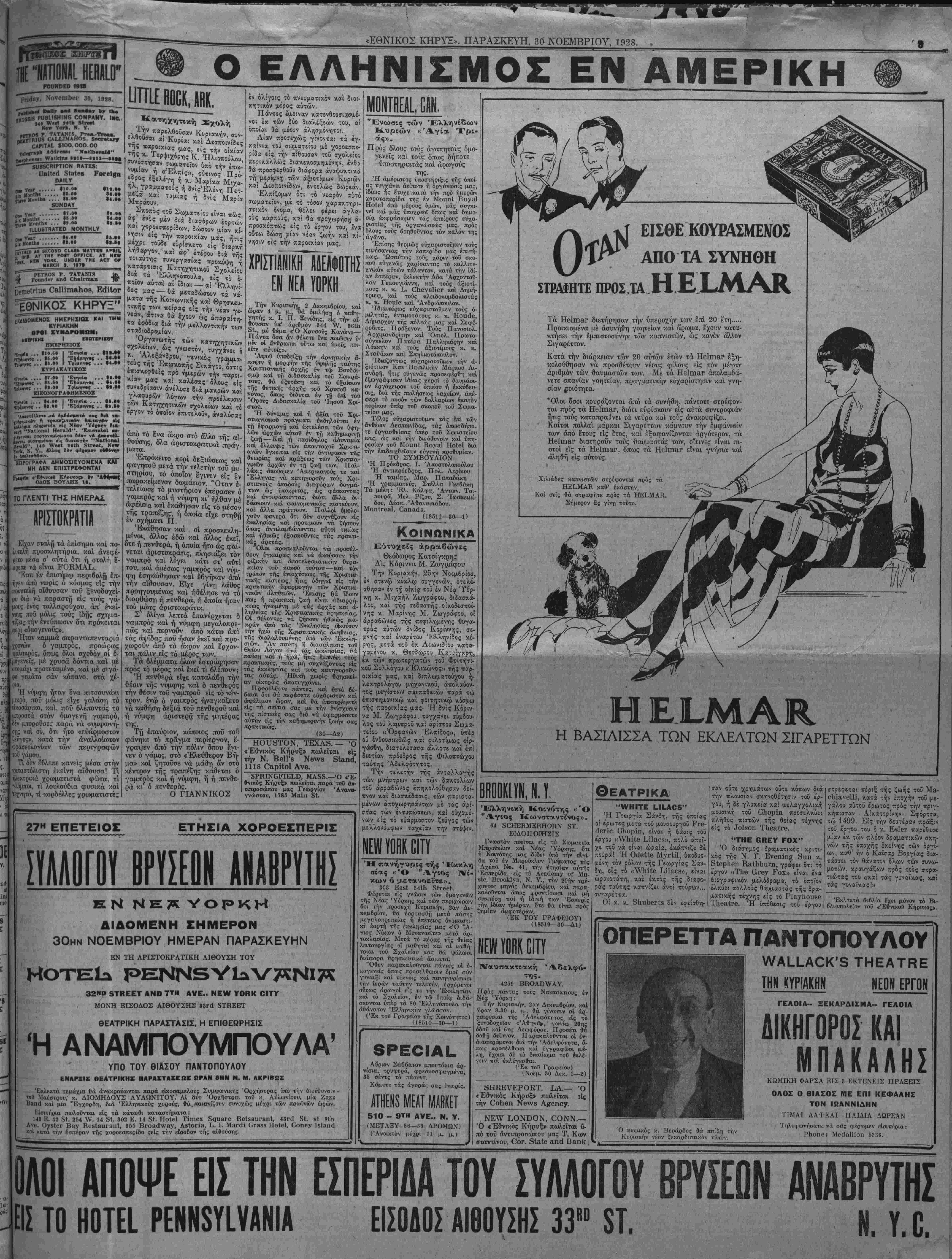 ΝΕΥ ΥΟΚΚ, ΠΑΡΑΣΚΕΥΗ, 30 ΝΟΕΜΒΡΙΟΥ, 1928.