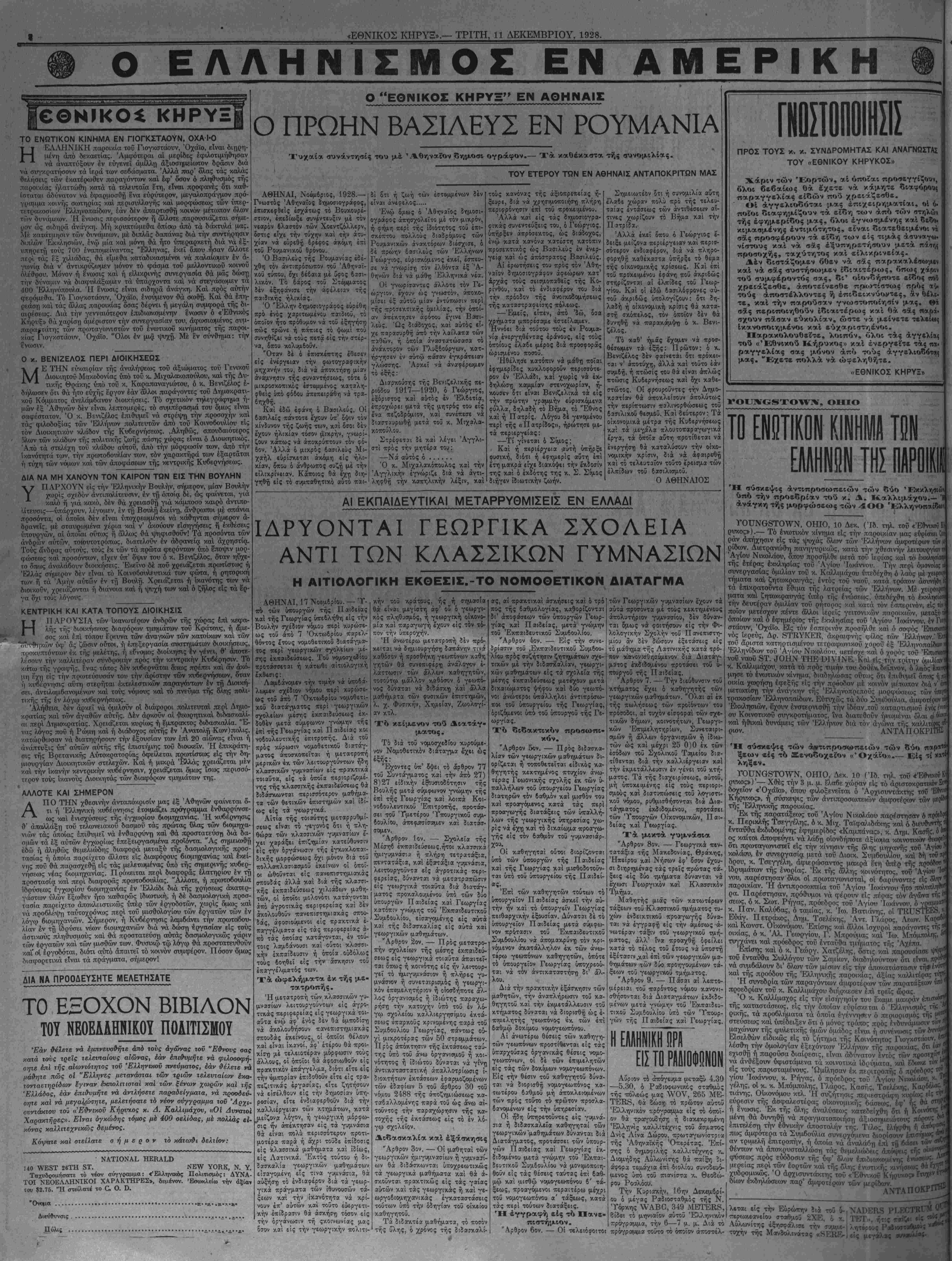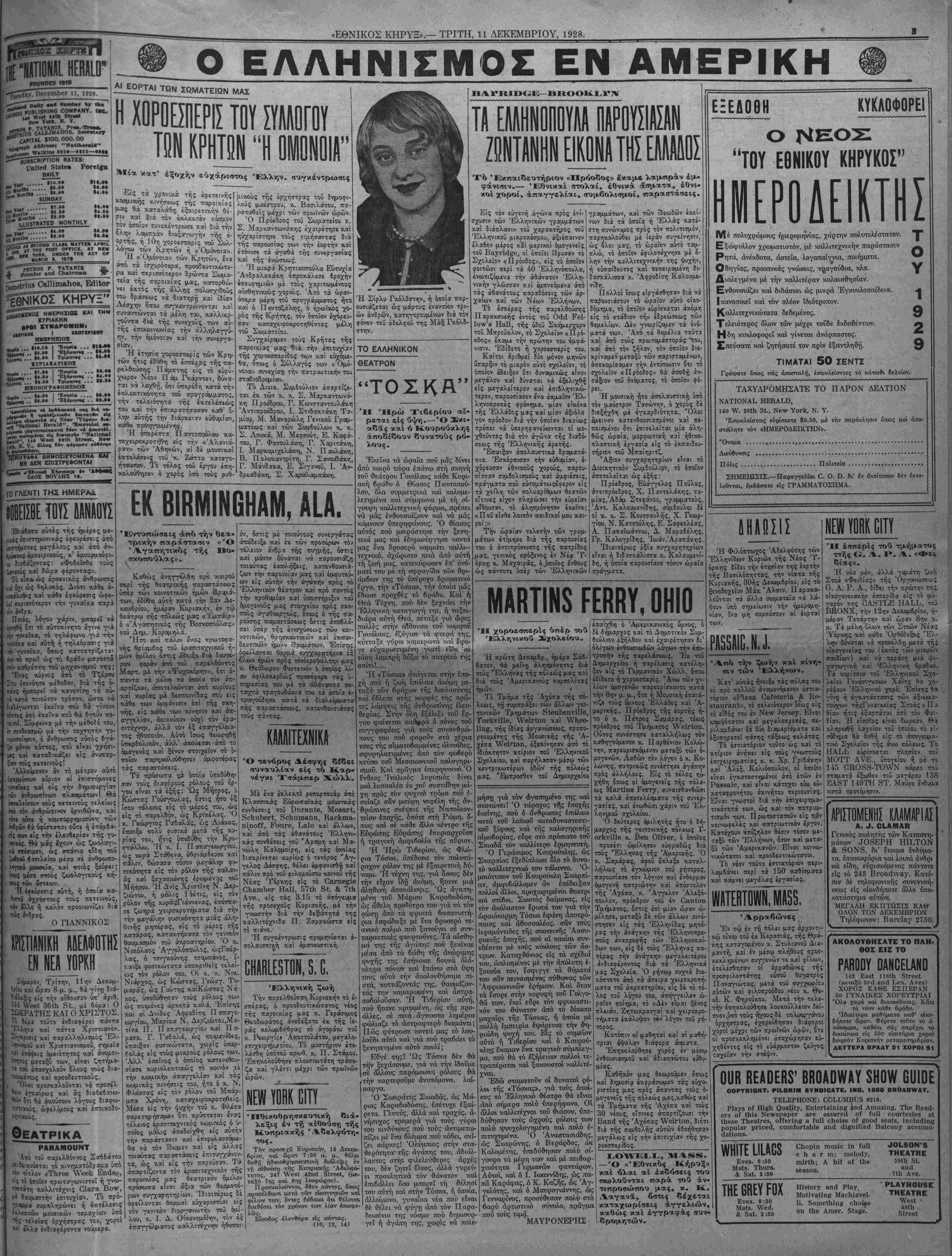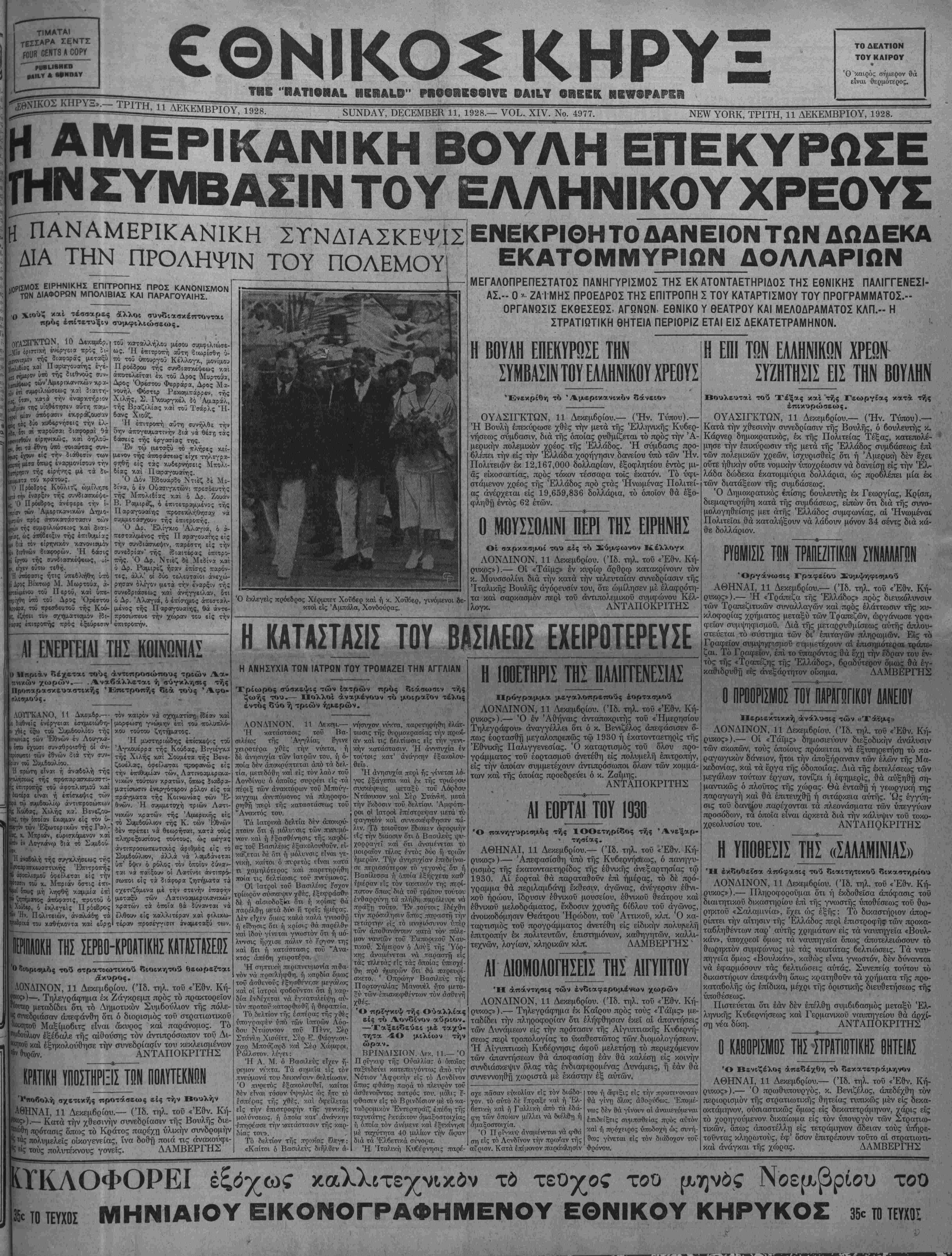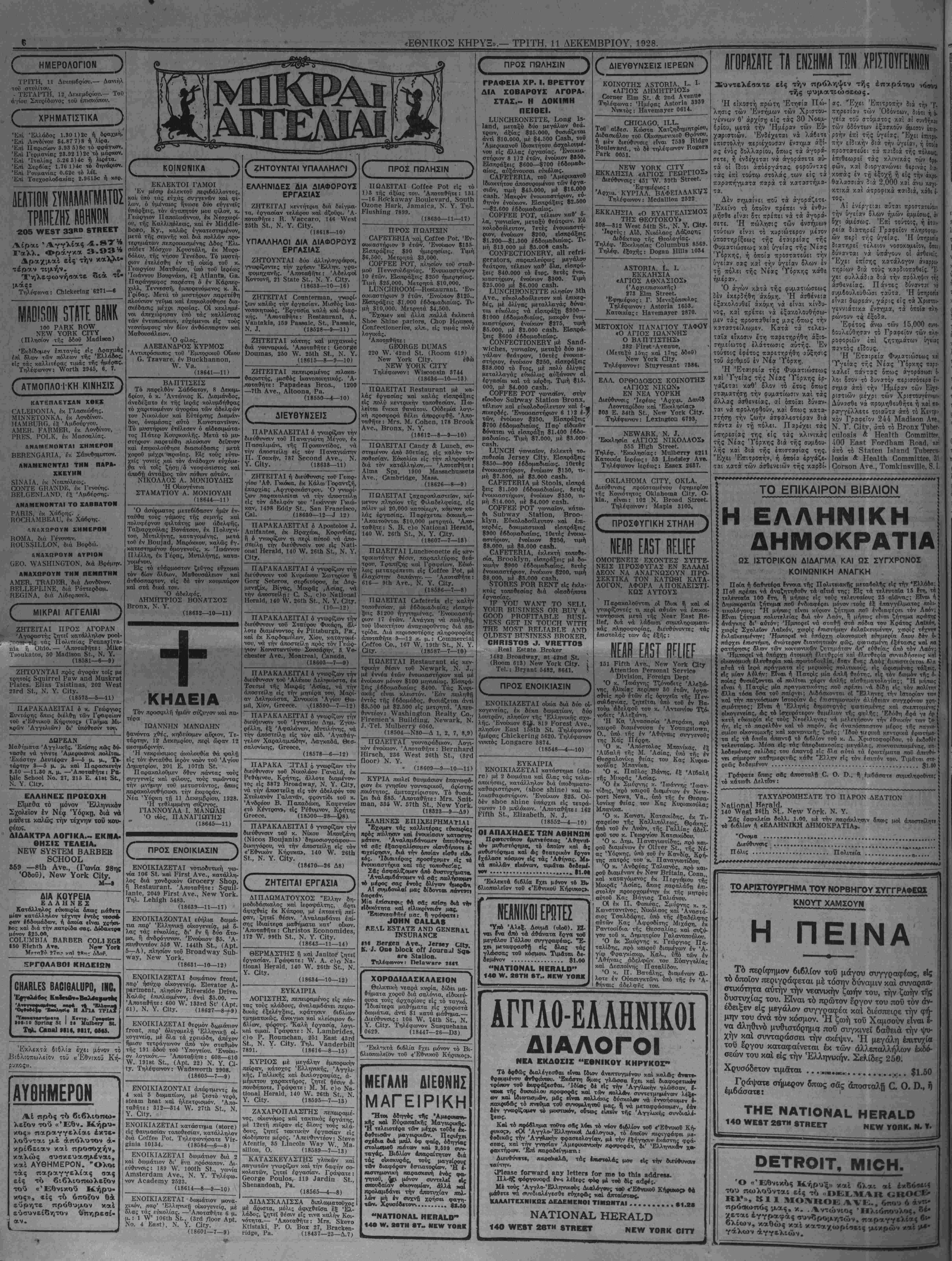 ΝΕΥ ΥΟΒΚ, ΤΡΙΤΗ, 11 ΔΕΚΕΜΒΡΙΟΥ, 1928.