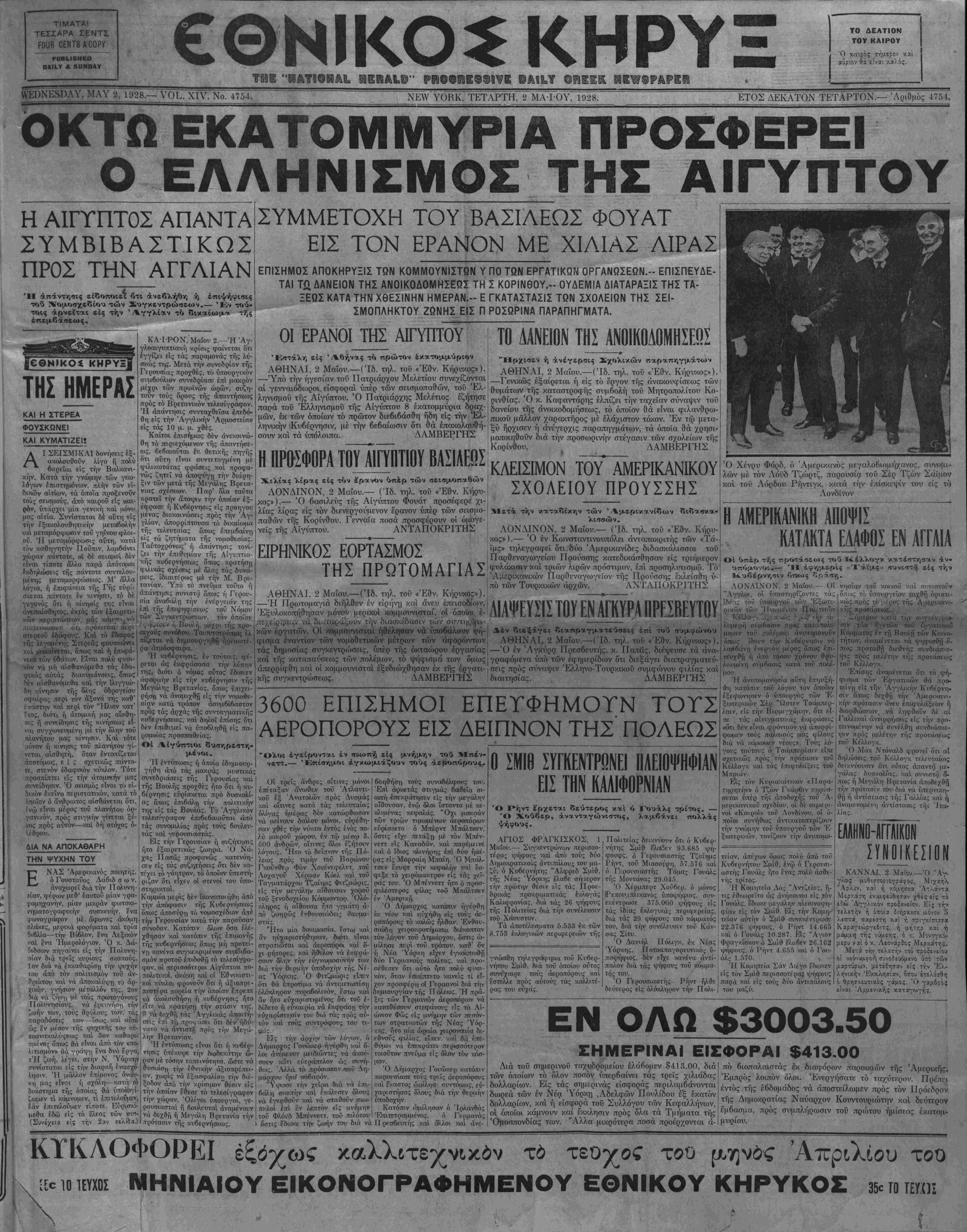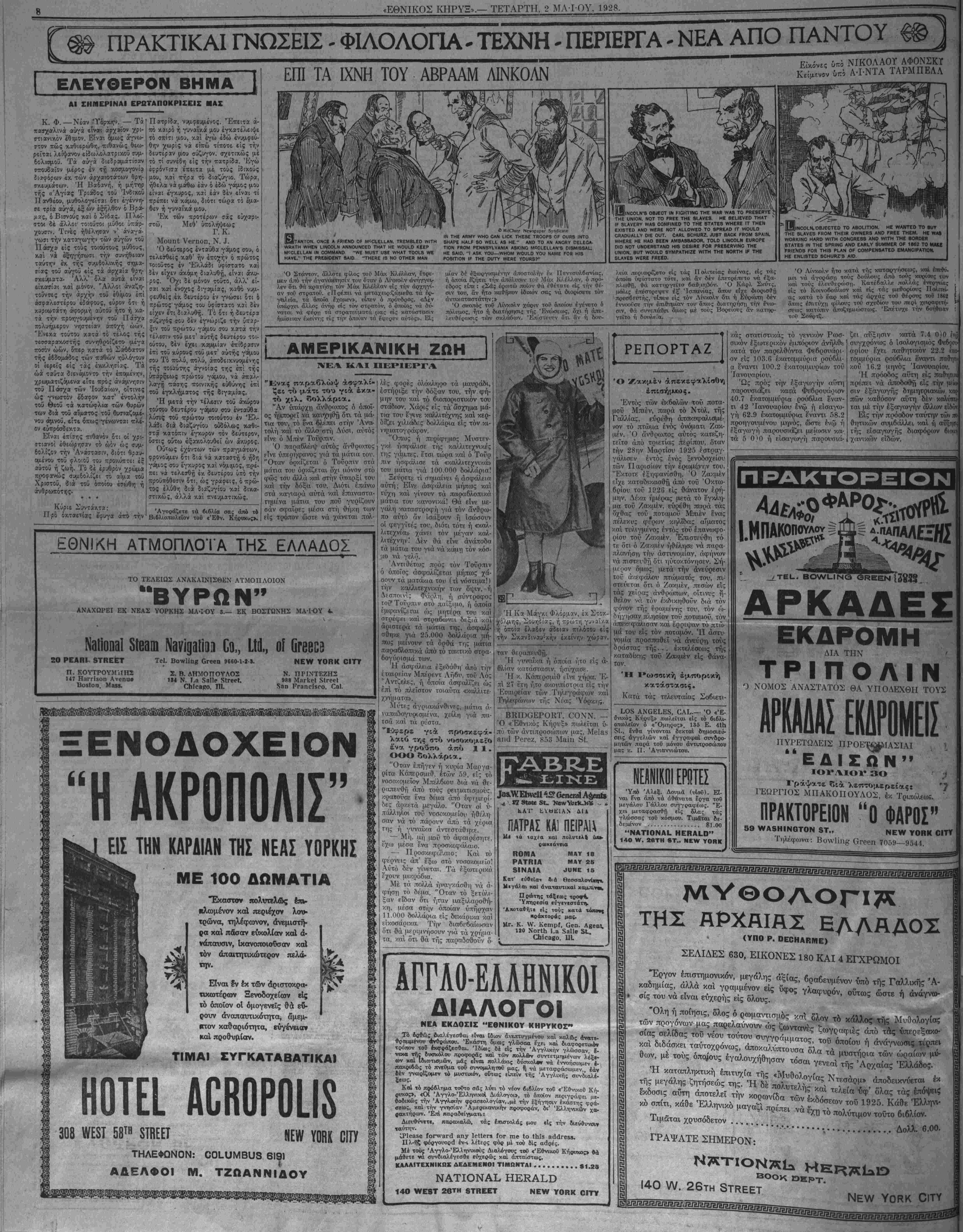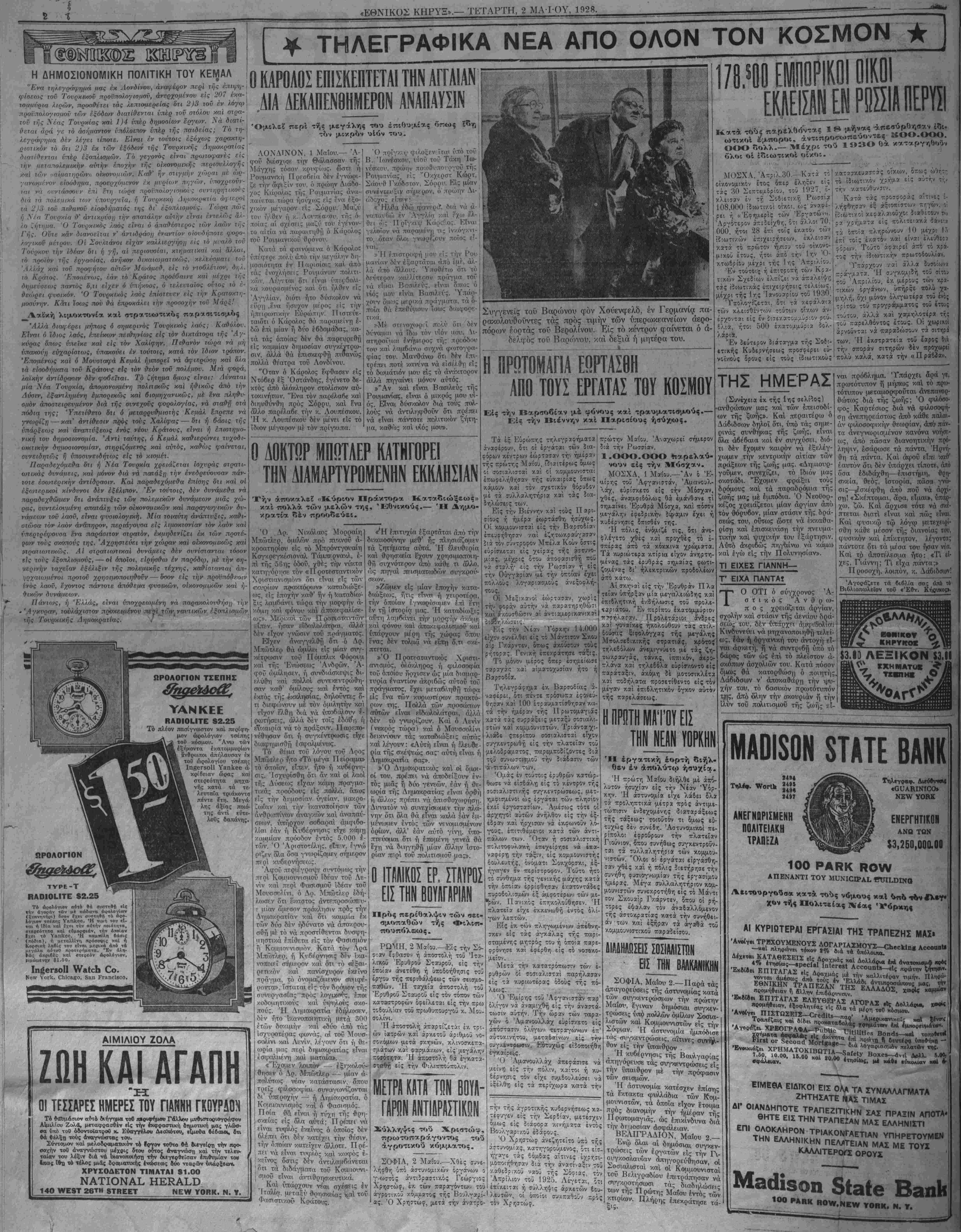 ΝΕΥ ΥΟΚΚ, ΤΕΤΑΡΤΗ, 2 ΜΑ-ΙΌΥ, 1928.