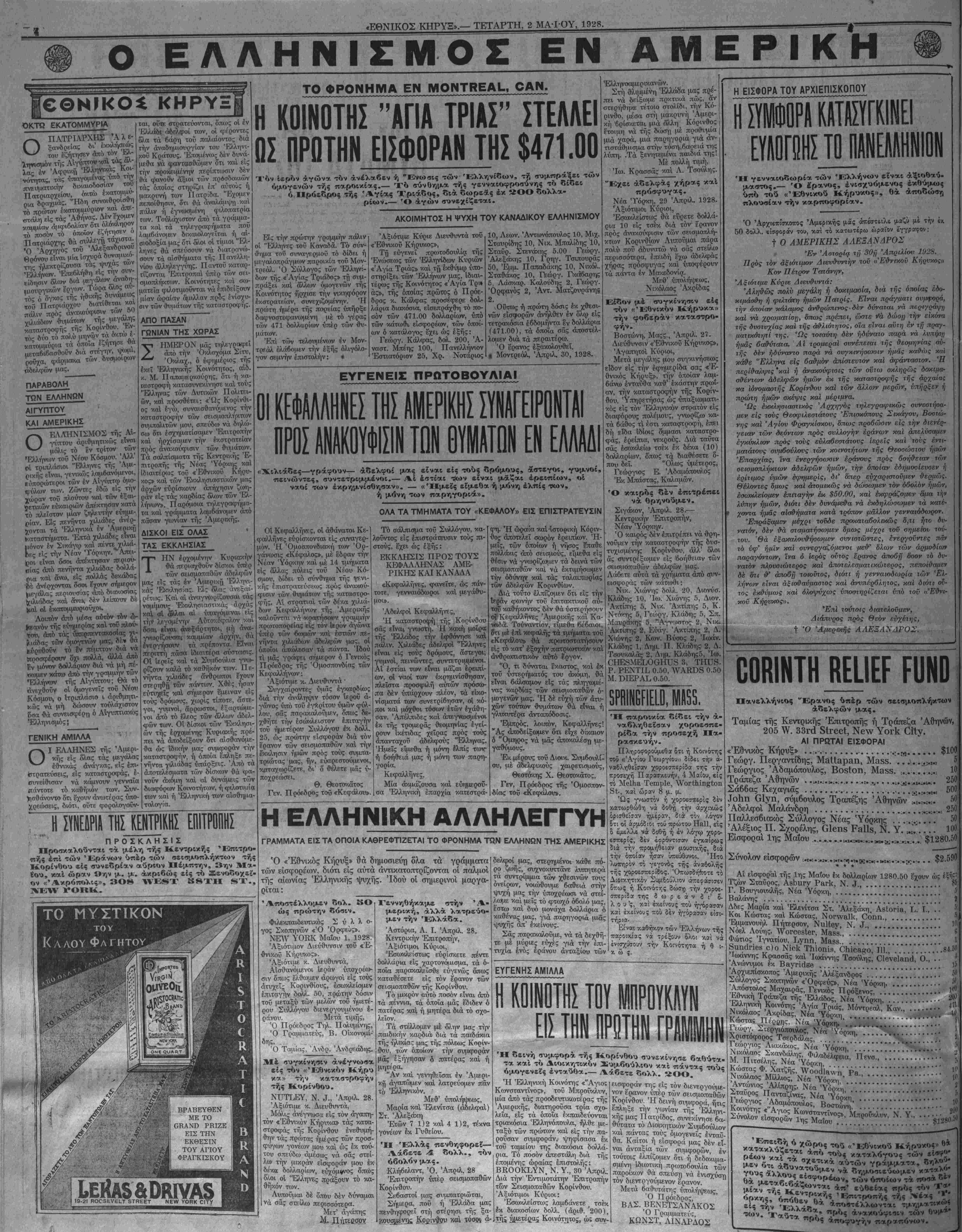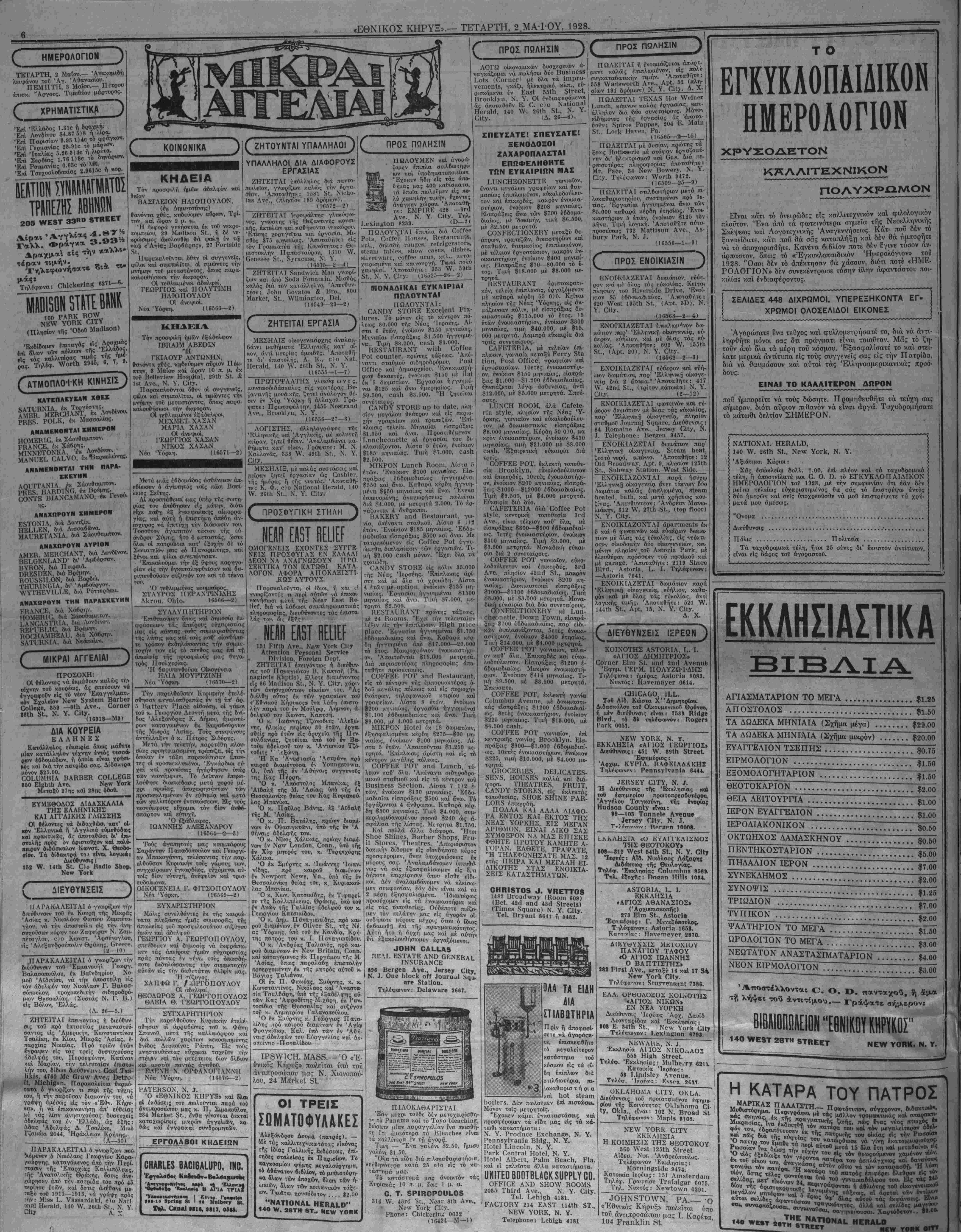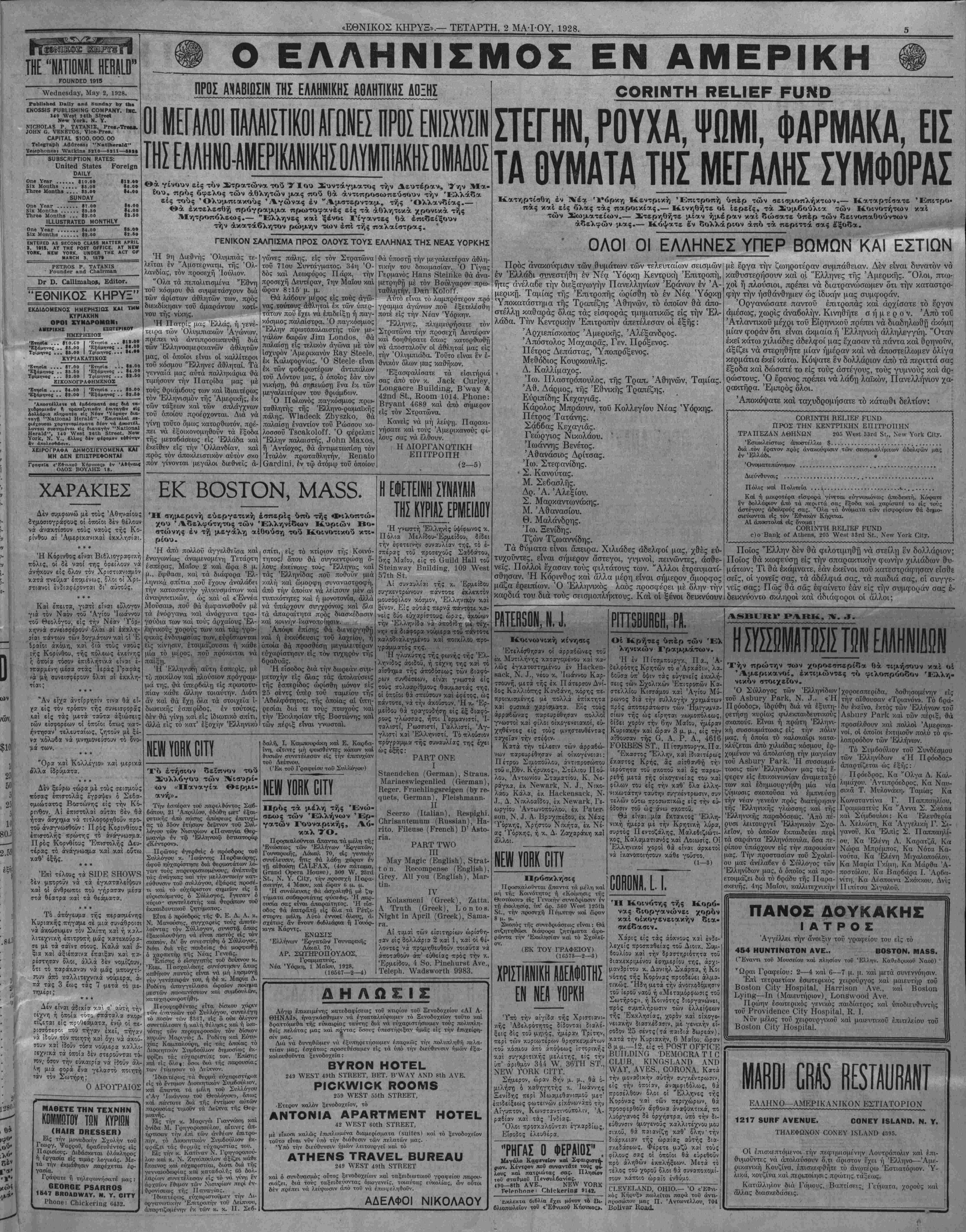 ΝΕΥ ΥΟΚΚ, ΤΕΤΑΡΤΗ, 2 ΜΑ-ΙΌΥ, 1928.