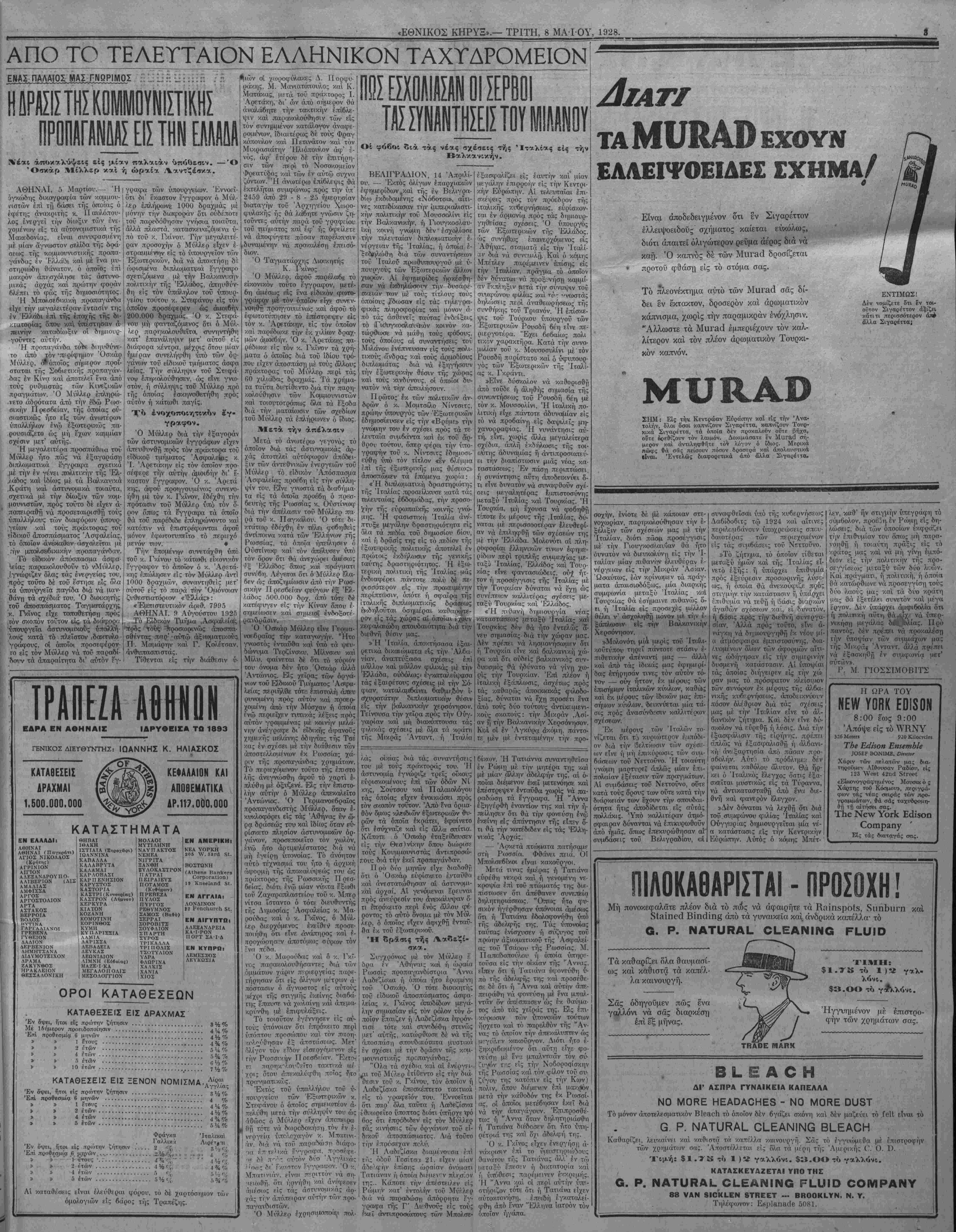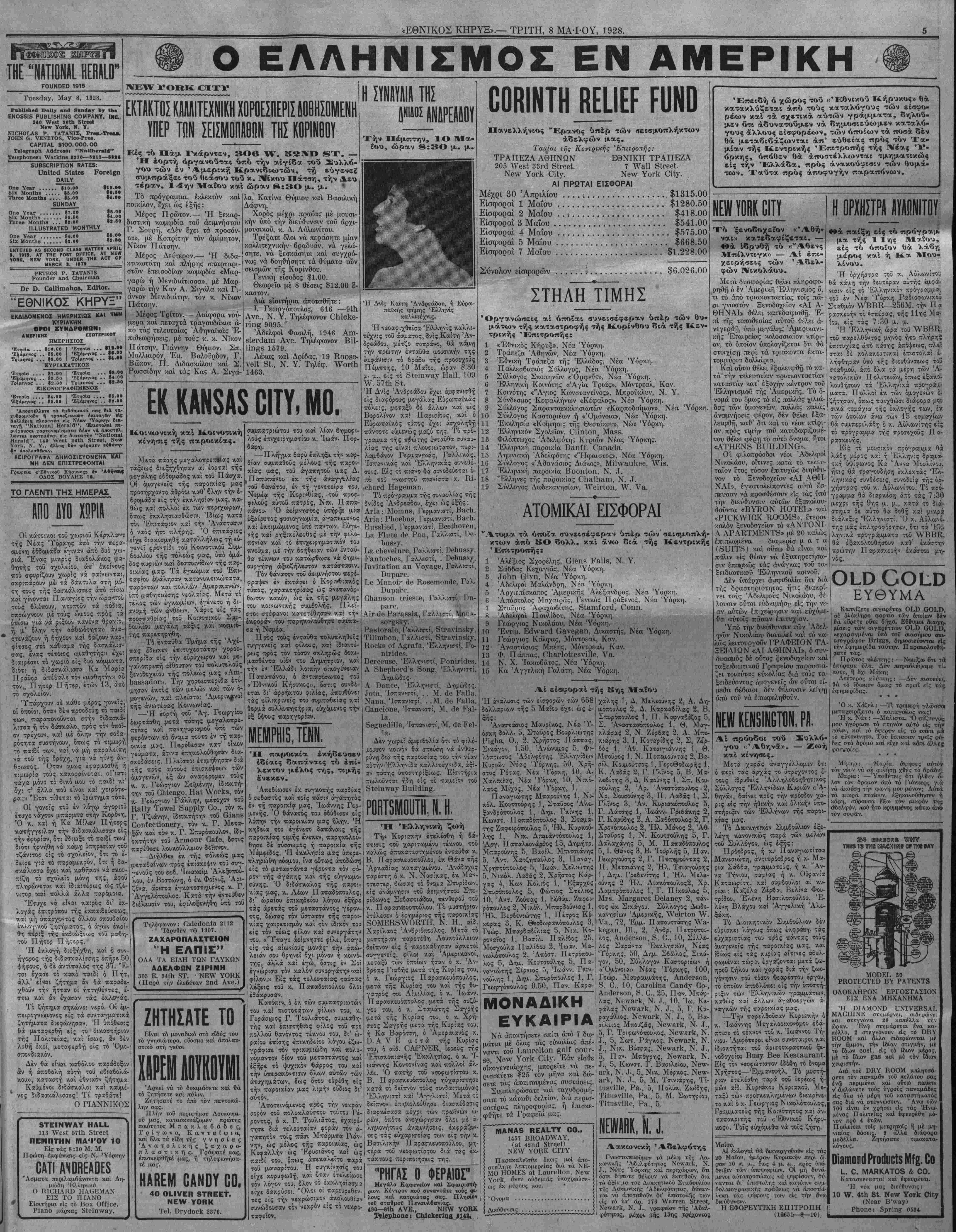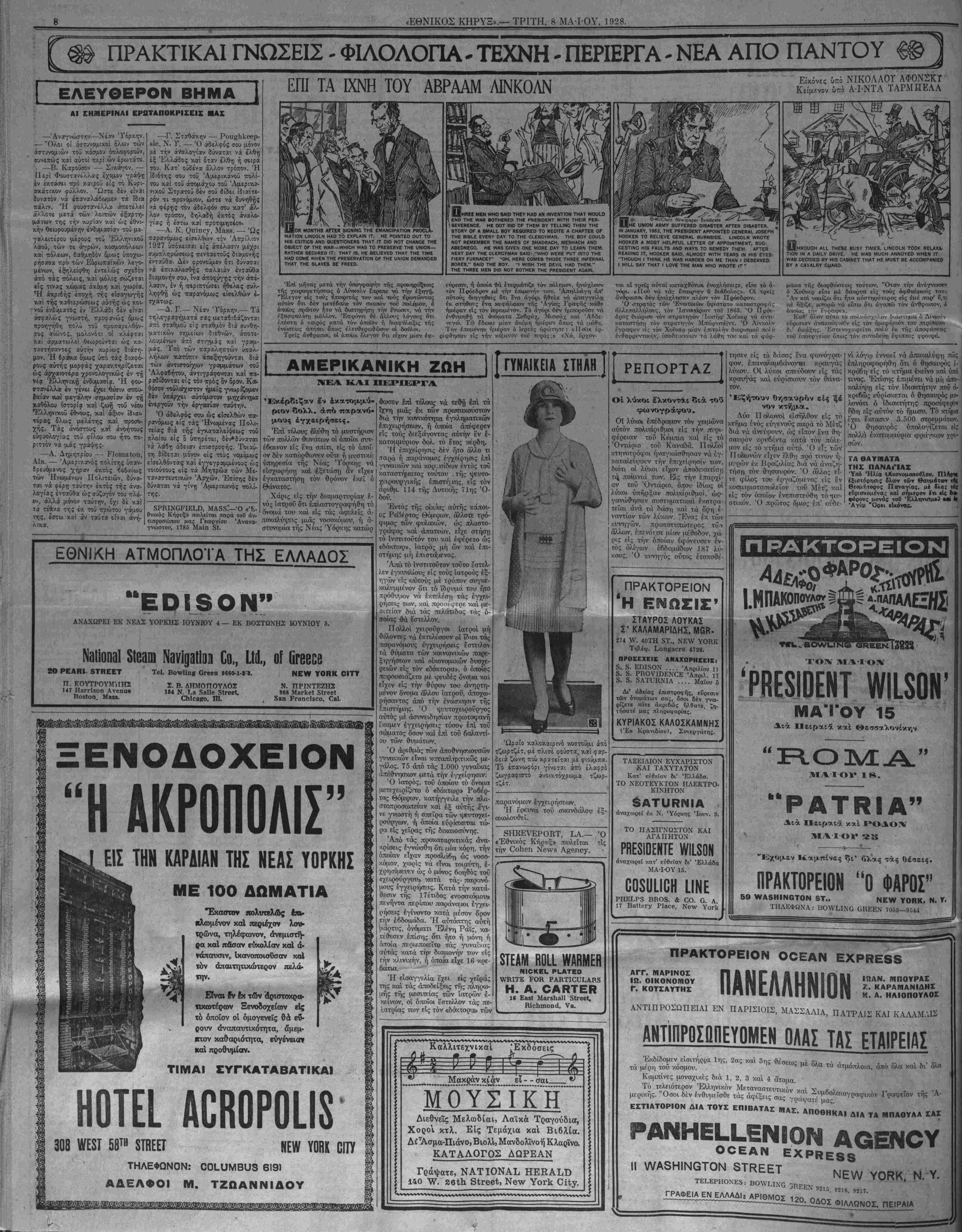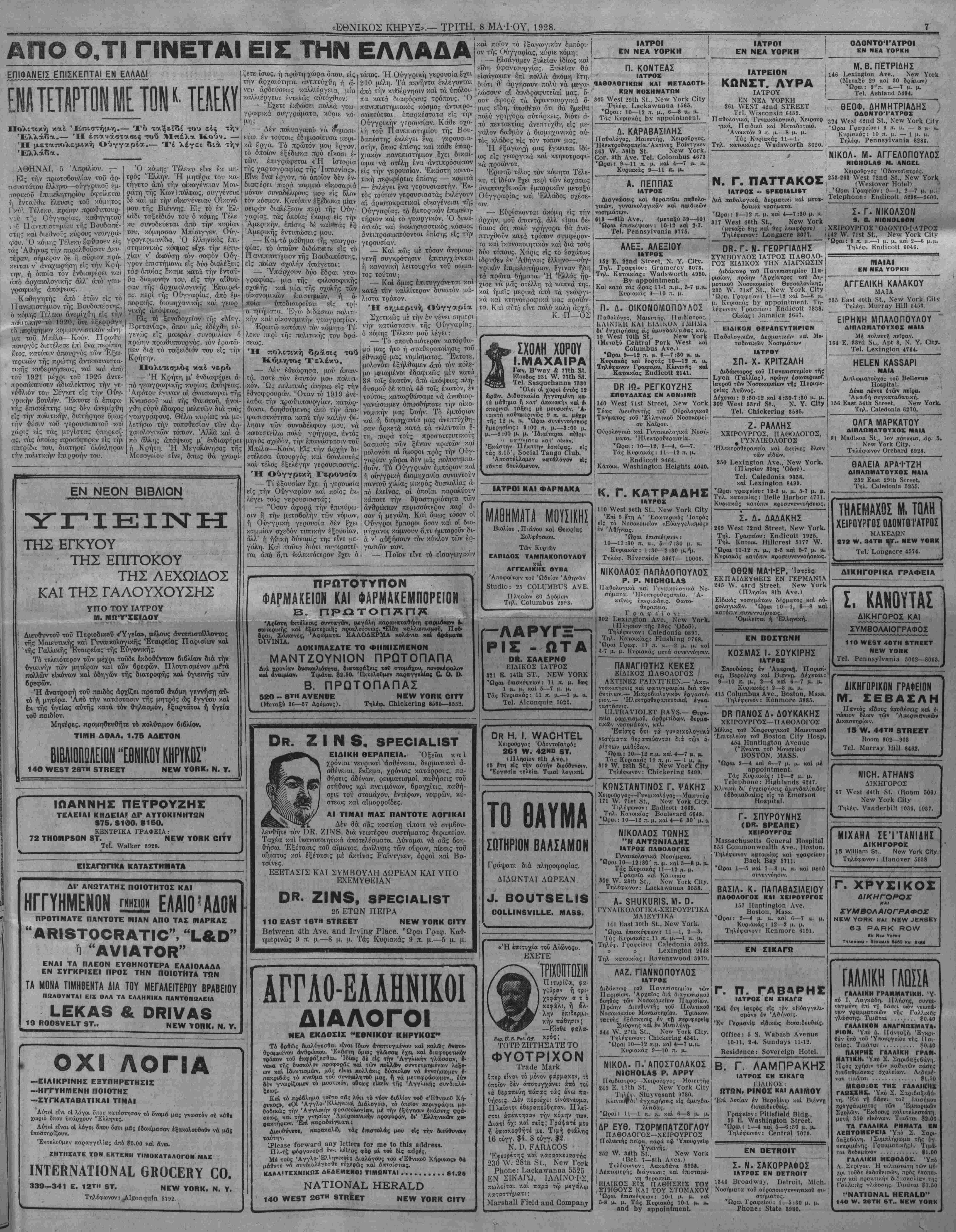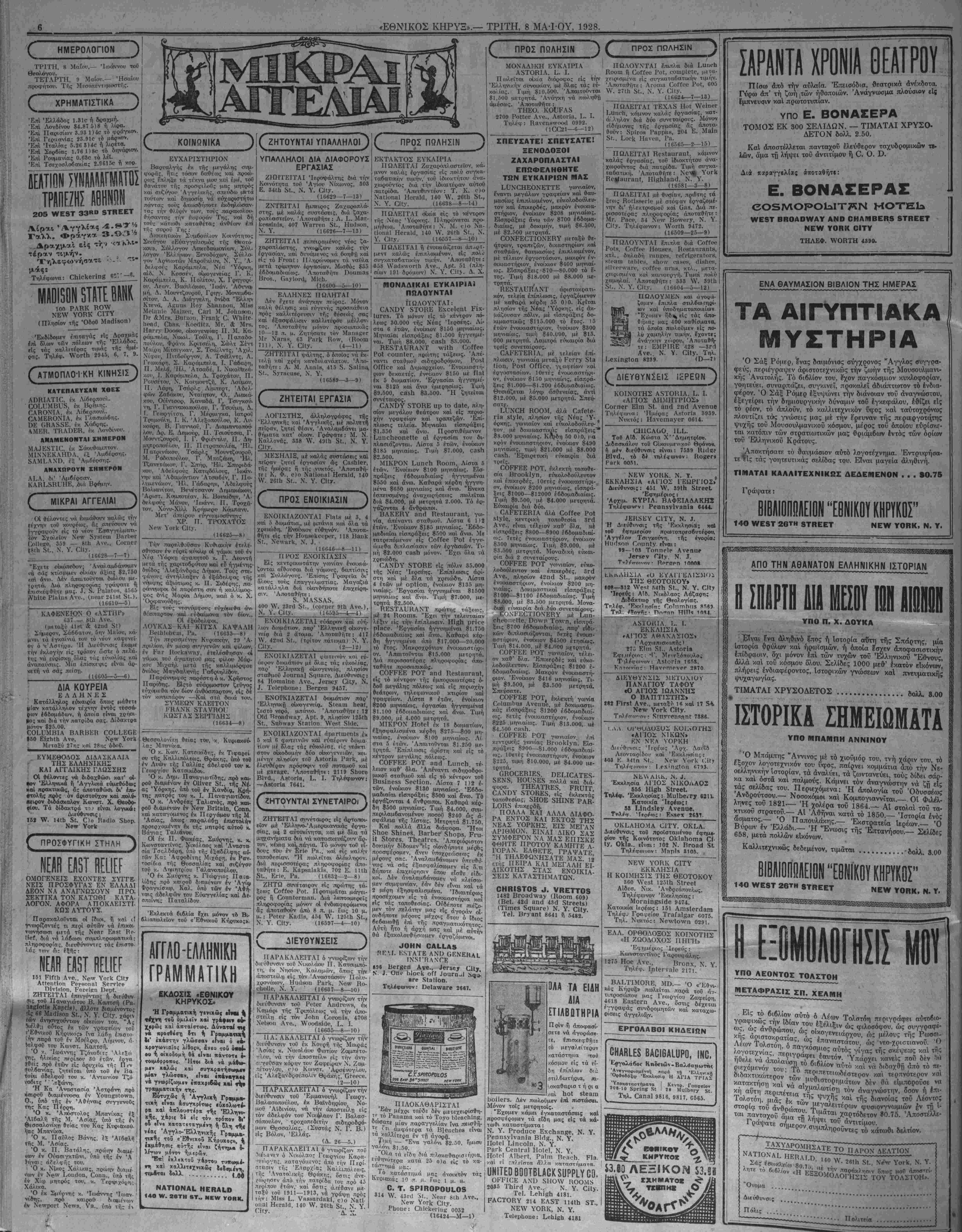 ΝΕΥ ΥΟΚΚ, ΤΡΙΤΗ, 8 ΜΑ-ΓΟΥ, 1928.