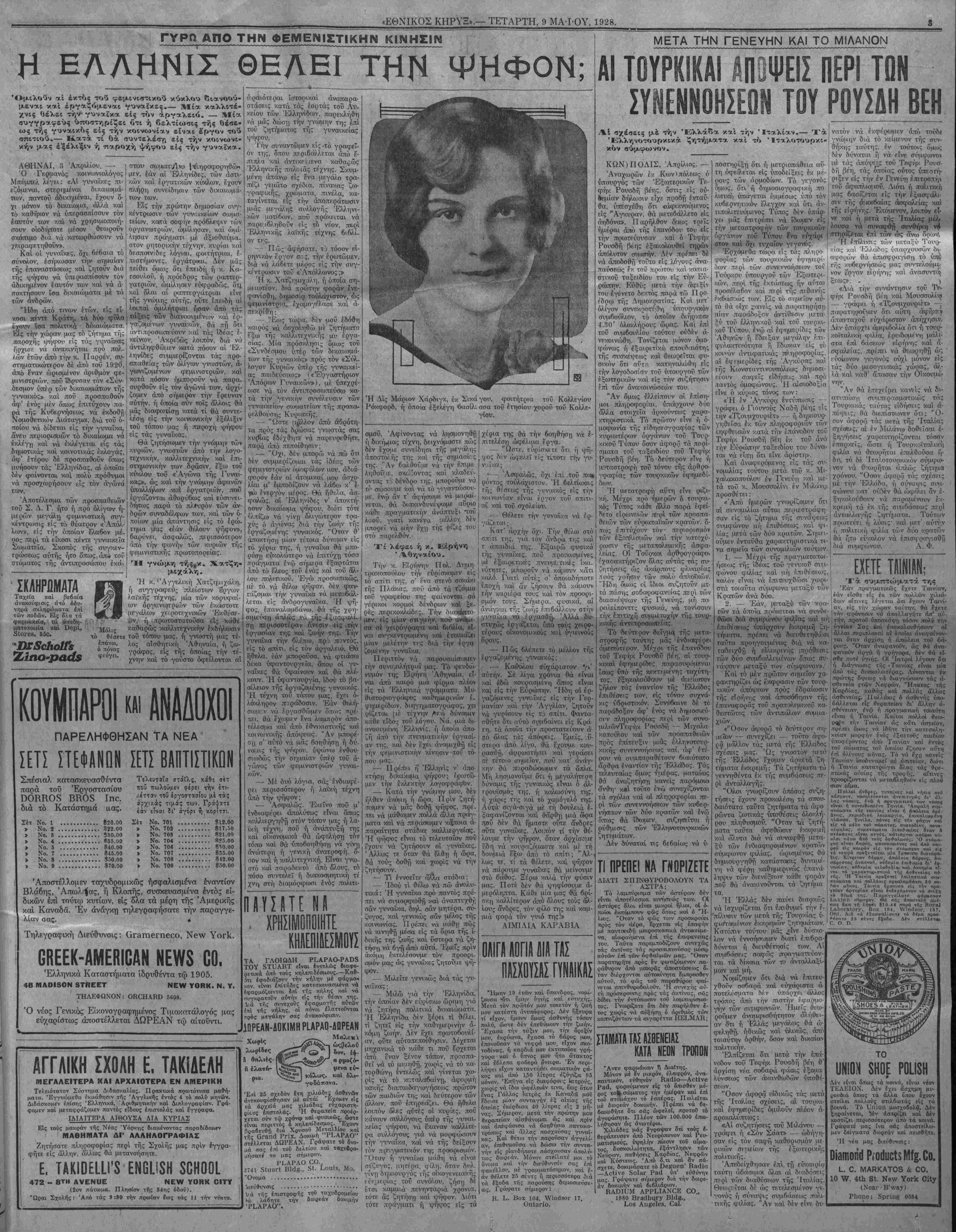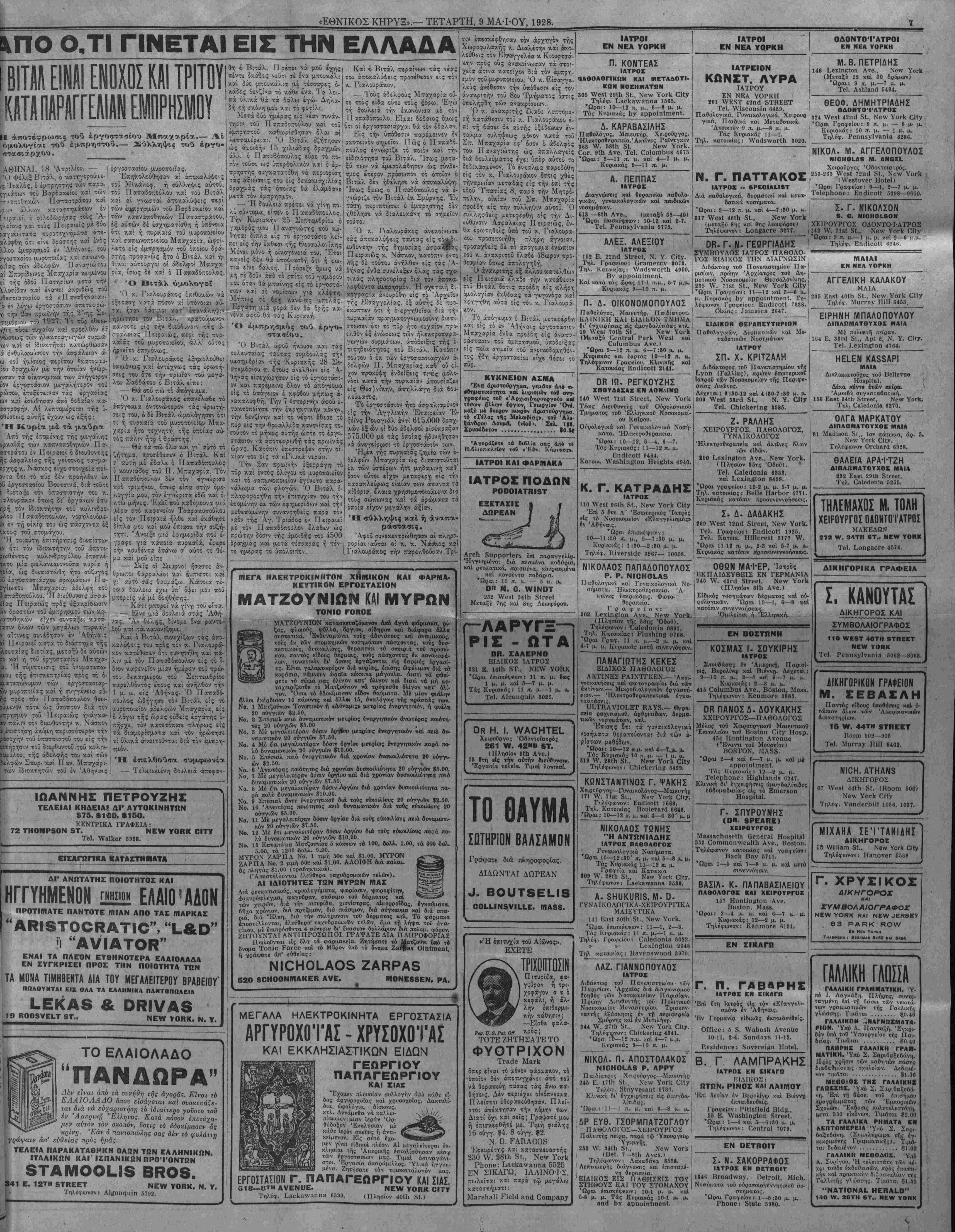 Κ.<ατα τόν συμβιβασμόν χρηαιμοποιεΐται τό μα· χαΐρι. ΕΙ; Νιοί.άν, παιρά την Νεάπο¬ λιν τής Ιταλίας, ενας, ονόματι Ταψοΰρι·, 'έδικάζετο ενώπιον τοΰ Πληαμελειοδικείου επ! εξυβρίσει μιάς γριτόνισσά; τοί), ονόματι Λσυ ίζαν Νοτάρο. Ό εΐρηνοδΐκης κα- τώρθωοιε νά τού; συμβυ5άστ, καί ΤΟ ΕΓΚΟΑΠΙΟΝ ΤΟΥ ΟΡΟΟΑΟΞΟΥ ΕΛΛΗΝΟΣ Ν- ΑΙ ΑΚΟΛΟΥΘΙΑΙ ΤΗΣ 0Ρ8»Α0Ξ0Υ ΕΚΚΛΗΣΙΑΣ- ΤΑ ΕΥΑΓΓΕΛΙΑ ΚΑΙ ΟΙ ΑΠΟ. ΣΤΟΛΟΙ ΟΛΟΥ ΤΟΥ -ΤΟΥΣ, ΚΑΠ. —Ή πολυτελεστέρα έκ των μέχρι τούδε Έλληνικών έκδόσεων. Λαμπρός γάοτης αρίστη έκτΰπωσις. Κομψότατος καί εΰχρηστος τόμος μέ ύπερπεντακοσίας πενήντα σελίδας, χρυσοδετος, με δερμα πολυτελείας. Την έκδοσιν ταύτην, την οποίαν συνιστοΰν ιδιαιτέρως οί Πατριάρχσι τής Άνα- θνικών μας μεσαιωνικών μνημείων. Ή πολυτελεστάτη αύτη εκδοσις τοΰ «Έθν. Κήρυκος»—μ*ία έκδοτική επ σις—άμιλλωμένη πρός τάς καλλίστας άγιογραφικάς έκδόσεις των Εΰρωπαί επαναστα- ωπαιων και Αμερικανών, χρυσοδρμένη, με δερμα βαρύτιμον, τιμάται μόνον $2.00. Γράψατε σήμερον: ΝαΙίοπΗΐ Η·3ΐ.3ΐά, 140 Υ. 261Η δι., Ν. Υ. Οϋγ. Τό έργον αποστέλλεται καί ('. Ο. Ό. Εάν δέν εύρητε τό έργον άναότερον πάσης περιγραφήν έντός δύο ημερών σας έπιστρέφομεν τα χρήματά σας. ' ί" Π ΡΑΚΤΟΡΕΙΟ Ν -ΠΑΠΑΛΕΪ//Σ τε_. ΑΡΚΑΔΕΣ ΕΚΔΡΟΜΗ ΛΙΑ ΤΗΝ ΤΡΙΠΟΛΙΝ Ο ΝΟΜΟΣ ΑΝΑΣΤΑΤΟΣ ΘΑ ΥΠΟΔΕΧΘΗ ΤΟΥΣ ■ ΠΡΟΕΤΟΙΜΑΣΙΑΙ ΩΝ" ΠΥΡΕΤΩΔΕΙΣ "ΕΔΙΣ ΙΟ1ΤΑΙΟ1» ί*Ο Γράψατε δια λεπτομερείας. ΓΕΩΡΓΙΟΣ ΜΠΑΚΟΠΟΥΛΟΣ, έκ Τριπόλεως. ΠΡΑΚΤΟΡΕΙΟΝ "Ο ΦΑΡΟΣ" 59 ννΑδΗΙΝΟΤΟΝ 8Τ., ΝΕνΥ ΥΟΒΚ ΟΙΤΥ Τηλέφωνα: Βολνΐΐη^ ΘΓθβΠ 7059—9541 ΑΙΜΙΛΐργ ΖΟΛΑ ΖΩΗ ΚΑΙ ΑΓΑιΊιΊ ΟΙ ΤΕΣΣΑΡΕΣ ΗΜΕΡΕΣ ΤΟΥ ΓΙΑΝΝΗ ΓΚΟΥΡΡ όβοντοϊατρου κ. θά «ελξτι τούς αναγνώστας τού. «τγ,νίϋΓ^'/111 »ι«λοβββ(«>«ιίΑν τλ