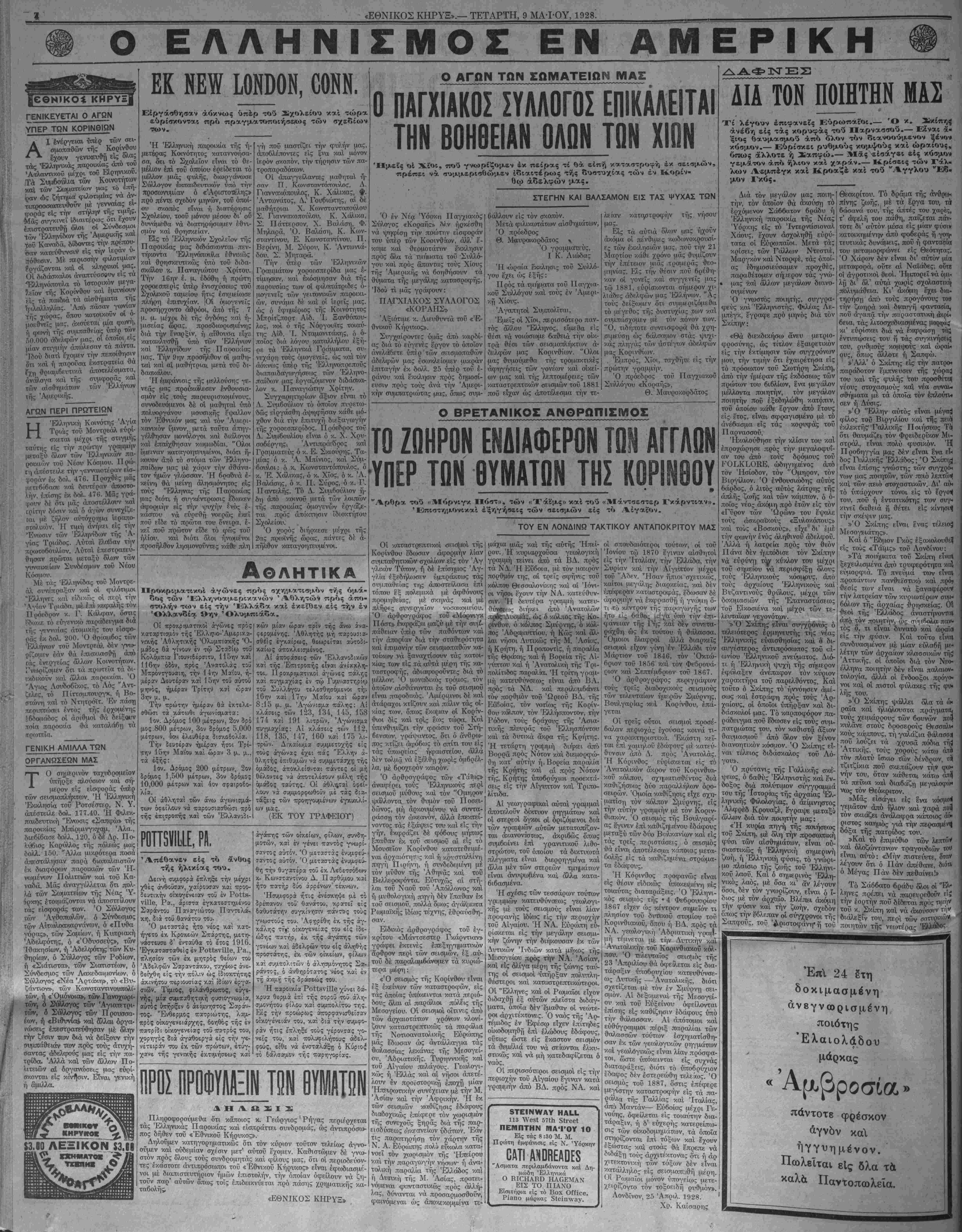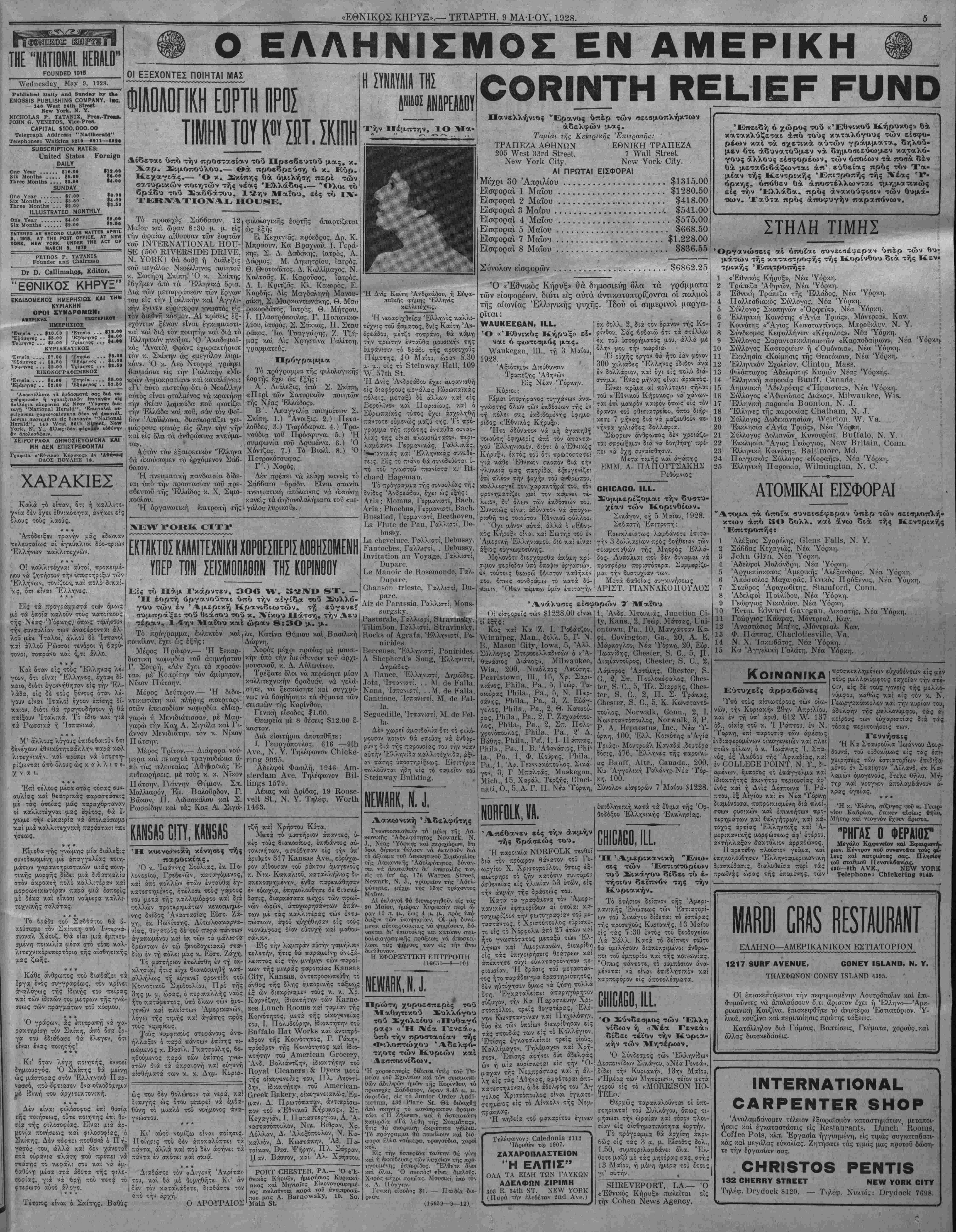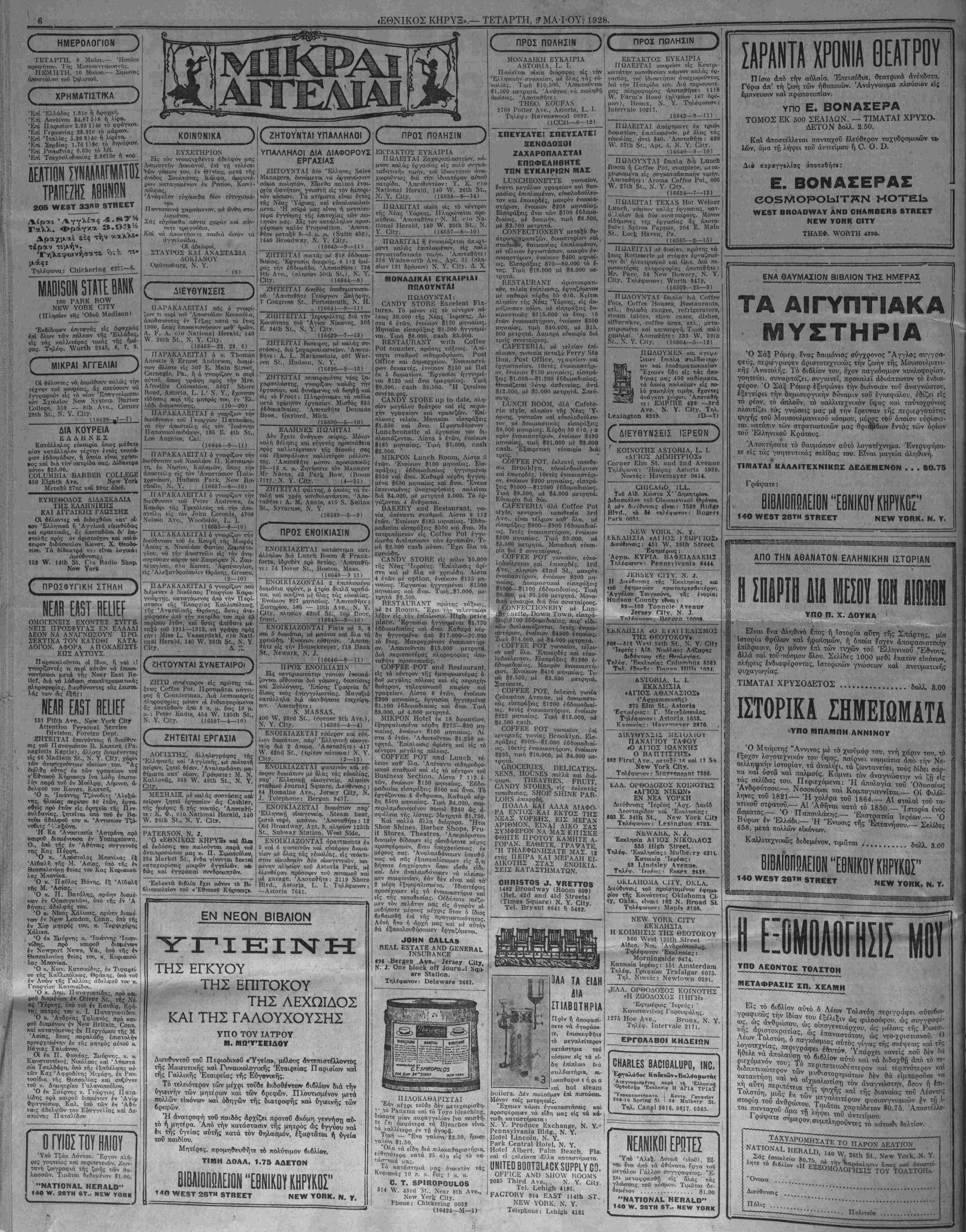 ΝΕΥ ΥΟΚΚ, ΤΕΤΑΡΤΗ, 9 ΜΑ-ΙΌΥ, 1928.