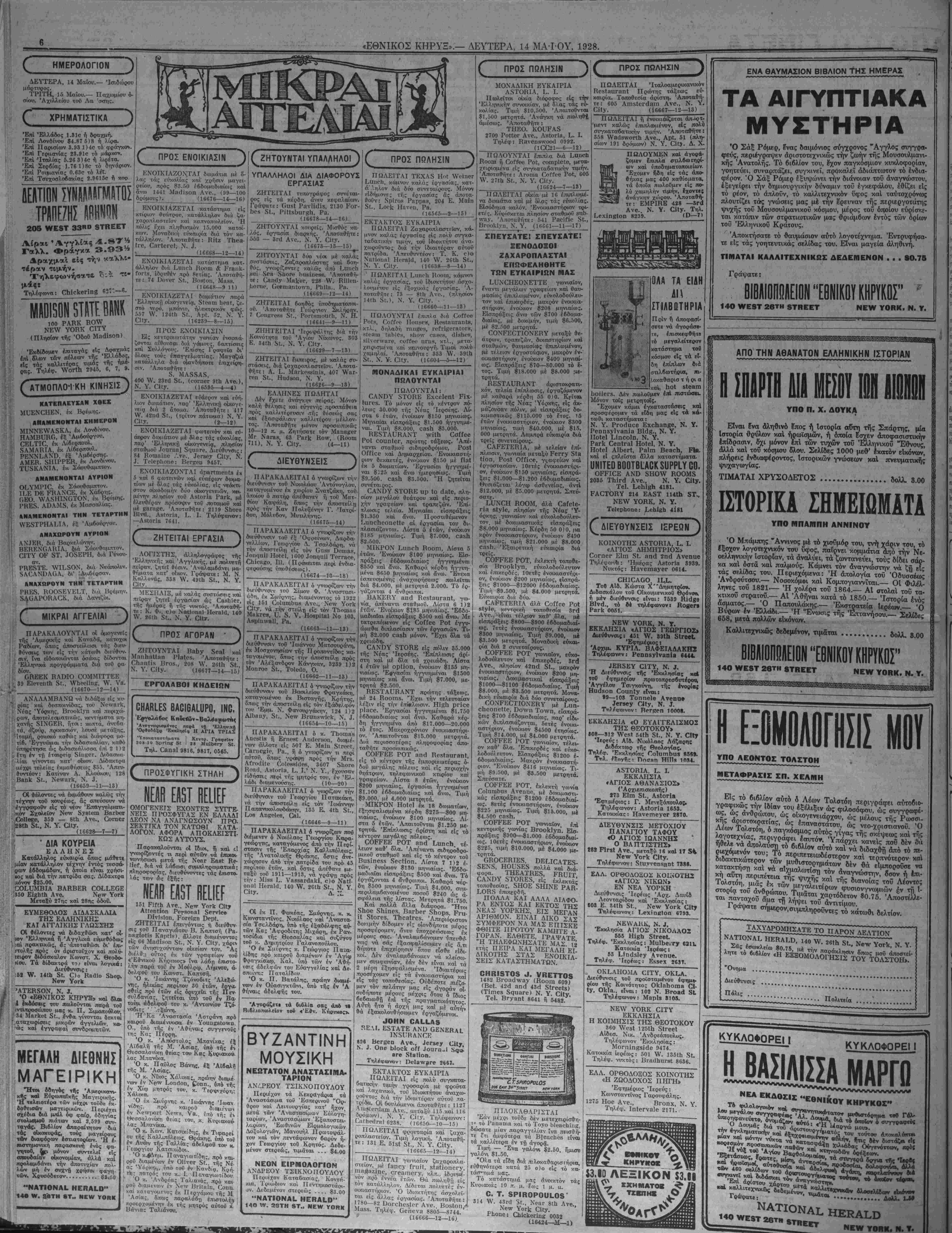 ΝΕΥ ΥΟΚΚ, ΔΕΥΤΕΡΑ, 14 ΜΑΙΟΥ, 1928.