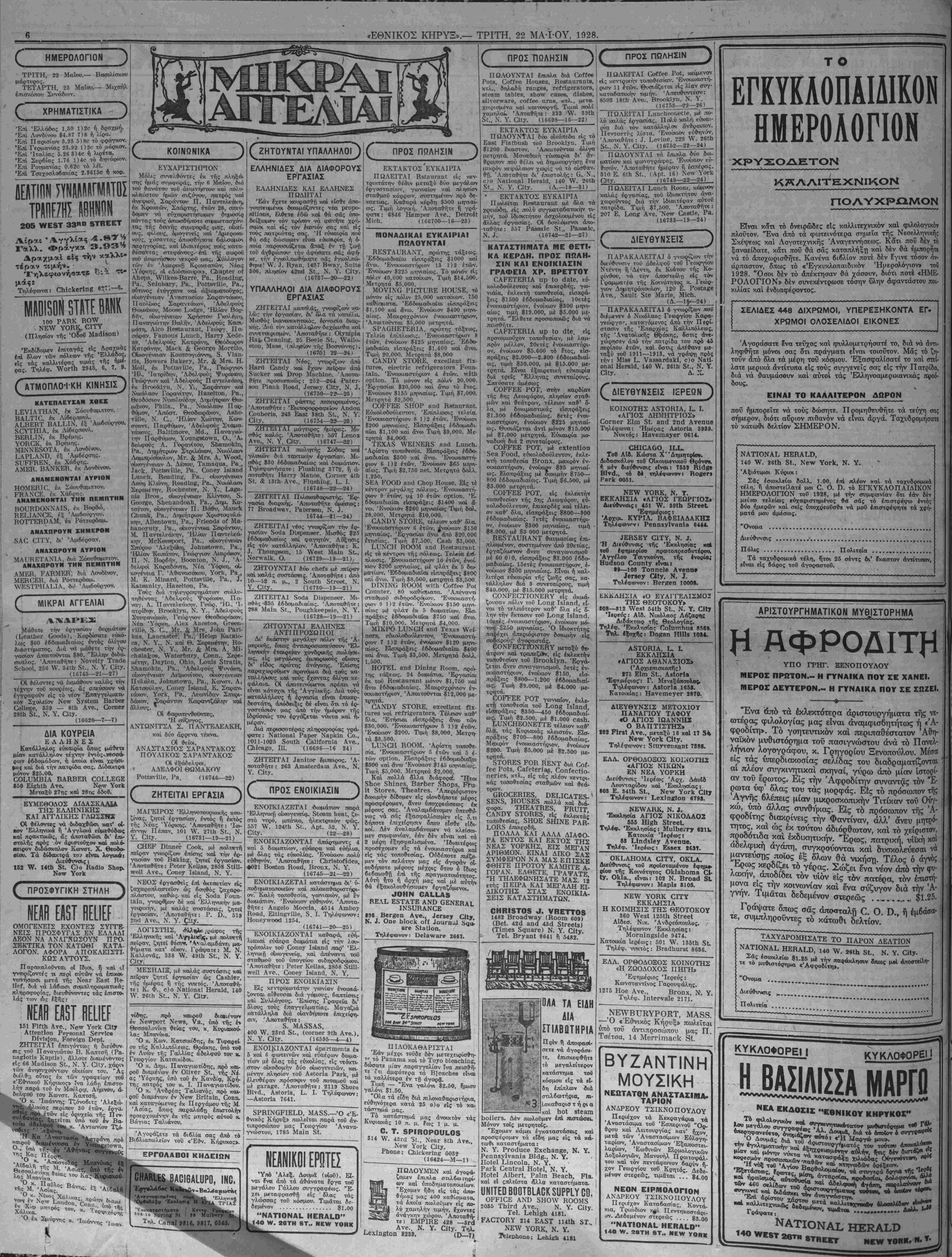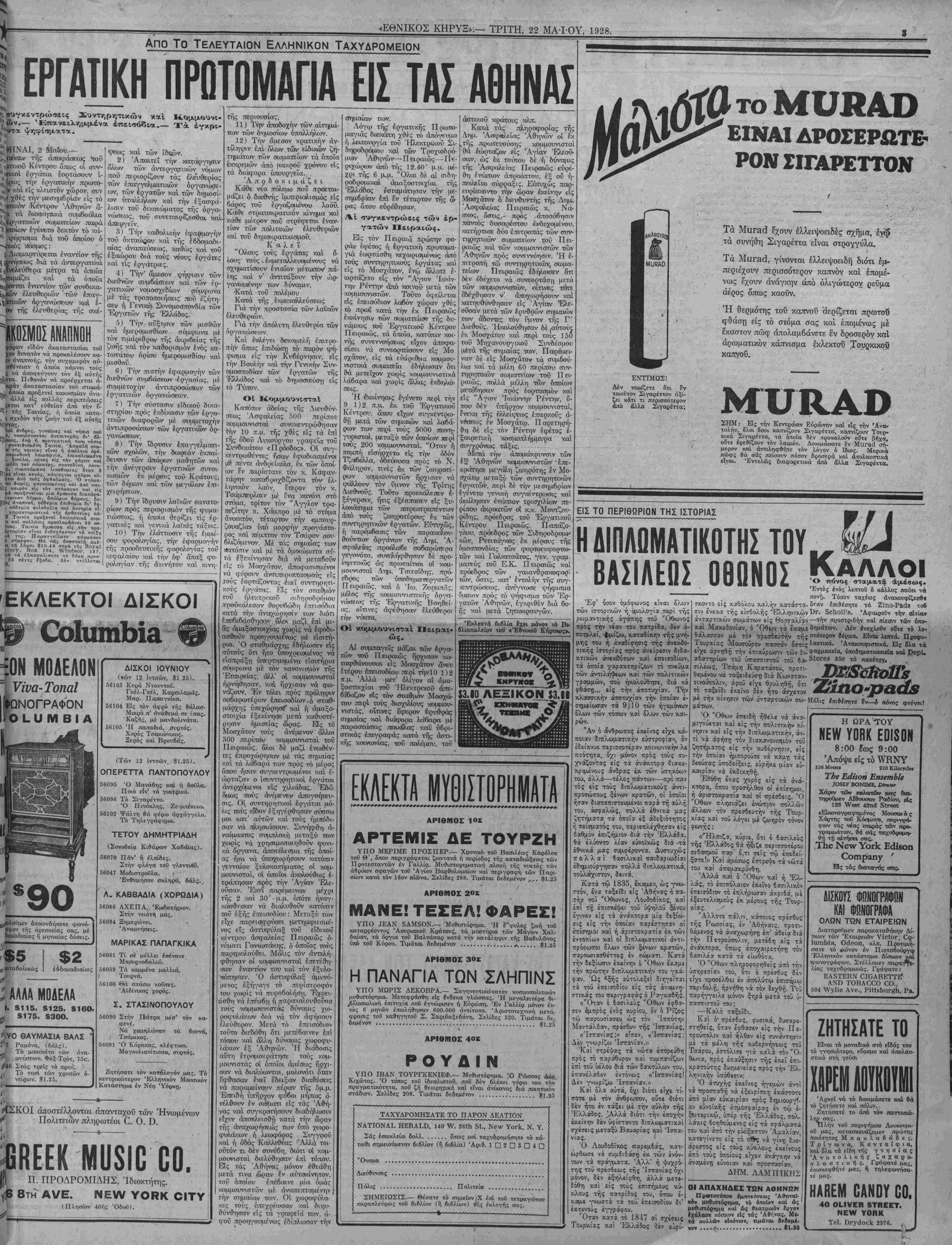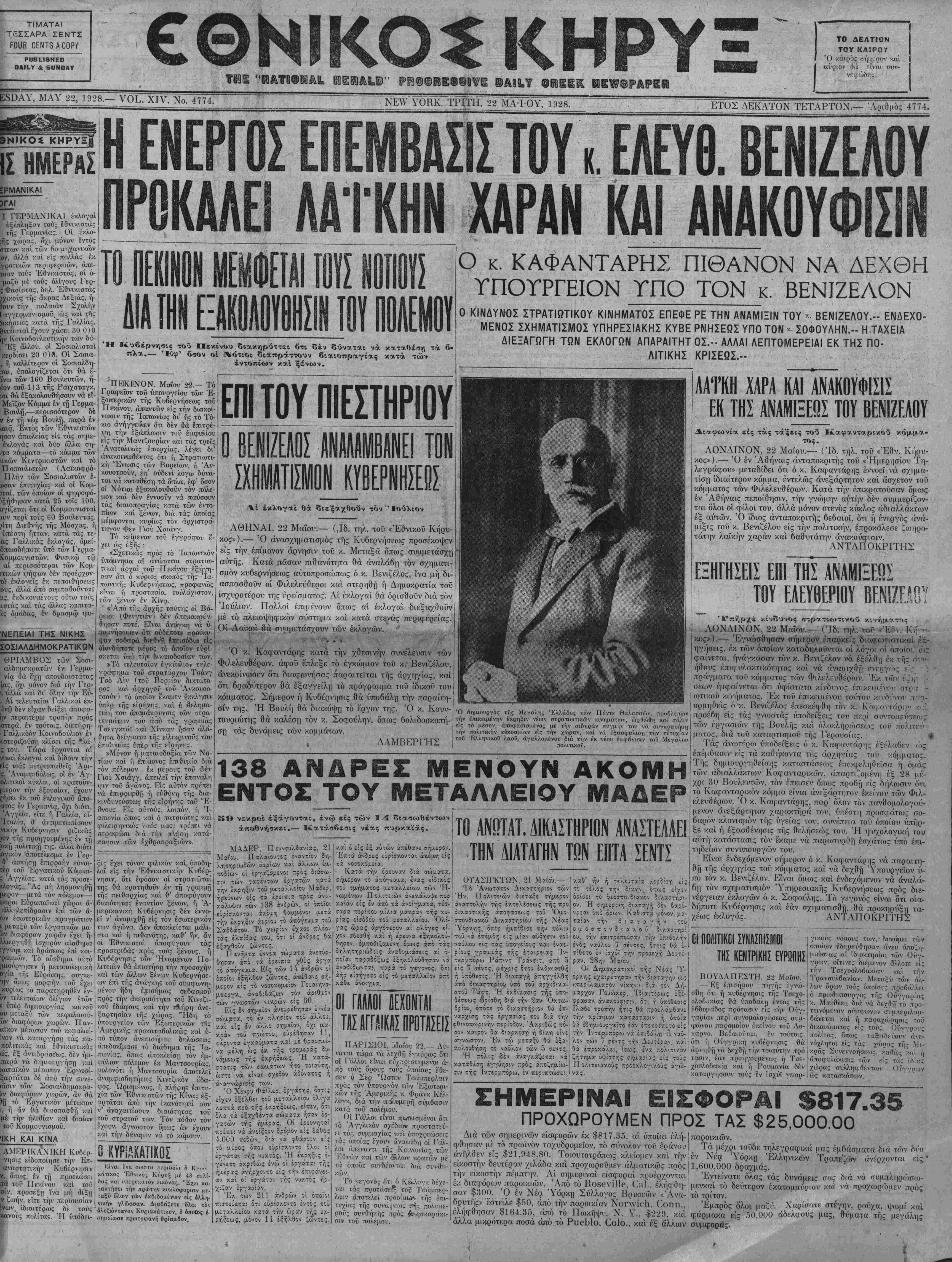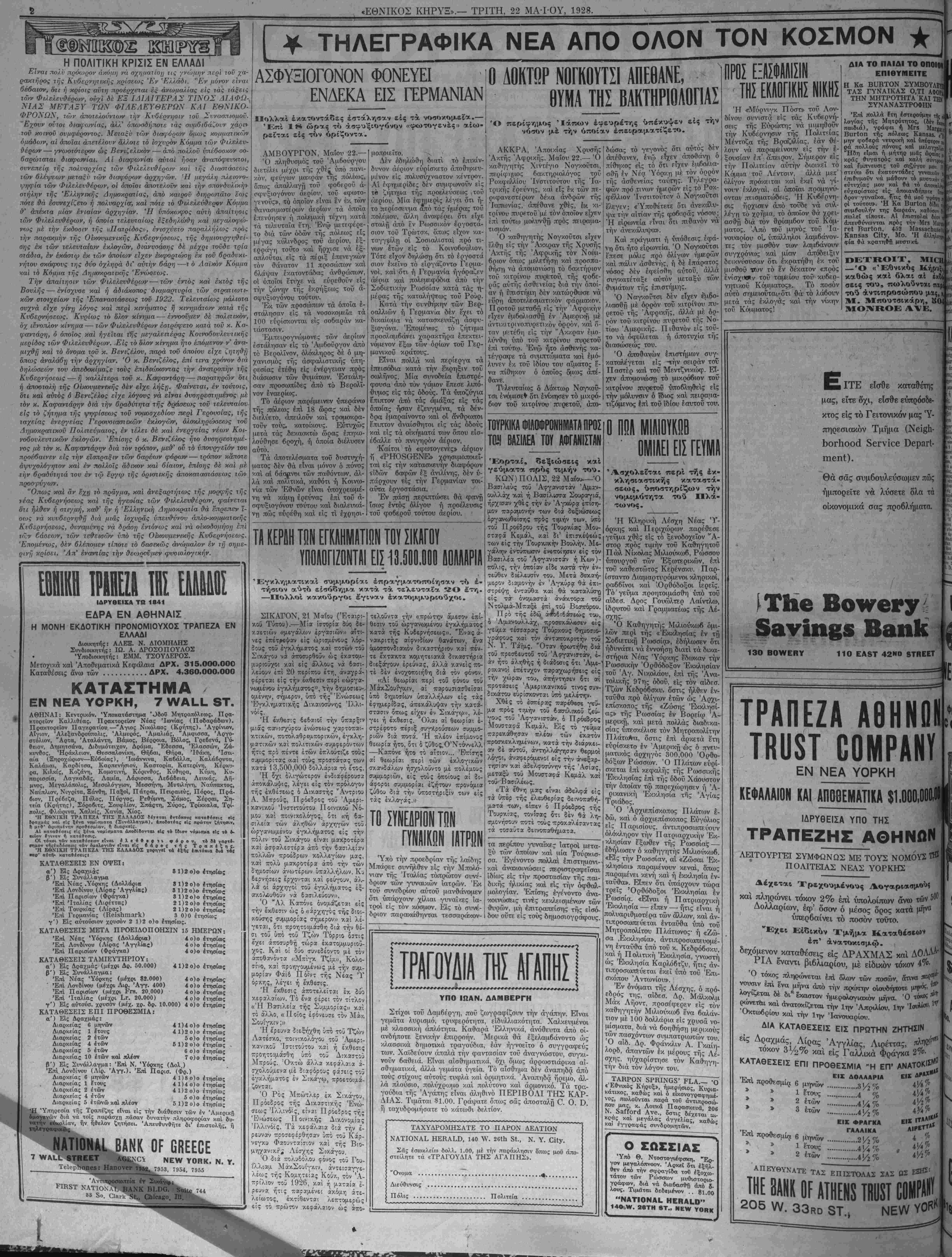 Ό καιρος σηΜ, ρ<τν ν.αί αν οίον θά ιΊναι συν- ντφώδης. Ε8Ι)ΑΥ, ΜΑΥ 22, 1928.— ΥΟΙ.. XIV. Νο. 4774. ΝΕΥ ΥΟΚΚ. ΤΡΙΤΗ, 22 ΜΑ-ΙΌΥ, 1928.. ΕΤΟΣ ΔΕΚΑΤΟΝ ΤΕΤΑΡΤΟΝ.— 'Λρ.Ομός 4774. 9ΝΙΚΟ* ΚΗΡΥΞ| Β ΕΡΜΑΝΙΚΑΙ 3ΓΑΙ Ι ΓΕΡΜΑΝΙΚΑΙ εκλογαί έξέπληξαν τοΰς έθνικιστάς τής Γερμανίας. Οί ι'κλο- [ής χώρας, οχι μόνον έντος στεων ν.αί των βυιμηχανικων [ι)λ·, άλλά καί είς πολλάς^ έκ ΐγροτικών περιψερειών, απε- ϊσαν τού; 'Εθνικιστάς, οί ό- μα'ζύ μέ τούς ολίγους Γερ- ς Φασίστας, οηλ. Έθνικιστας ρχικού; τής άκρας Δεξιάς, η- ίουν την παλαιάν Σχολήν [αγγερμανισμοθ, ώς καί τής ϋνκήσειο; κατά τής Γαλλίας. 9νικιοταί έ'χουν χάσει 30 Ο 10 ήν Κοινοβουλευτικήν των δύ- Έξ αλλου. οί Σοσιαλισταί κεοδίσει 20 0)β. ΟΊ Σοσια- ,, ή καλλίτερον οί Σοσιαλόη- !ται, ύπολογίζεται ότι θά ε- ϊνω των 160 Βουλευτών, ή- έον τοϋ 1) 3 τής Ράϊχσταγκ. :αι θά έξακολουθήσουν νά εΐ- Μεϊζον Κόμμα έν τη Γερμα- Βουλγί,—περισσότερον δέ ν έν τη νέα Βουλγ], παρά έν Ιαια. 'Εκτός των 'Εθνικιστών ήσαν απωλείας είς τας σημε- έκλογάς καί δύο οίλλα ση- ηα ν.όμματα—τό κόμμα των ^ικών Κεντρικιστών καί τό Ποπουλιστών (Λαϊκοφρό- Πλήν των Σοσιαλισται έ- υσαν επιτυχίας καί οί Κομ- ΐταί, των οποίων οί ψηφοφό- 5ξήί>ησαν κατά 25 τοίς 100.