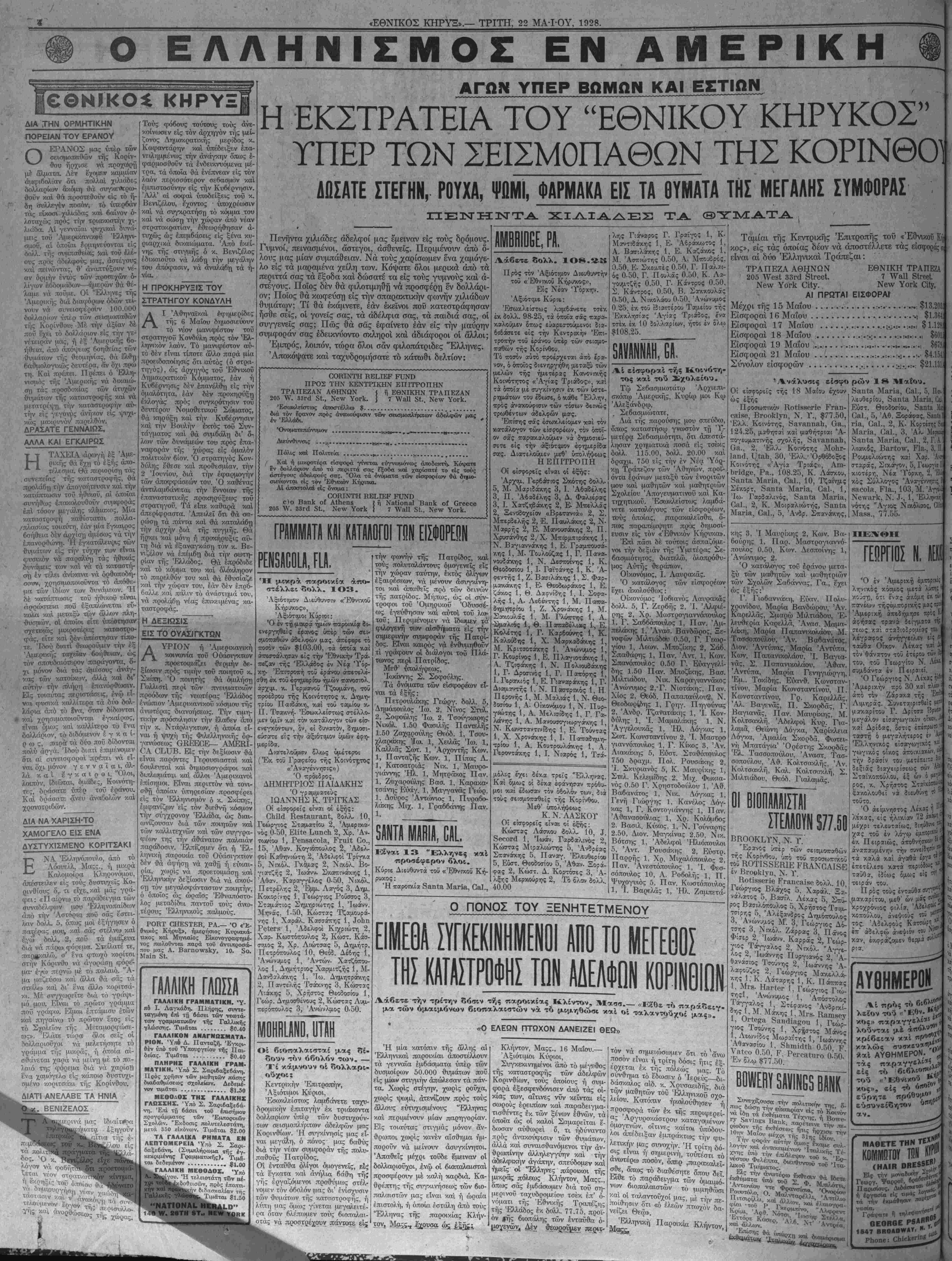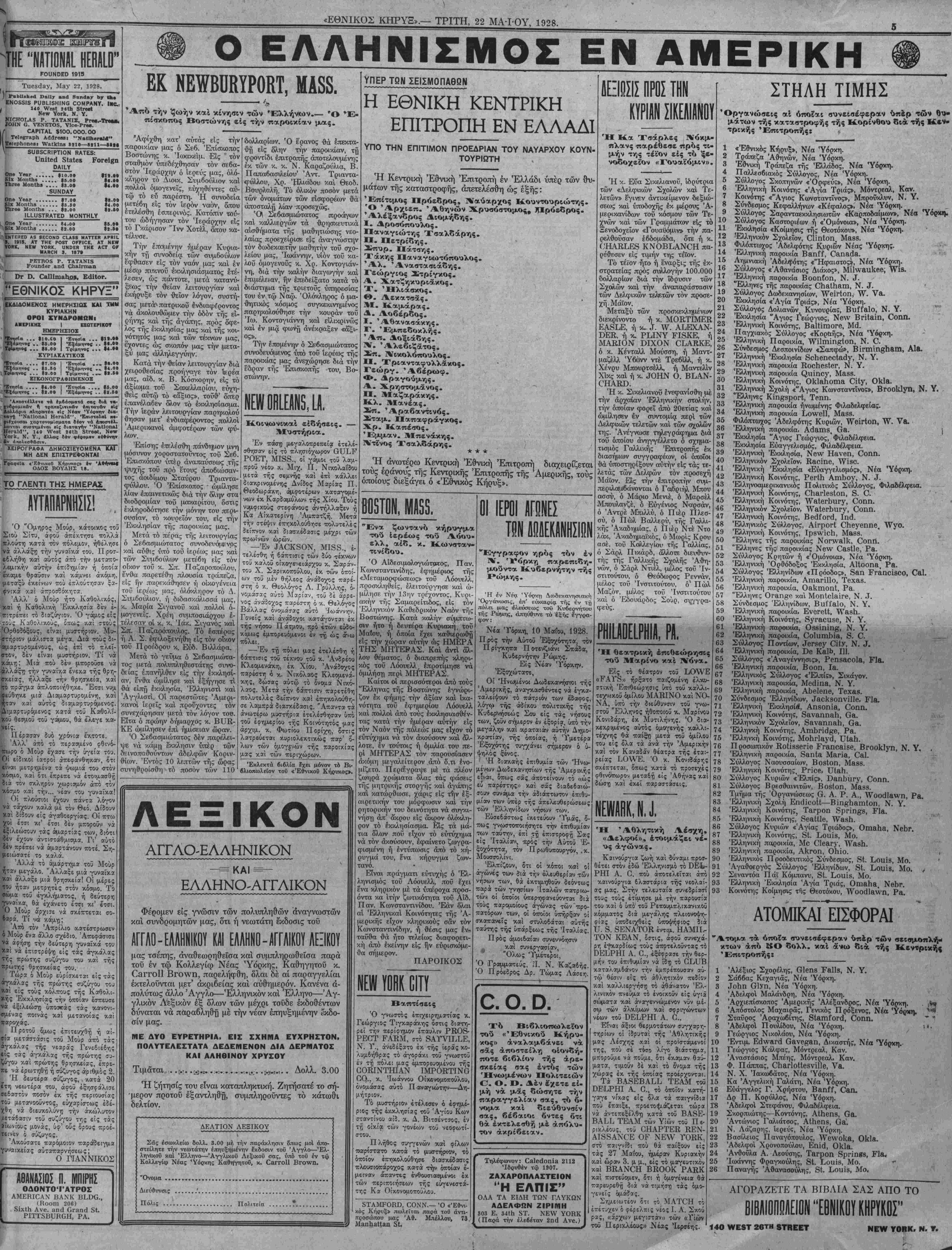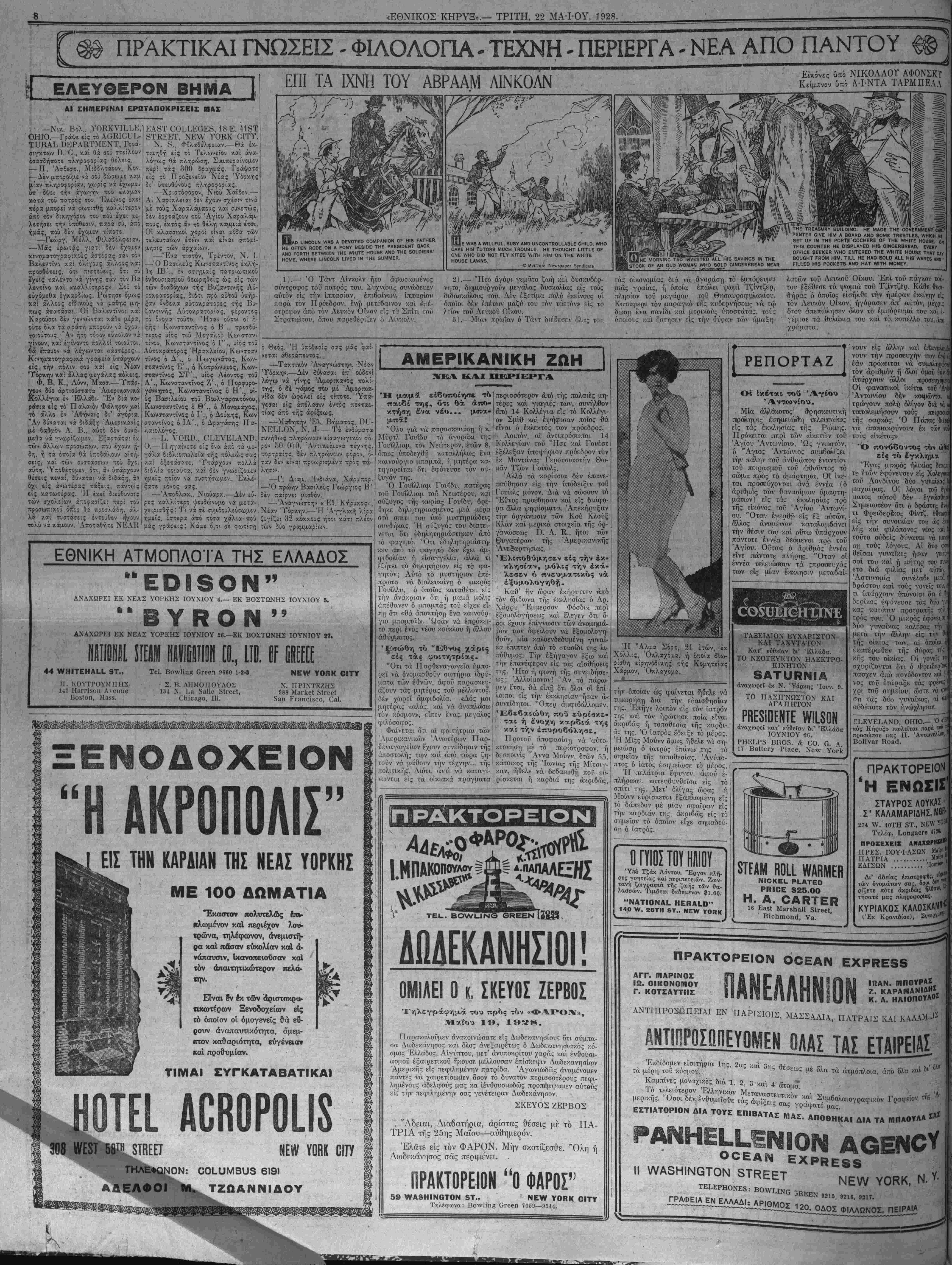 πάντοτε έννεα <^εό*ιενοι πρό τοΰ Άγιον. Ούτως ό άριθμός έννέα είνε πάντοτε πλήρης. "Οταν οί έννέα τελιιώοχχυν τα ςπροσΈυχσς των είς μίαν έκκλησιν μεχαδαί- Ο ΓΥΙΟΣΤΟΥ ΗΛΙΟΥ Υπό Τζάκ Λόντου. "Εργον πλή- ρες γοητείας καί περιπέτειαν. Ζοιν- τανή ζωγραφιά τής ζωής των θα- λαβσών. Τιμάται δεδεμε'νον $1.00. "ΝΑΤΙΟΝΑί ΗΕΒΑίΟ" 14Ο Υ/. 28ΤΗ 8Τ., ΝΕνν ΥΟΗΚ - ·'·ε. , .,.-'.^ΗΗΤ-. ... ;,.' ν;;1., , ΤΑΞΕΙΔΙΟΝ ΕΥΧΑΡΙΣΤΟΝ ΚΑΙ ΤΑΧΥΤΑΤΟΝ Κατ' ευθείαν δι' Έλλάδα. ΤΟ ΝΕΟΤΕΥΚΤΟΝ ΗΛΕΚΤΡΟ- ΚΙΝΗΊΌΝ 8ΑΤυΡΝΙΑ αναχωρεί έκ Ν. "Υόρκης Ίουν. 9. ΤΟ ΠΑΣΙΓΝΩΣΤΟΝ ΚΑΙ ΑΓΑΠΗΤΟΝ ΡΗΕδίΟΕΝΤΕ ννΙδΟΝ αναχωρεί νατ' ει'νΒεΐαν δι' Έλλάδα ΙΟΥΝΙΟΥ 26. ΡΗΕΕΡ5 ΒΗΟΧ. & ΠΟ. Γ, Λ 17 Β3110ΓΥ Ρ1306, ΝθΛΥ ΥθΓΐί νούν είς άλλην καί νούν την προσενχήν των εάν πρόκειται νά συμπλ τόν αριθμόν τ) δλοι όμοΐ εάν ύπάρχουν άλλοι ; Οί φανατικοί ίκέταιι τοΰ 'λγιι Άντωνίου δέν κ τρώγουν πολύ ολίγον διά νά α ταπολεμήσΌυν τους της σαρικός. Ό Πάπας ντΕηί νά άπσμακρΰνουν έκ των νού τούς «ίκετας». 'Ό πονόδοντος τον ι δίς τό ϊγχλημ» "Ενας μικιρός ηλικίας δεκαιπ τε έτών εφόνευσεν είς ΧιΛενοΒ τοΰ Λονύίναυ 6ύο γυναΐ: μαχαίρας. Οί λόγοι ΐοΰ ματος αυτοΰ δέν Σημειωτέον ότι ό δράστη; ό τι Φρβιδερϊκος Φίντζ. ίν^ είς την συνοικίαν τού ώς ι λής καί φιλόπονος νέος χαι ■ τούτο οΐ»ί>είς δ·ύναται νά |ΐ"ν·