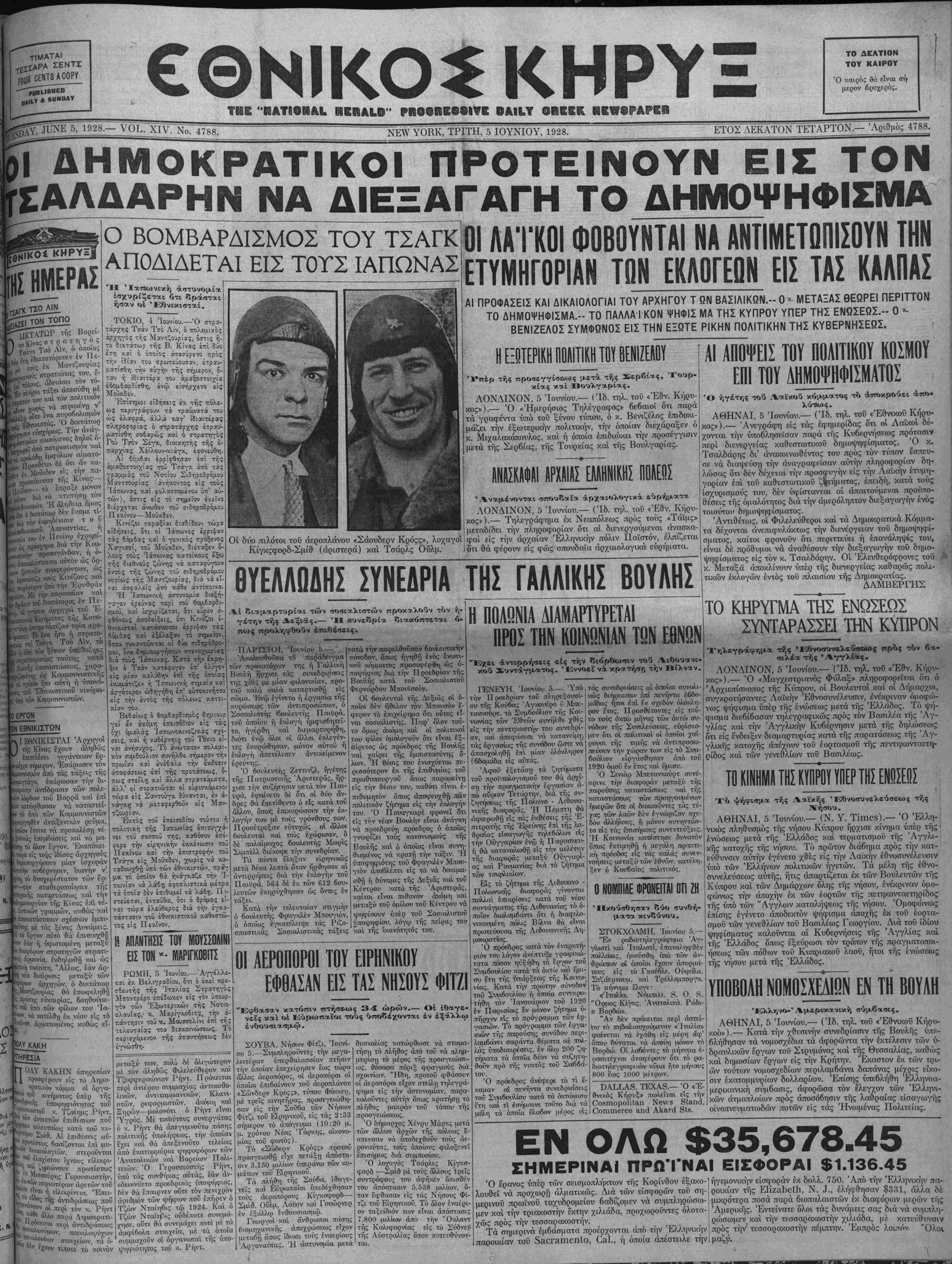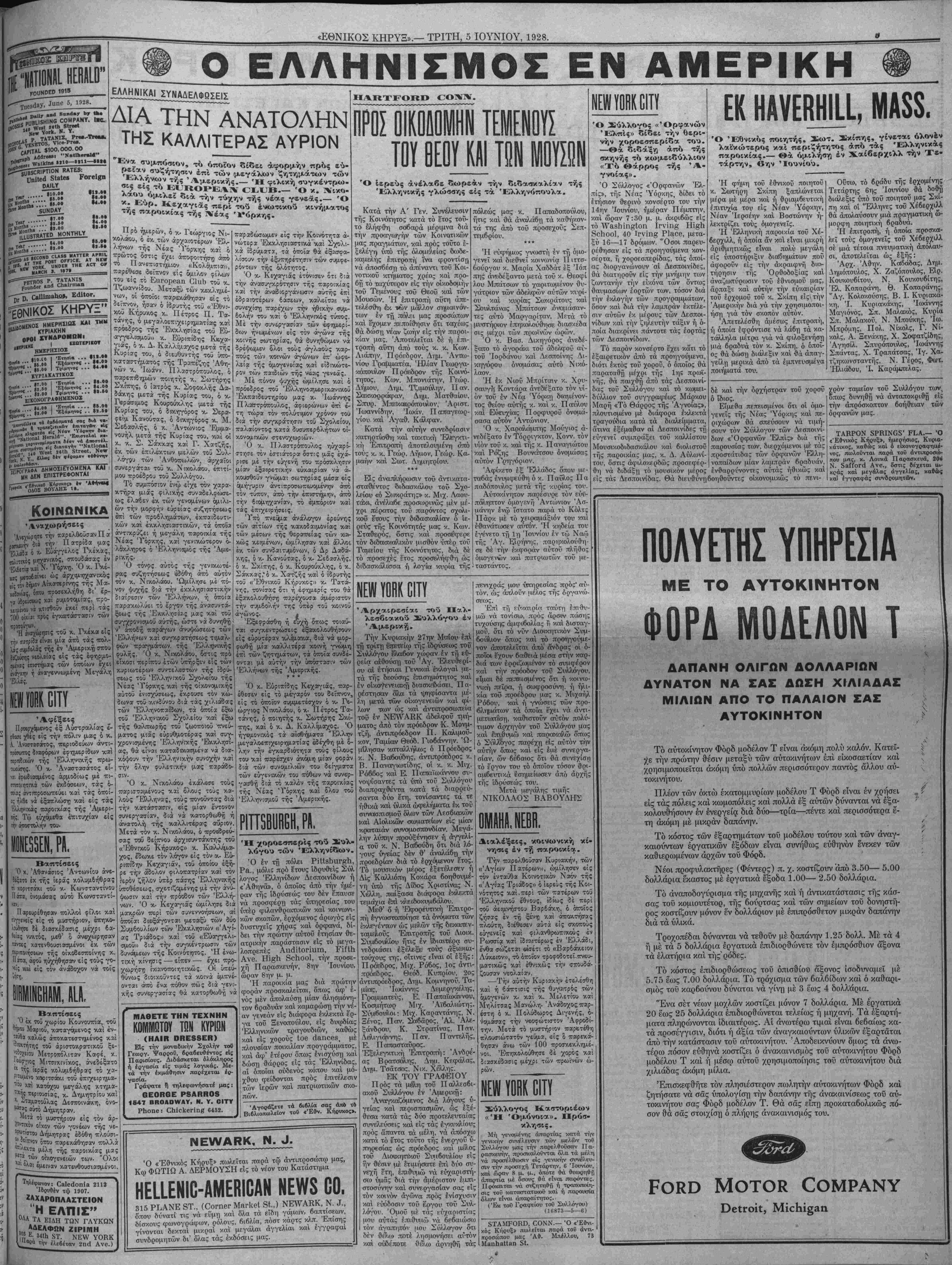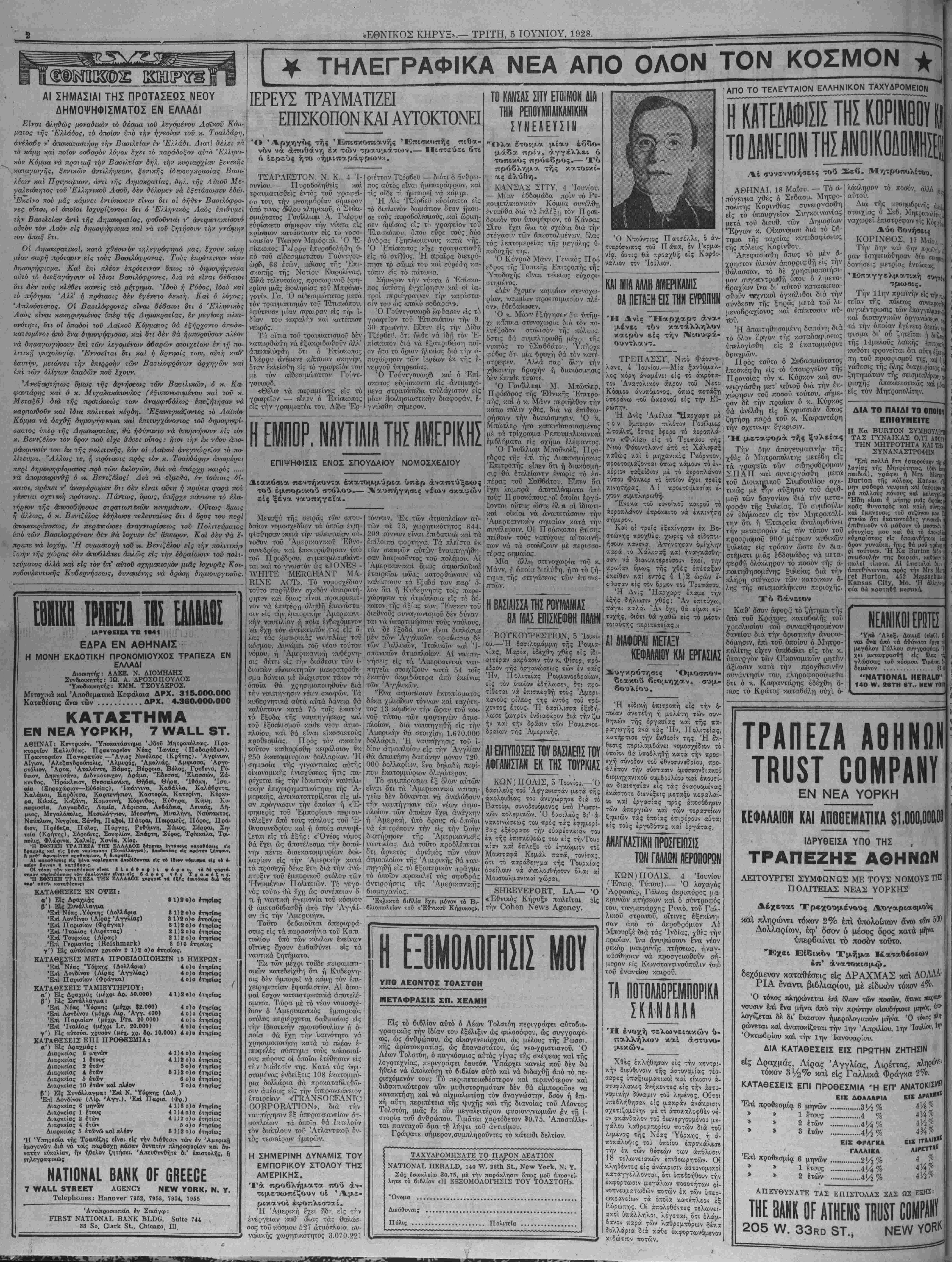ΝΕΥ ΥΟΚΚ, ΤΡΙΤΗ, 5 ΙΟΥΝΙΟΥ, 1928.