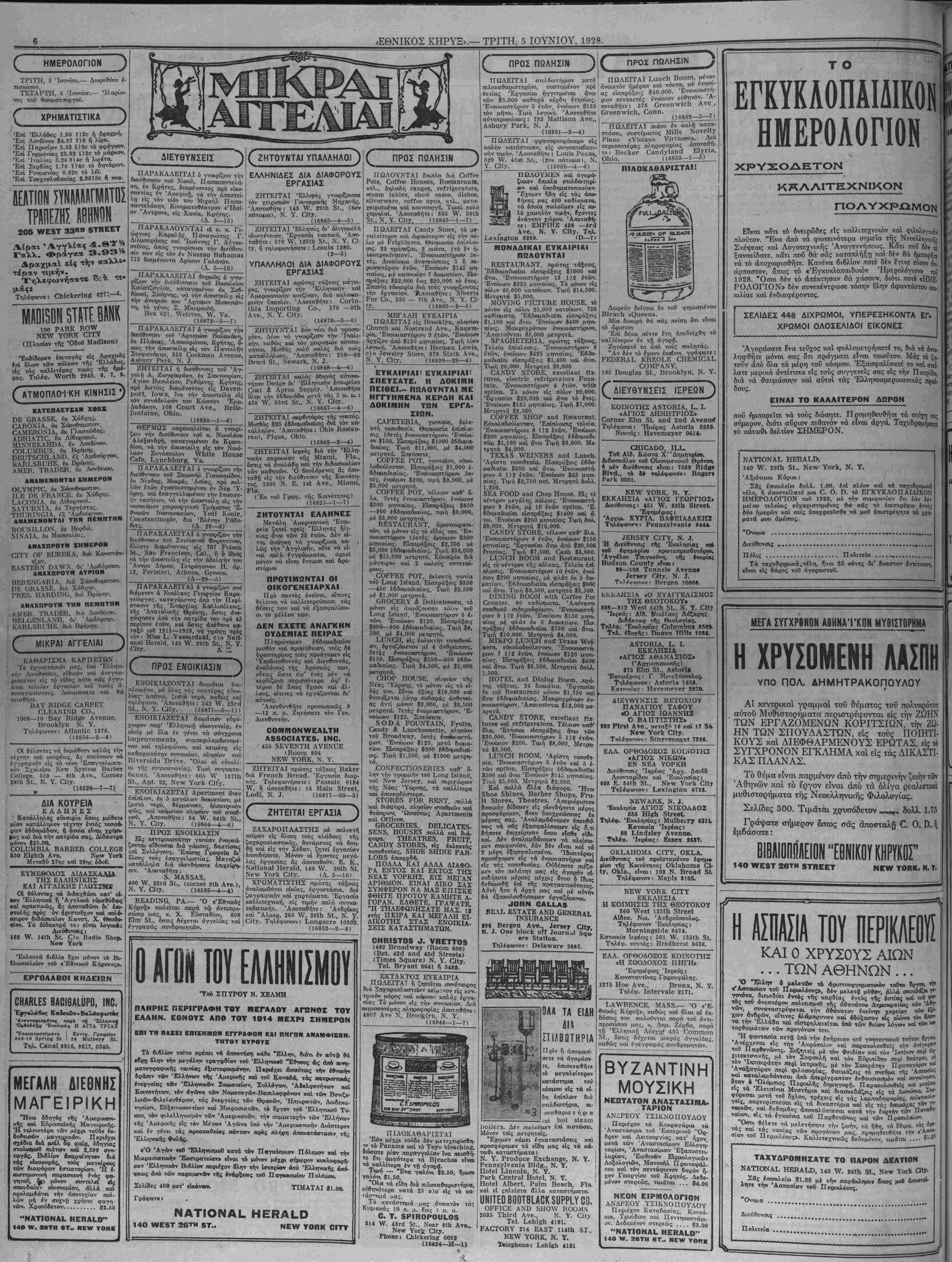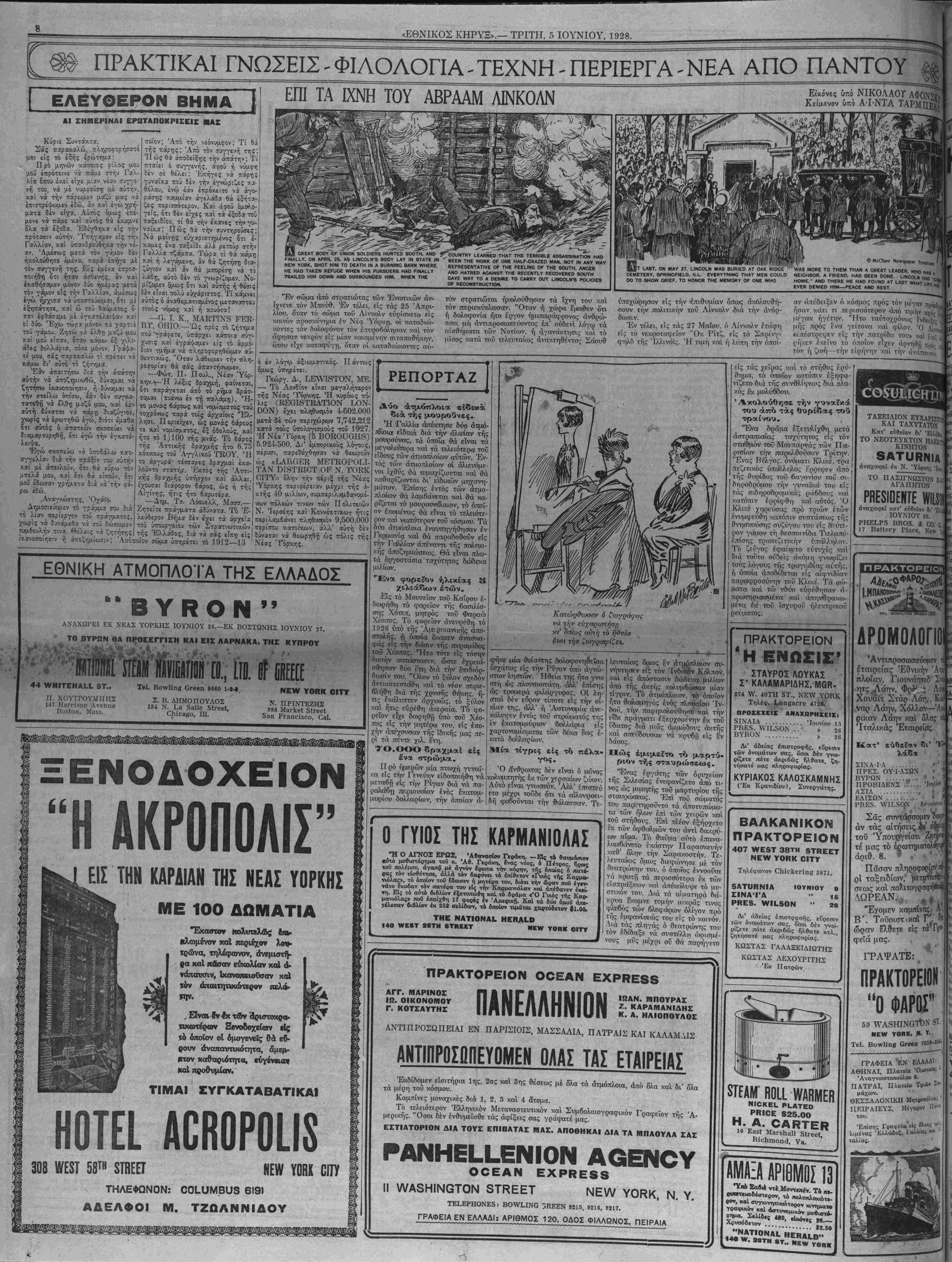 Κΐοηπιοη<1, V». ΑΜΑΞΑ ΑΡΙΘΜΟΙ13 . Τβ —. ρ, το Λολυπλοχώτε- χαί σνγκιντ,τικώτενογ κινηαατο γρα-κόν καί α-ννομοοόν "ΝΑΤΙΟΝΑΙ. 14β «V. 2βΤΗ •Τ ϊ ΤΑΕΕΤΔΙΟΝ ΕΥΧΑΡΓ2Τ0 ΚΑΙ ΤΑΧΥΤΑΤΟΝ Κατ' ευθείαν δι ι ΤΟ ΝΕΟΤΕΥΚΤΟΝ ΗΛΕΚΤΡ ΚΙΝΗΤΟΝ Π αναχωρεί έκ Ν. 'Υόρχη; Ίοιΐν. ΤΟ ΠΑΣΙΓΝΩΣΤΟΝ ΚΑΙ ΑΓΑΠΗΤΟΝ ΡΒΕ8Ι0ΕΝΤΕ Κ αναχωρεί κατ' ευθείαν δι' Έ) ΙΟΥΝΙΟΥ 26. ΡΗΕΕΡ5 ΒΚΟ5. 4 Ο). Ο 17 Β3ΐΙβΓν Ρΐαοβ, Νόν γ. (IV II ΑΡΟΜΟΛΟΠΟ Αντιπροσωπεύομεν τ» έταιρείας Εθνικήν Άτε πλοΐαν, Γιουνάητεδ _ται· ητς ,Λάην, Φρρ'.; Λέρ, Χού'αϊτ Στάρ Αάν;, Κιο' ναρ Λάην, Χόλλαν—Ά ρικαν Λάην καί δλας* Ιταλικάς Έταιρείας. Κατ' ευθείαν βι' ΣΙΝΑ-ΙΑ ........ » 1! ΠΡΕΣ. ΟΥ-ΙΛΣΩΝ ■ >