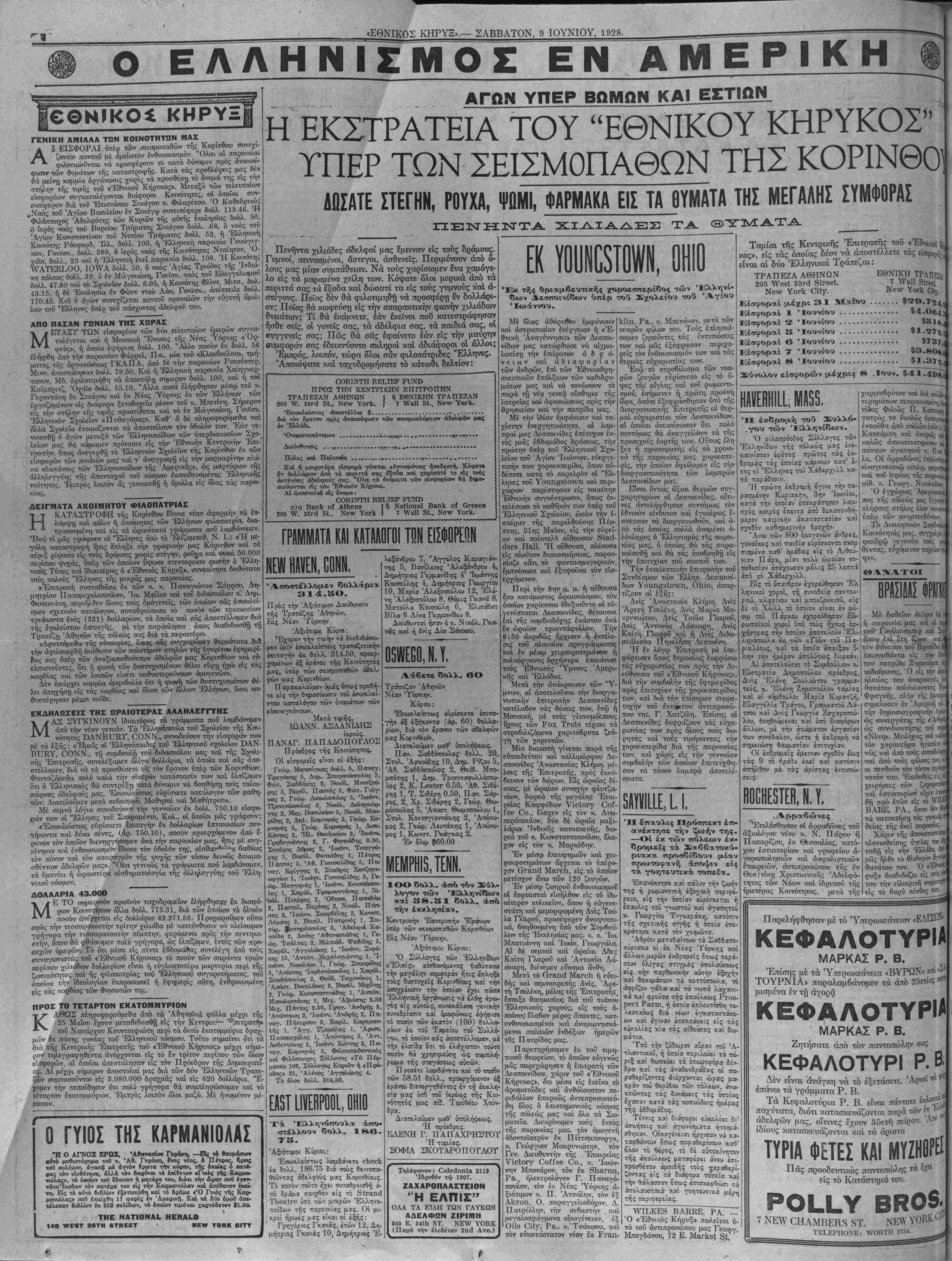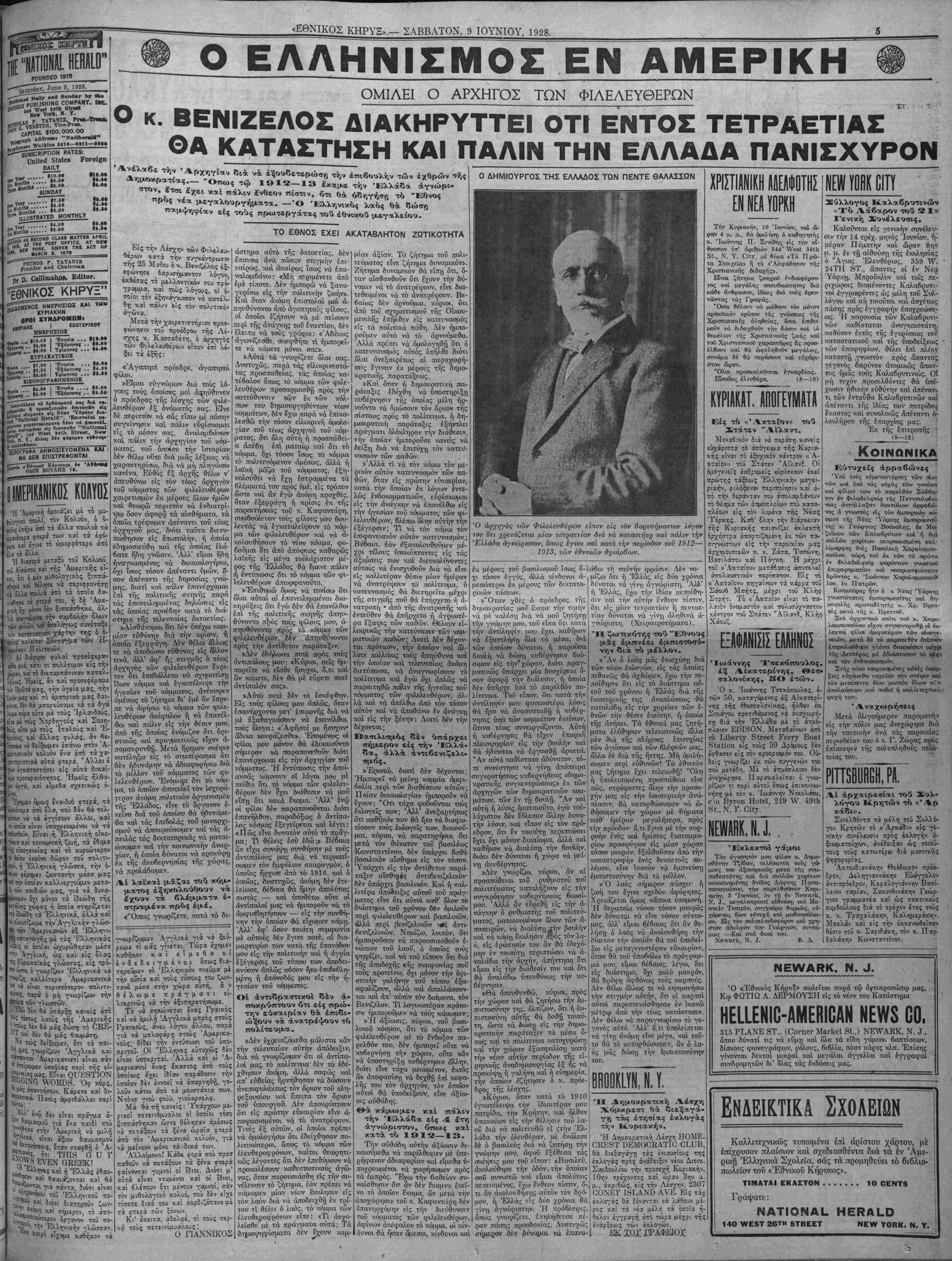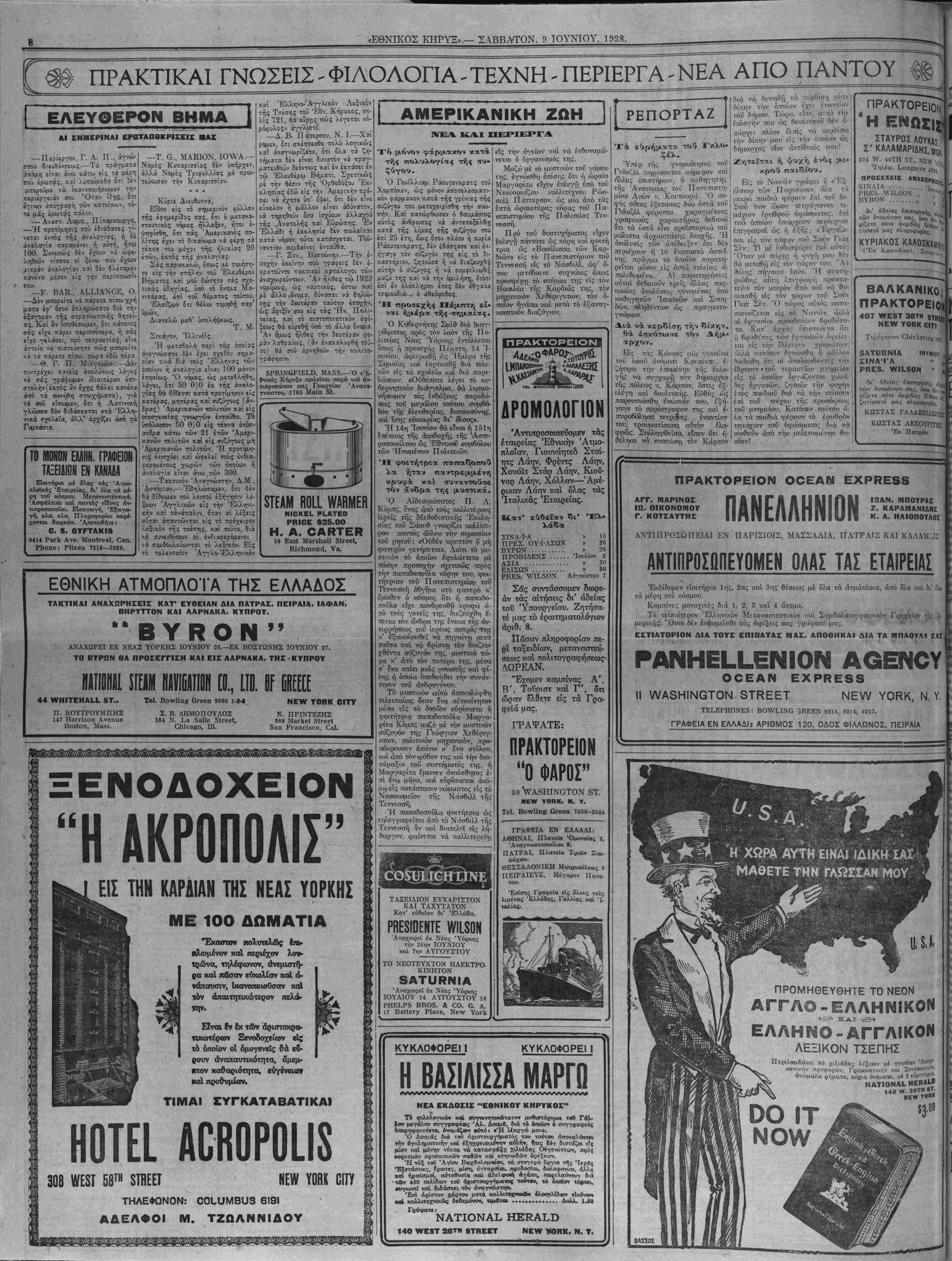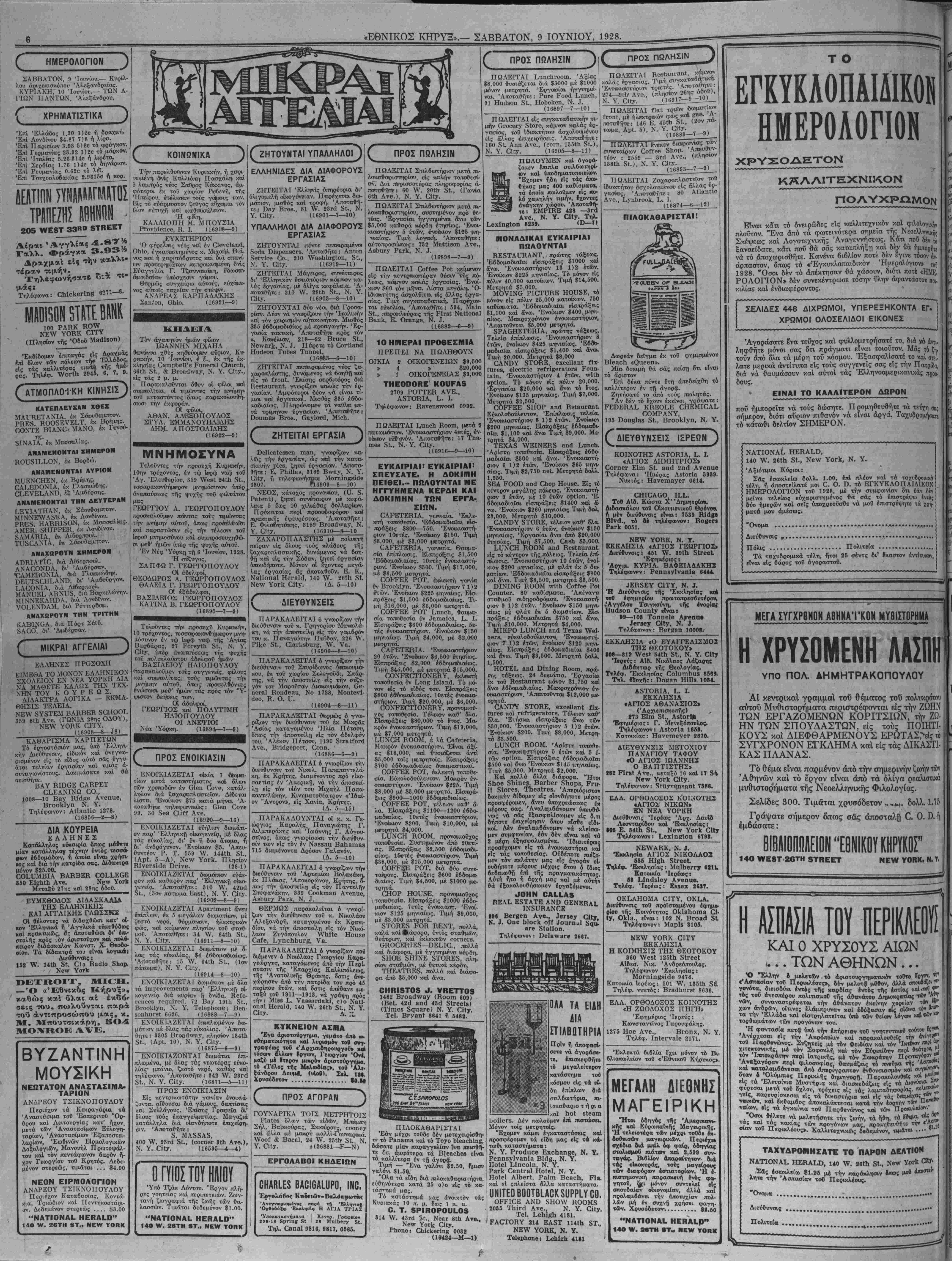 ΝΕΥ ΥΟΚΚ, ΣΑΒΒΑΤΟΝ, 9 ΙΟΥΝΙΟΥ, 1928.