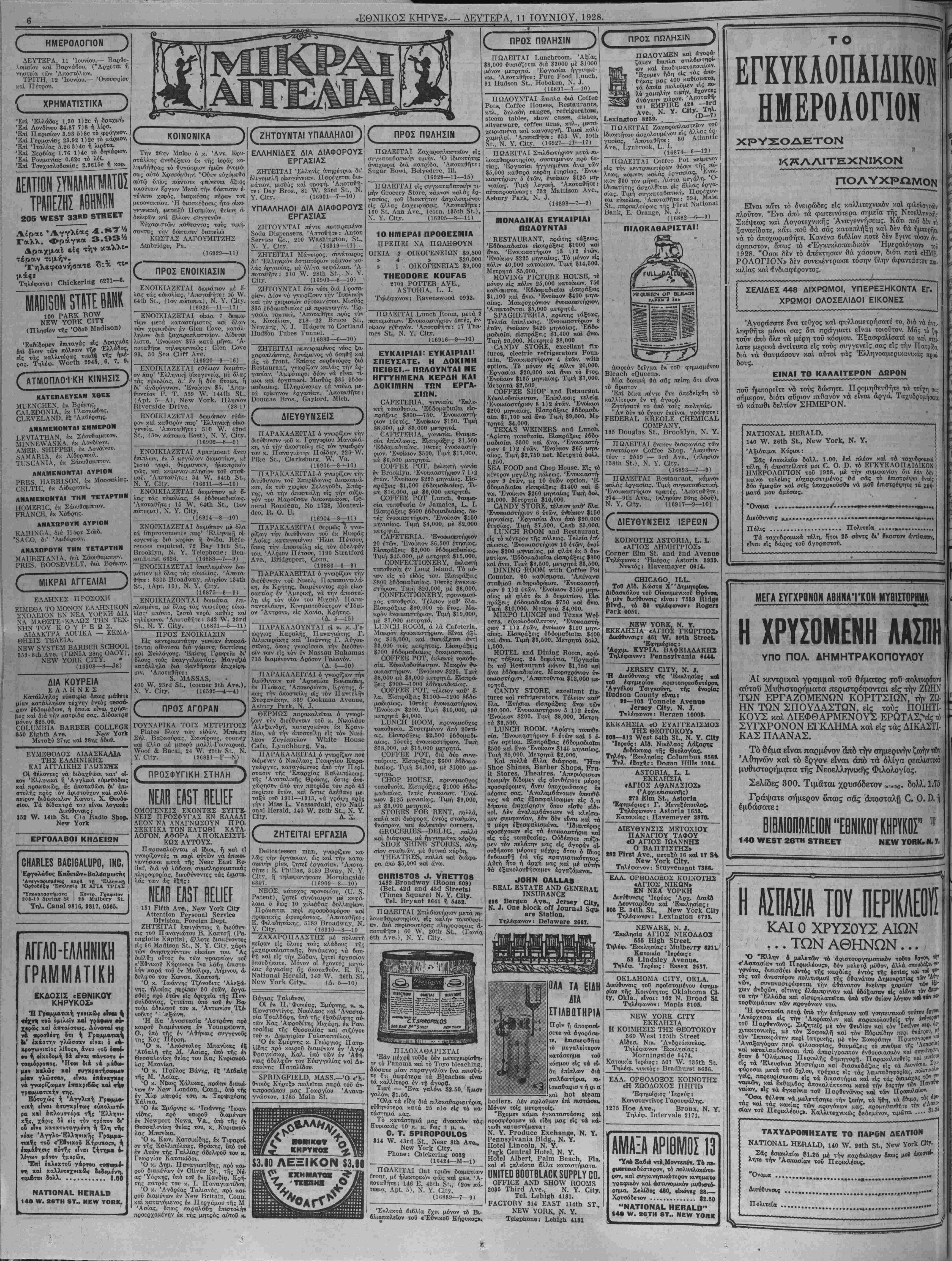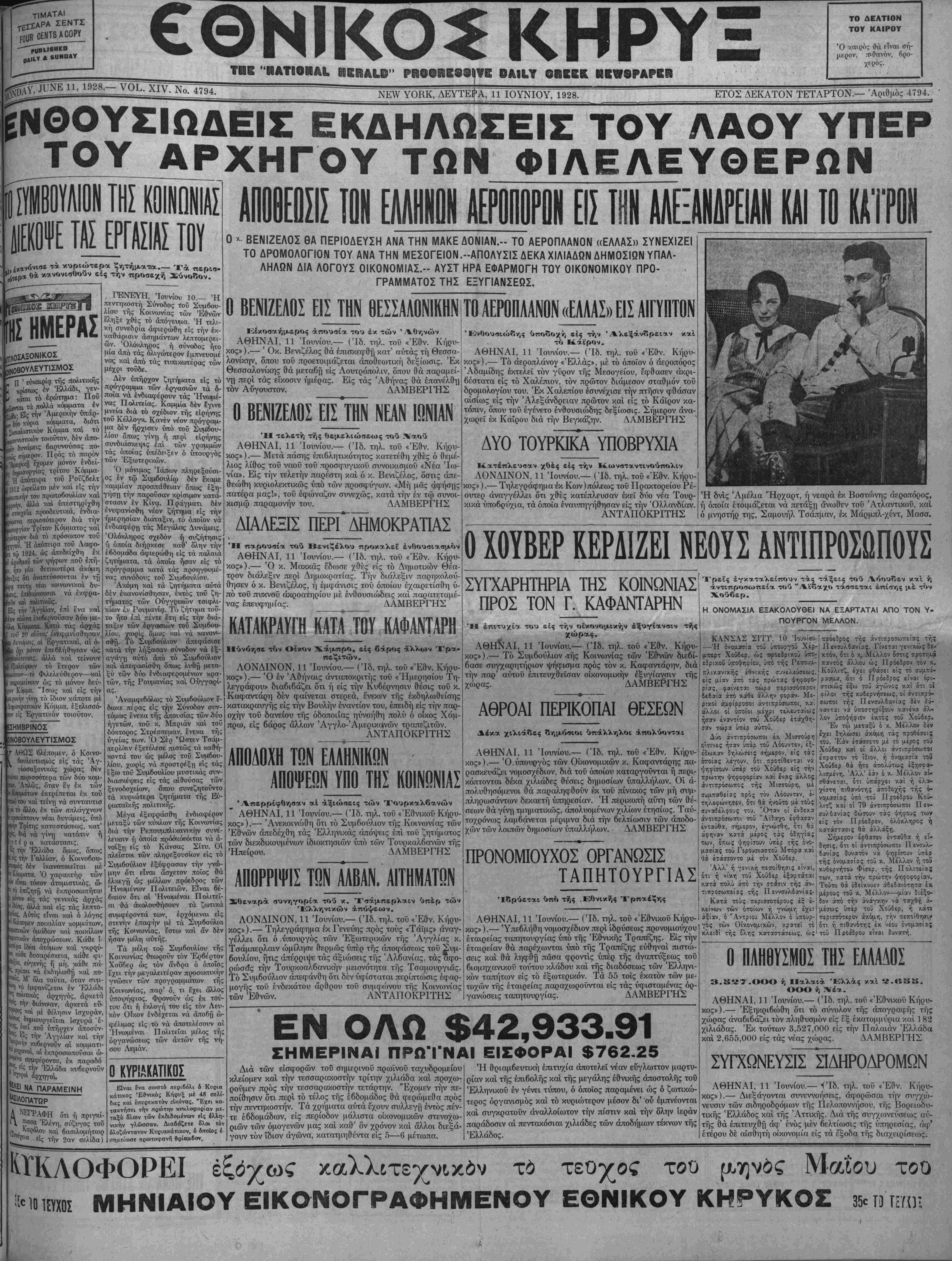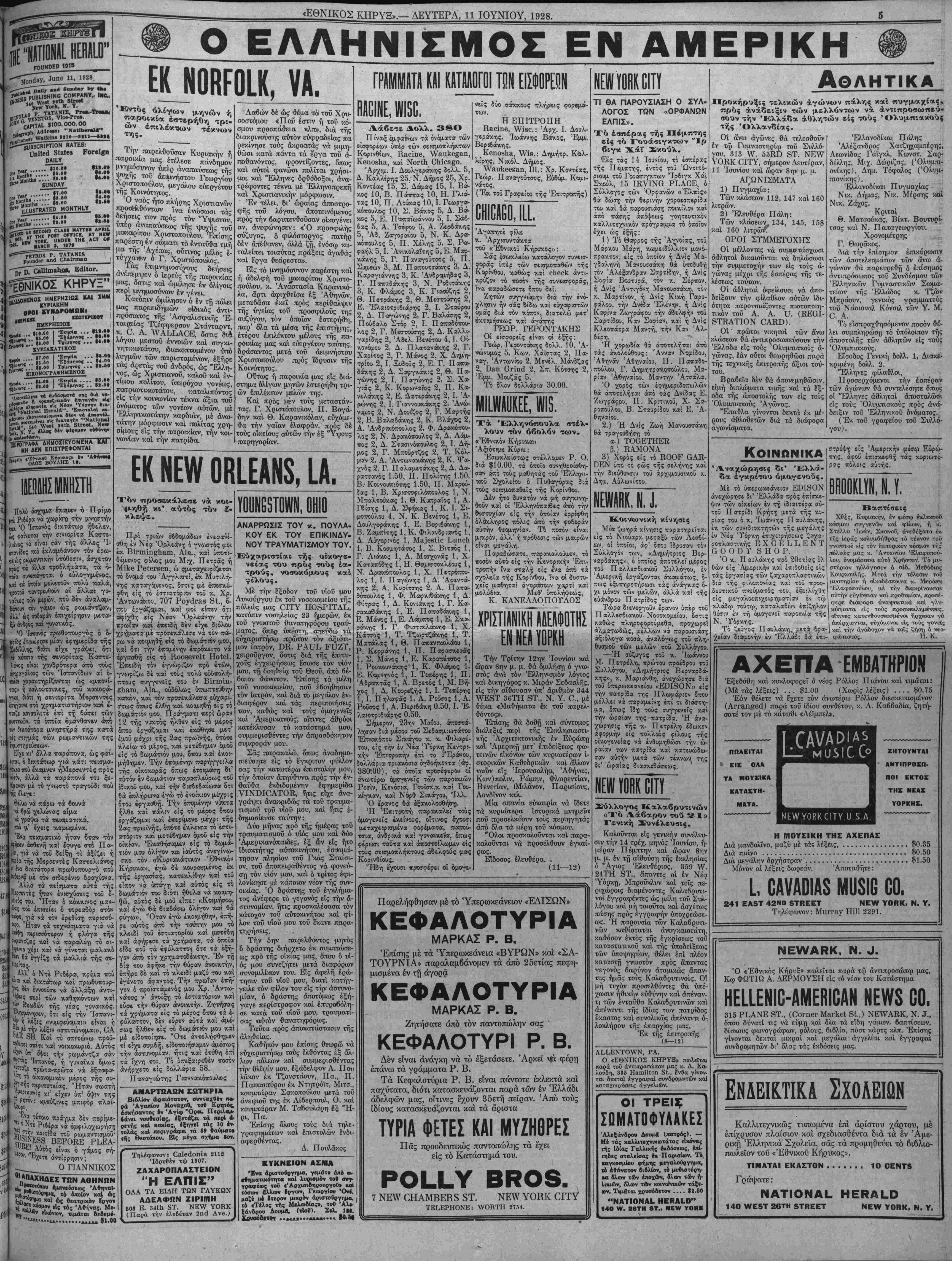 ΝΕ¥ ΫΟΚΚ, ΔΕΥΤΕΡΑ, 11 ΙΟΥΝΙΟΥ, 1928.