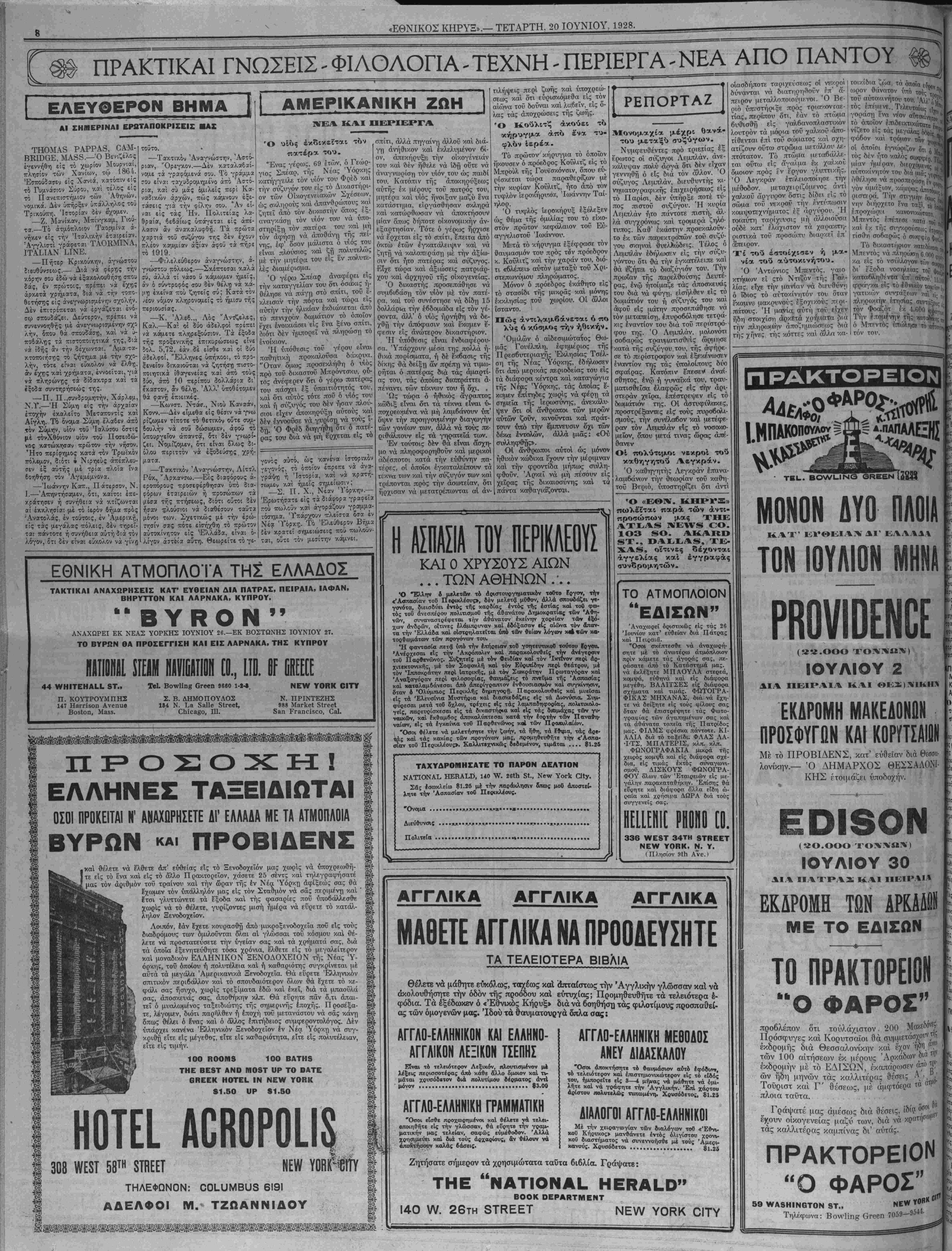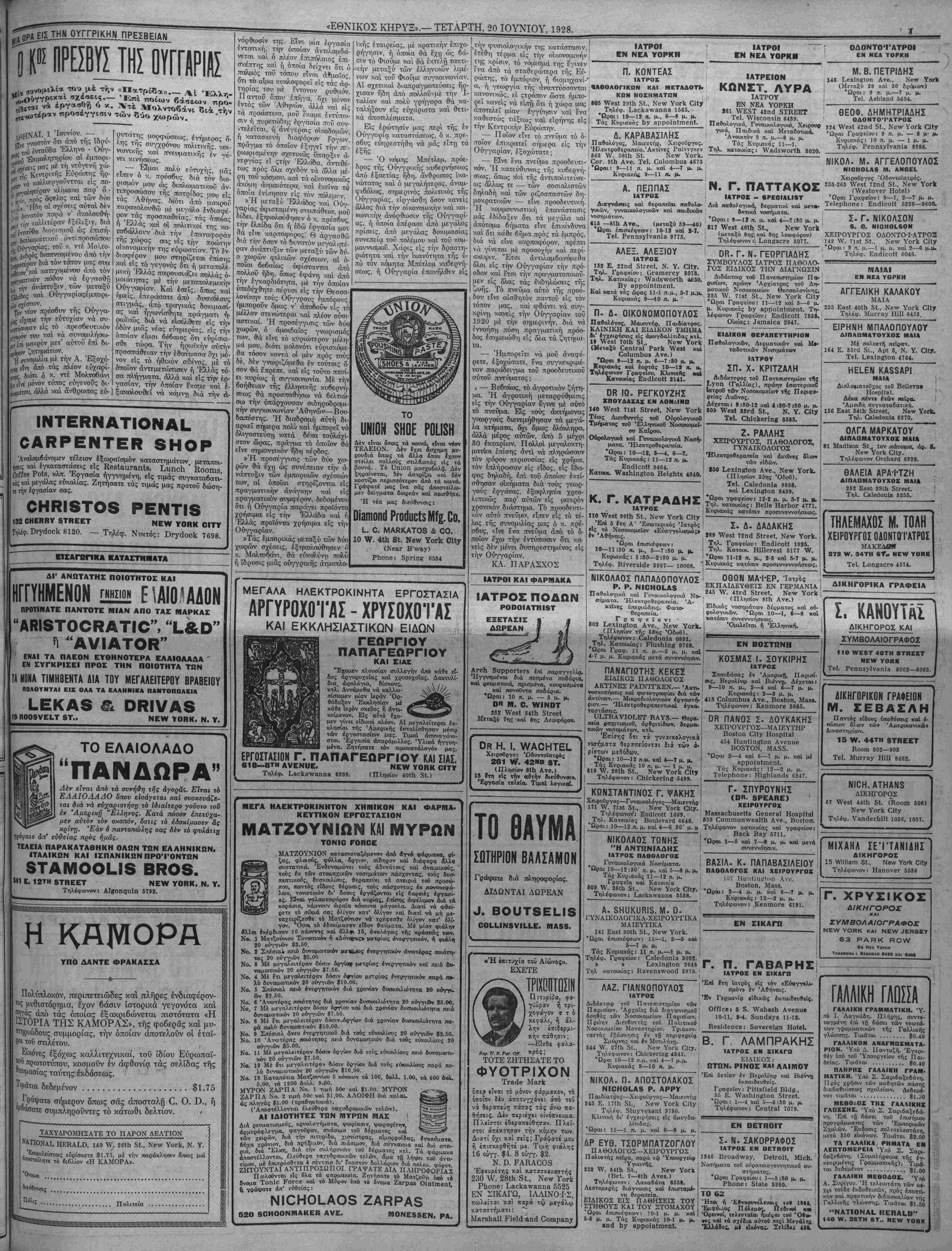 ΝΕΥ ΥΟΒΚ, Τ^ΤΑΡΤΗ, 20 ΙΟΥΝΙΟΥ, 1928.