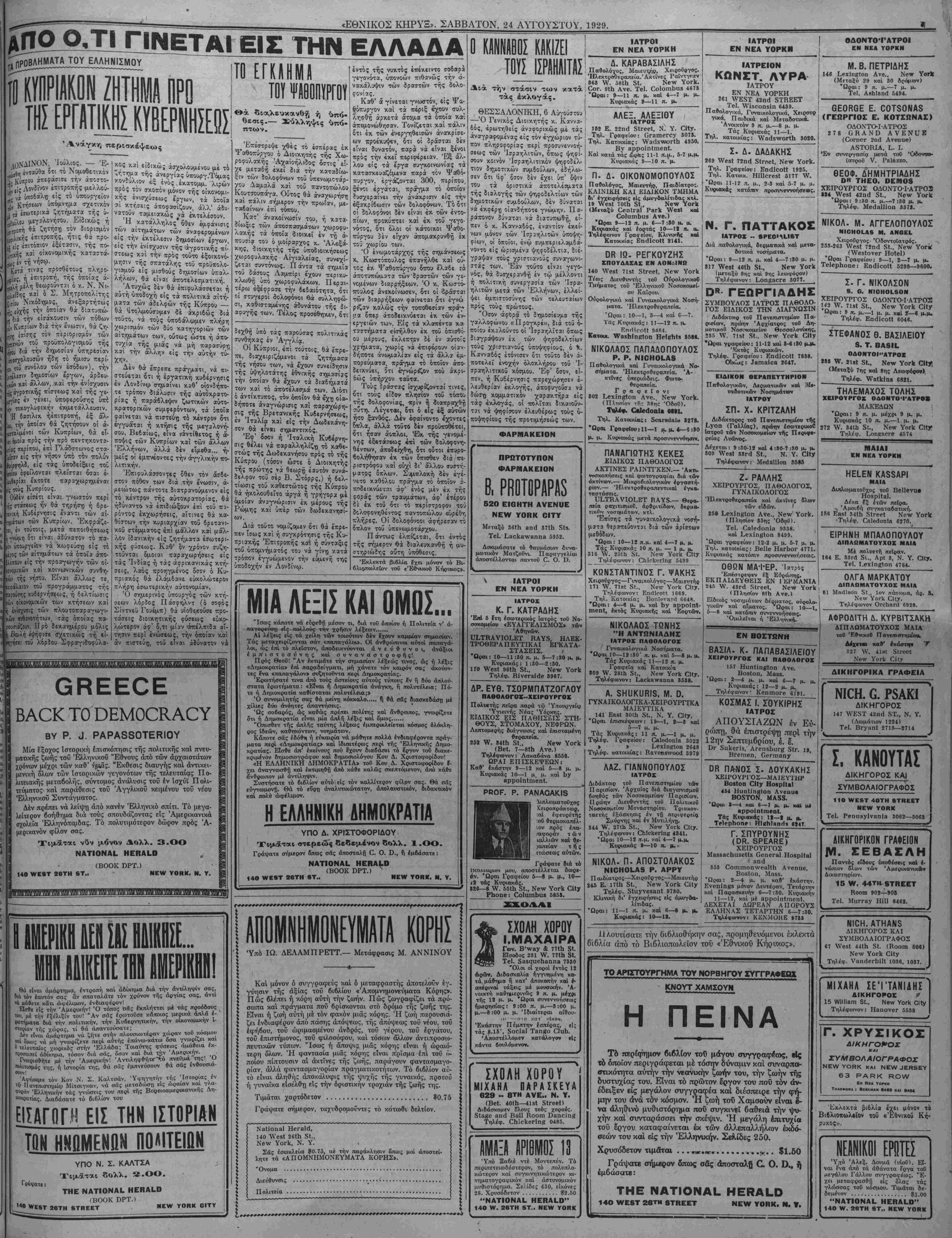 ΝΕ¥ ΥΟΚΚ, ΣΑΒΒΑΤΟΝ, 24 ΑΥΓΟΥΣΤΟΥ, 1929.