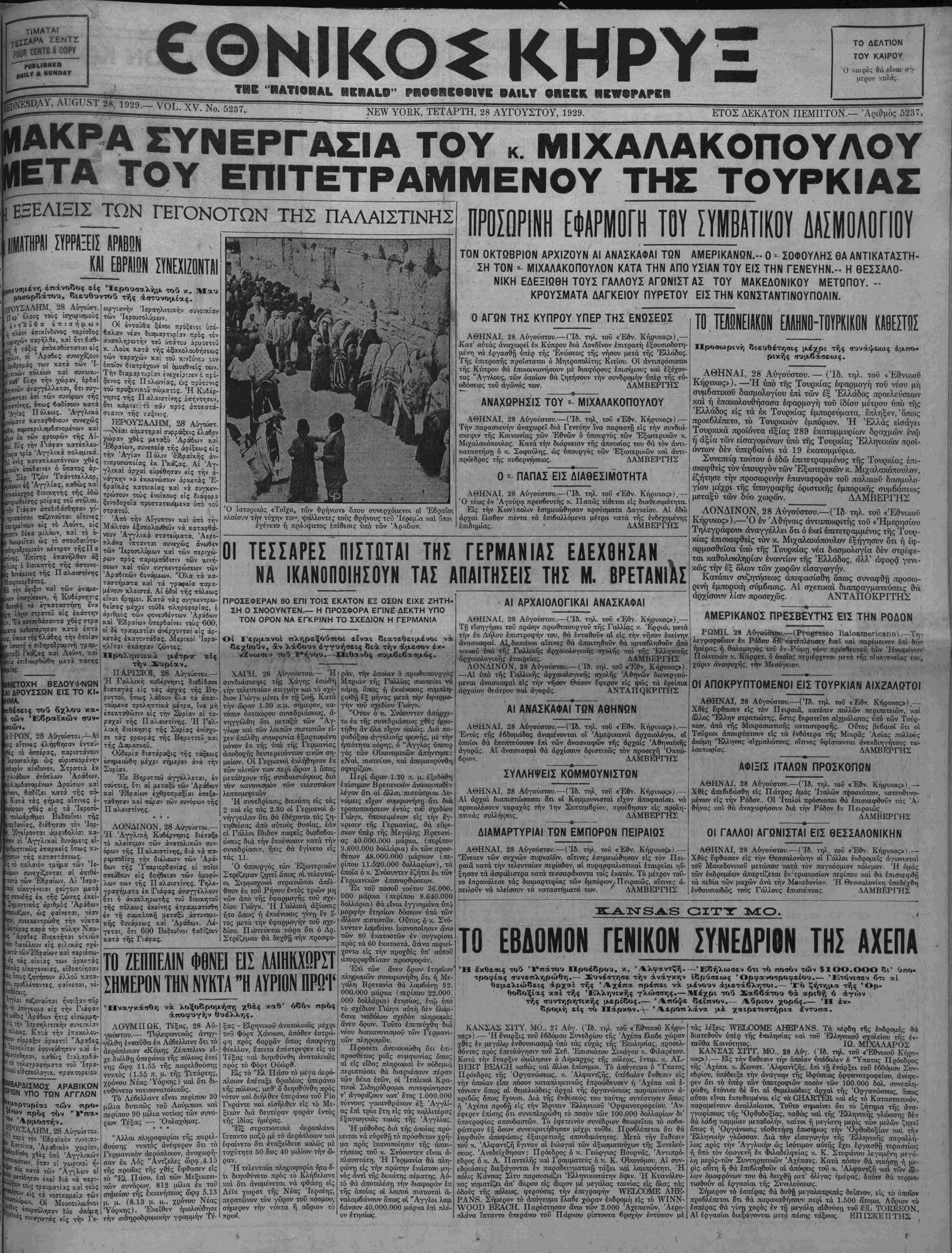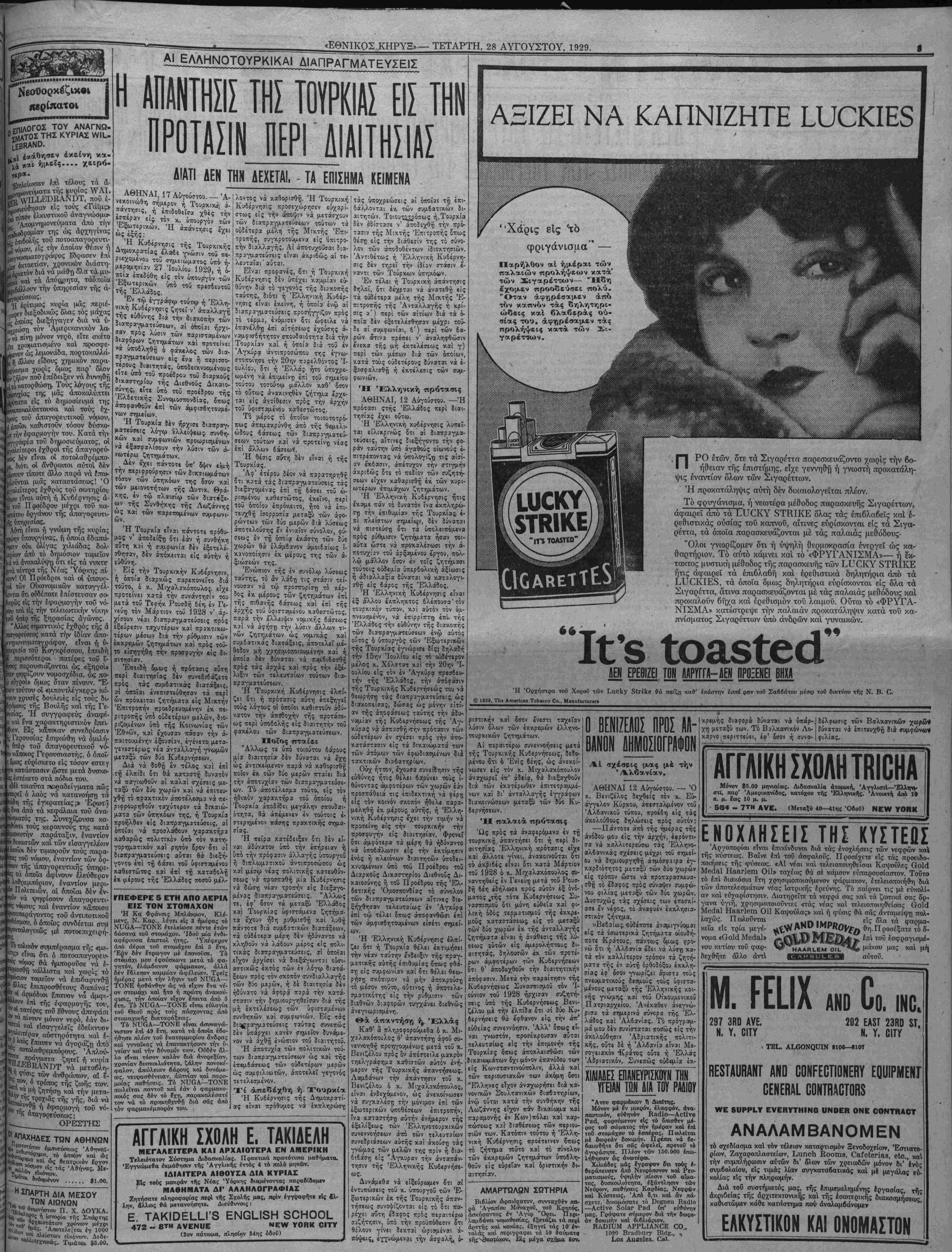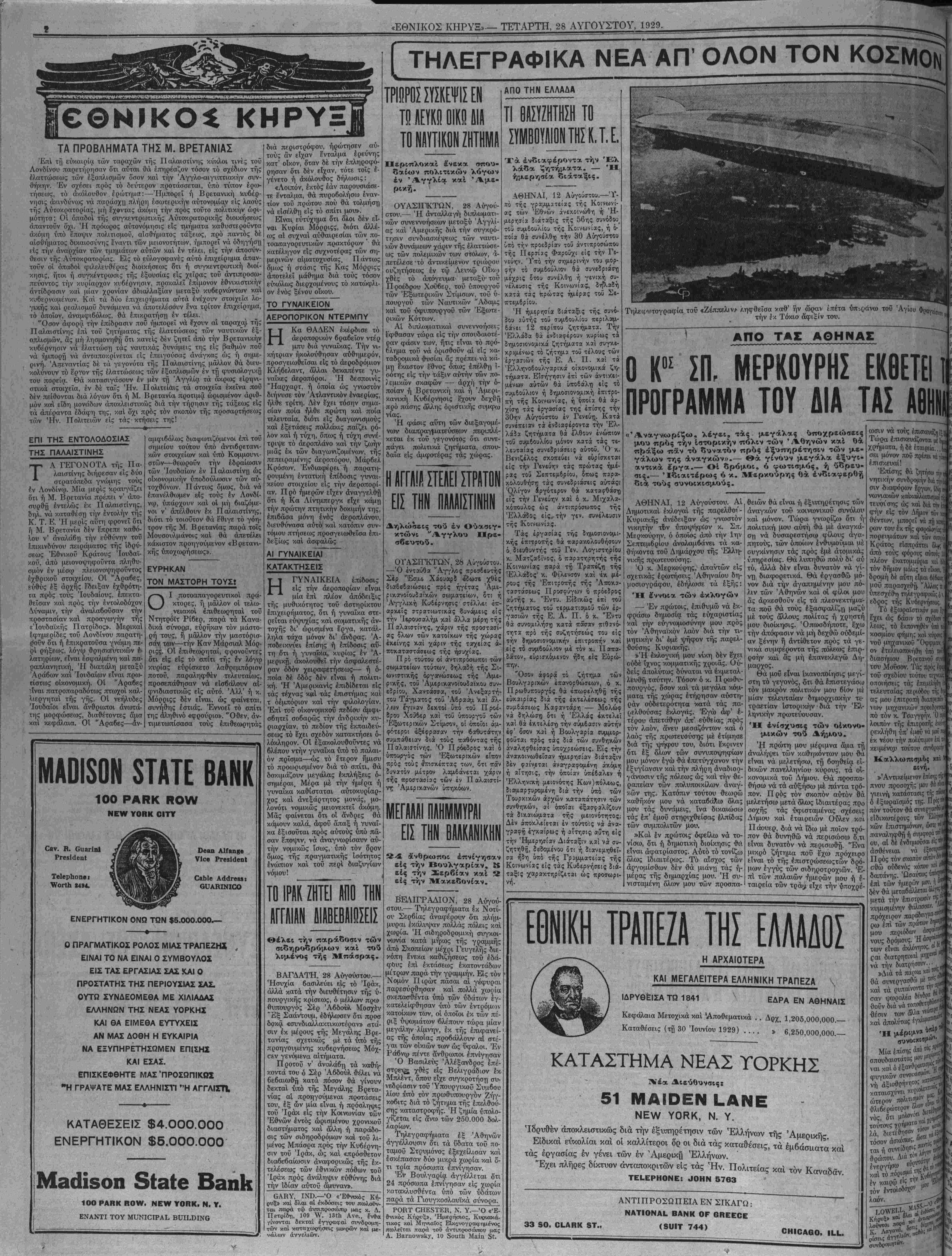 ΝΕΥ ΥΟΕΚ, ΤΕΤΑΡΤΗ, 28 ΑΥΓΟΥΣΤΟΥ, 1929.