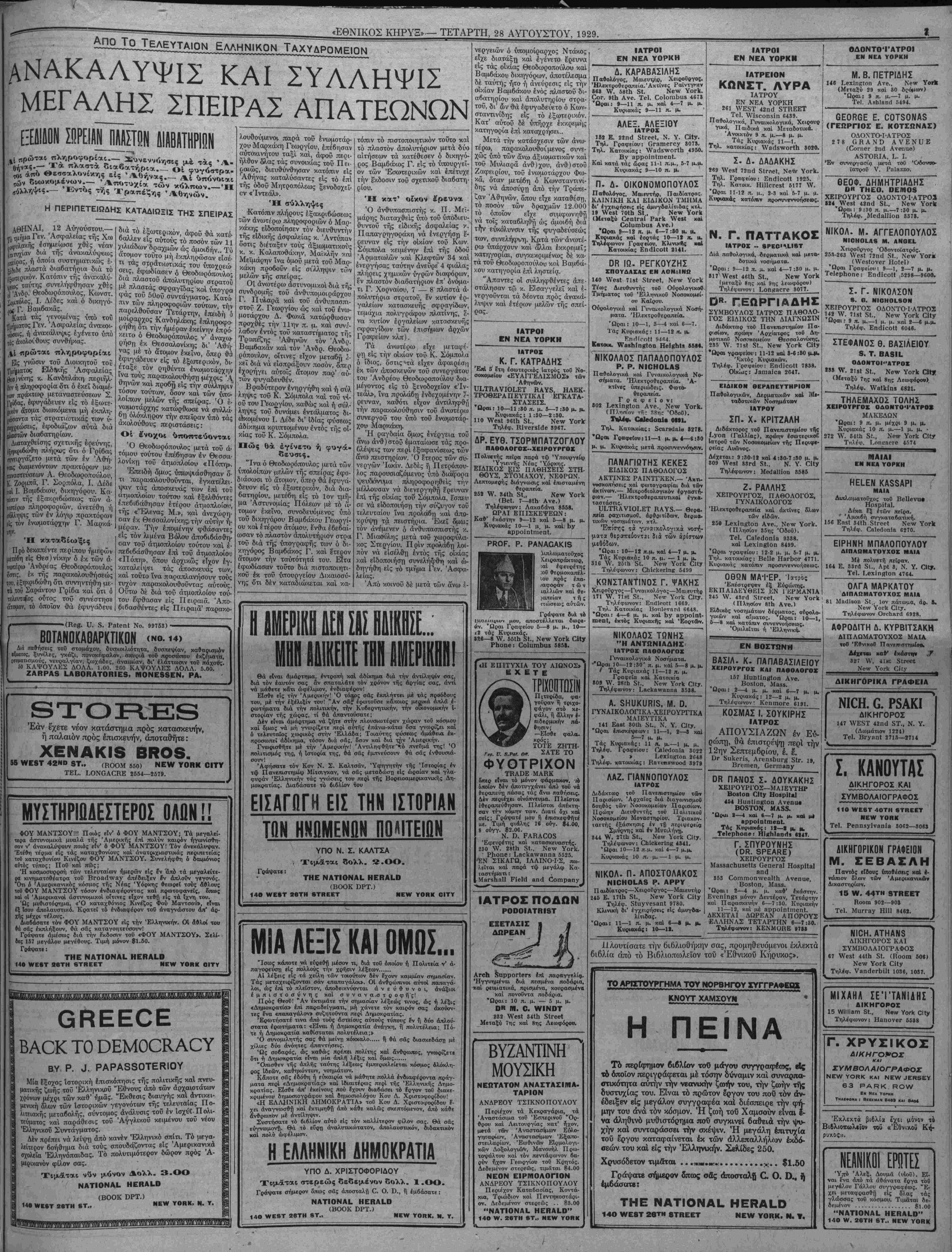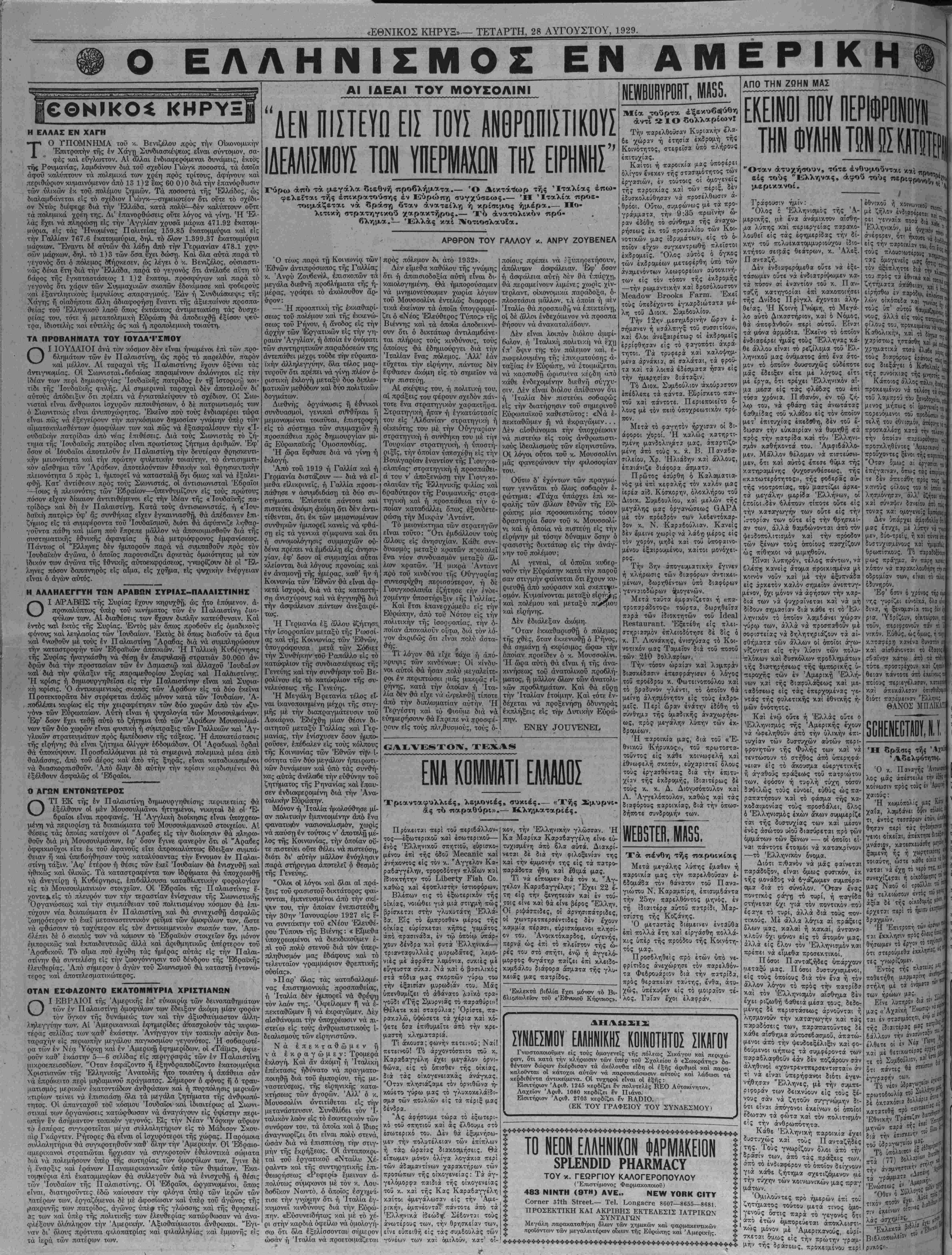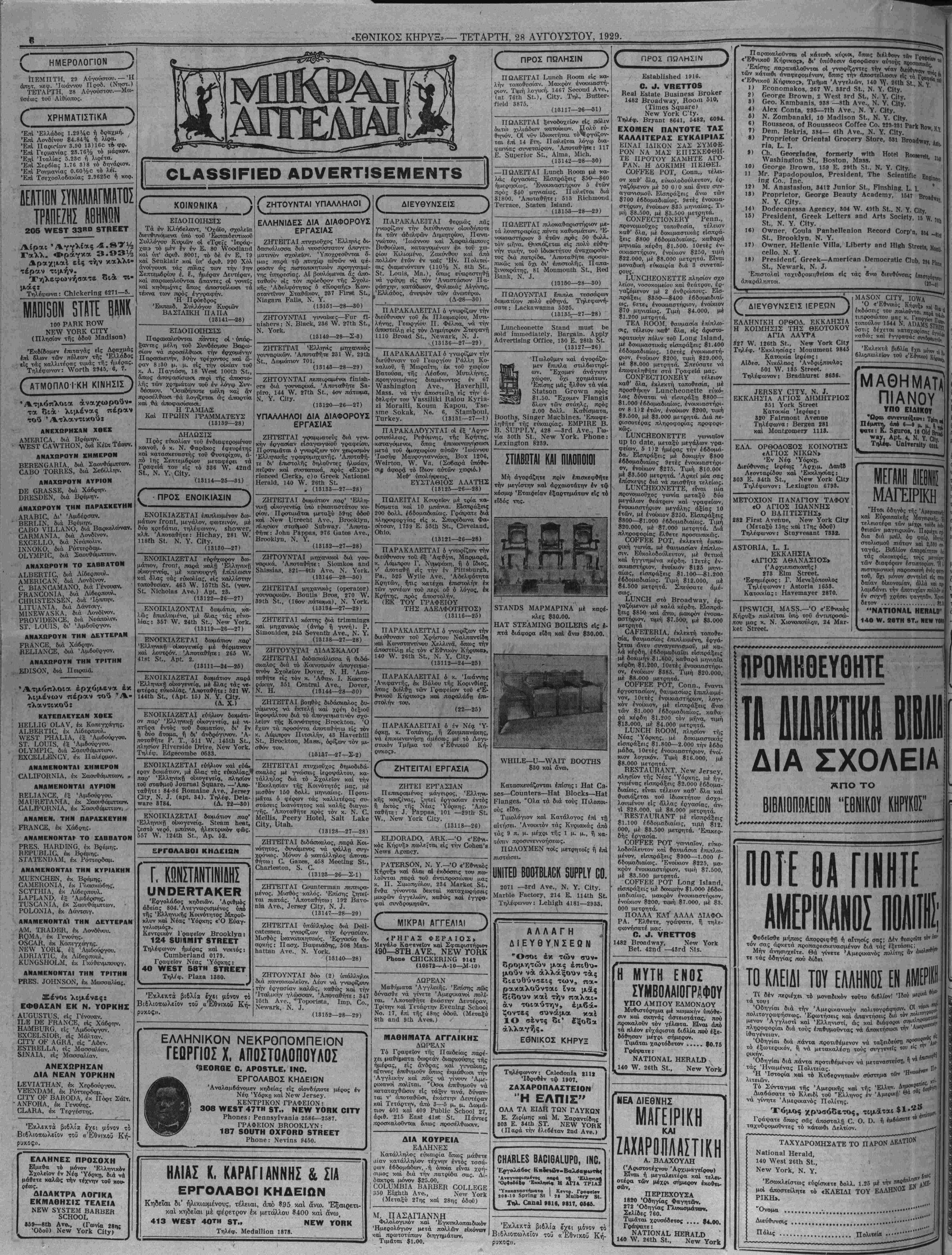 ΝΕΥ ΥΟΕΚ, ΤΕΤΑΡΤΗ, 28 ΑΥΓΟΥΣΤΟΥ, 1929.