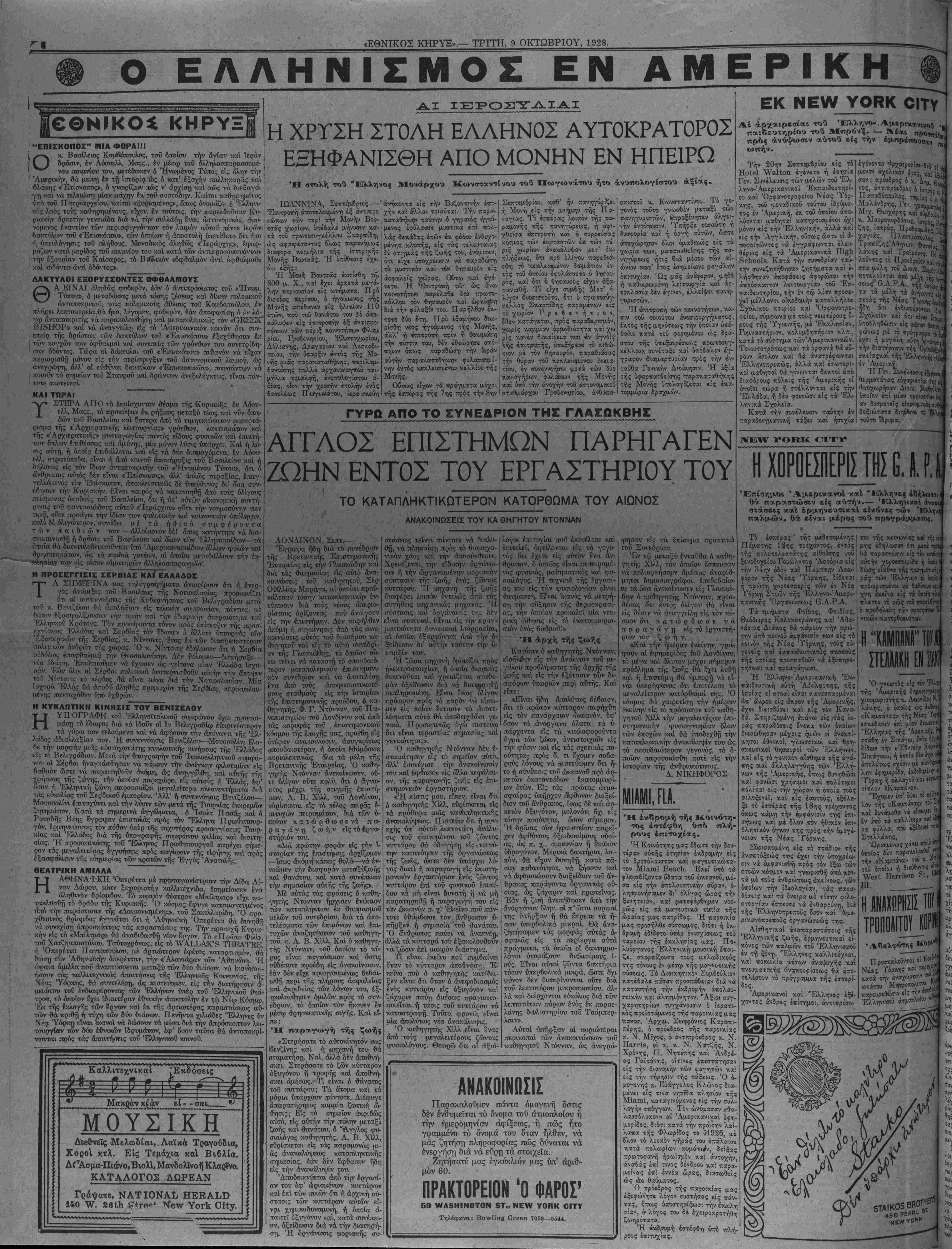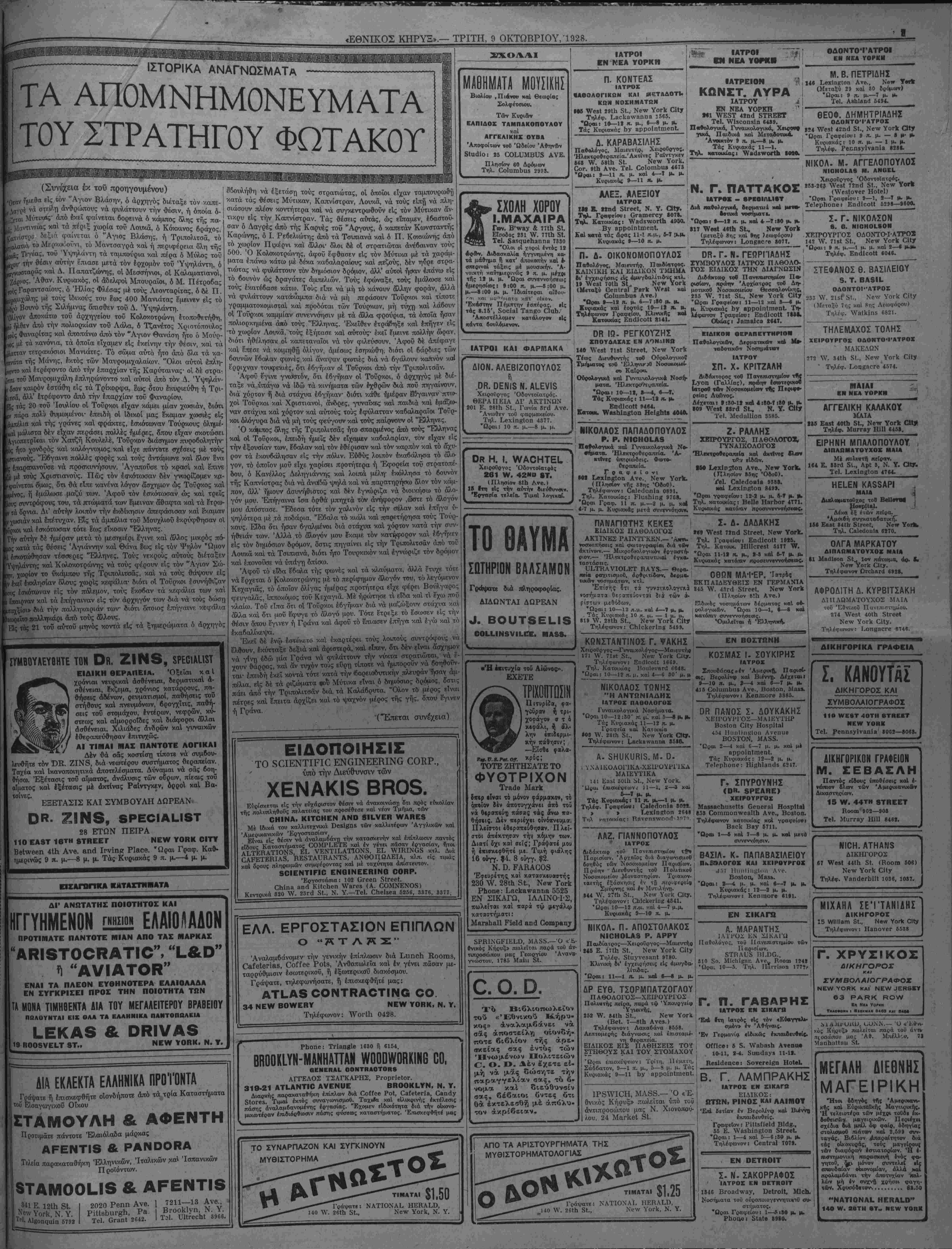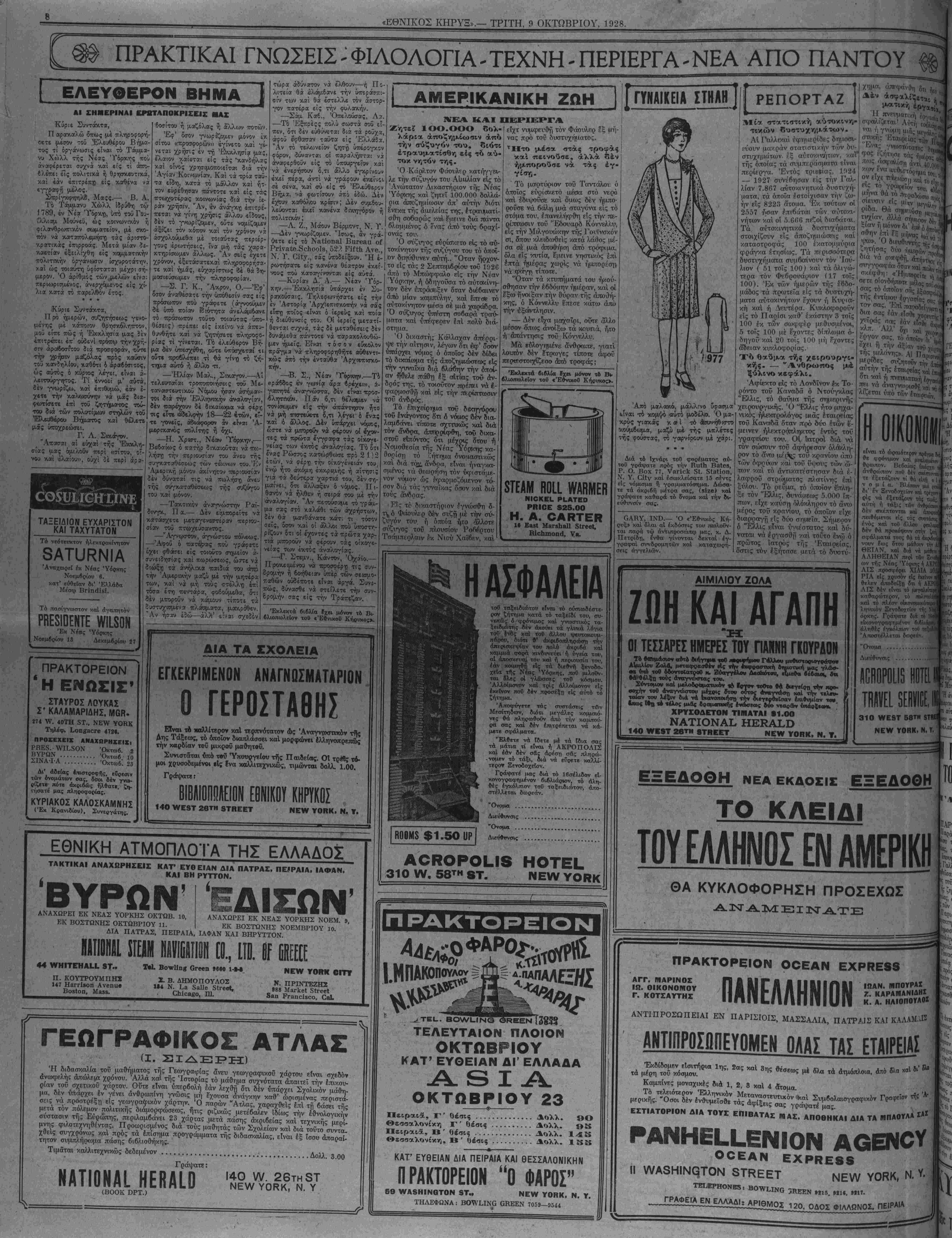 πειθόμενοι είς τάς <τυο ενός καί τού δλλου ρ{χ)α δέν θά προκόψουν οτήν σφάόλ.ματά τους τ)ά τα άχρ νούν εΌ3ς ότου μοθοιιν την ι ΘΕΙΑΝ, καί βιά νά ΑΛΗΘΕΙΑΝ περΐ τδν ών της Νέας Υόρκης ή ΑΚ ΛΙΣ προσφέρει ΧΙΛΙΑ ΡΙΑ είς χρυσόν είς εκείνον ι θελεν άποδείξη δτι ή ΑΚ ΑΙΣ δέν είναι τό μεγαλίίτι καθαρώτερον, τ6 πολν καί τό πλέον οίκονομικώτι ληνικόν Ξενοδοχρϊον τής όρκης. Γράψατε ίιά το^ εΐκονογραφημένον βιβ" άληθές ίγκόλπιον τοτί τοξ Άποστέλλεται δωρεάν. "Ονομπ ...... Διεύθυνσις ......... ο, . νστάσΐιςΐ ) η μαθετι ι γιν ΤΒΙι 5ΕΒΪΙ0Ε, 310 νΥΕ8Τ 58ΤΗ 8ΤΗΕ ΝΕΥΥ ΥΟΗΚ, Ν. ΕΞΕΔΟΘΗ νεα εκδοσισ ΕΞΕΔΟΘΗ ΤΟ ΚΛΕΙΑΙ ΤΟΥ ΕΛΛΗΝΟΣ ΕΝ ΑΜΕΡΙΚΗ ΘΑ ΚΥΚΛΟΦΟΡΗΣΗ ΠΡΟΣΕΧΟΣ % ι «Τ0ΐ)( Γαλ) |Έΐσα κ τοΐ Πή '5ι ( {ών ΠΡΑΚΤΟΡΕΙΟΝ ΟΟΕΑΝ ΕΧΡΝΕ88 |«ΐοΐο ΑΓΓ. ΜΑΡΙΝΟΣ ΙΩ. ΟΙΚΟΝΟΜΟΥ Γ. ΚΟΤΣΑΥΤΗΣ ΠΑΝΕΛΛΗΝΙΟΝ ΙΩΑΝ. ΙΙΙΠΟΥΡΑΧ Ζ. ΚΑΡΑΜΑΝΙΔΗΓ Κ. Α. ΗΛΙΟΠΟΥΛΟΪ ΑΝΤΙΠΡΟΣΩΠΕΙΑΙ ΕΝ ΠΑΡΙΣΙΟΙΣ, ΜΑΣΣΑΛΙΑ, ΠΑΤΡΑΙΣ ΚΑΙ ΚΑΛΑΜΛΒ ΑΝΤΙΠΡΟΓΟΠΕΥΟΜΕΝ ΟΛΑΙ ΤΑΣ ΕΤΑΙΡΕΙΑΙ Έκδίδομβν εΐσιτήρια 1ης, 2ας καί 3ης τάσεως μέ δία τα άτμόπλοια, άπό ίλα χαΐ βι' «· τα μέρη τού κόσμου. ^ Καμπίνες μοναχικές διά 1, 2, 8 καί 4 άτομα. Τό τελειότερον '^ληνικόν Μεταναστευτικόν %αί Συμβολαιογραφικόν Γραφείον τηϊ * μερικης. Οσοι δέν ενθυμείσθε τάς άφίξεις σας γράψατέμας ΕΣΤΙΑΤΟΡΙΟΝ ΔΙΑ ΤΟΥΓ ΕΠΙΒΑΤΑΣ «Ι ΑΣ. ΑΠΟΘΗΚΑΙ ΔΙΑ ΤΑ ΜΠΑΟΥΑΑ Σ** ι1'«ν ΡΑΝΗΕίίΕΝΙΟΝ Α ΟΟΕΑΝ ΕΧΡΚΕβδ II Λ/Α3ΗΙΝςΤ0Ν 8ΤΚΕΕΤ ΓΓΑΦΕ'Α ΥΟΚΚ, Ν. . Η1Ι, ΟΛΟΣ ΦΙΛΛΟΝΟΣ, ΠΕΙΡΑΙΑ