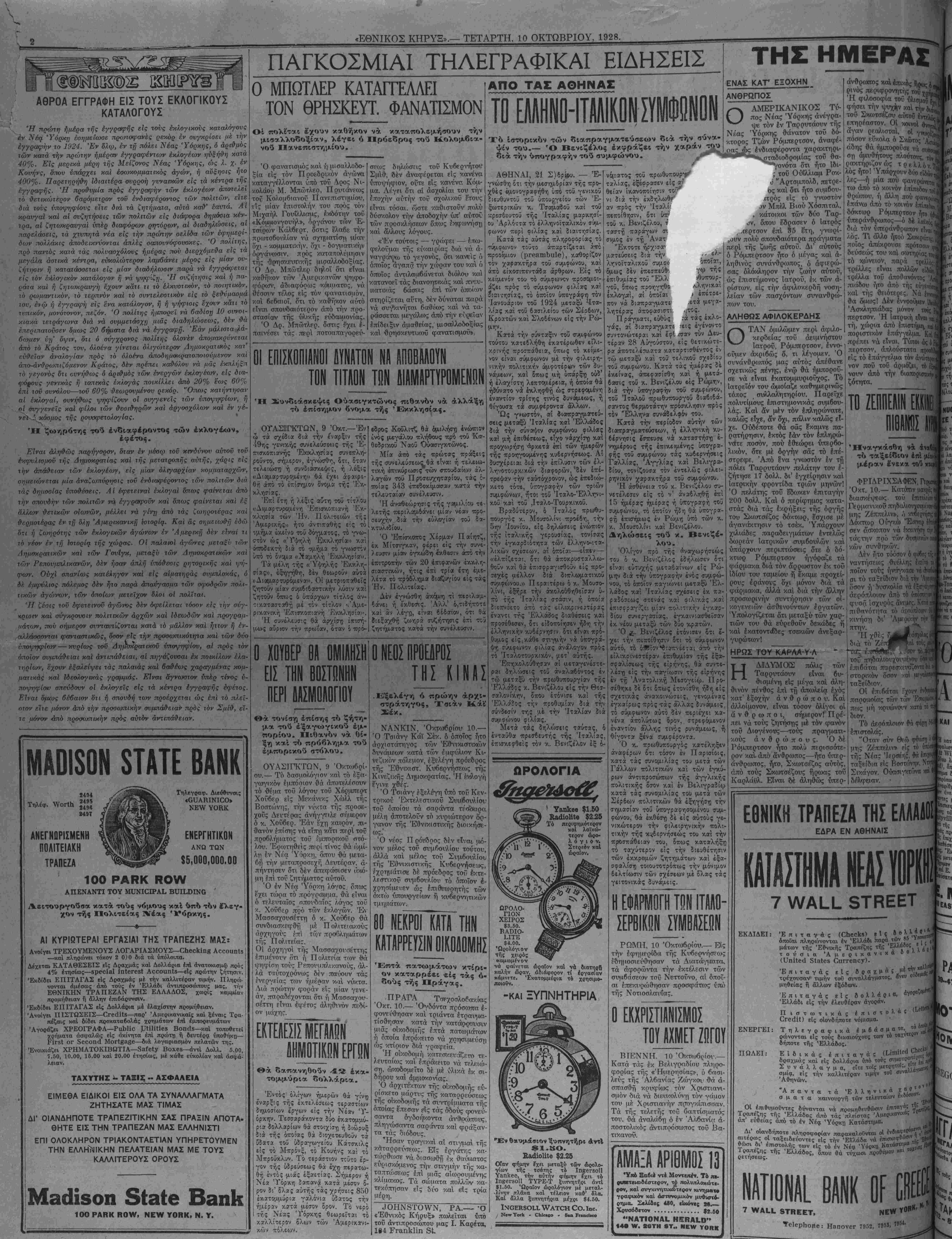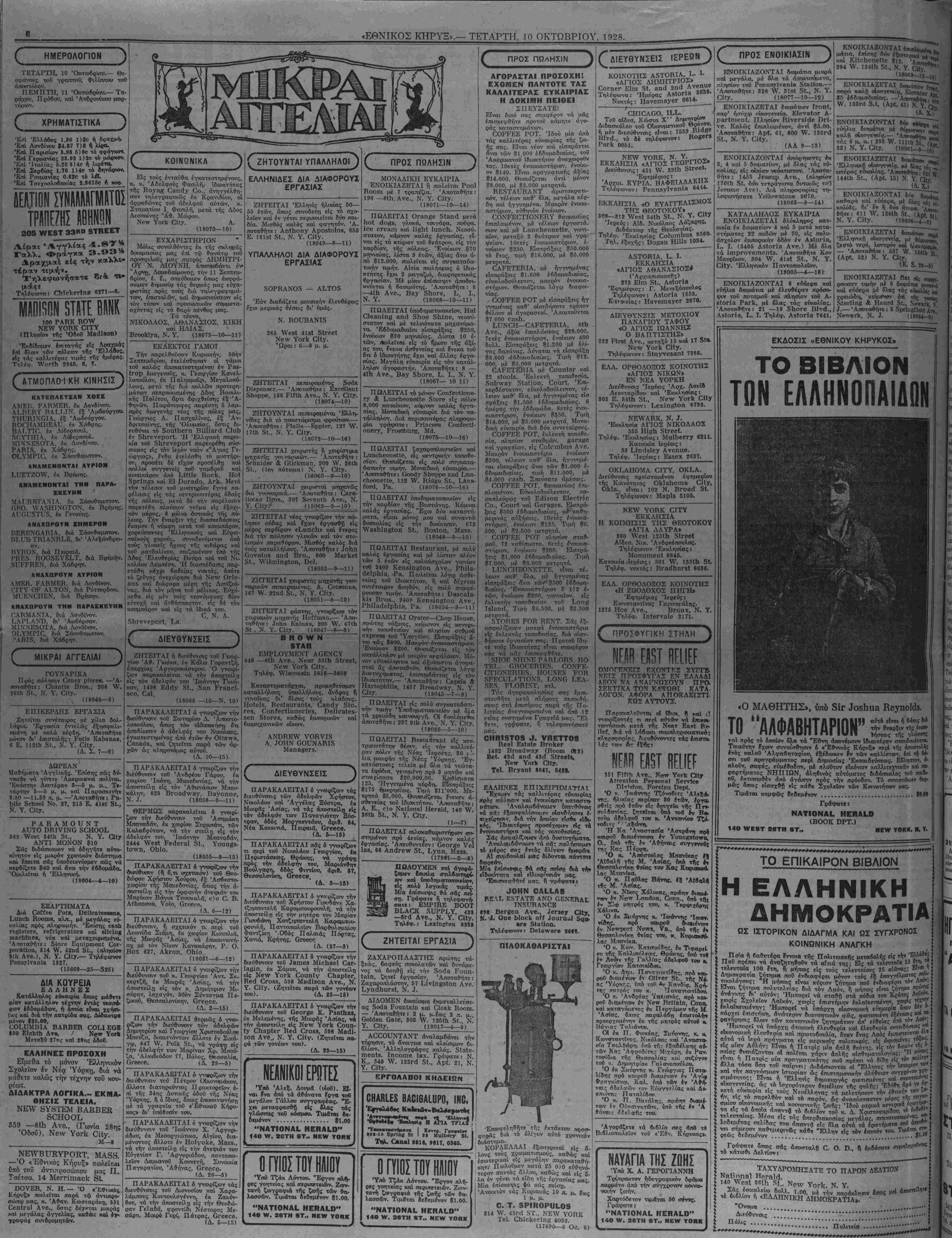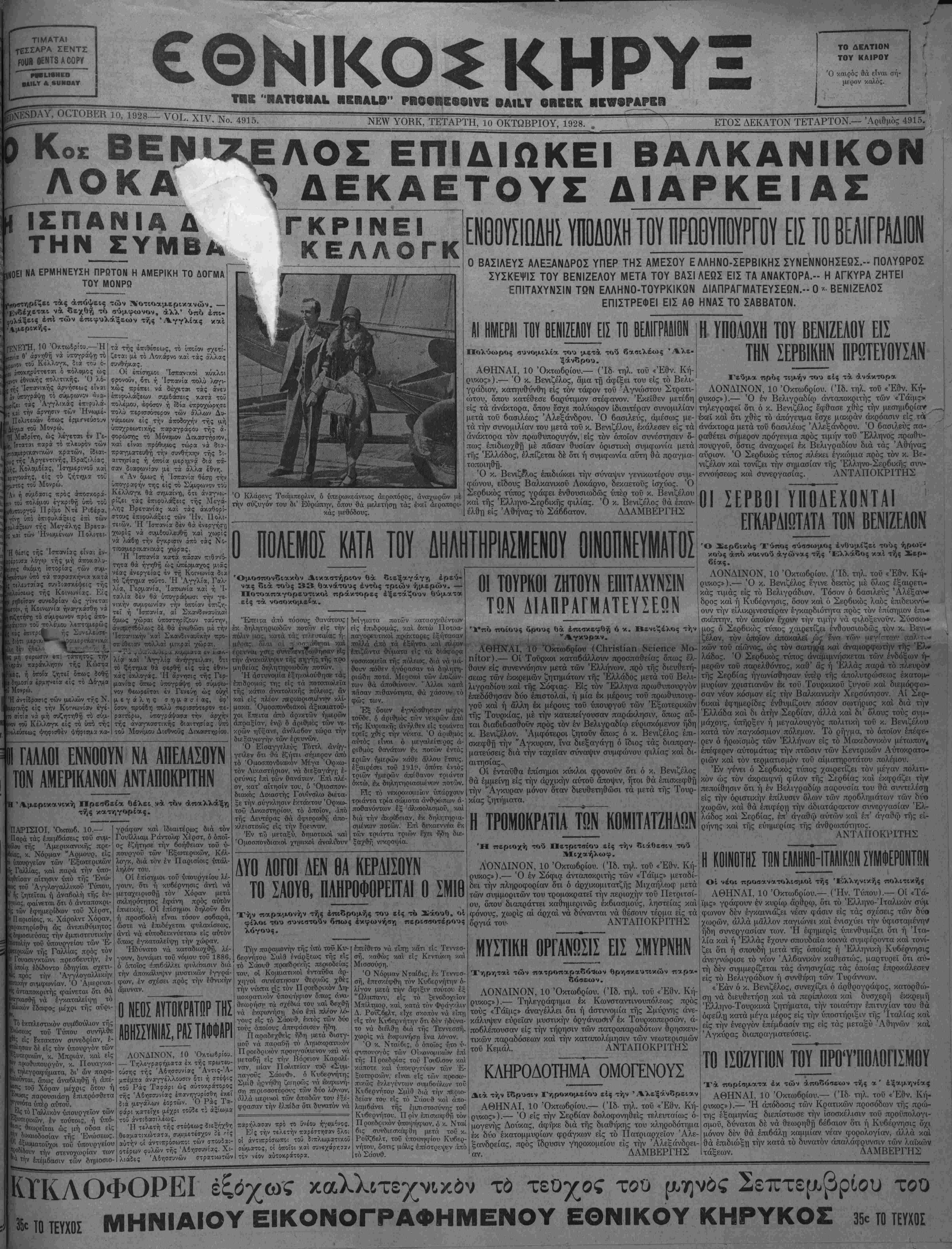 ΝΕΥ ΥΟΚΚ, ΤΕΤΑΡΤΗ, 10 ΟΚΤΩΒΡΙΟΥ, 1928. #