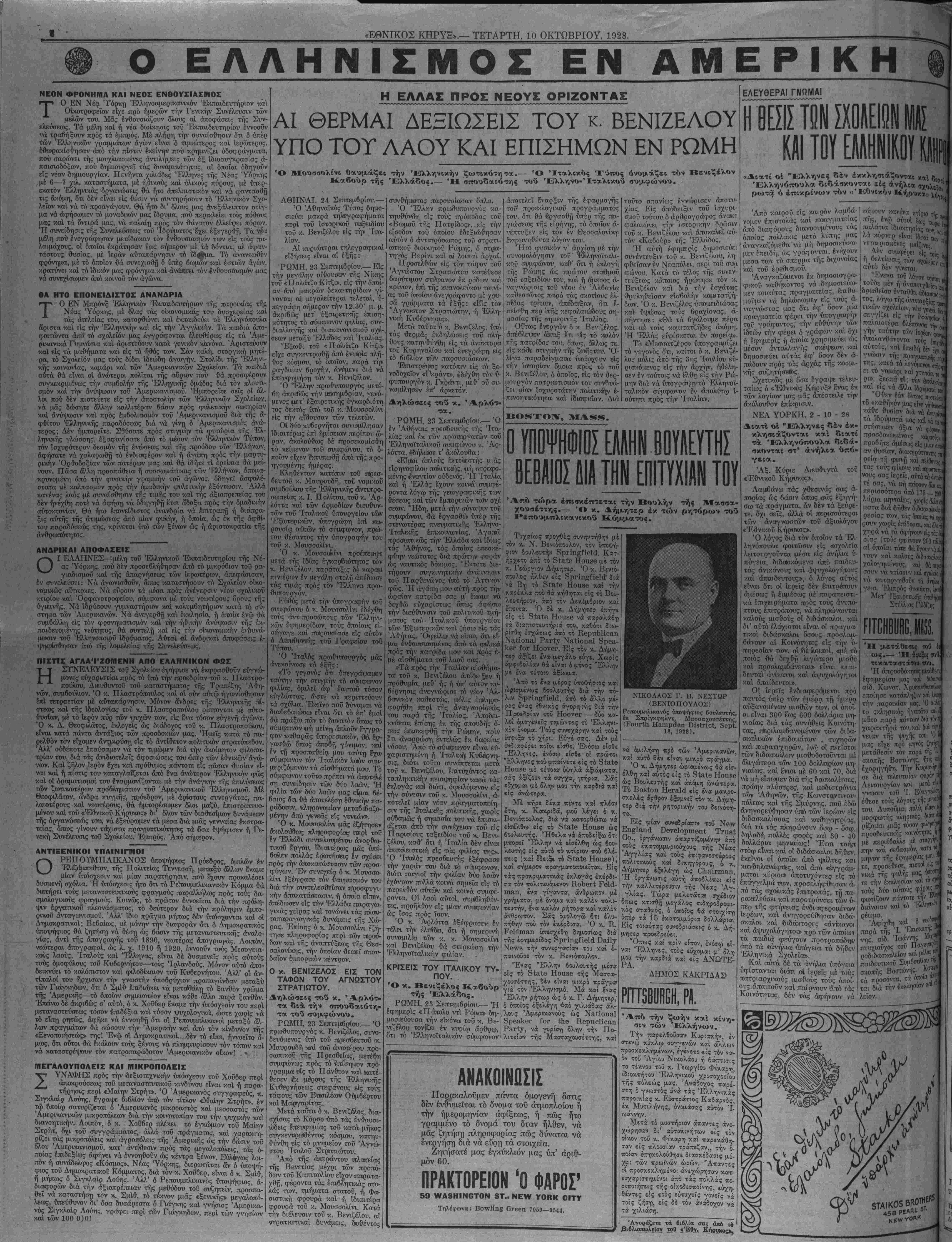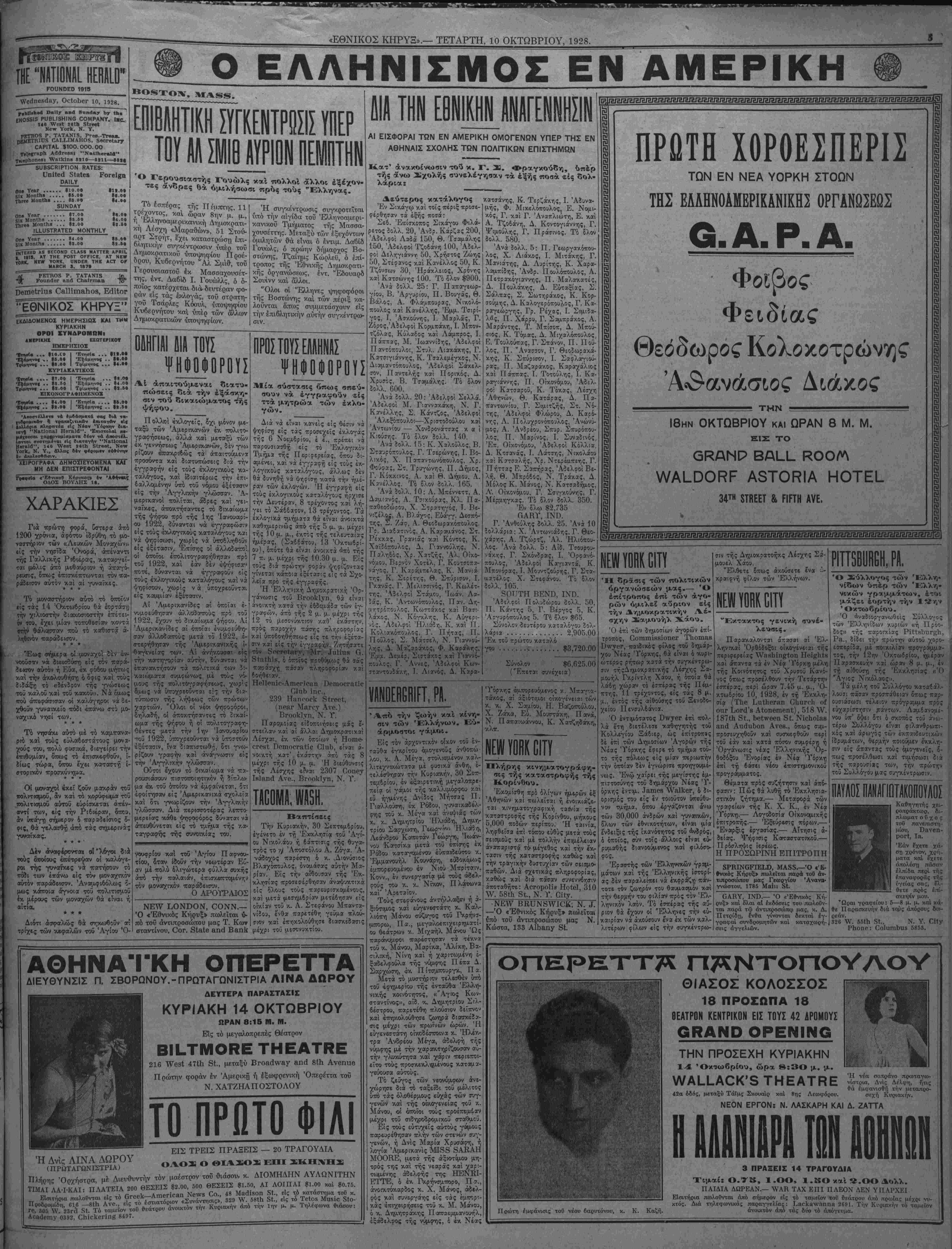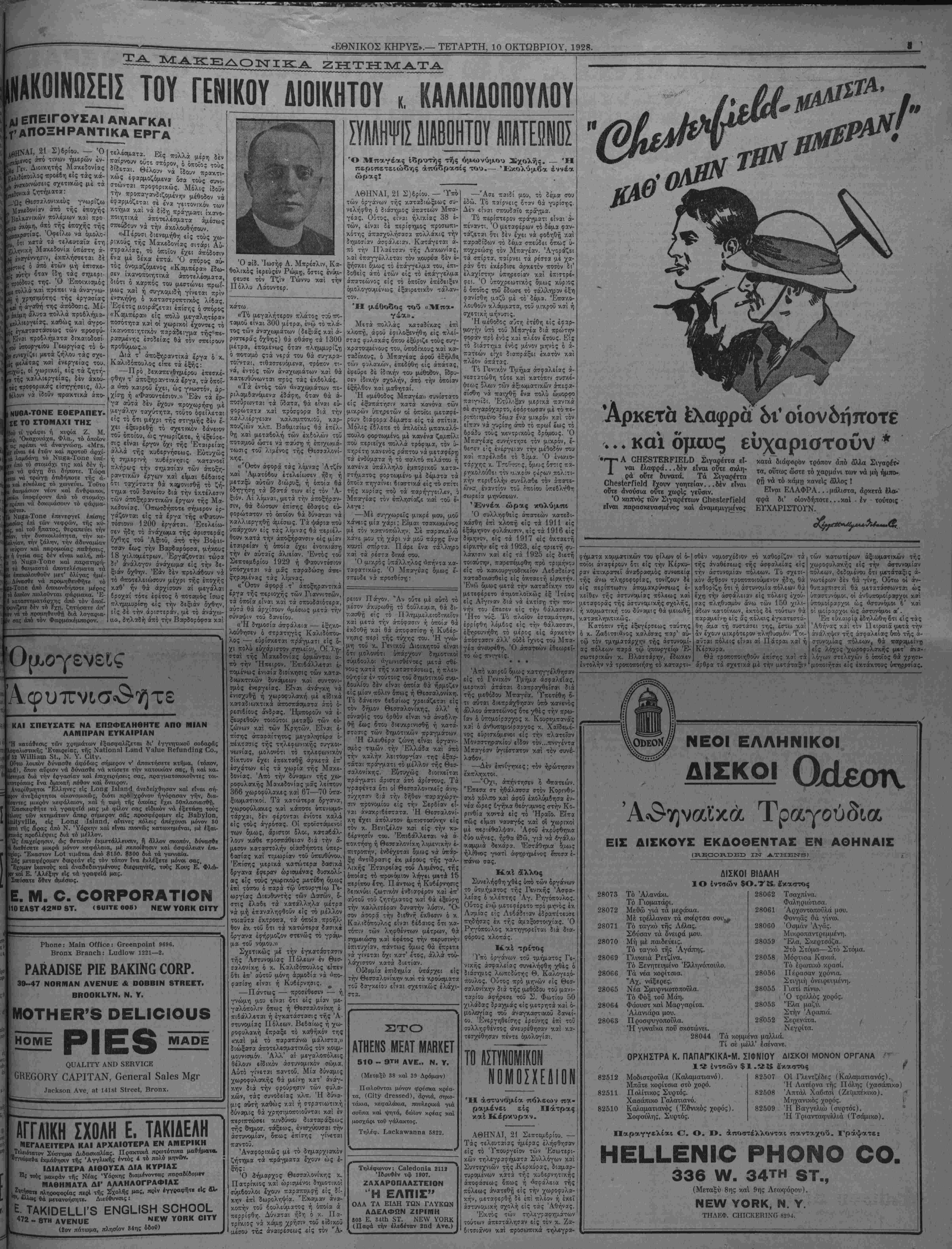 ΝΕΥ ΥΟΚΚ, ΤΕΤΑΡΤΗ, 10 ΟΚΤΩΒΡΙΟΥ, 1928. #