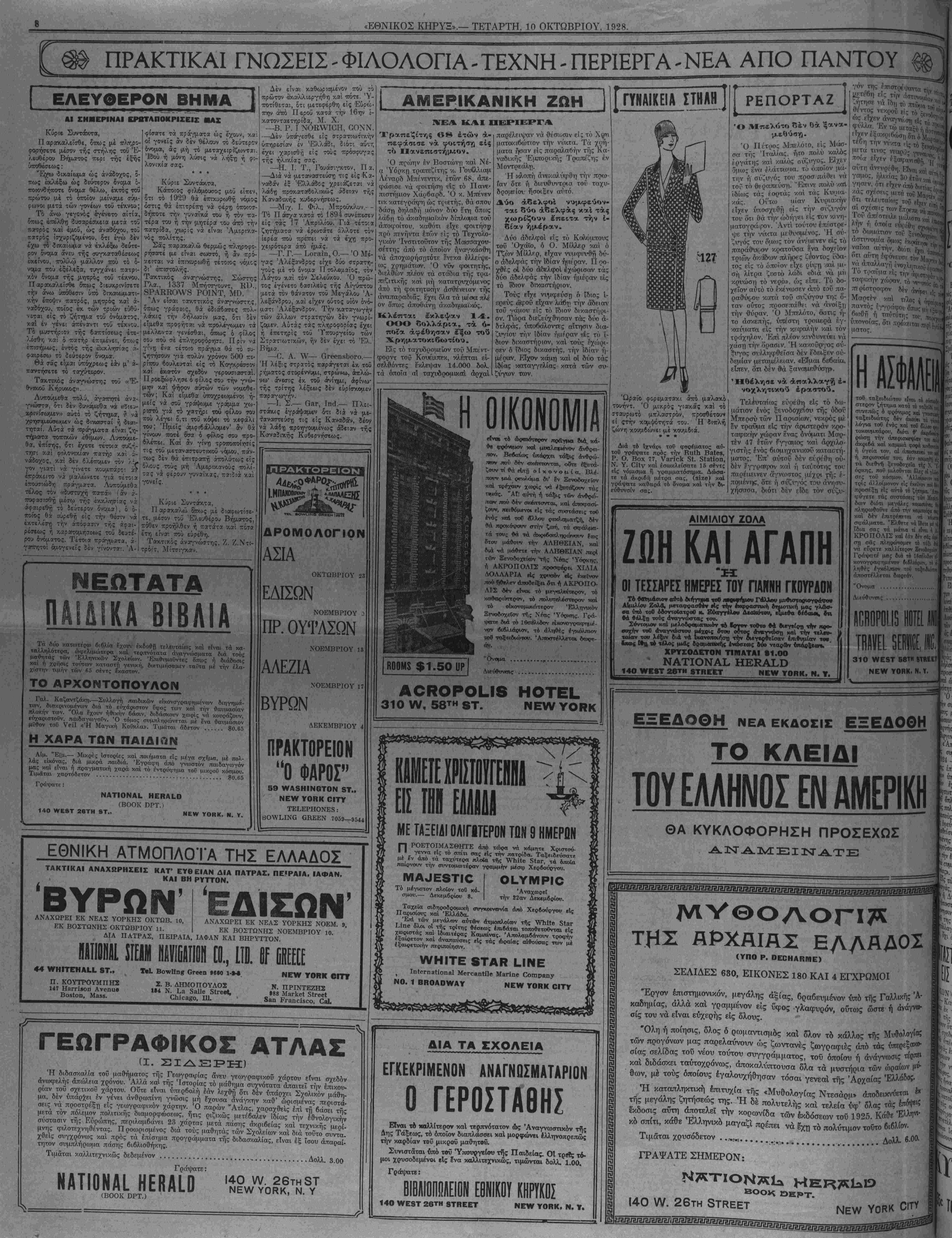 Τό θαυμάσιον α*τό οΐίτγ—*α τοθ Μβι«)ήμβυ Γαλλβν μν><Η—οβνογοά^ρο· ΑΙμιλίου Ζολα, μνταφοασνέν Λς τττν έΝφοαβ—κή οτΗΜττνχή μας γλώβ- βα υπό τσθ όοοντοΙατοσΟ κ. Εύάγτέλου Δεχβΐότου, είμεθα βέοαιβι, βπ «ά θέλξτι τούς άταγνχδβτας τού. Σόντομον καί μβλο&ρ—ιατχικόν τβ Ιογ—■ τοθτο Μ βιτγιΐρτ) την κοο- οοχήν τοΰ αναγνώστου μέχοις ότου οοτος αναγνώση καί την τελευ¬ ταίαν τού λέξιν οιά νά ιχανοπβιήστι την ονεγβοθείσαν επιθυμίαν τον. λχος (·α τό τέλος μιΛς δραμβ—χής ενώσεως ού» νεαρΛν 6πάβξ·«»τ» ΧΡΎΣΟΔΕΤΟΝ ΤΙΜΑΤΑΙ »1.00 ΝΑΤIΟΝΑ^ ΗΕΚΑ1.Ό 140 -τΥΕ»Τ 26ΤΗ βΤΗΕΕΤ________ΝΕνΥ ΥΟΒΚ, Ν. Τ. ν« απαλλαγή ένο/ Τό τοαΰμα είς ταφ,,ήν ώ περίστροφον δέν Μοτρτέν ν.αί τοϋ ταξειδιώτου είναι τΑ ου~Κ στερον ζητημα κστά τό τσξΕϊδί τοβ οννβπως ό φρόνιμος χά γνω—νχΑ^ ταξειδιωτης δέν άκούίΐ τα νΩ λόγια τοΰ ενός καί τοί δλλου ν» τοκουμπαρου, διότι ♦" άχφά* ρώστι την απϊρισκΓψΐον τού «5 ακριβά καί καμμιά φοοά κινονκύη η υγεία τού, αί ώΐοσκευαί τ» ^ ή Πϊριουσία τού, εάν κοιμηθή ι!? τα διεθνη ξενοβοχεία τής Ν, ·γ. όοκης, ποϋ μιλοθνται δλ.Ε; οί >,).«>.