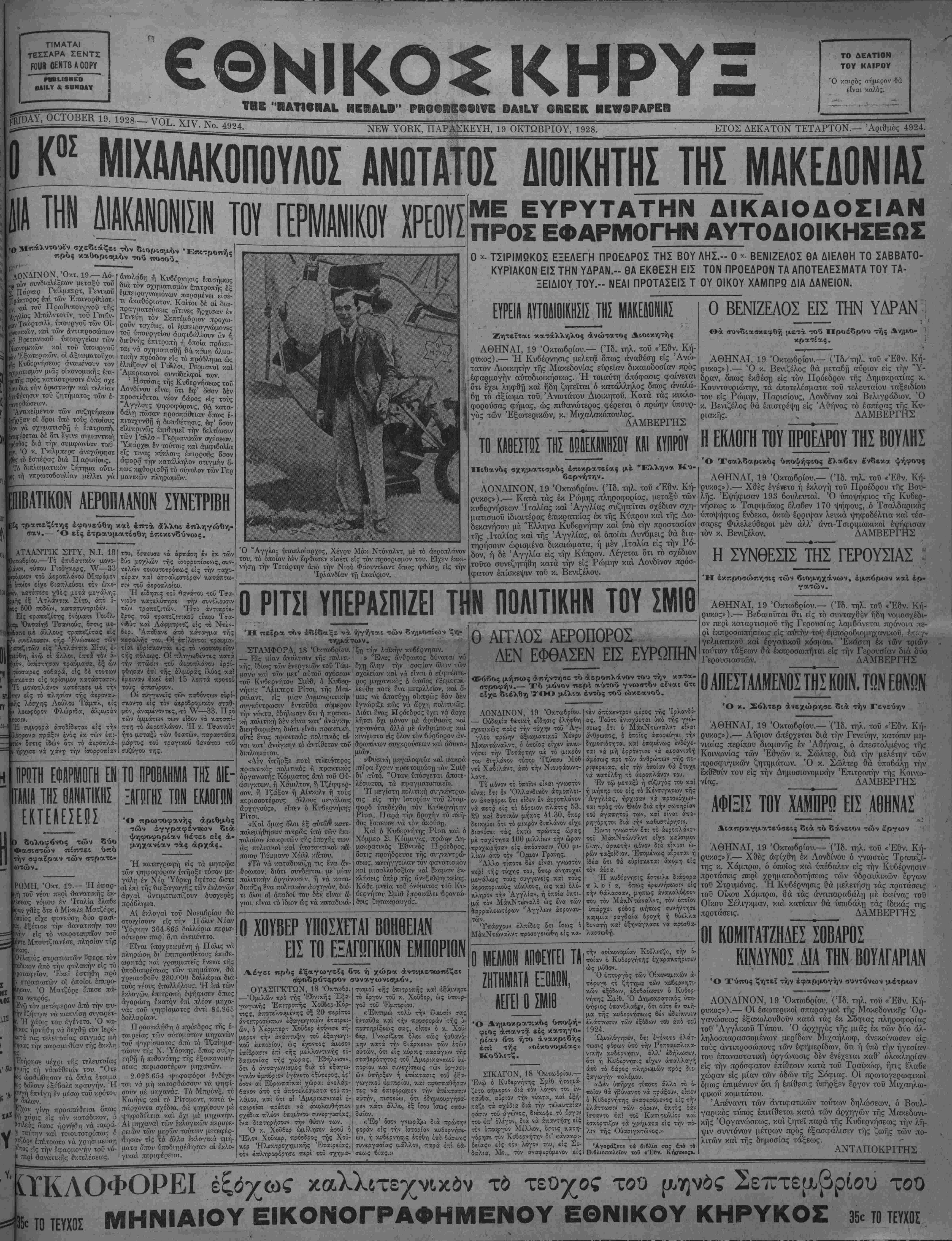 ΝΕν ΥΟΒΚ, ΠΑΡΑΣΚΕΥΗ, 19 ΟΚΤΩΒΡΙΟΥ, 1928.