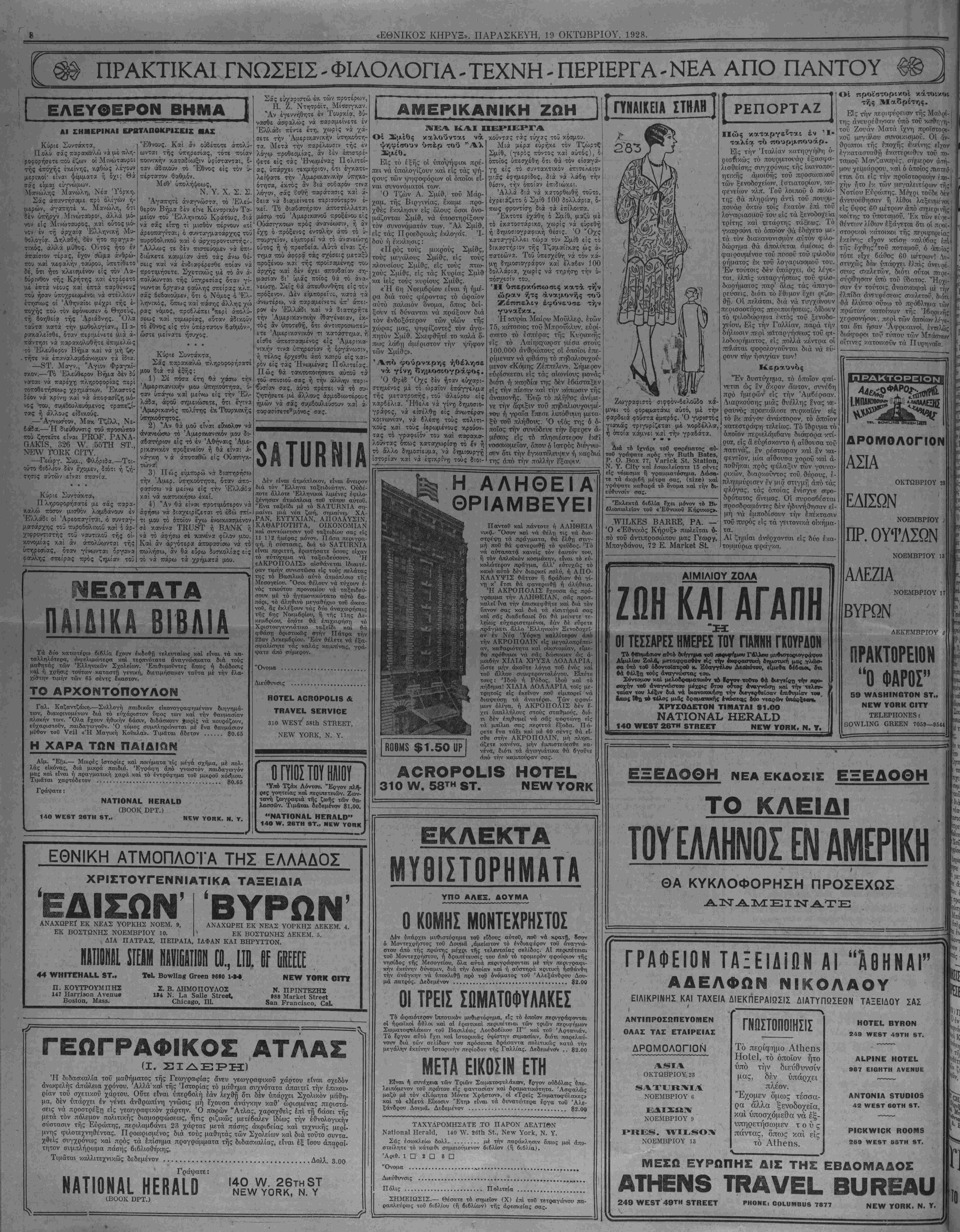 Σύντόμον «αί μ«λοο<κεμα-ηΜΟν το Ιογον τοθτο θά βΧτγιΙρτ) την ποο- βοχήν τοθ αναγνώστου μέχοις βτου οδτο| αναγνώση κβΐ ττιν τβλεν· ταιαν τον λέξιν διά νά ίχανοποιήοτι την ο««γ·οθείσαν επιθυμίαν τμ, 1*η τό τέλος μι,Ος βραματιΧΓις ένώβεω,ς δύο νεαρών ύξ ΧΡΎΣΟΔΕΤΟΝ ΤΙΜΑΤΑΙ 81.ΟΟ 140 ¥ΤΕ8Τ 26ΤΗ 5ΤΒΕΕΤ ΝΕ%Υ ΥΟΒΚ, Ν. Τ. Π ΡΑΚΤΟΡΕΙΟΝ ΔΡΟΜΟΛΟΓΙΟΝ ΑΣΙΑ ΟΚΤΩΒΡΙΟΥ 23 ΕΔΙΣΩΝ Ι ΠΡ. ΟΥΤΛΣΩΝ ΝΟΕΜΒΡΙΟΥ ΝΟΕΜΒΡΙΟΥ 13 ΑΛΕΖΙΑ ΝΟΕαΥΓΒΡΙΟΥ 17 ΒΥΡΟΝ ΔΕΚΕΜΒΡΙΟΥ ΠΡΑΚΤΟΡΕΙΟΝ "Ο ΦΑΡΟΣ" 59 ννΑ8ΗΙΝβΤ0Ν 5Τ.. ΝΕν ΥΟΒΚ ΟΙΤΥ ΤΕ^ΕΡΗΟΝΕ5: ΟΚΕΕΝ 7059—9544 (011 ΕΞΕΔΟΘίΗ νεα εκδοσισ ΕΞΕΔΟΘΗ ΤΟ ΚΛΕΙΔΙ ΤΟΥ ΕΛΛΗΝΟΣ ΕΝ ΑΜΕΡΙΚΗ ΚΥΚΛΟΦΟΡΗΣΗ ΠΡΟΣΕΧΩΣ -Α. ΪΓ Α. ΧΑ ΕΙΝ __.Τ Ε3 ΓΡΑΦΕΙΟΝ ΤΑΞΕΙΔίΩΝ ΑΙ "'ΑΒΗΝΑΓ ΑΔΕΛΦΟΝ ΝΙΚΟΛΑΟΥ ΕΙΛΙΚΡΙΝΗΣ ΚΑΙ ΤΑΧΕΙΑ ΔΙΕΚΠΕΡΑΙΩΣΙΣ ΔΙΑΤΥΠΩΣΕβΝ ΤΑΞΕΙΔΟΥ ΣΑΣ ΑΝΤΙΠΡΟΣΩΠΕΥΟΜΕΝ ΟΛΑΣ ΤΑΣ ΕΤΑΙΡΕΙΑΙ ΔΡΟΜΟΛΟΓΙΟΝ Α8ΙΑ ΟΚΤΩΕίΡΙΟΥ 23 ΝΟΕΜΒΡΙΟΥ 6 ΝΟΕΜΒΡΙΟΥ 9 ΝΟΕΜΒΡΙΟΥ 13 ΓΝΩΣΤΟΠΟΙΗΣΙΣ Τό περίφημο ΑΙΙιεηδ Ηοΐεΐ, τό οποίον ήτο υπό την διεύτ}ννσίν μας, δέν ύπάρχει πλέον. "Εχομεν δμως τέσσα¬ ρα άλλα ξενοδοχεϊα, καί ύποσχόμεθα νά έξ- υπηρετήσωμεν τούς πάντας, όπως καί είς τό Αΐη6Π8. ΗΟΤΕί ΒΥΒΟΝ 249 νΥΕδΤ 49ΤΗ δ Τ. ΑίΡΙΝΕ ΗΟΤΕί 887 ΕΙΟΗΤΗ ΑΝΤΟΝΙΑ 8ΊΊΙ0Ι05 42 ννΕδΤ 60ΤΗ 8Τ. ΡΙΟΚννΐΟΚ Β00ΓΠ5 259 ΥΥΕδΤ 55ΤΗ δΤ. ΜΕΣΩ ΕΥΡΩΠΗΣ ΔΙΣ ΤΗΣ ΕΒΔΟΜΑΔΟΣ ΑΤΗΕΝ8 ΤΗΑνΕΙ. 249 ΥΥΕ5Τ 49ΤΗ 5ΤΒΕΕΤ ΡΗΟΝΕΐ 7877 ΥΟΒΚ, Ν. Υ· / ιι