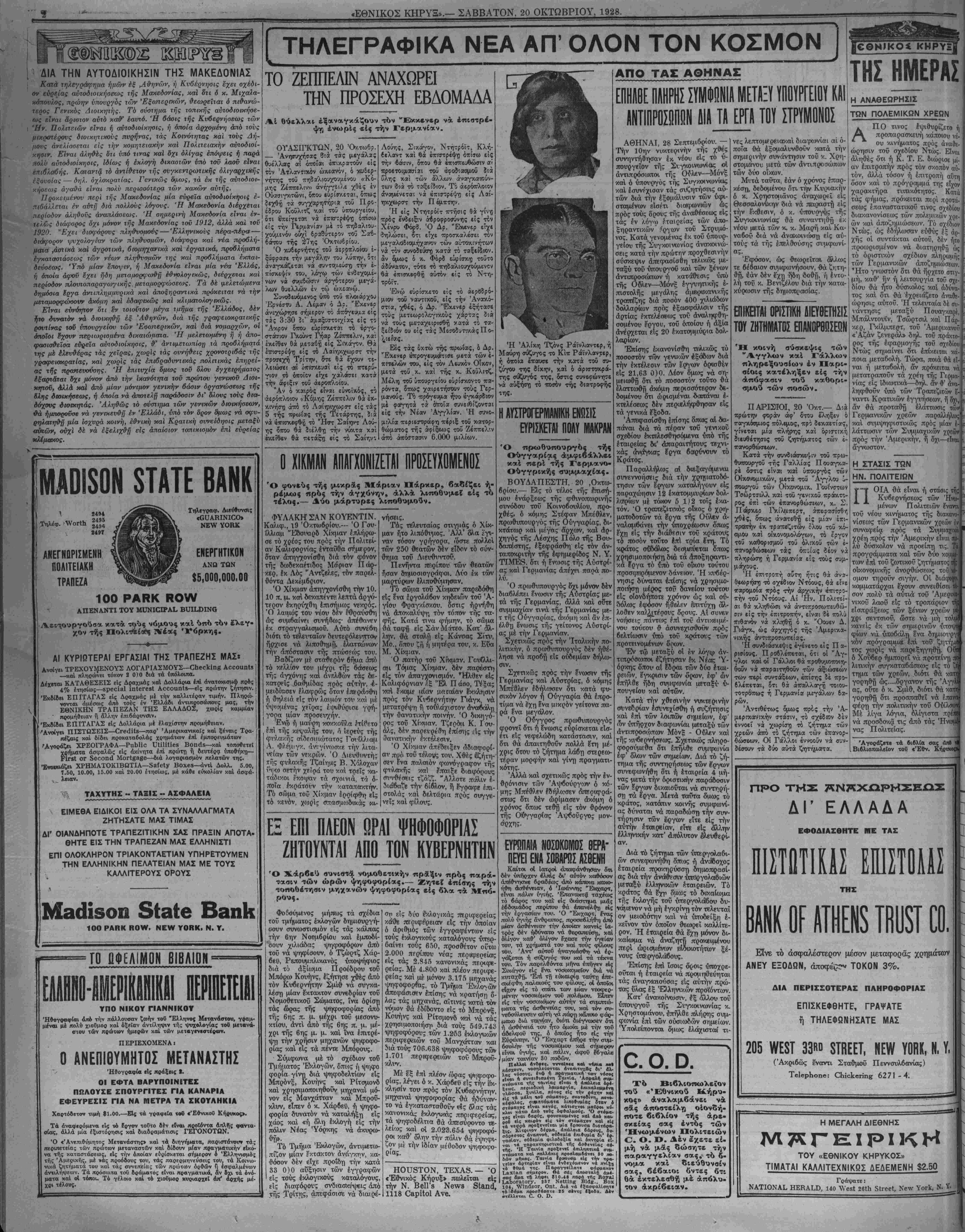 ΝΕΥ ΥΟΚΚ, ΣΑΒΒΑΤΟΝ, 20 ΟΚΤΩΒΡΙΟΥ, 1928.