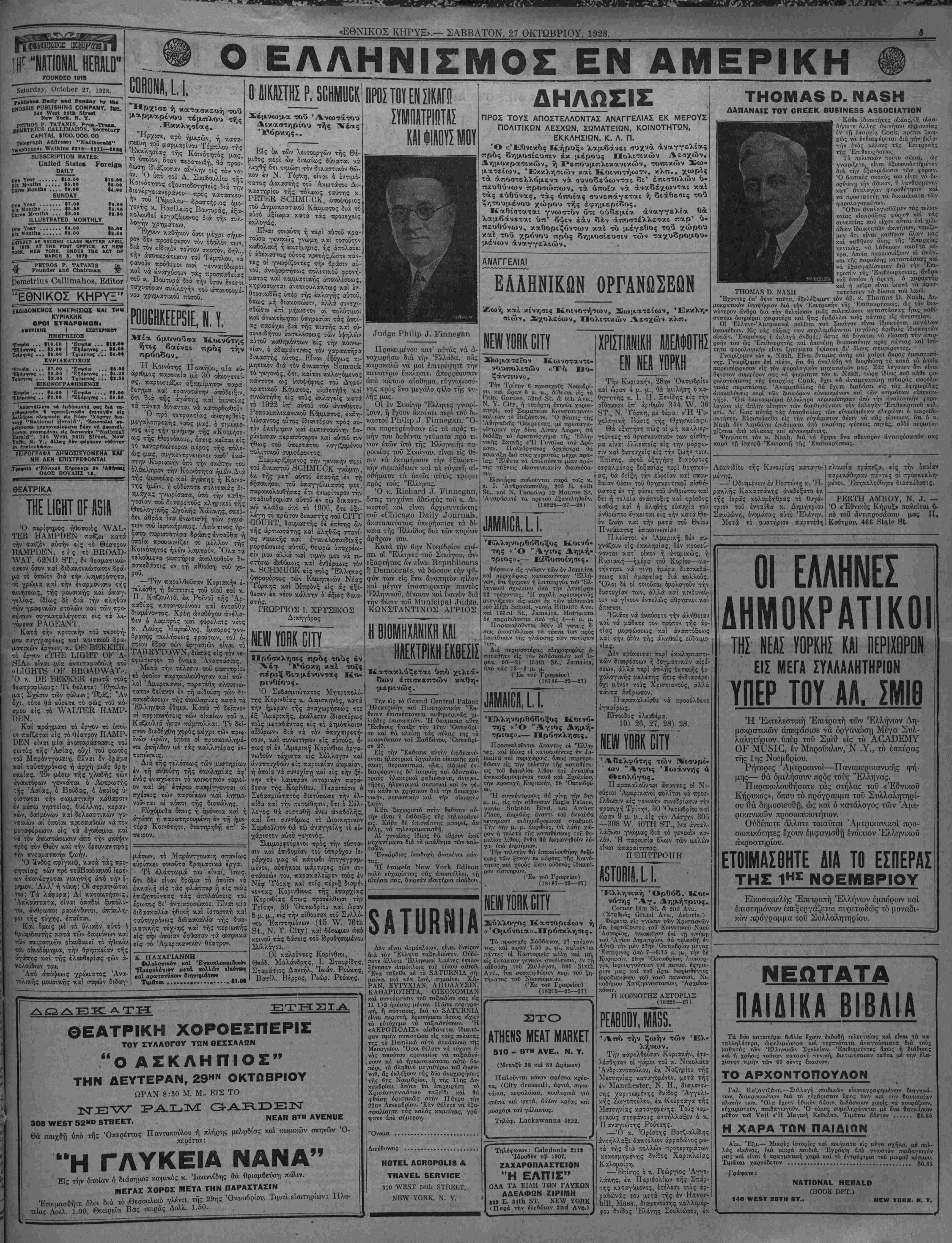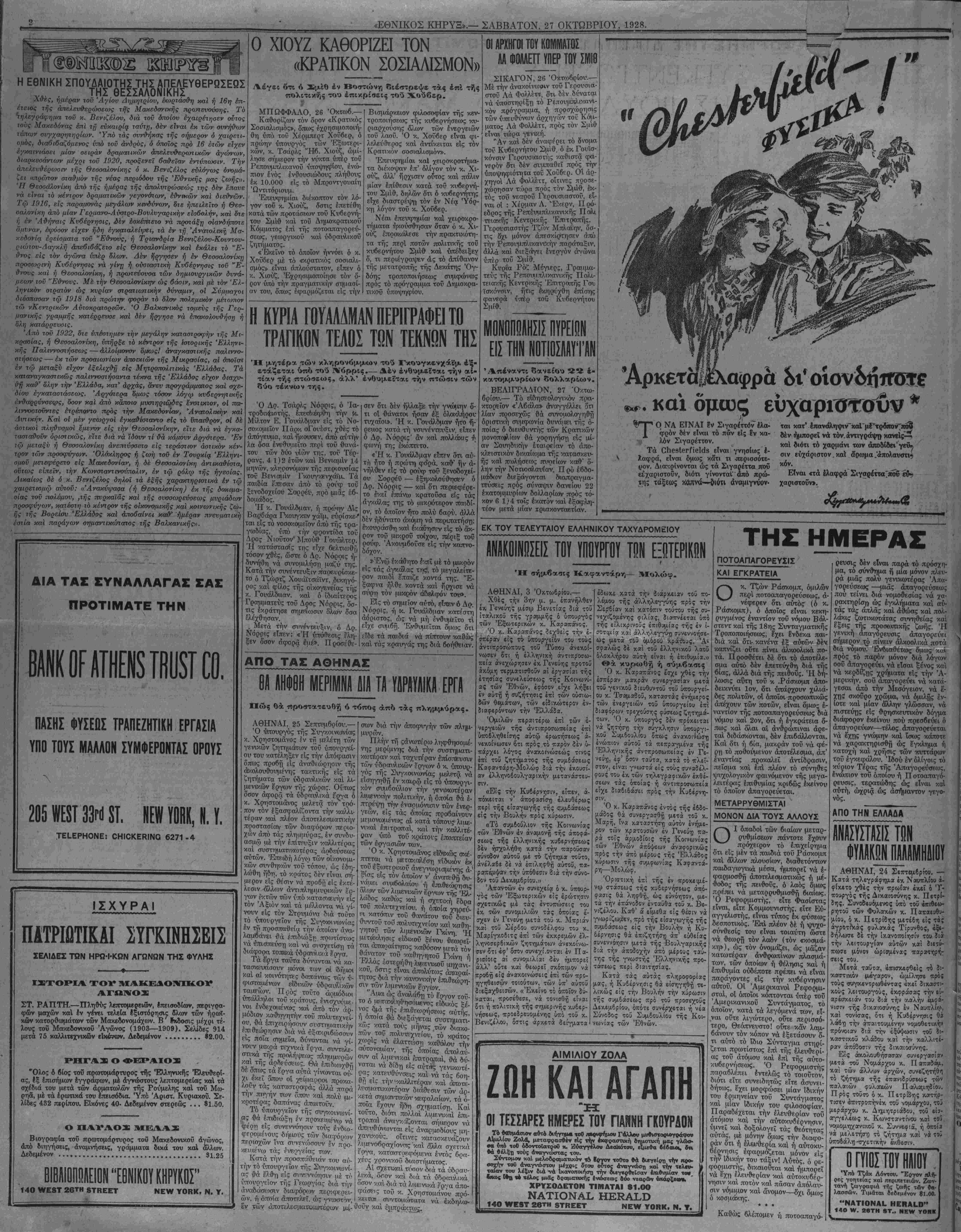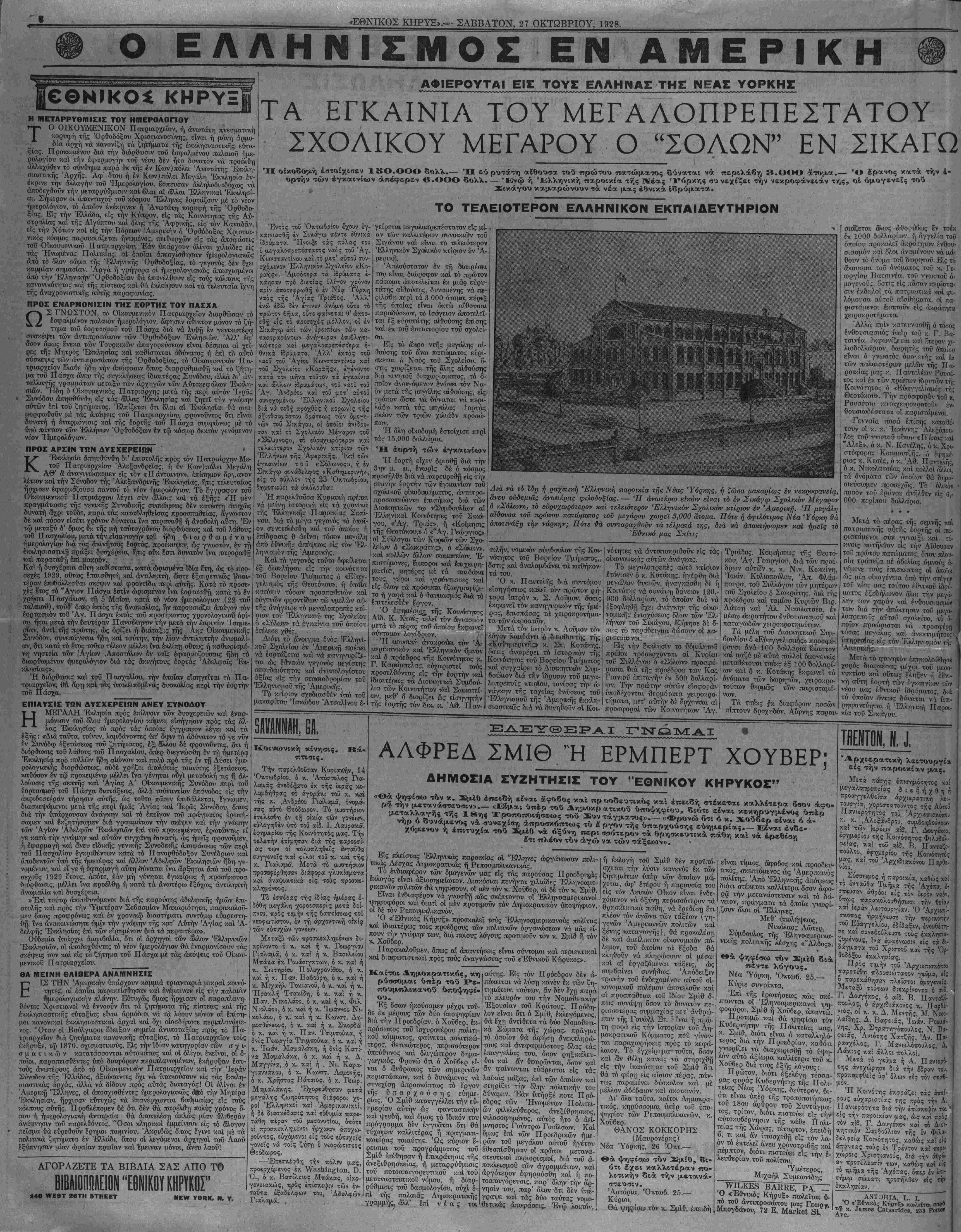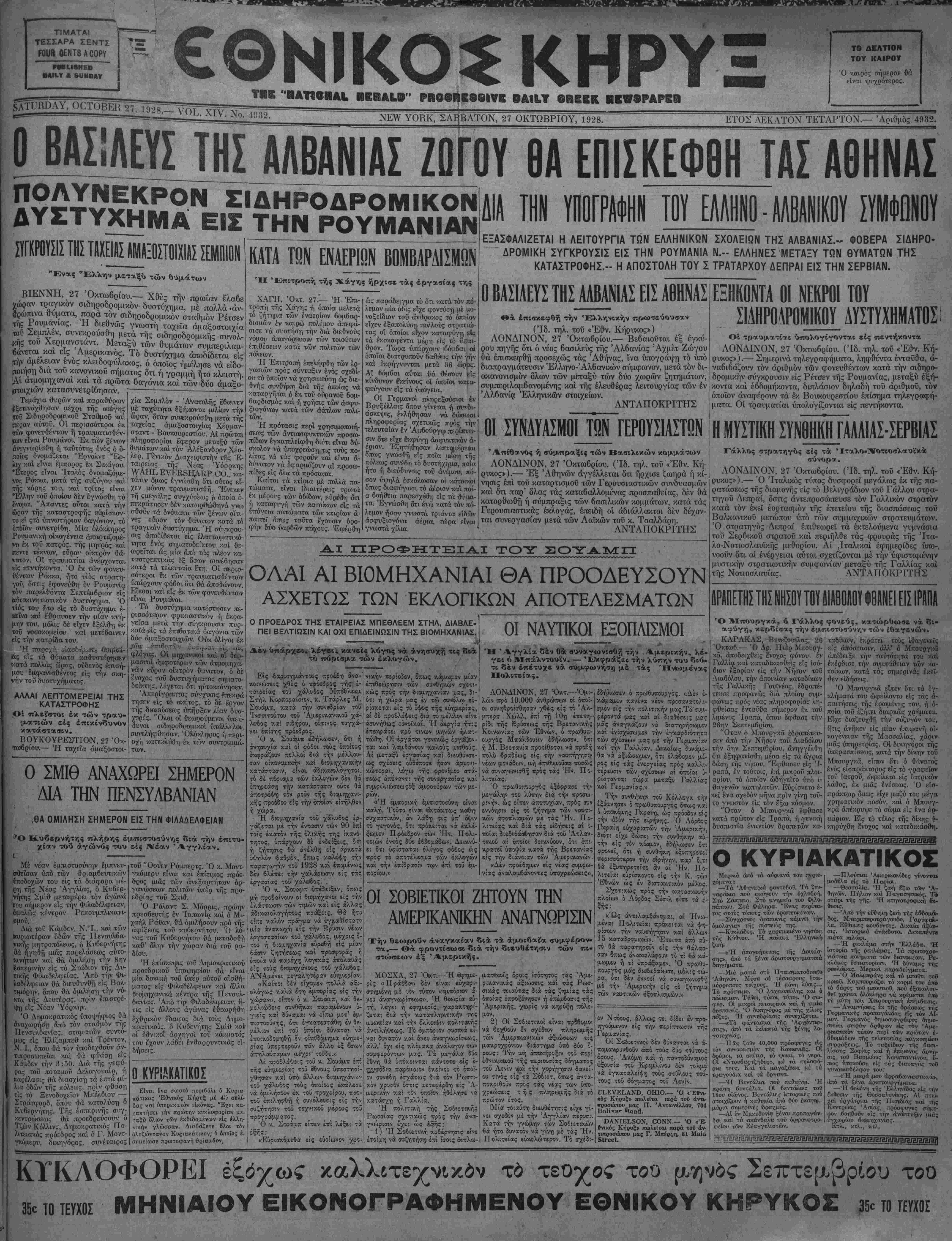- — - ' ' ^_. Αΐν. ΐΝο, 40ό2. ΝΕΥ ΥΟΚΚ, ΣΑΒΒΑΤΟΝ, 27 ΟΚΤΩΒΡΙΟΥ, 1928._________________________ΕΤΟΣ ΔΕΚΑΤΟΝ ΤΕΤΑΡΤΟΝ.— Άριθμός 4932.