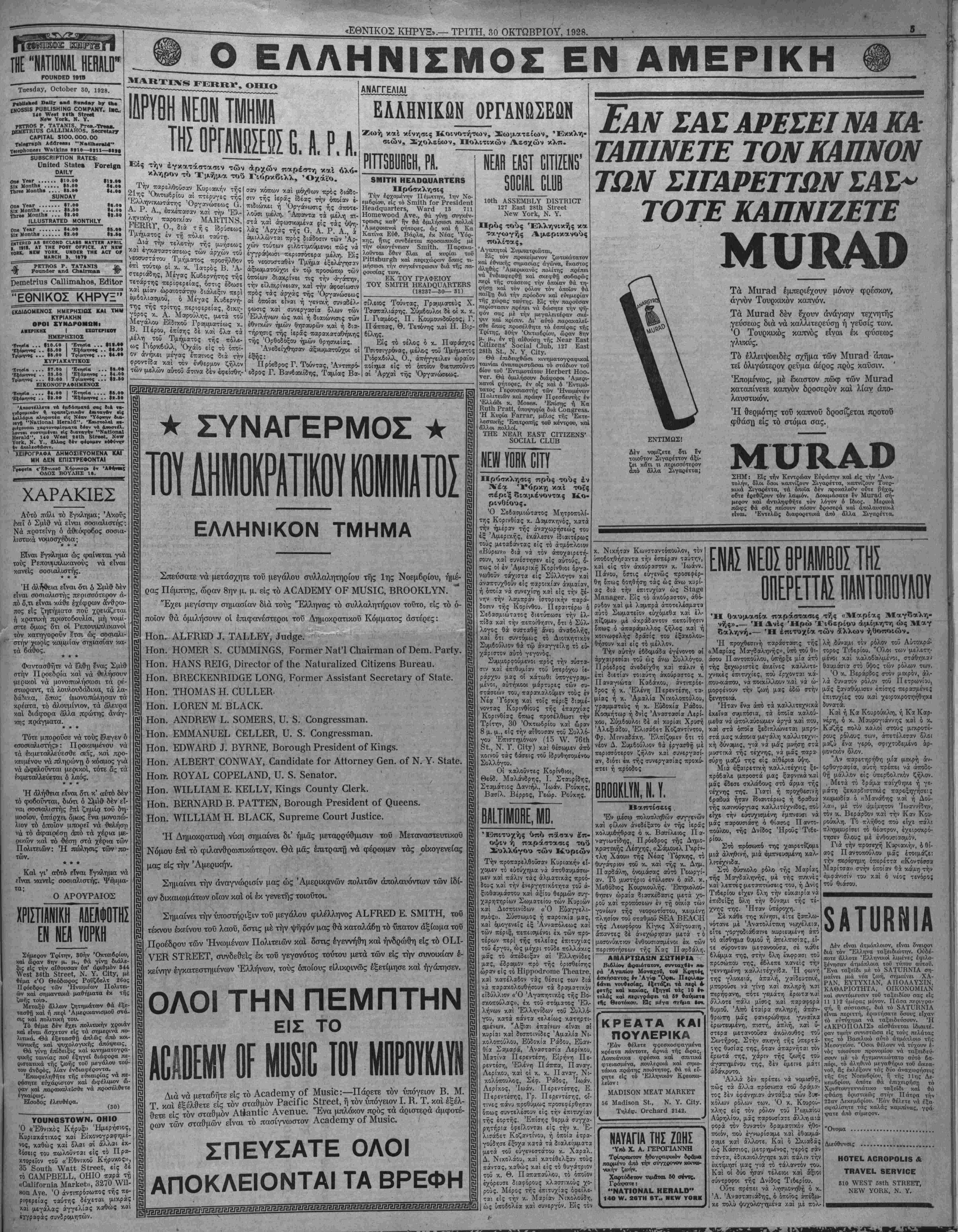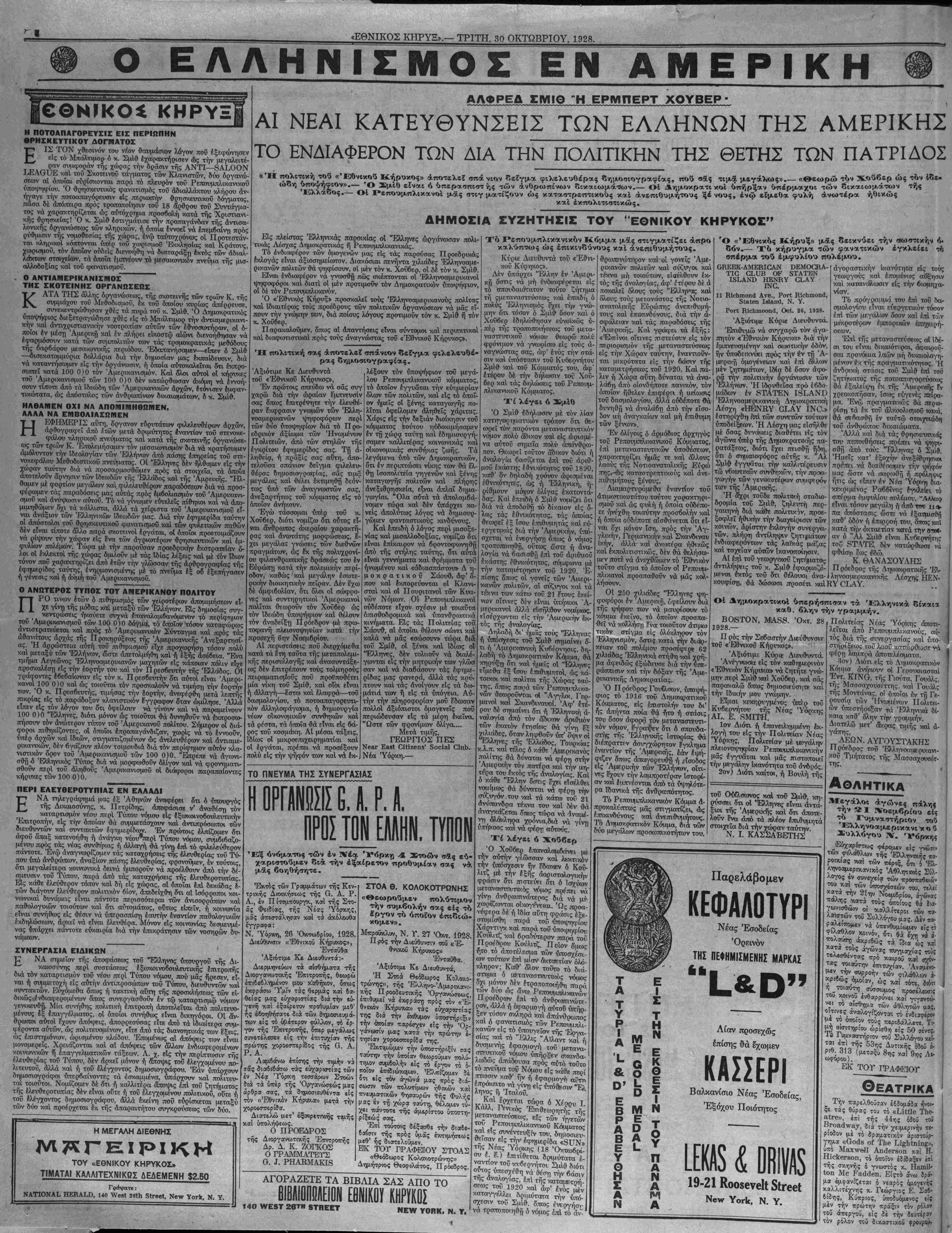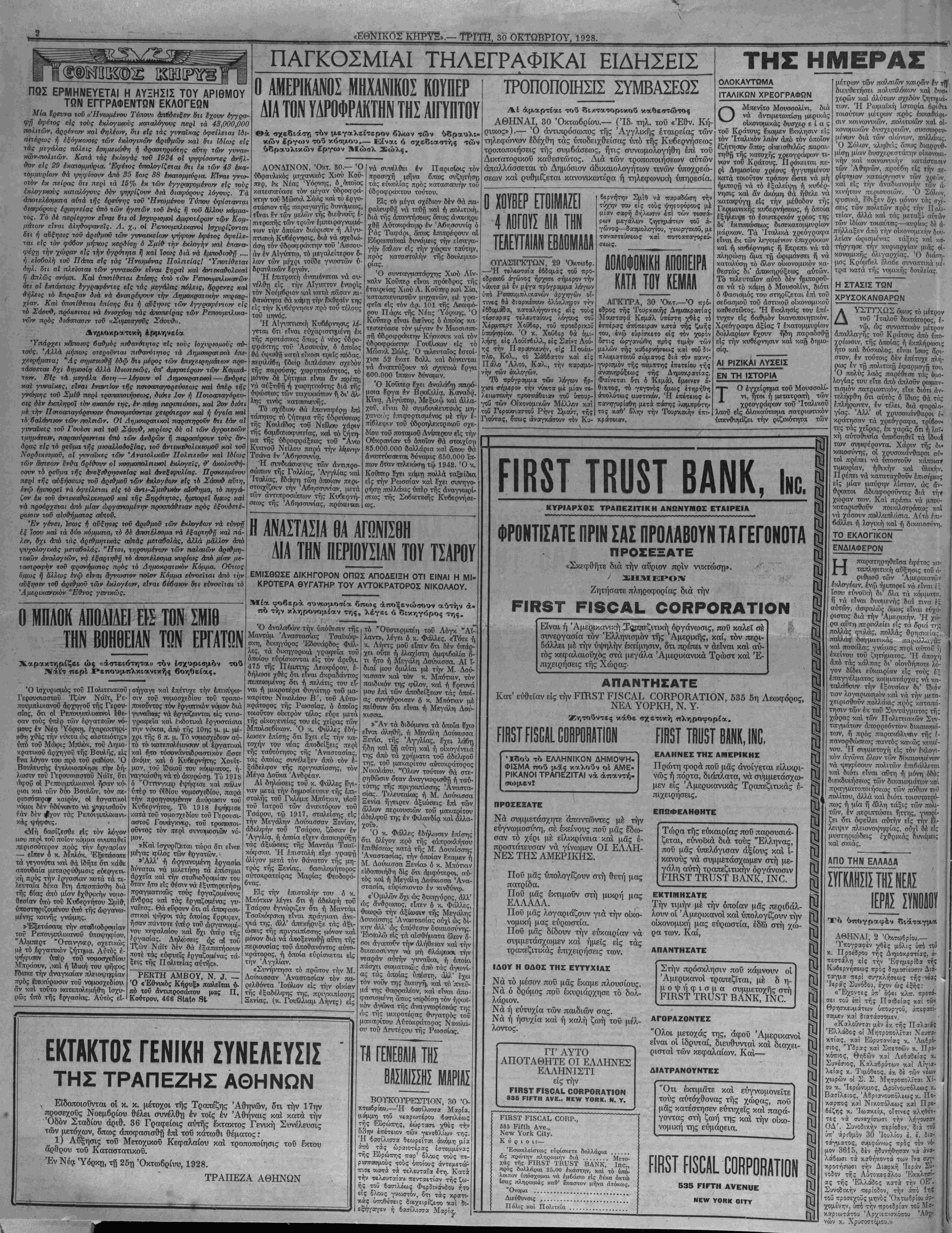 ΝΕΥ ΥΟΚΚ, ΤΡΙΤΗ, 30 ΟΚΤΩΒΡΙΟΥ, 1928.