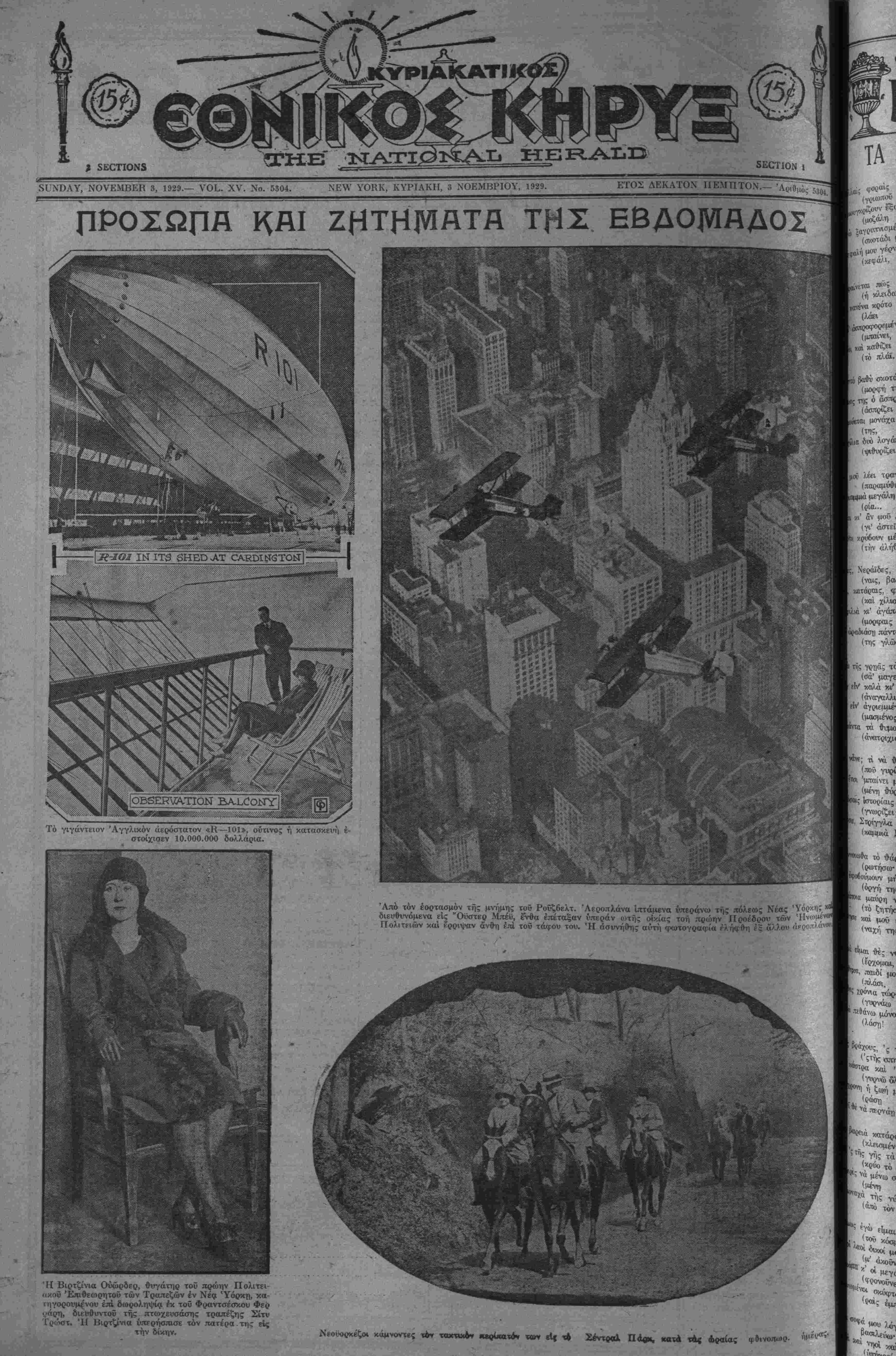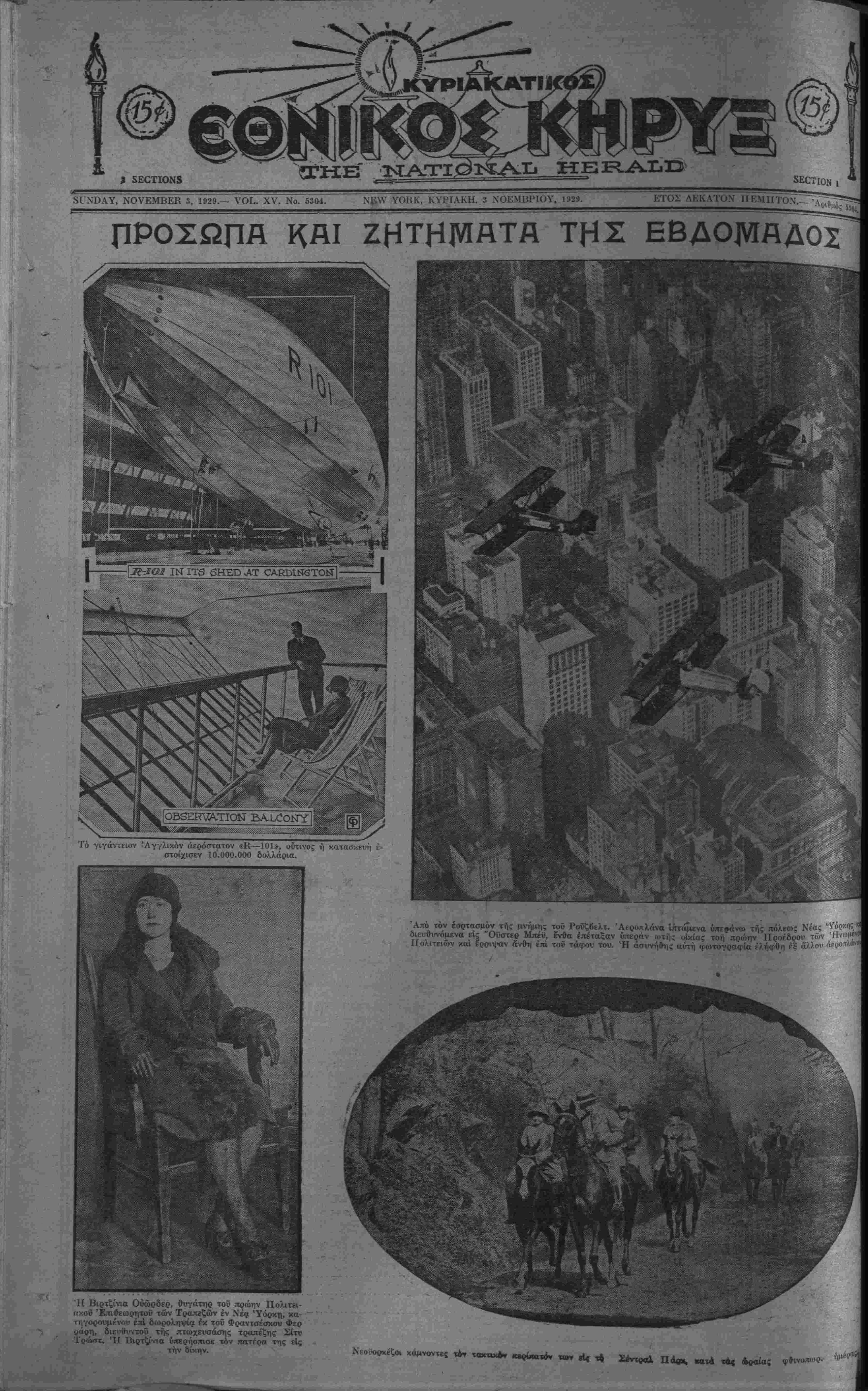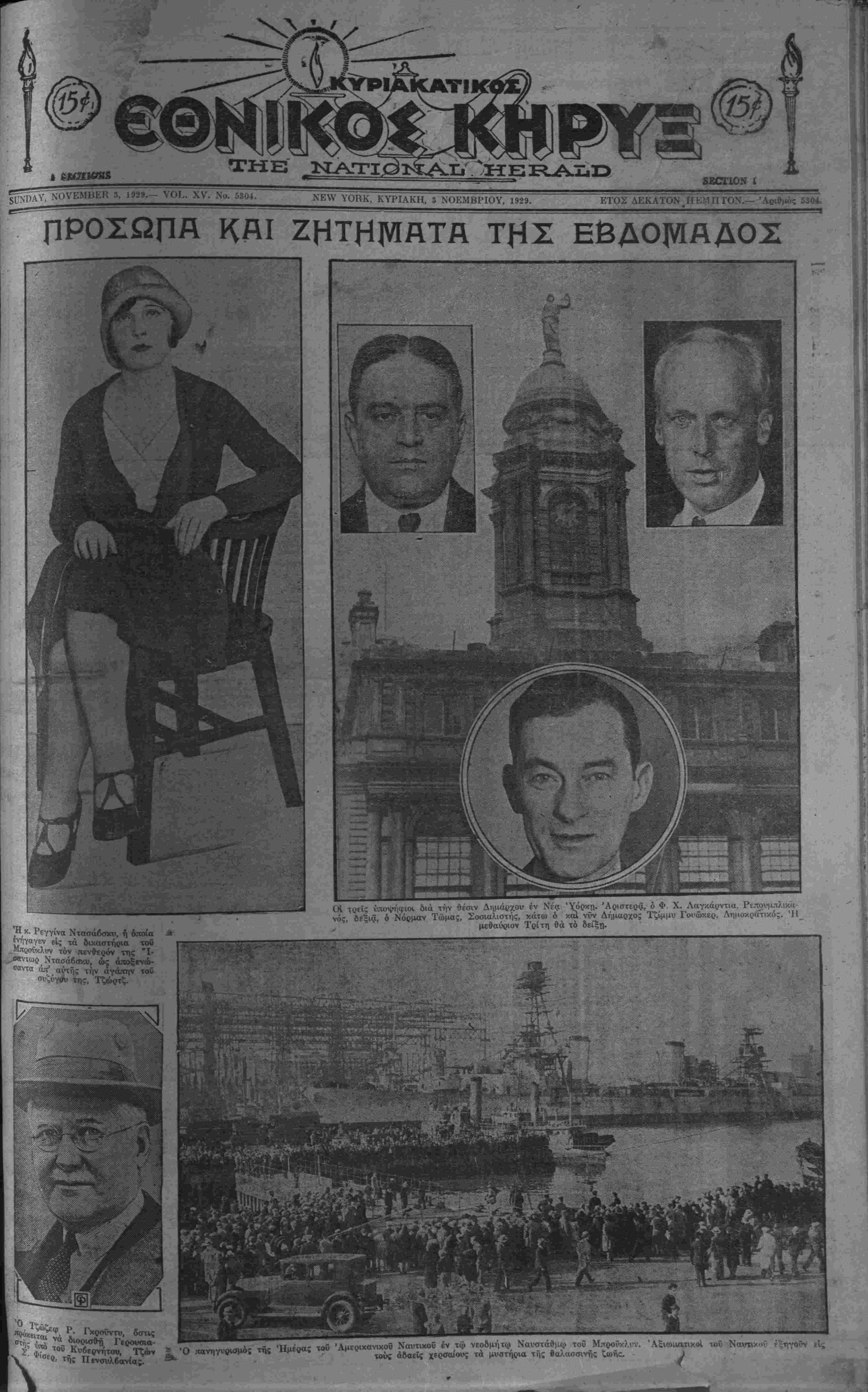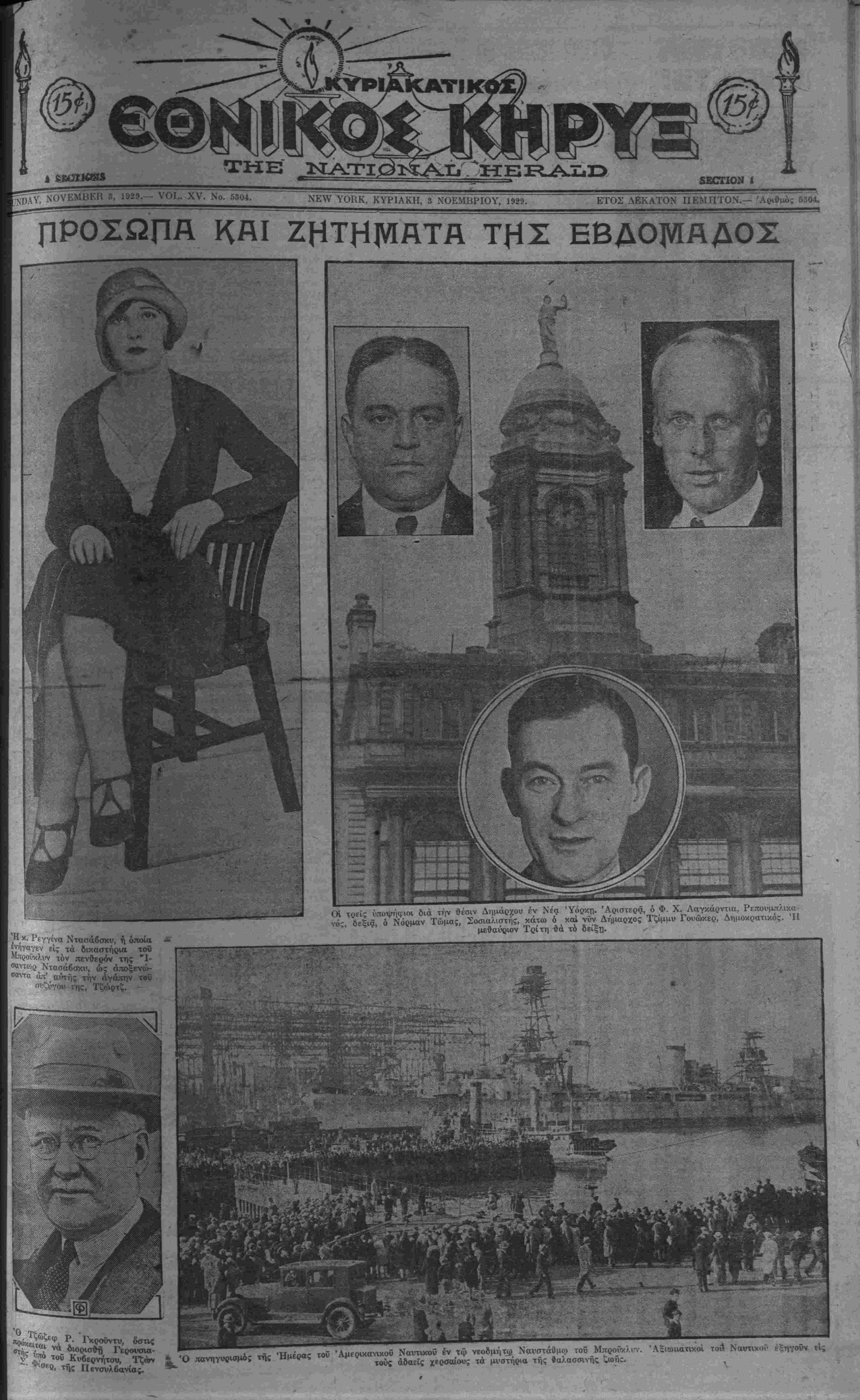 Χο. 5304.________ΝΕ\ ΥΟΠΚ, ΚΥΡΙΑΚΗ, 3 ΝΟΕΜΒΡΙΟΥ, 1929.