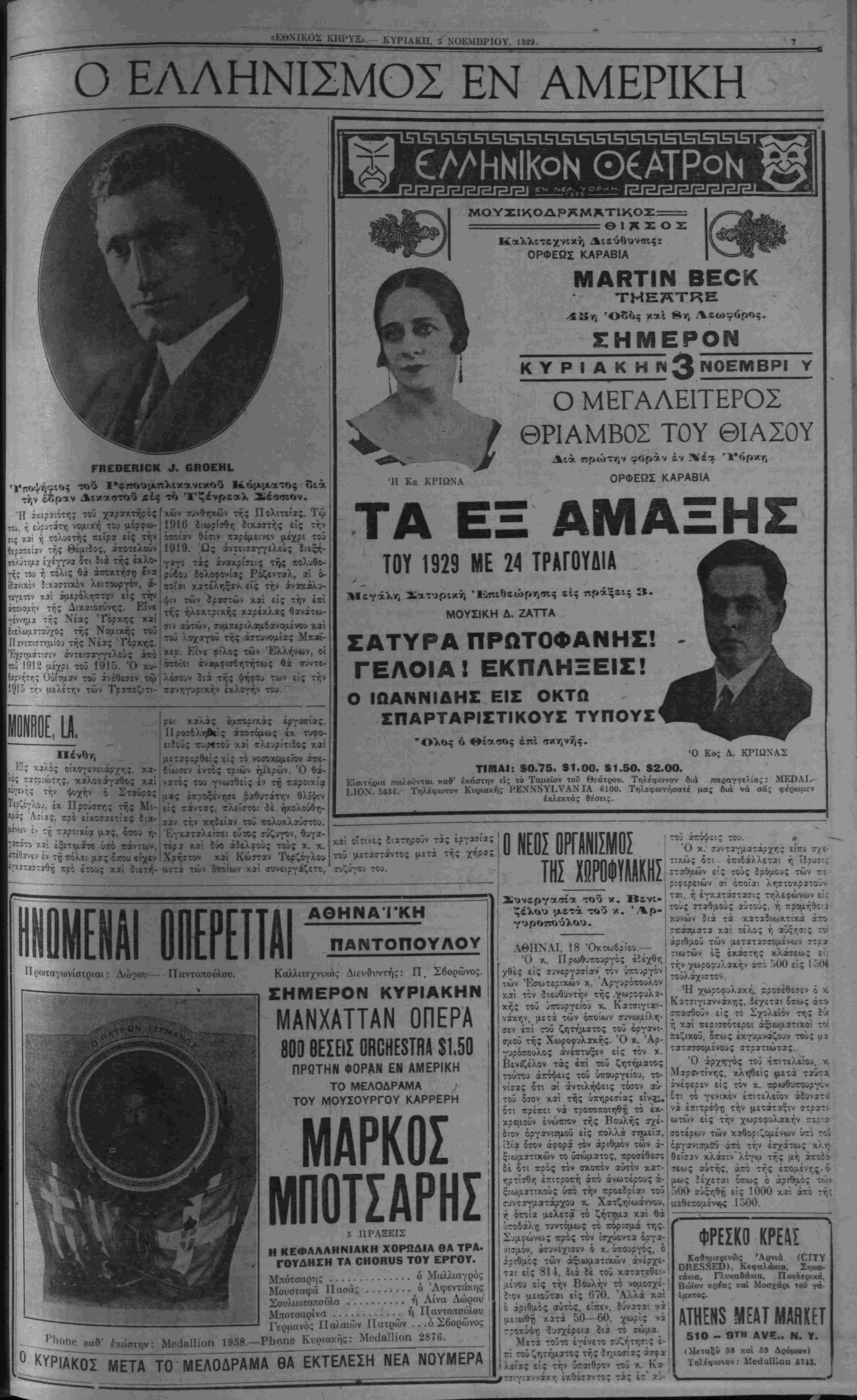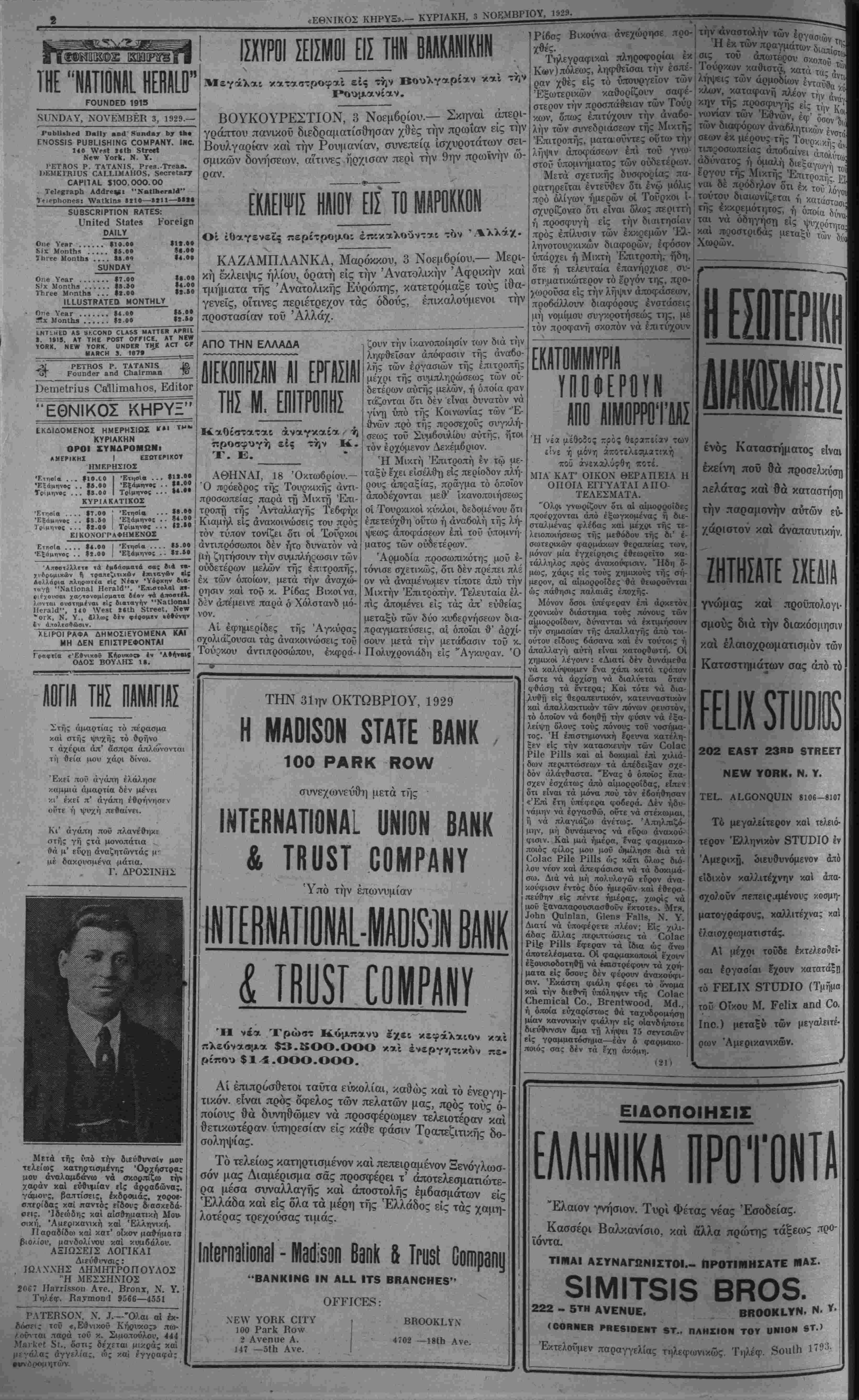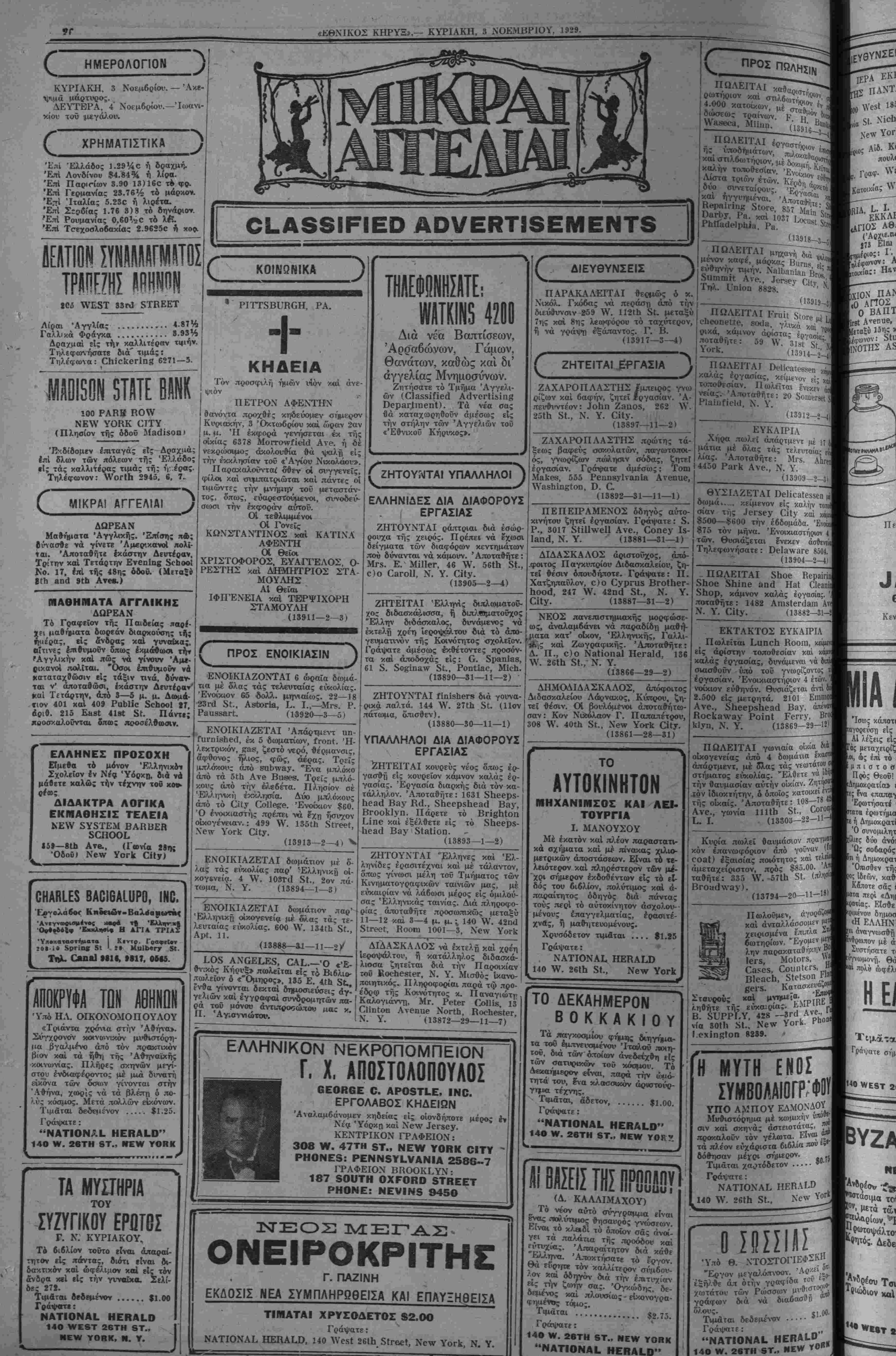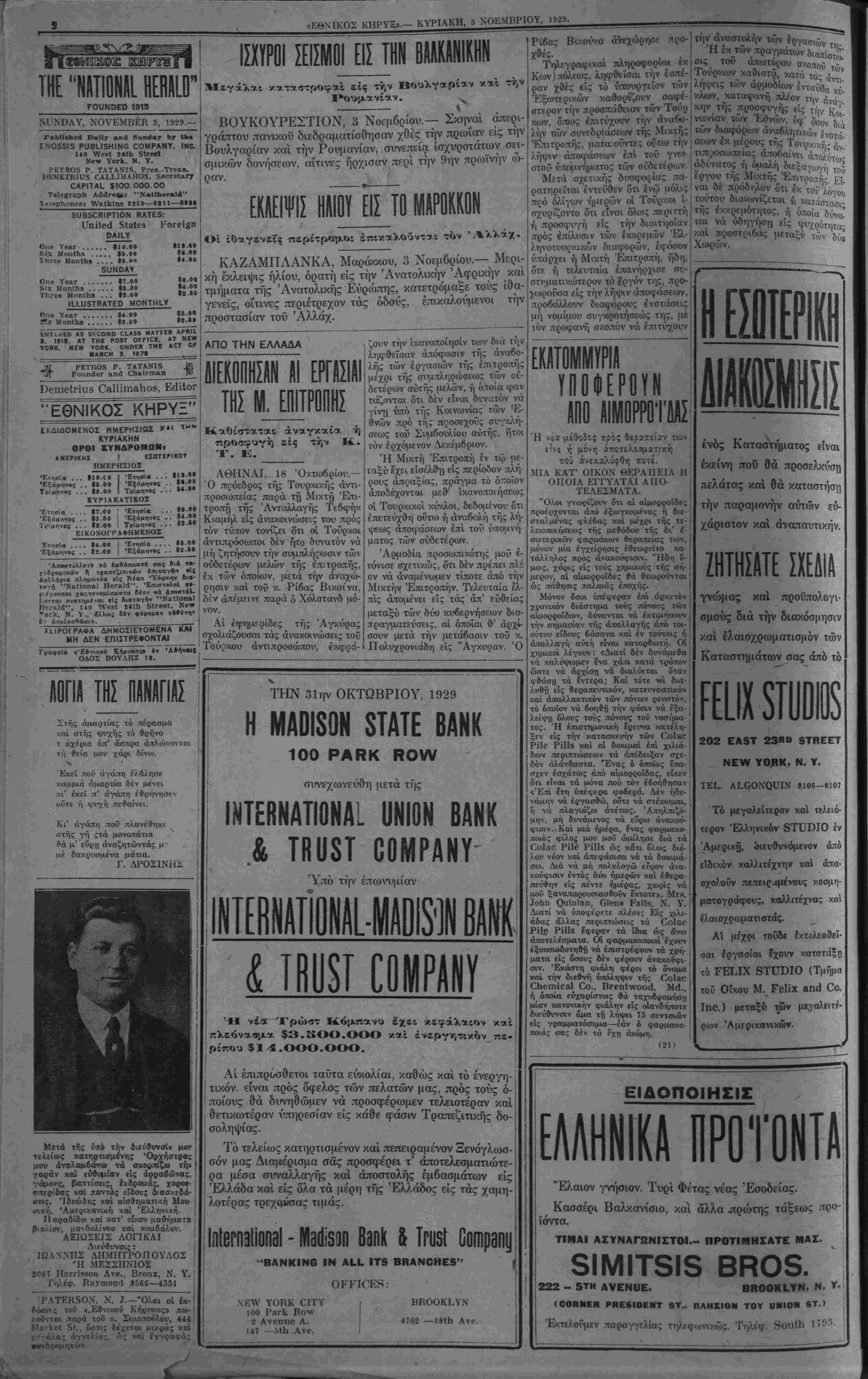 Χο. 5304.________ΝΕ\ ΥΟΠΚ, ΚΥΡΙΑΚΗ, 3 ΝΟΕΜΒΡΙΟΥ, 1929.