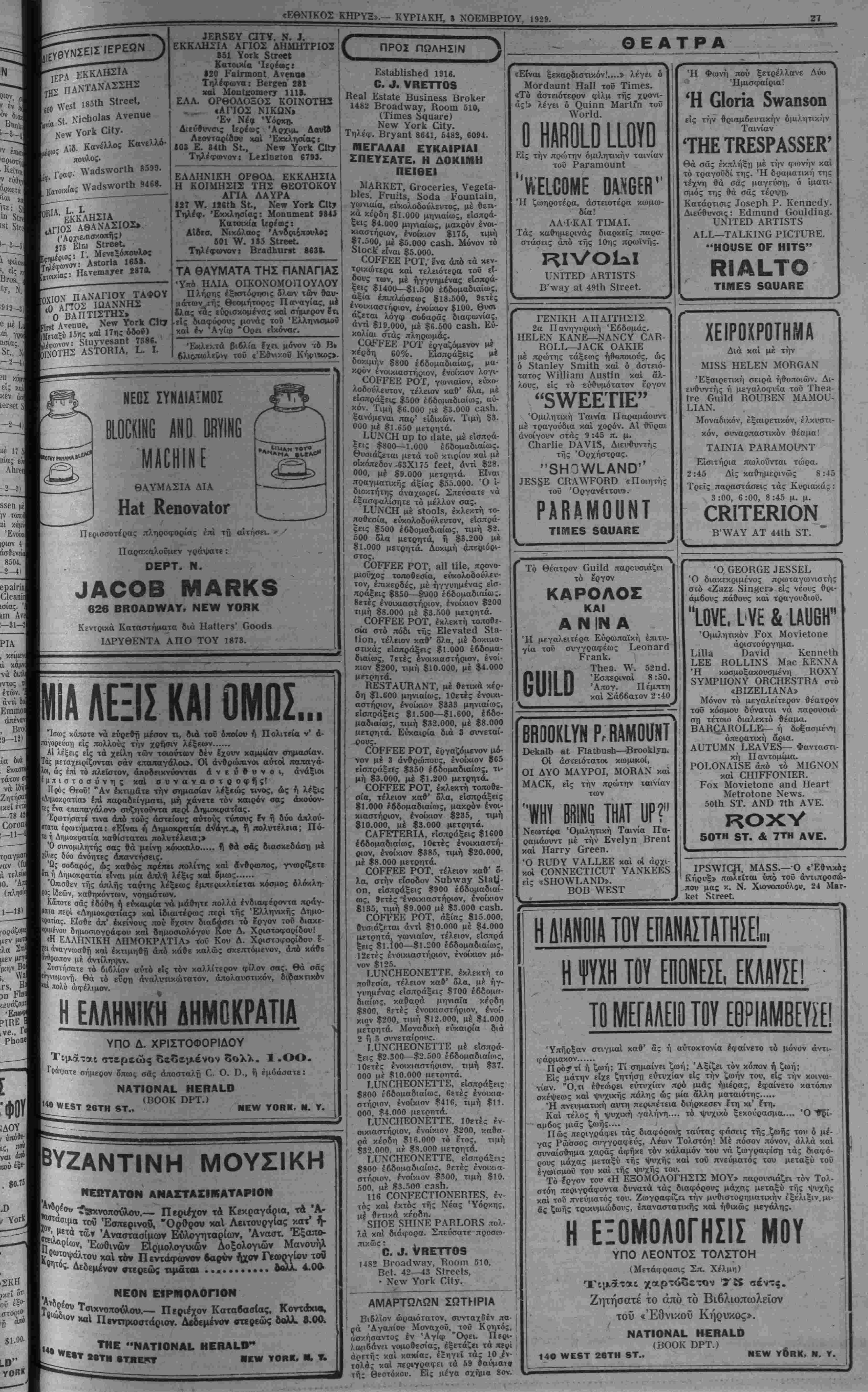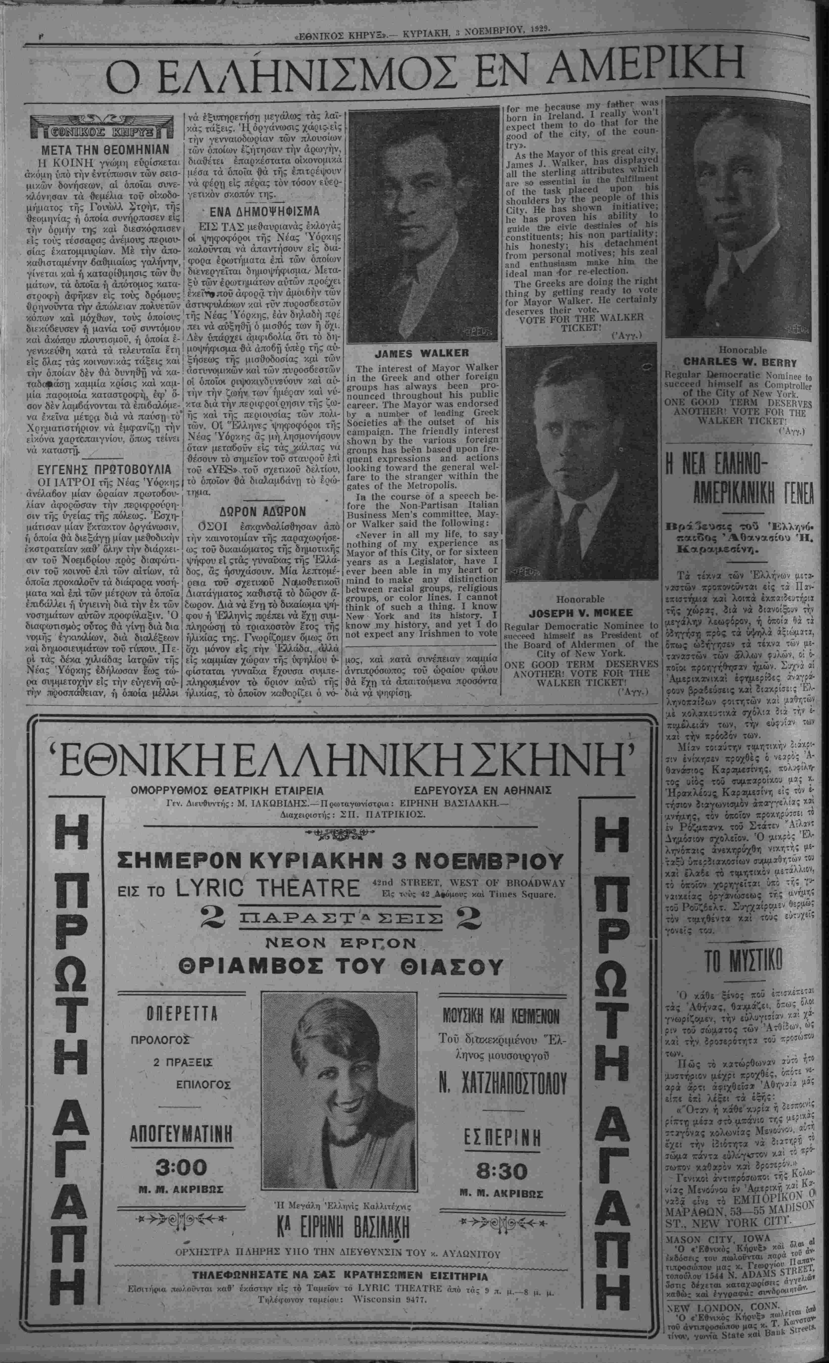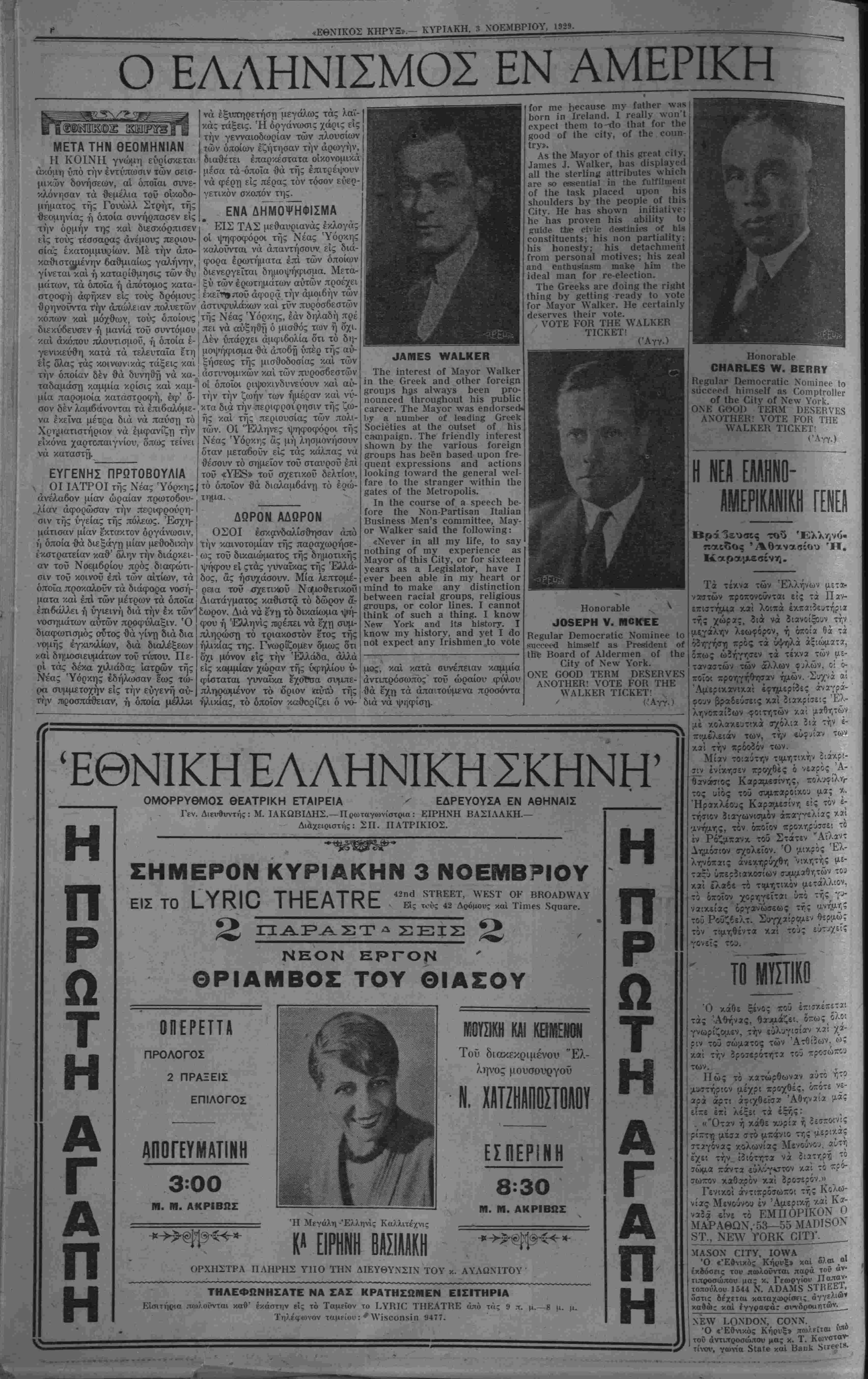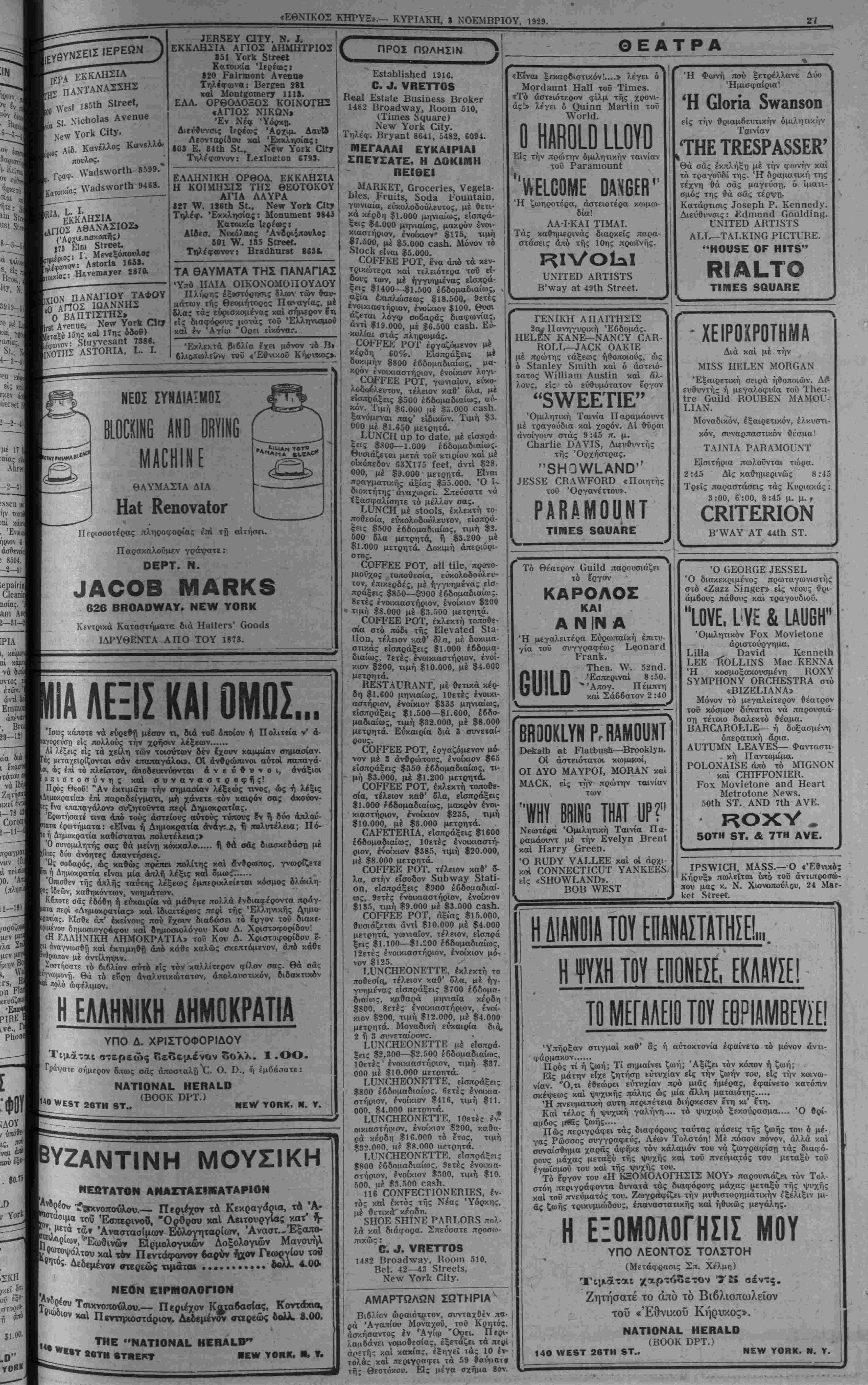 Χο. 5304.________ΝΕ\ ΥΟΠΚ, ΚΥΡΙΑΚΗ, 3 ΝΟΕΜΒΡΙΟΥ, 1929.